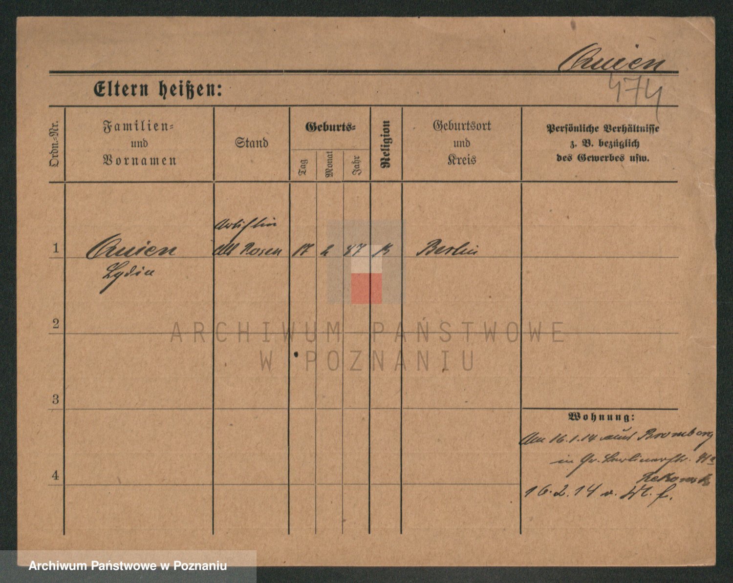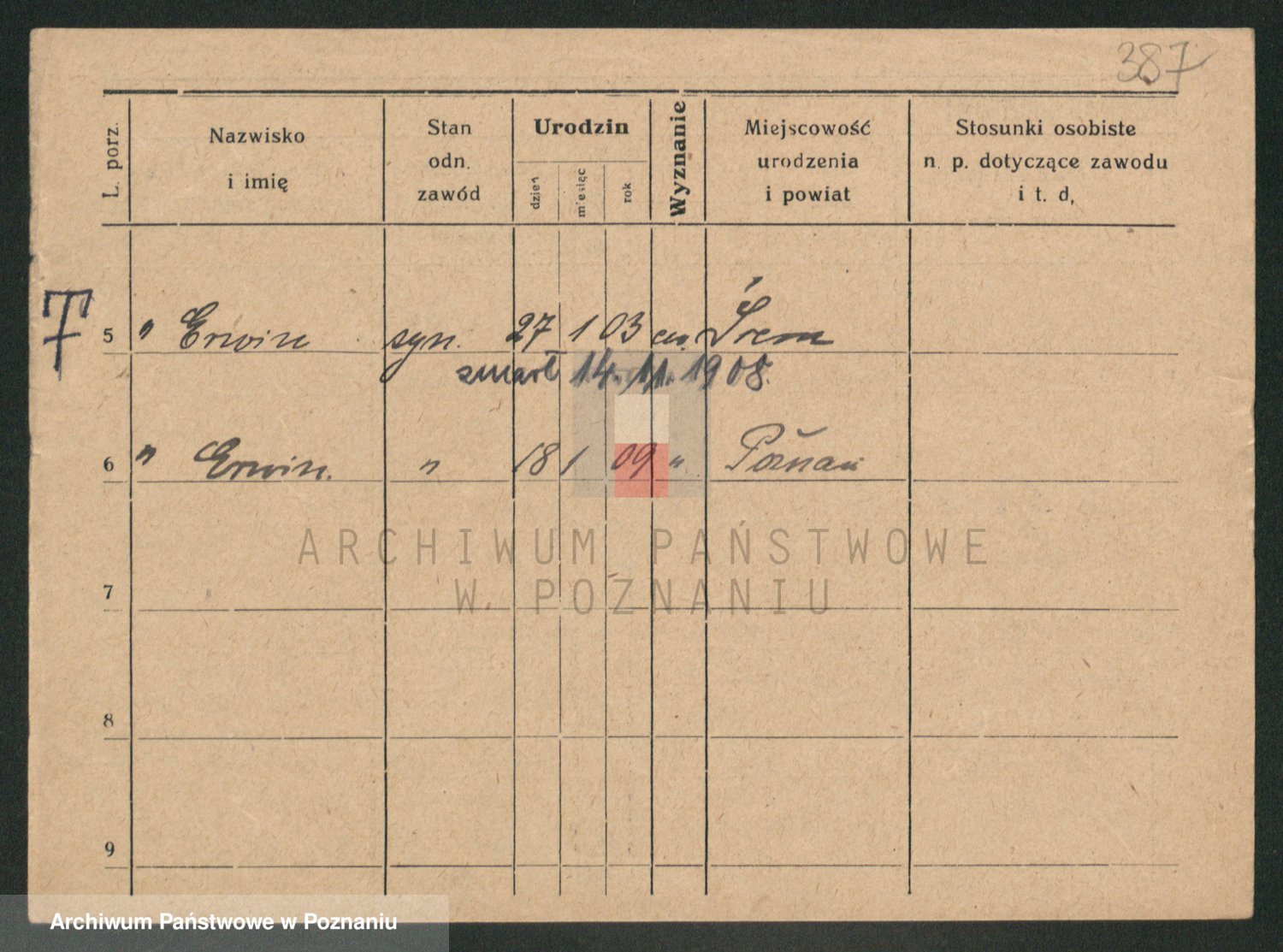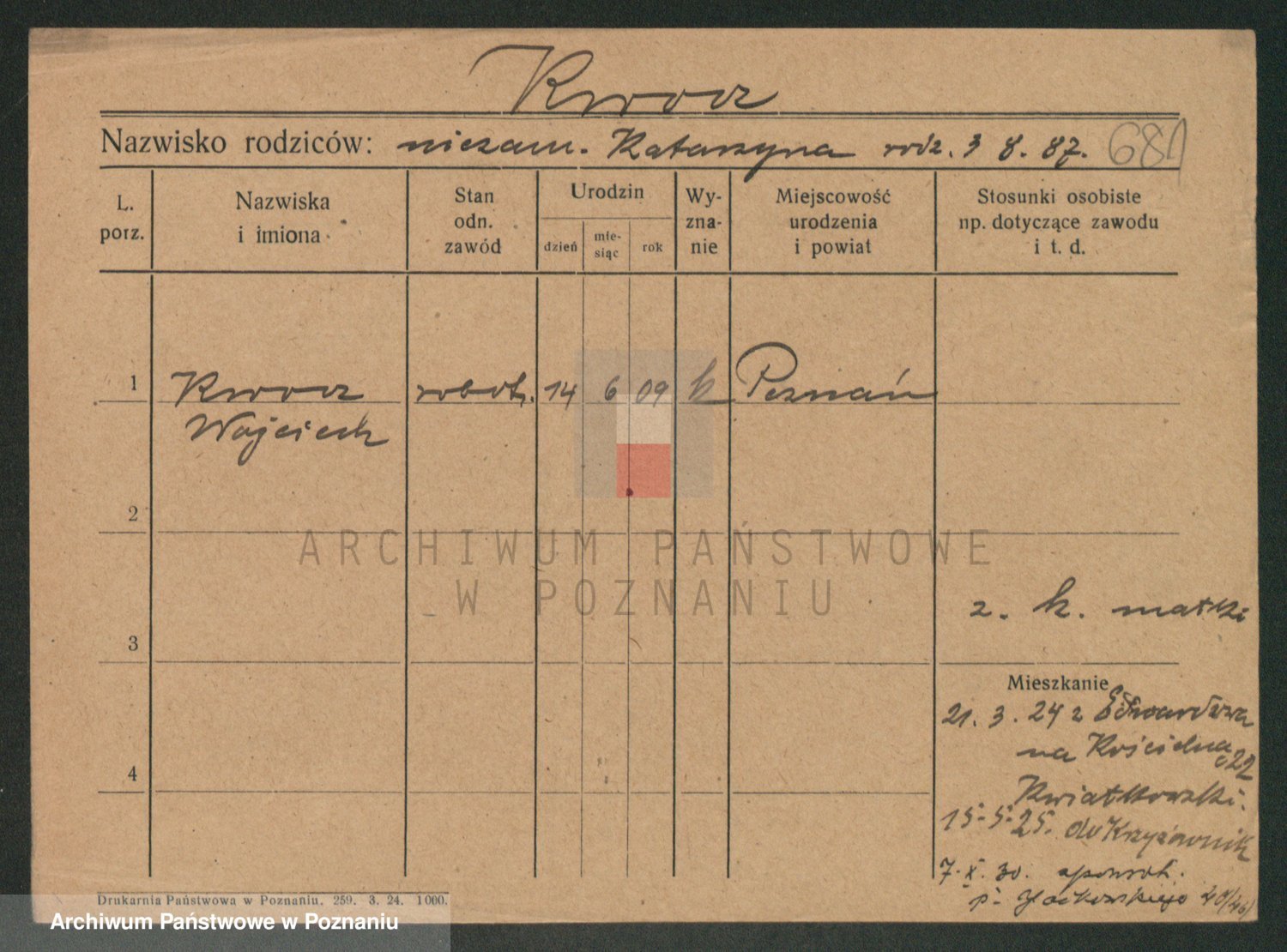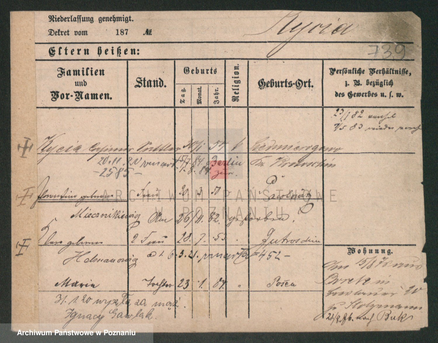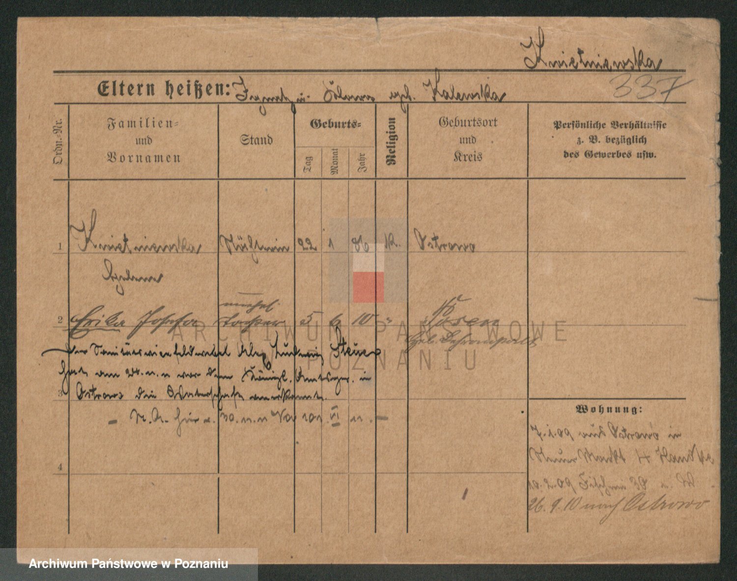 Podgląd karty osobowej dostępny jest po kliknięciu na nazwisko lub ikonkę karty. Można dokonywać powiększenia (ikony na górze) lub przechodzić między kolejnymi skanami (strzałki po bokach).