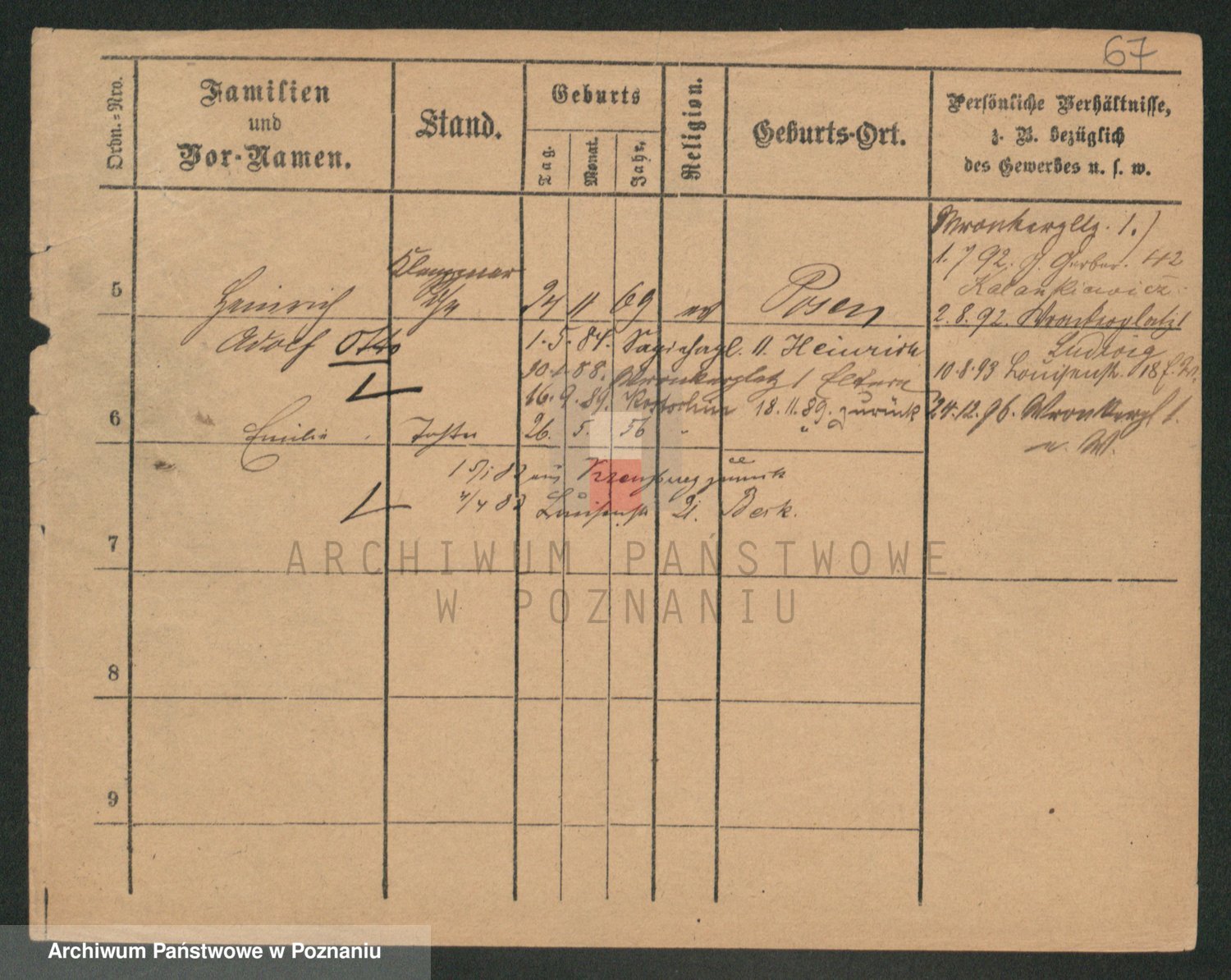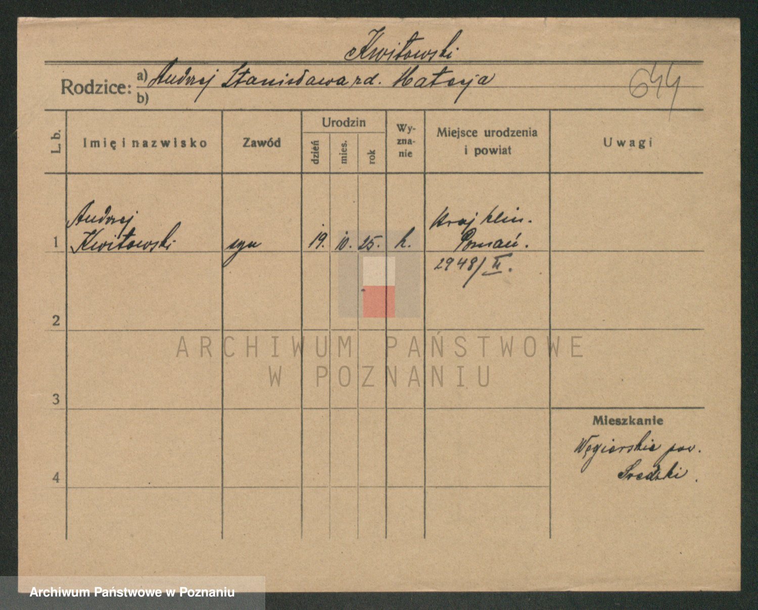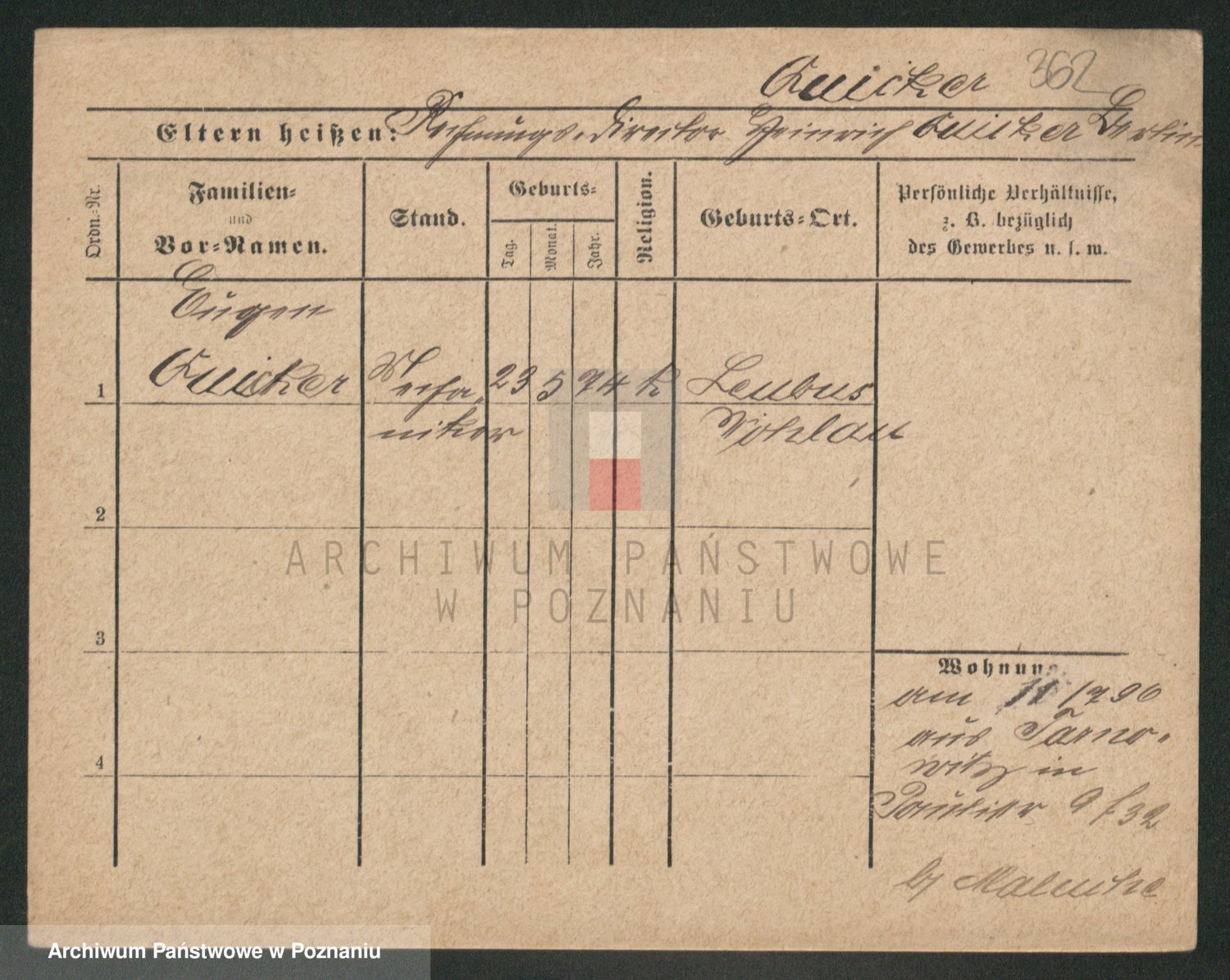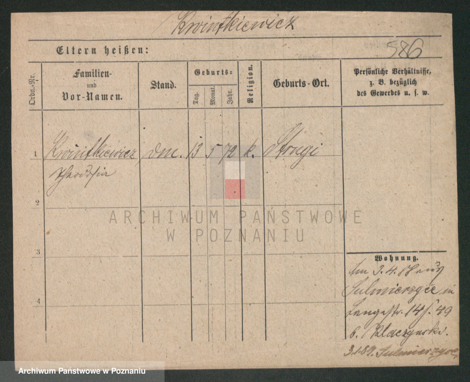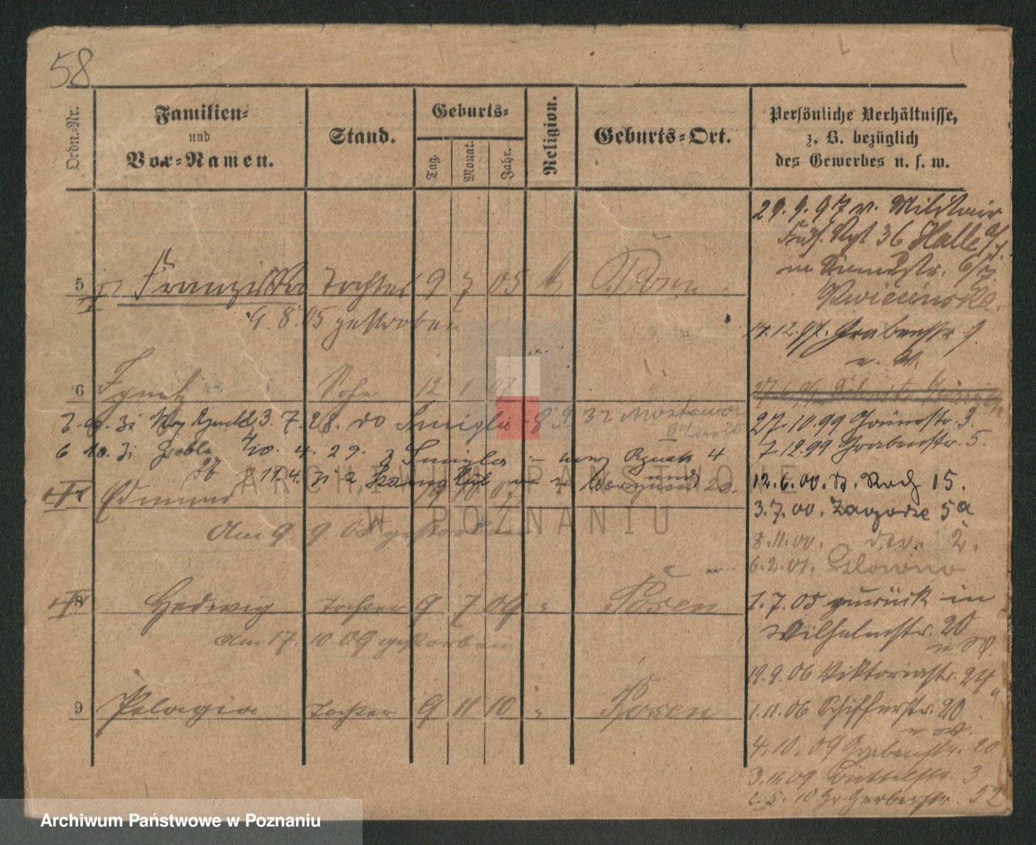 Podgląd karty osobowej dostępny jest po kliknięciu na nazwisko lub ikonkę karty. Można dokonywać powiększenia (ikony na górze) lub przechodzić między kolejnymi skanami (strzałki po bokach).