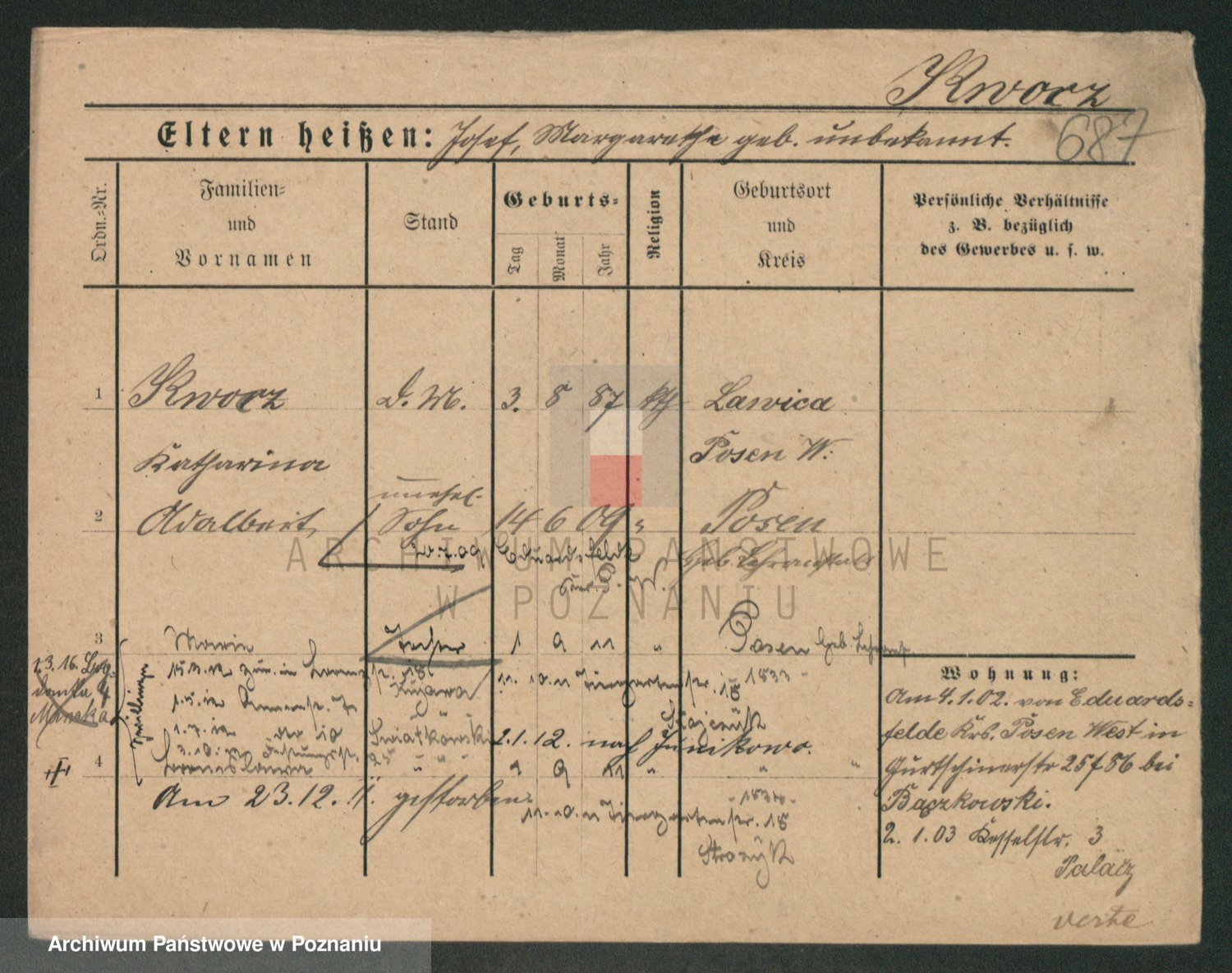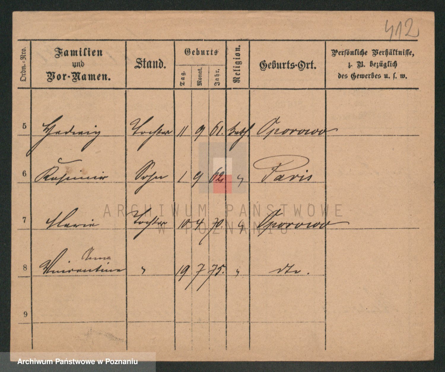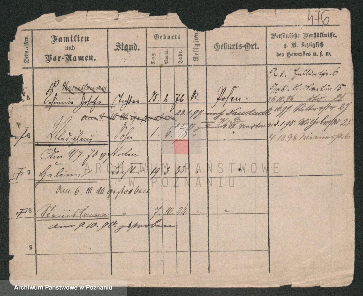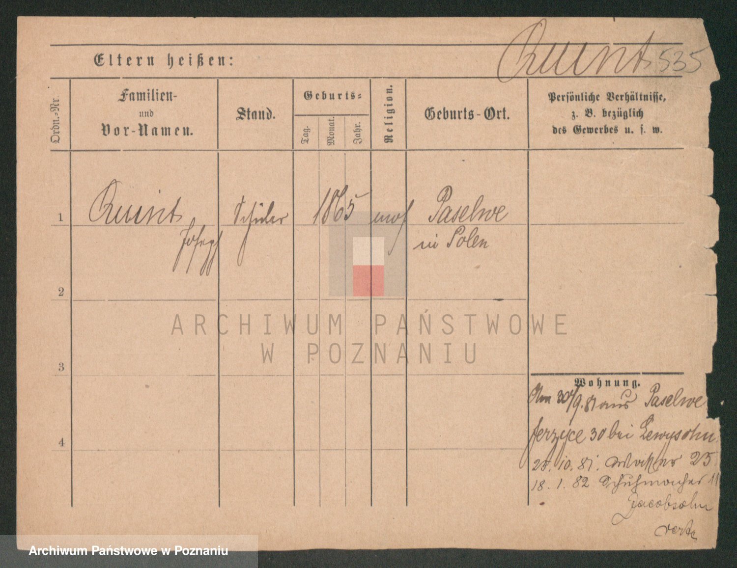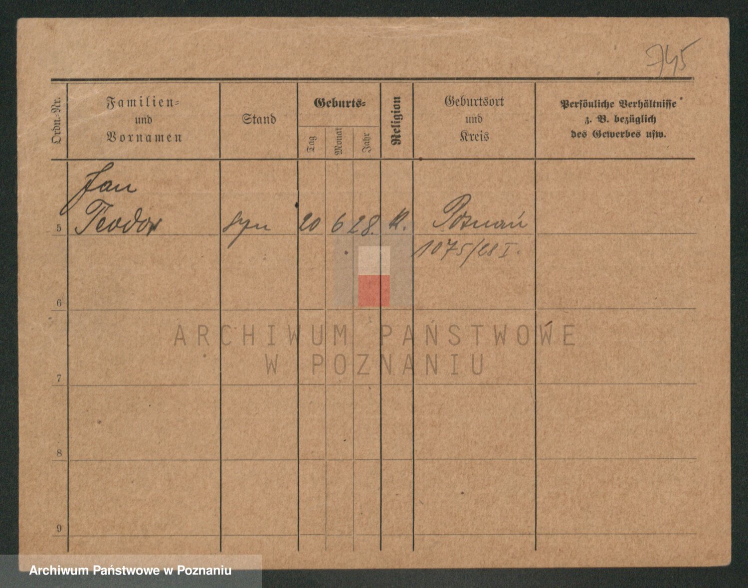 Podgląd karty osobowej dostępny jest po kliknięciu na nazwisko lub ikonkę karty. Można dokonywać powiększenia (ikony na górze) lub przechodzić między kolejnymi skanami (strzałki po bokach).