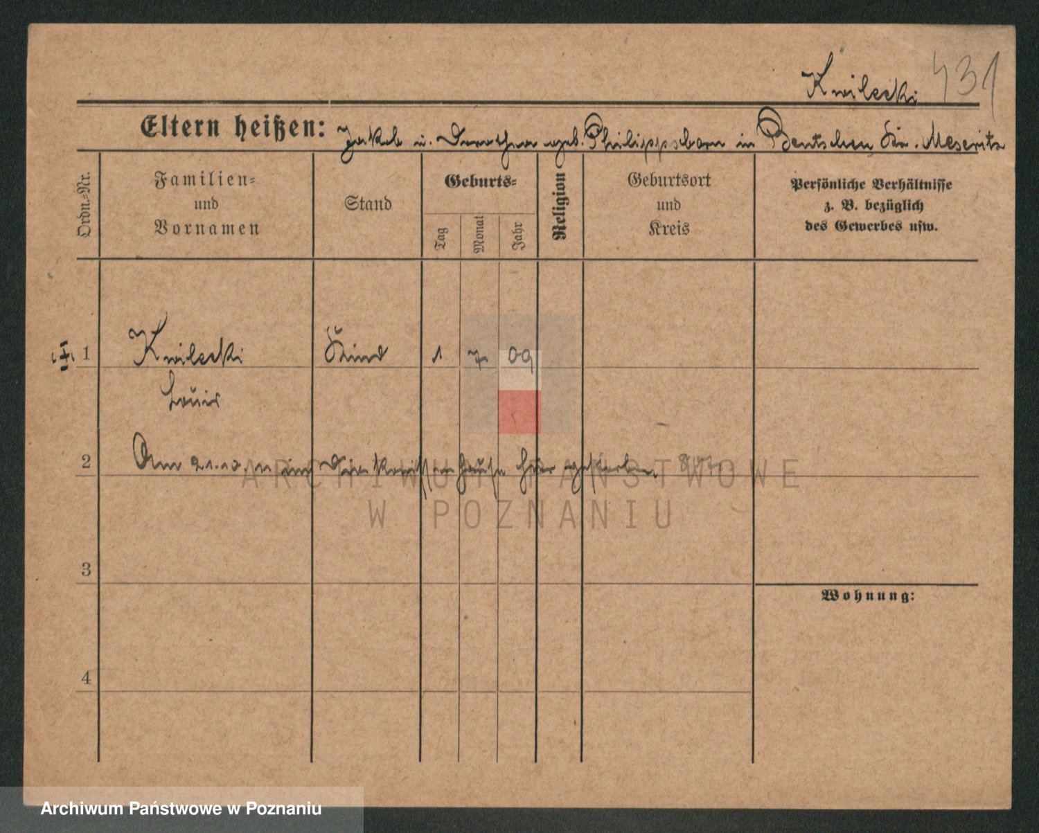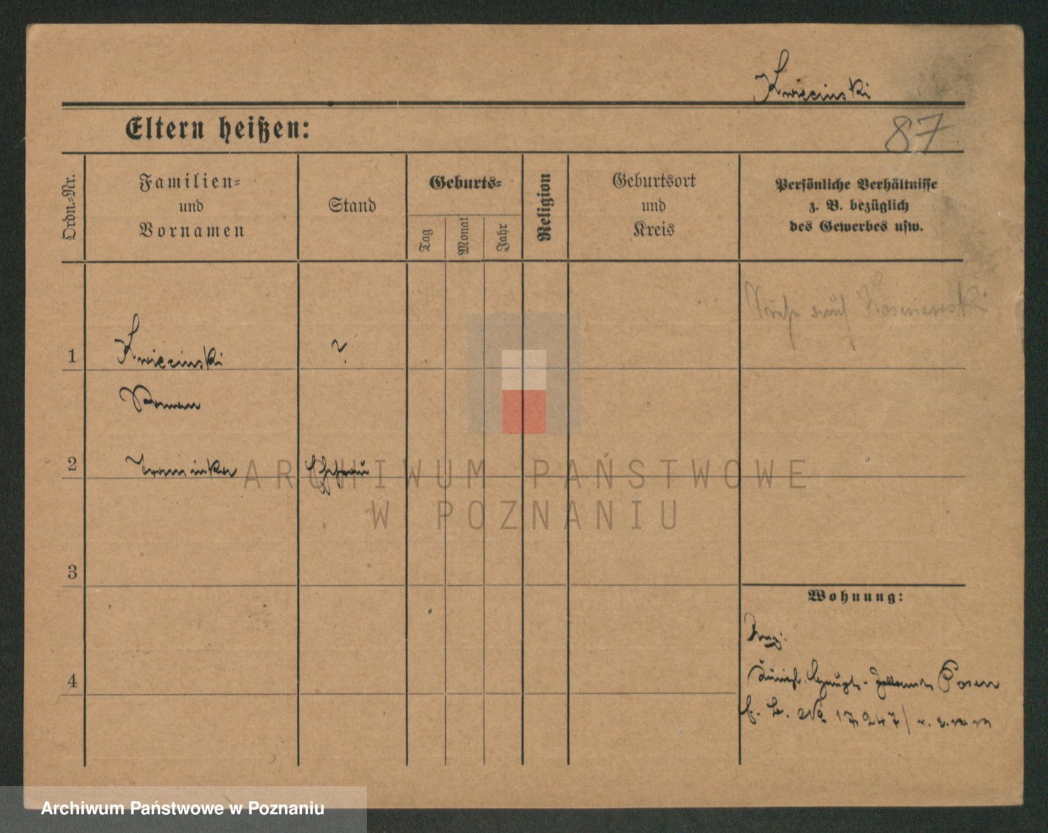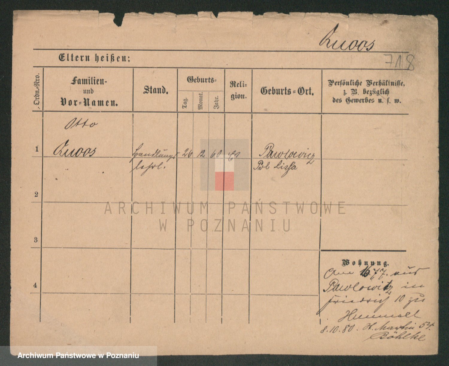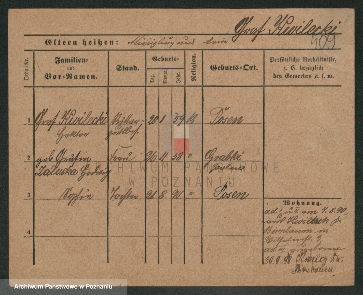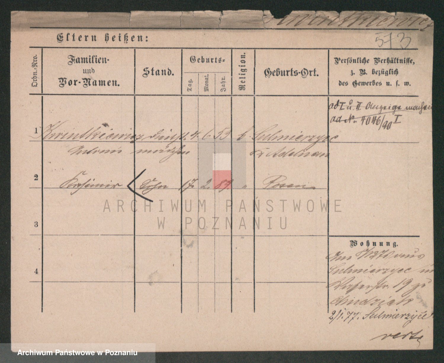 Podgląd karty osobowej dostępny jest po kliknięciu na nazwisko lub ikonkę karty. Można dokonywać powiększenia (ikony na górze) lub przechodzić między kolejnymi skanami (strzałki po bokach).