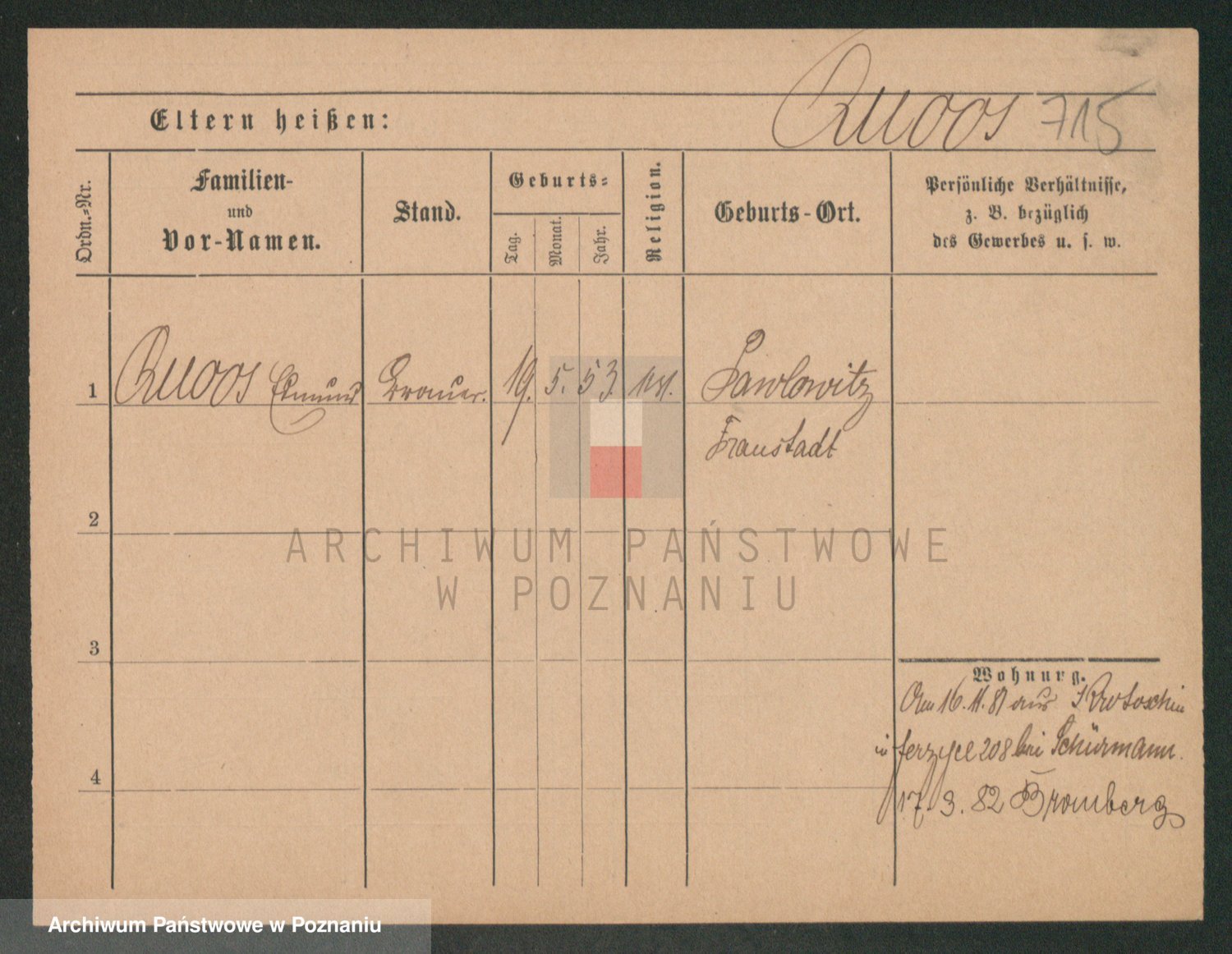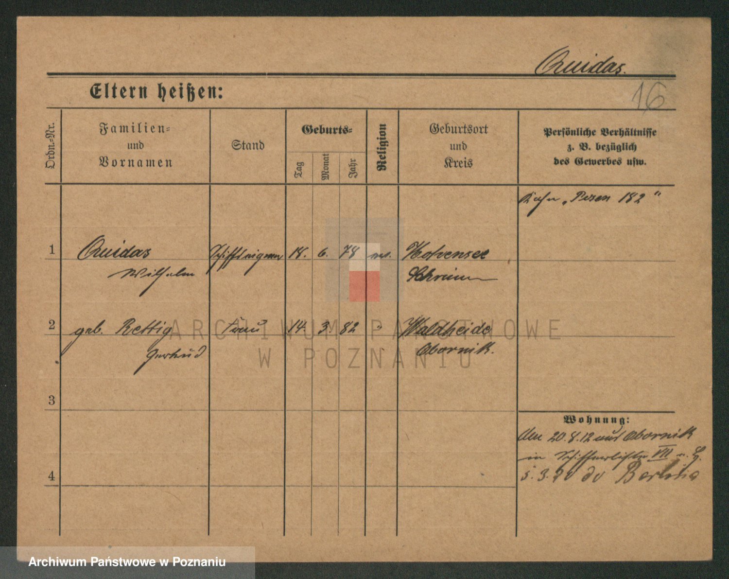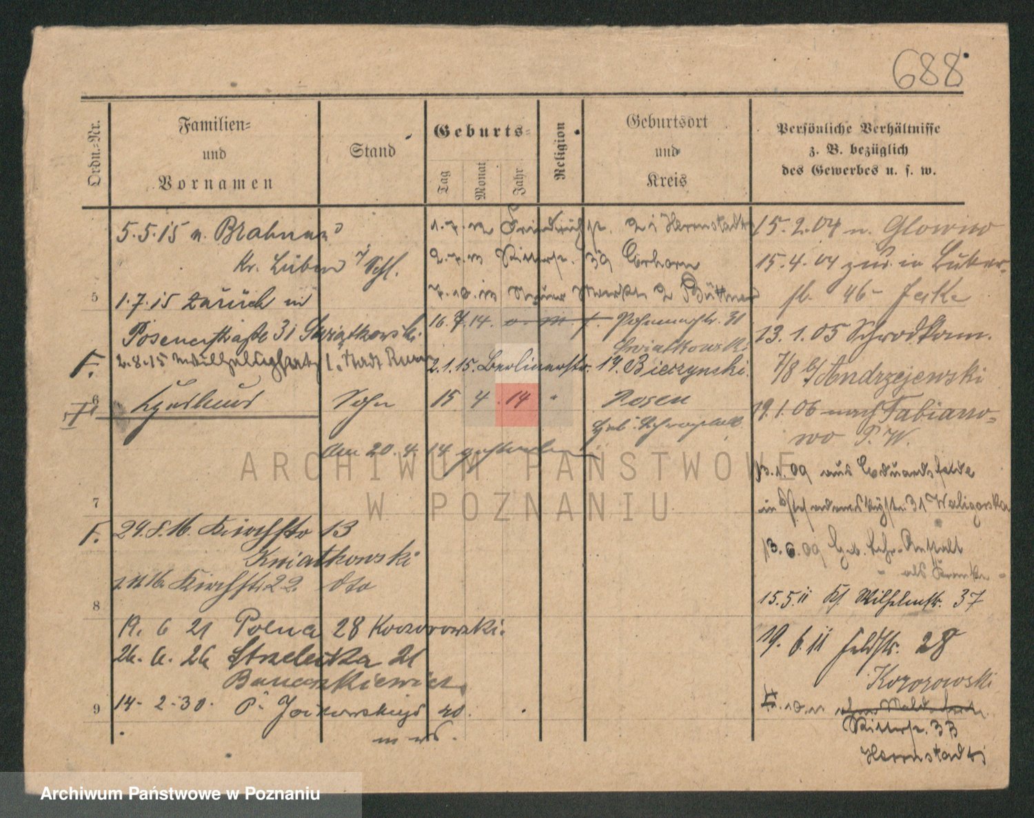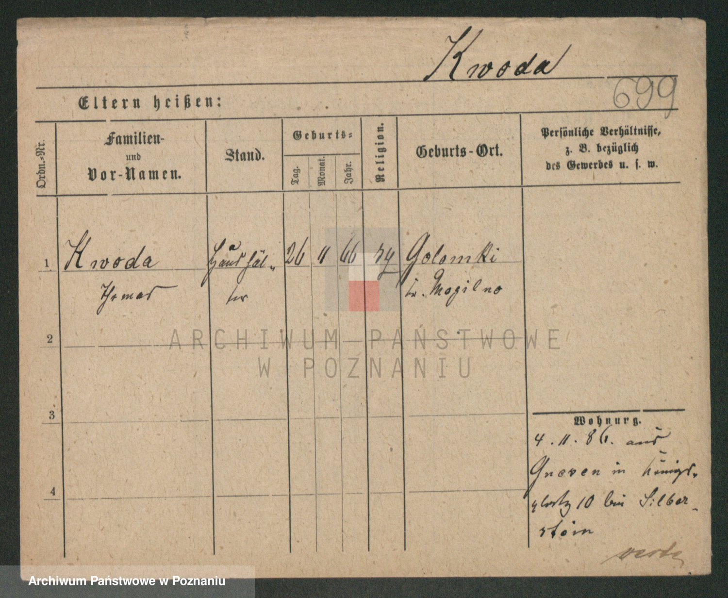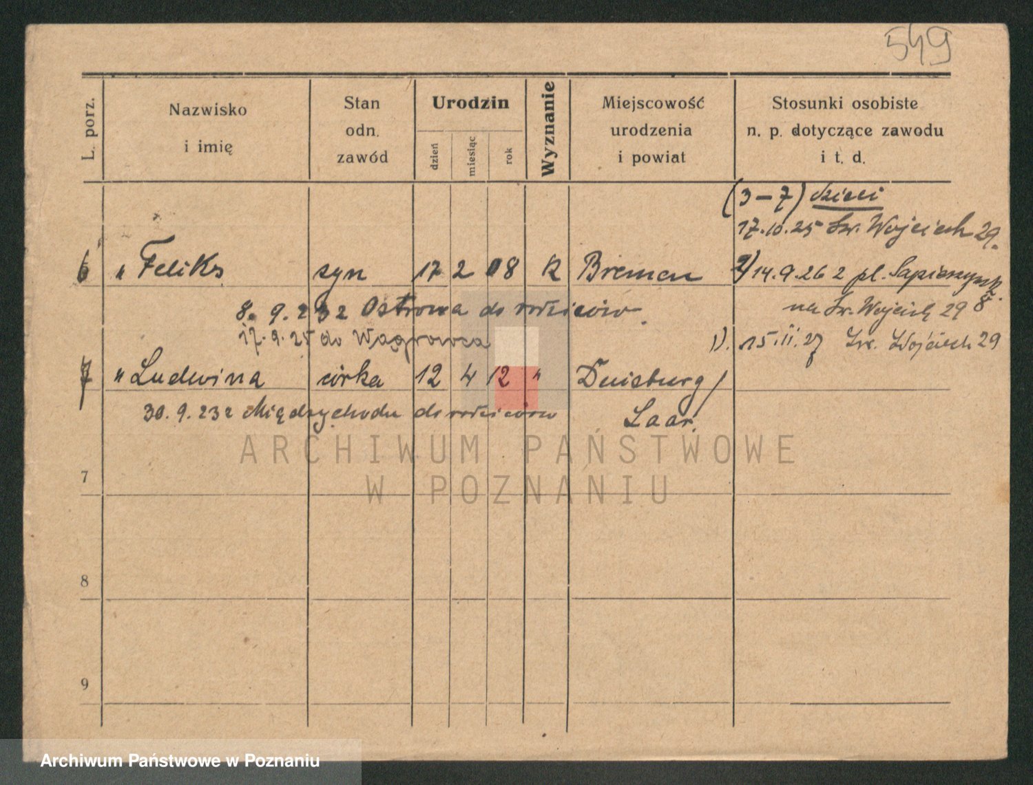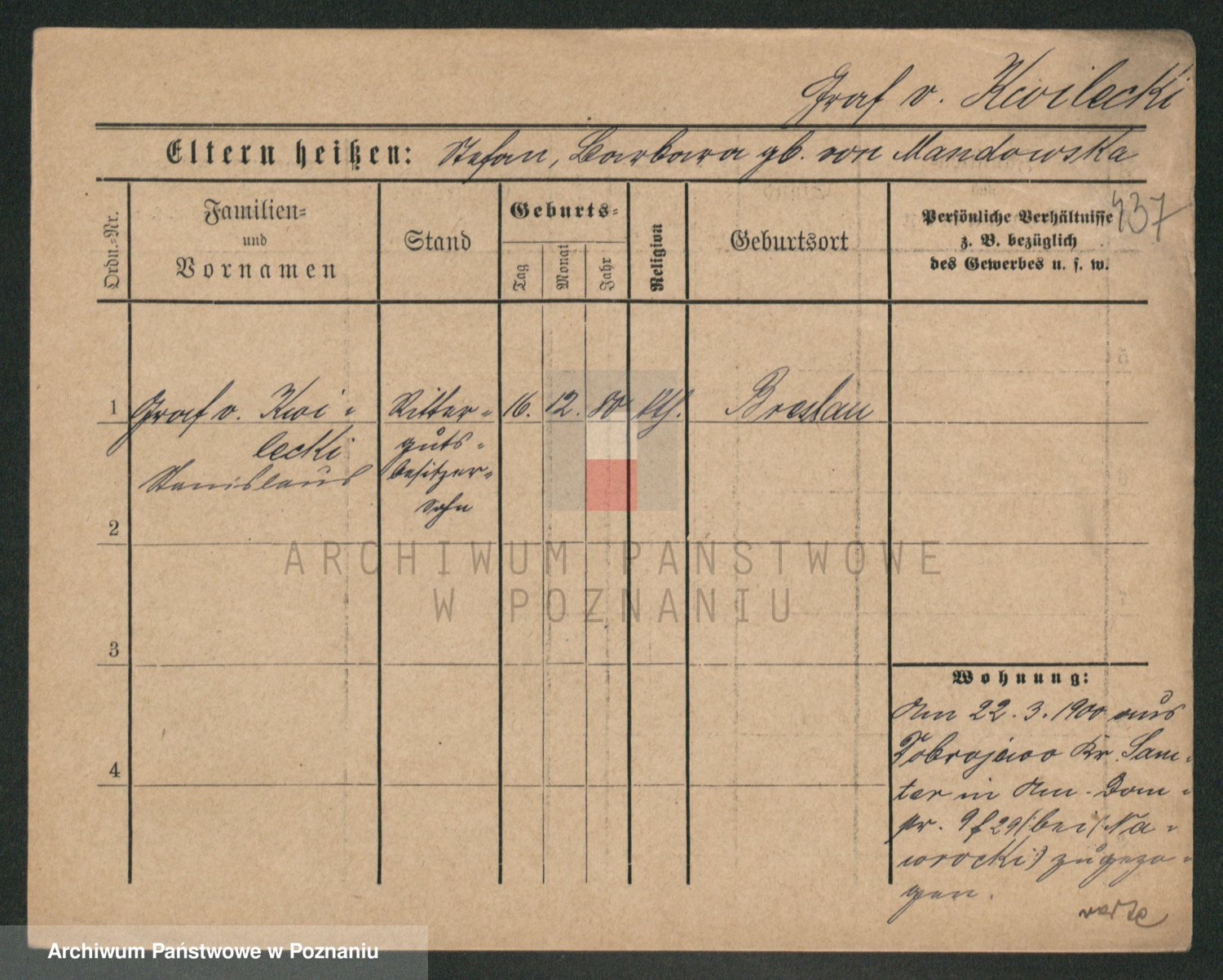 Podgląd karty osobowej dostępny jest po kliknięciu na nazwisko lub ikonkę karty. Można dokonywać powiększenia (ikony na górze) lub przechodzić między kolejnymi skanami (strzałki po bokach).