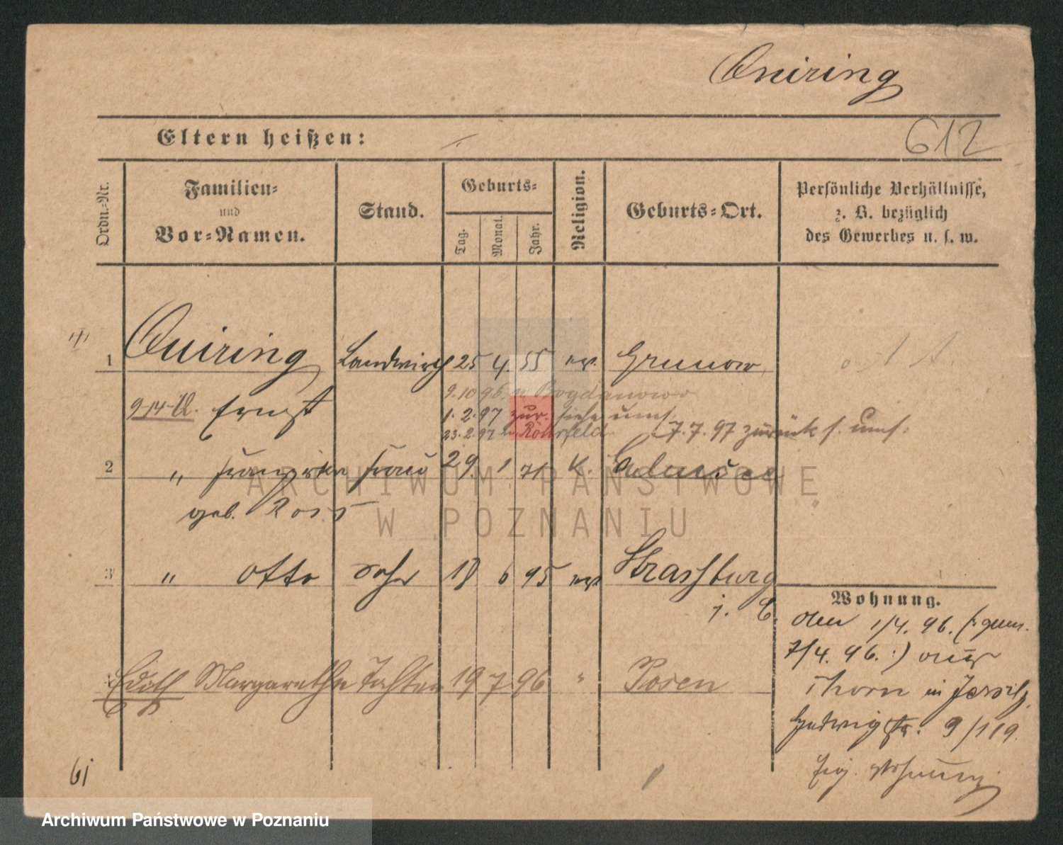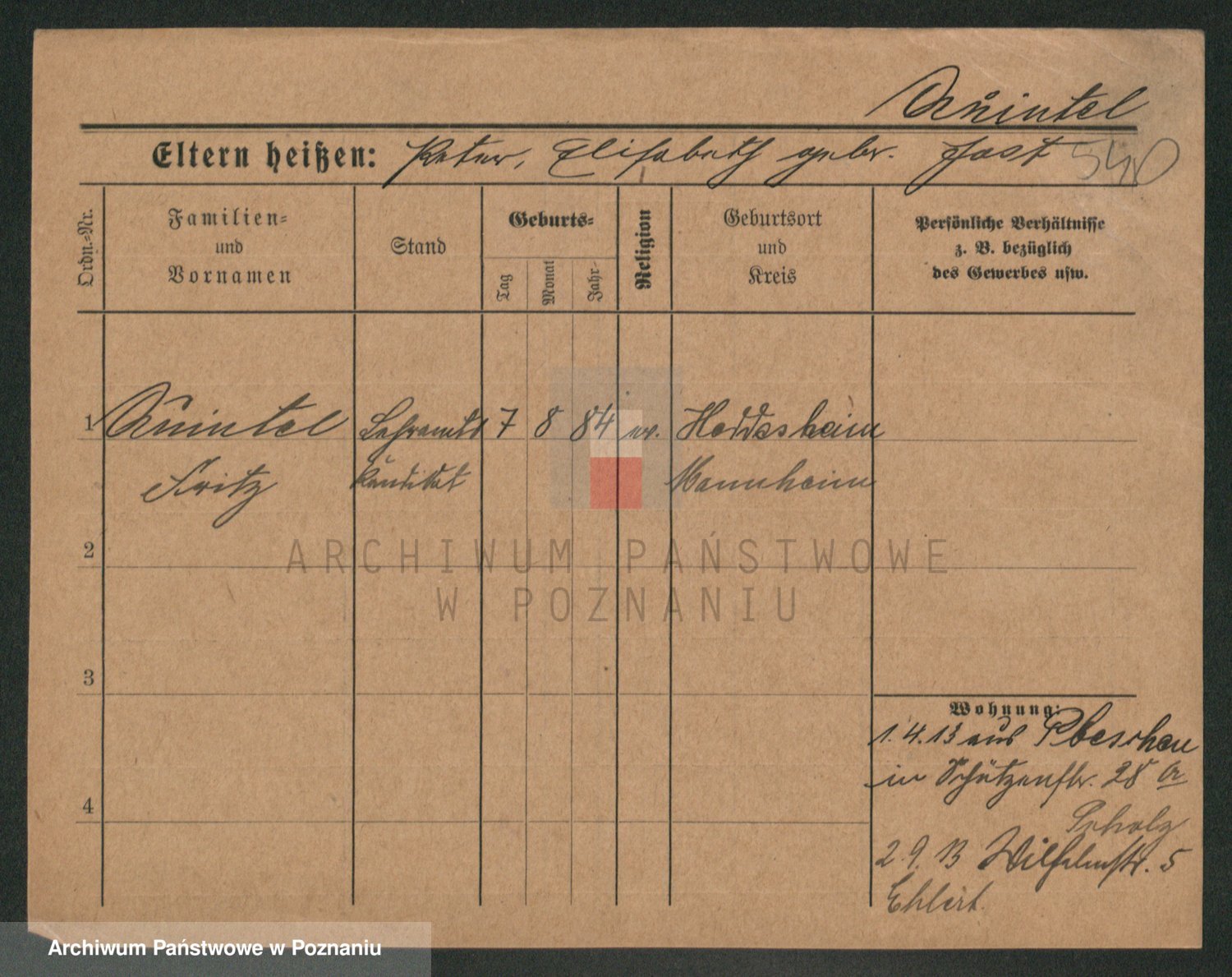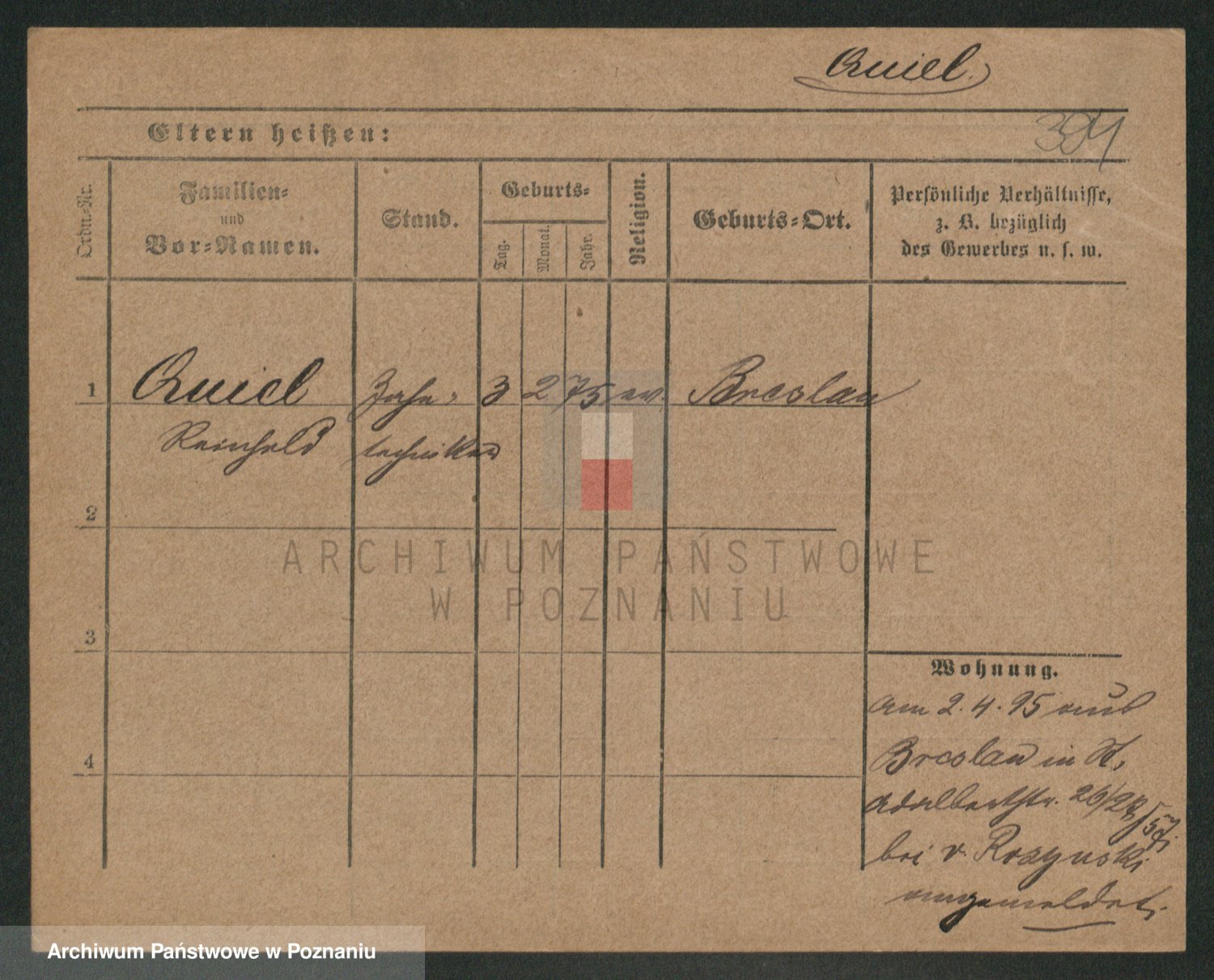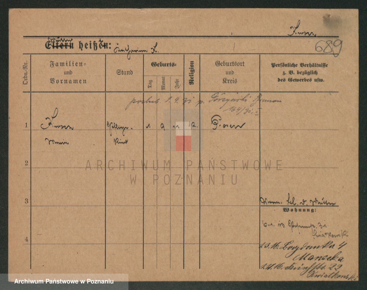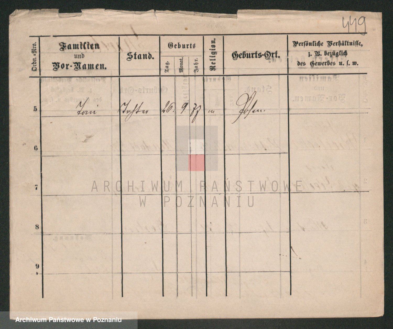 Podgląd karty osobowej dostępny jest po kliknięciu na nazwisko lub ikonkę karty. Można dokonywać powiększenia (ikony na górze) lub przechodzić między kolejnymi skanami (strzałki po bokach).