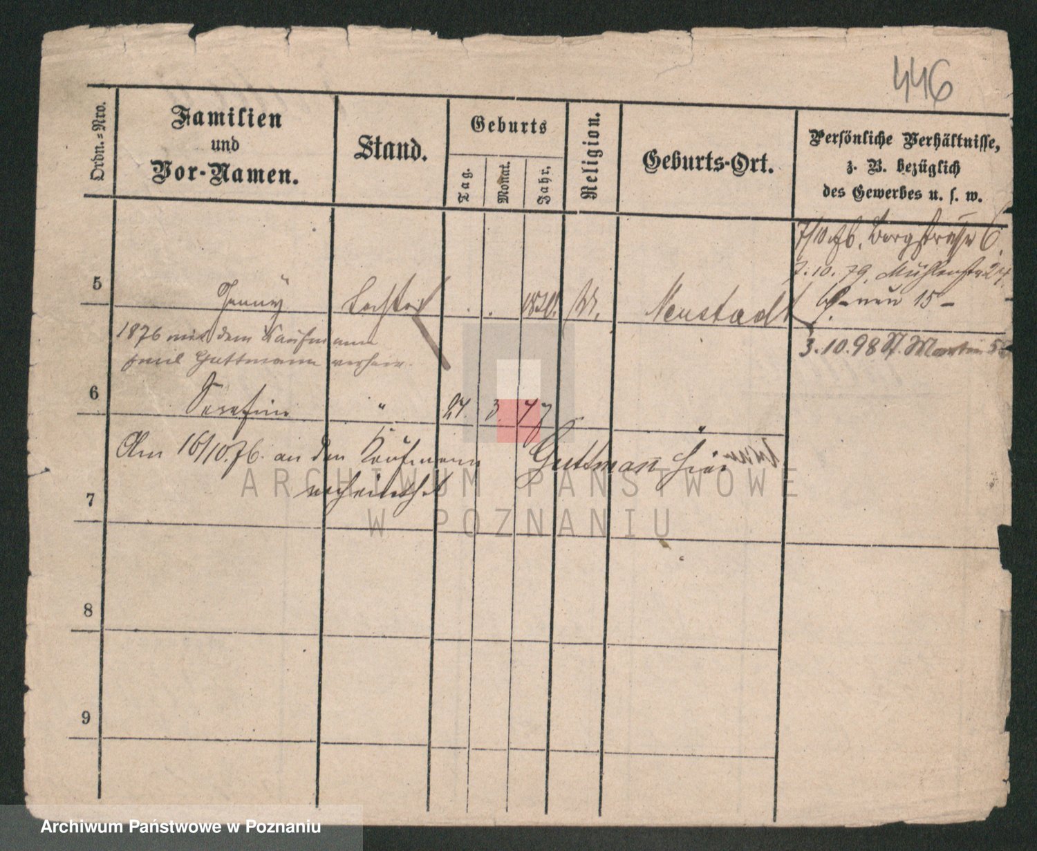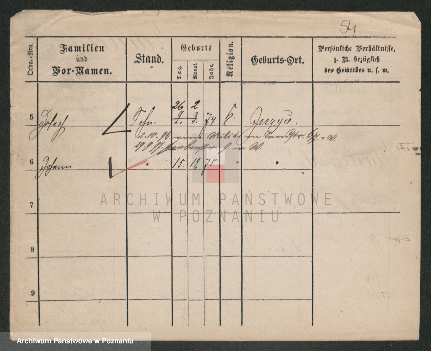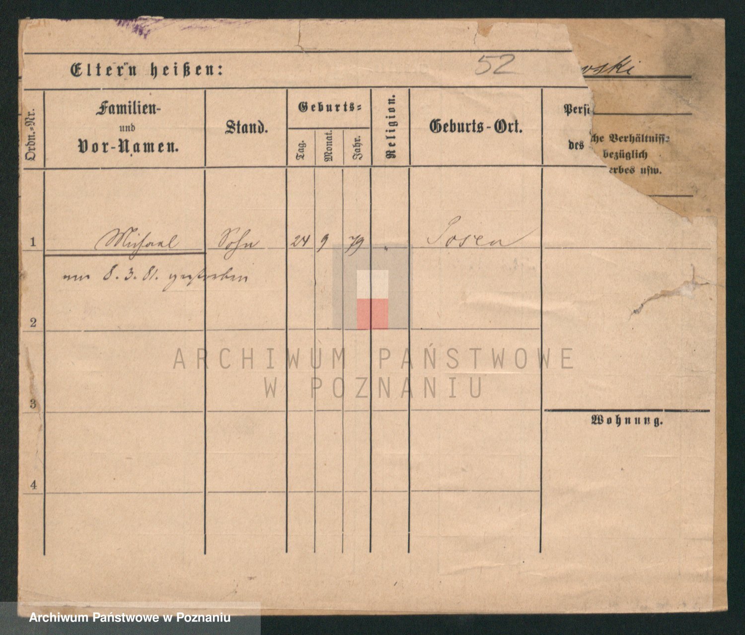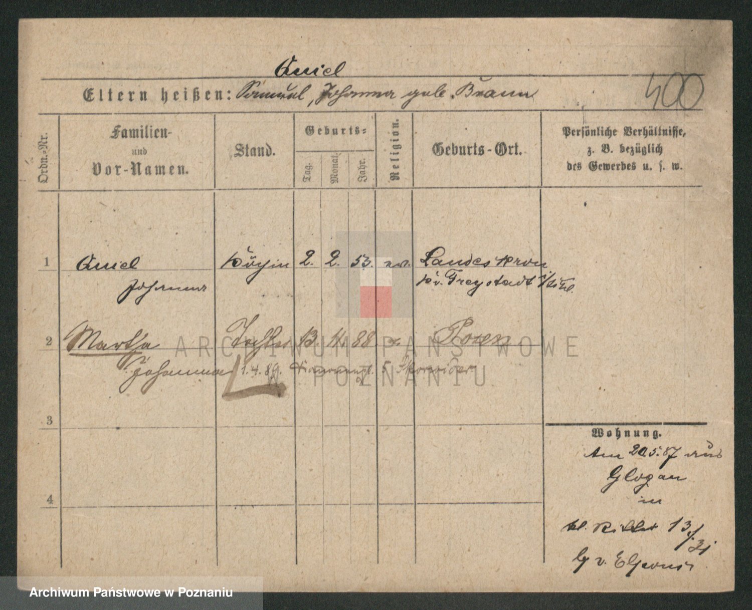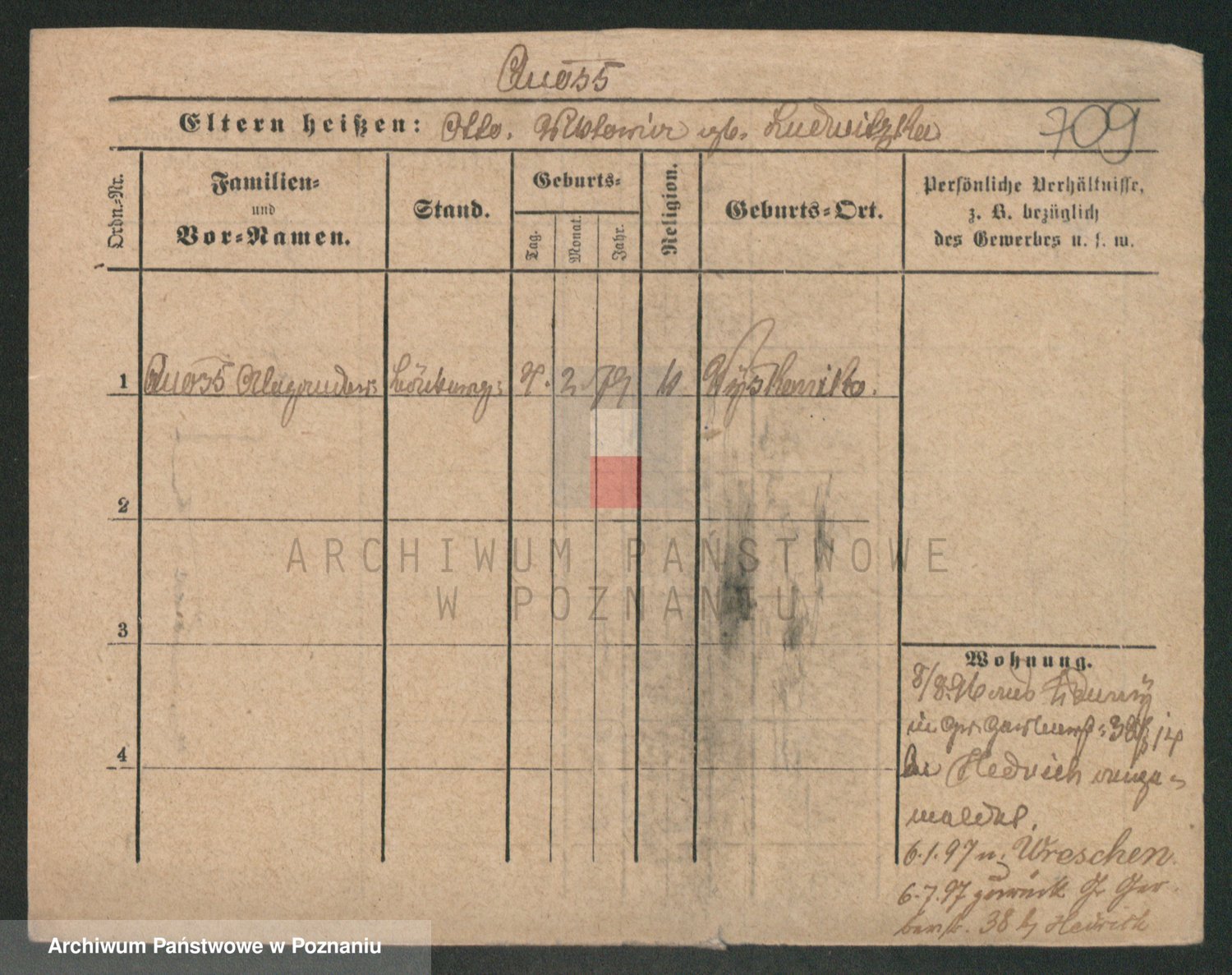 Podgląd karty osobowej dostępny jest po kliknięciu na nazwisko lub ikonkę karty. Można dokonywać powiększenia (ikony na górze) lub przechodzić między kolejnymi skanami (strzałki po bokach).