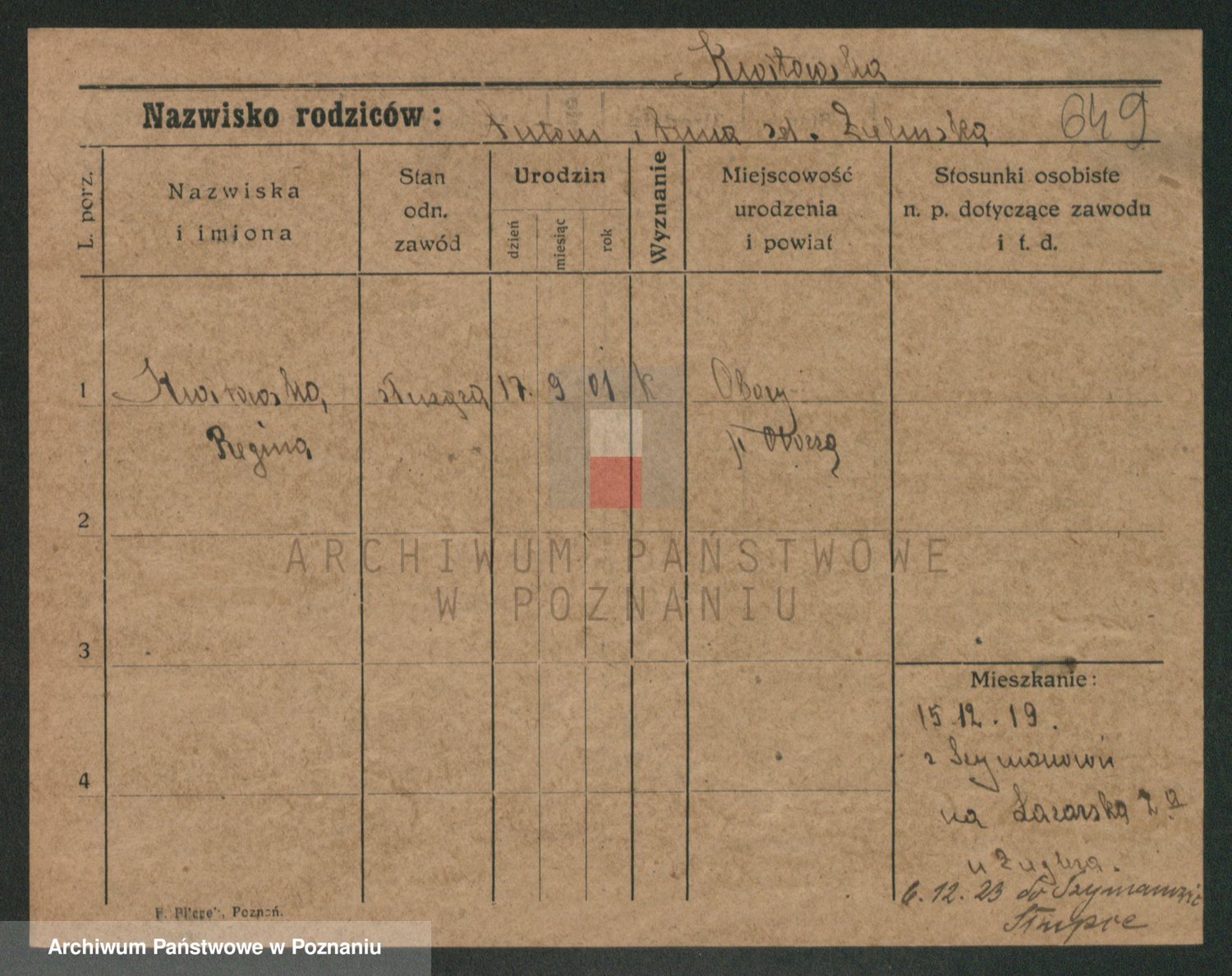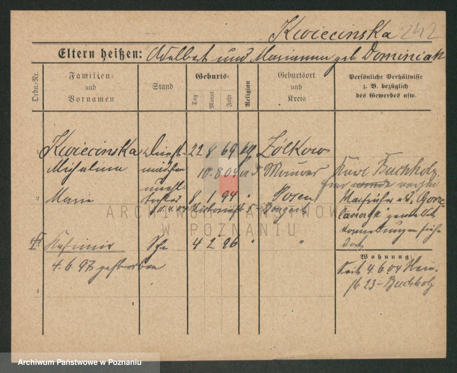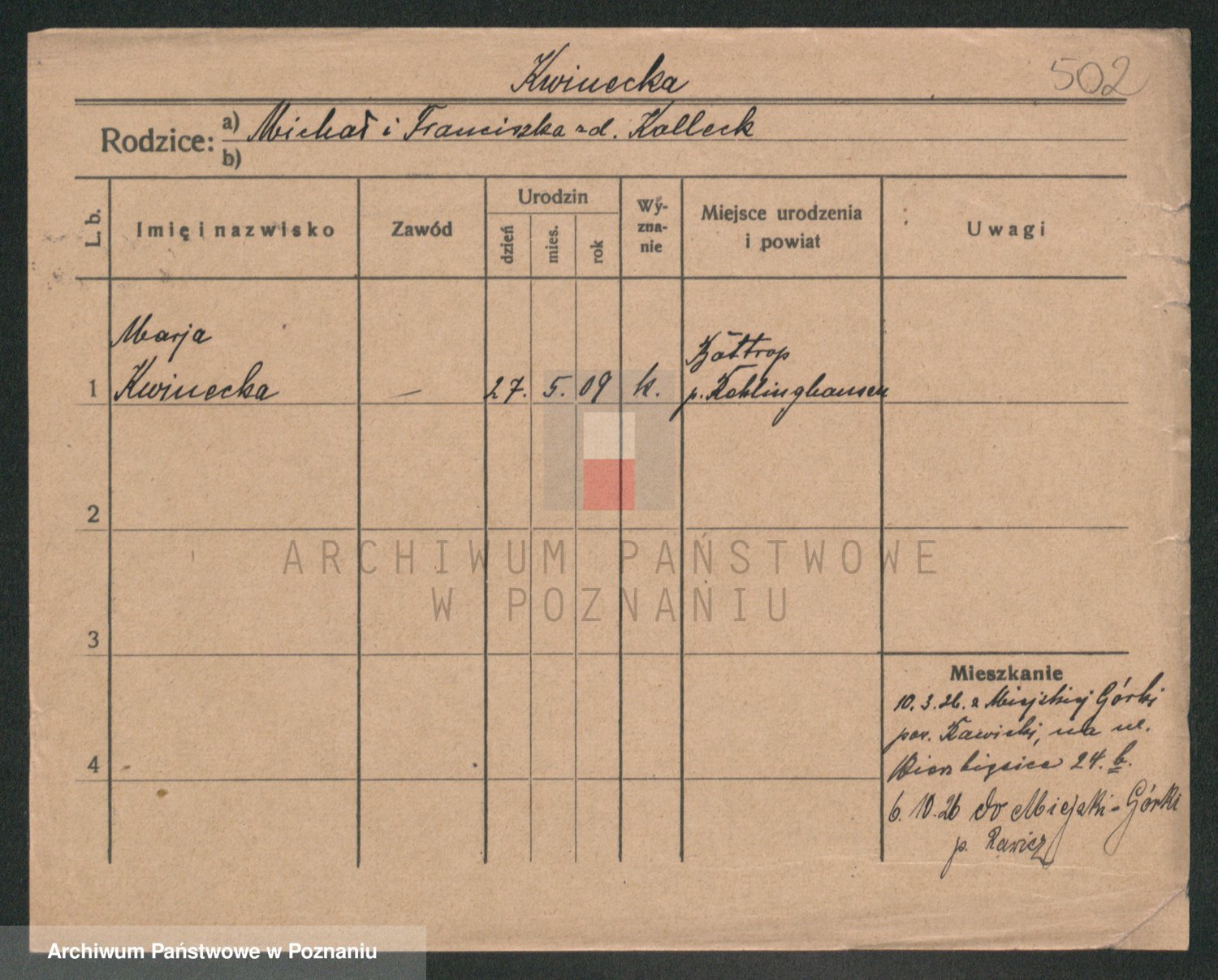 Kwiecinski zd. Jankowiak, Marie