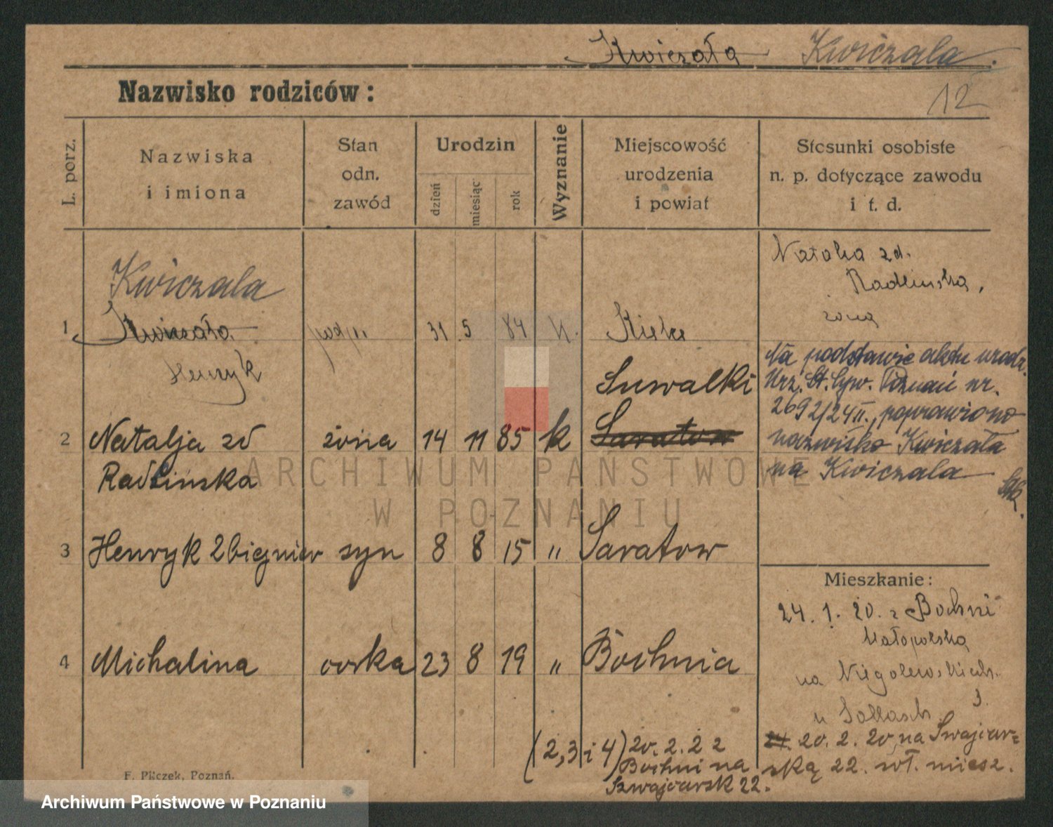 Kwiczala zd. Radzinska, Natalja