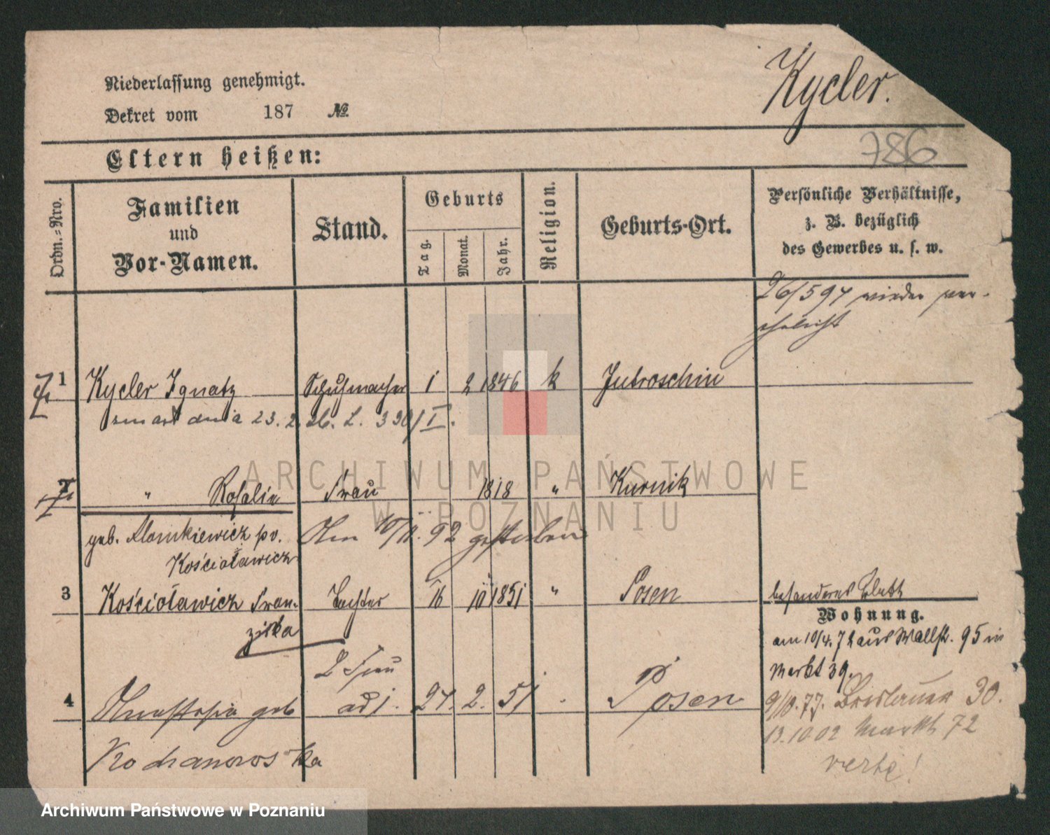 Kycler zd. Alankiewicz p.v. Kościołowicz, Rosalie