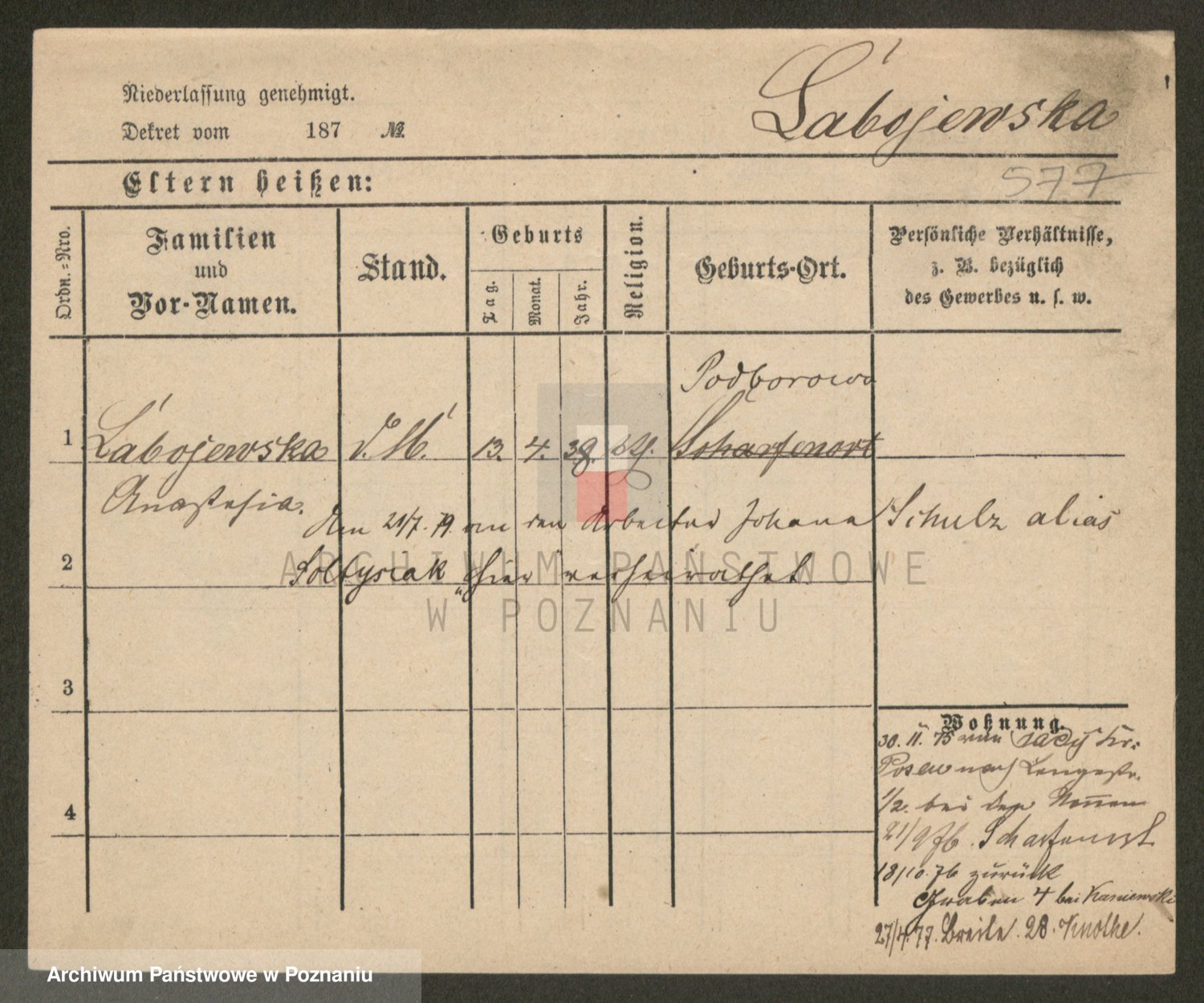 Labuzinski zd. Fiebak, Sophie Theodosia