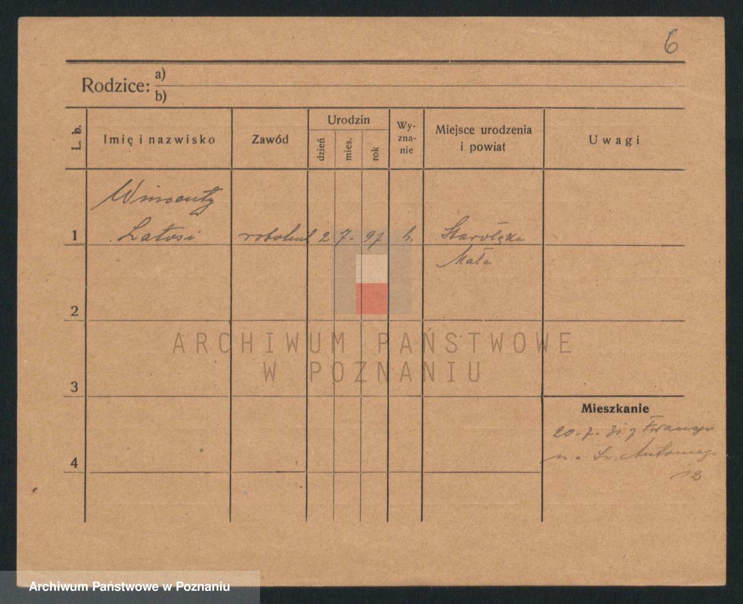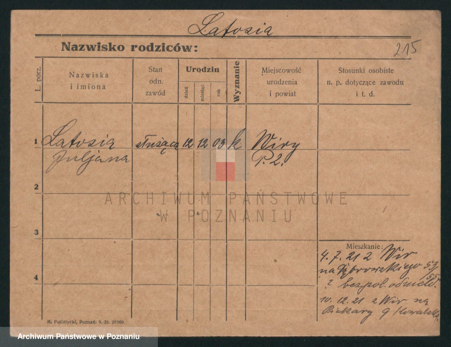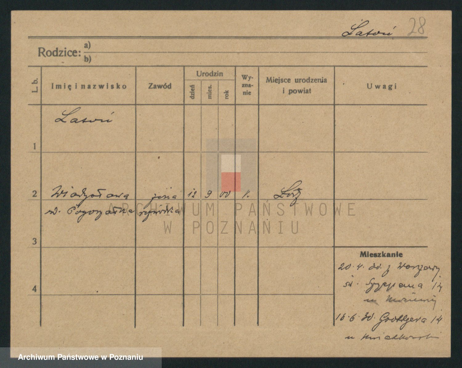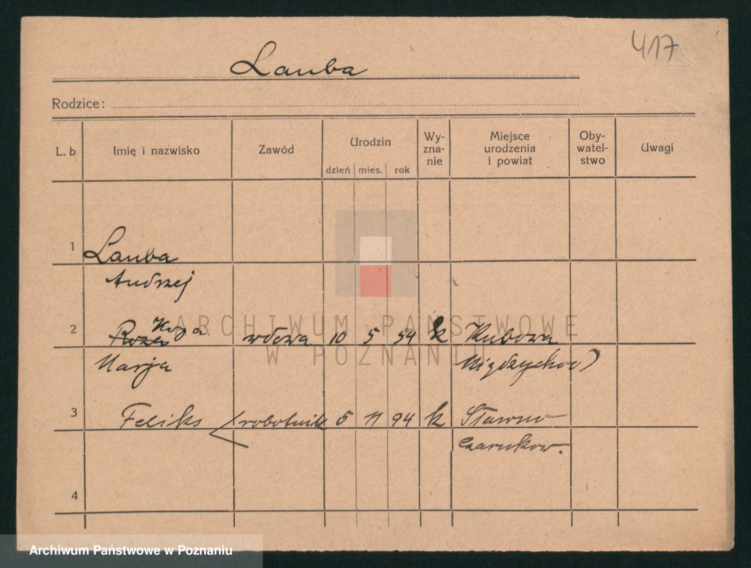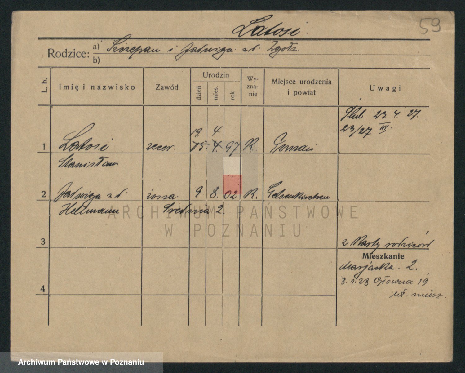 Podgląd karty osobowej dostępny jest po kliknięciu na nazwisko lub ikonkę karty. Można dokonywać powiększenia (ikony na górze) lub przechodzić między kolejnymi skanami (strzałki po bokach).