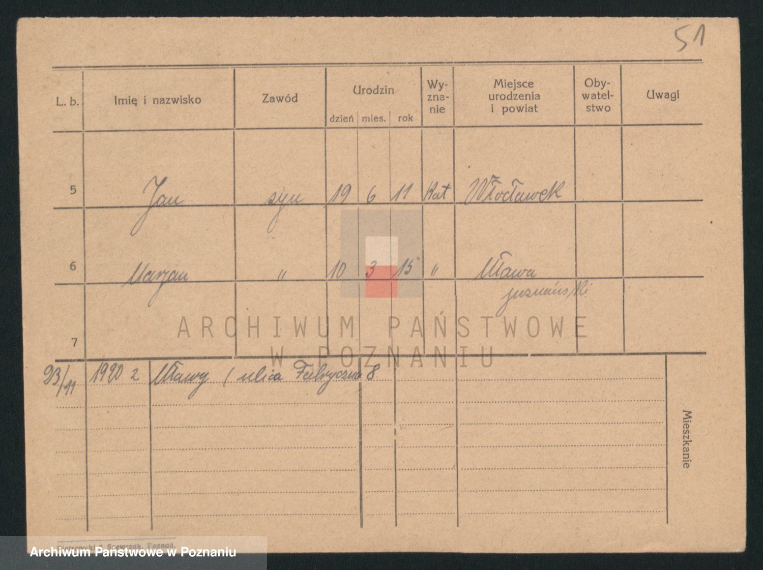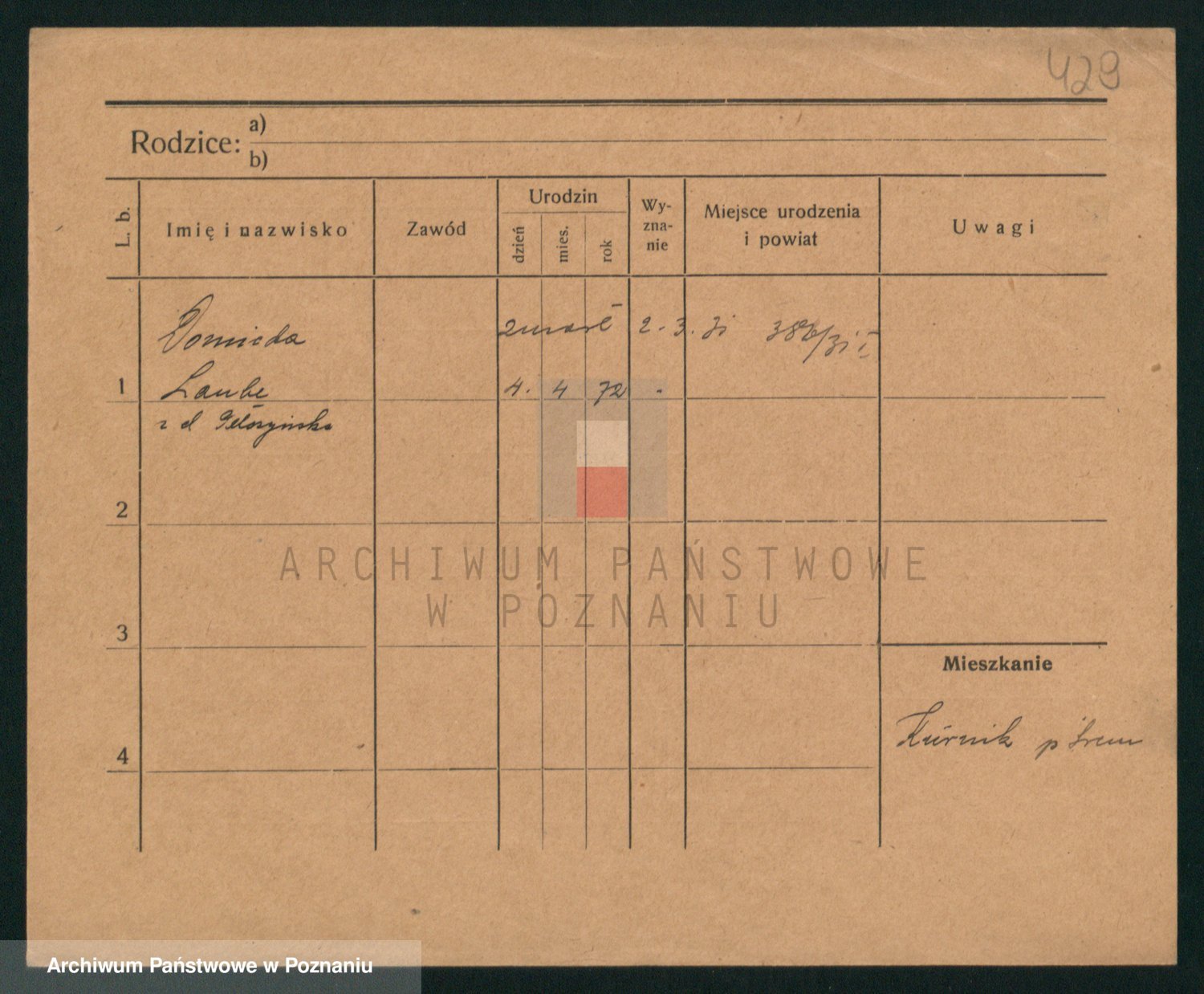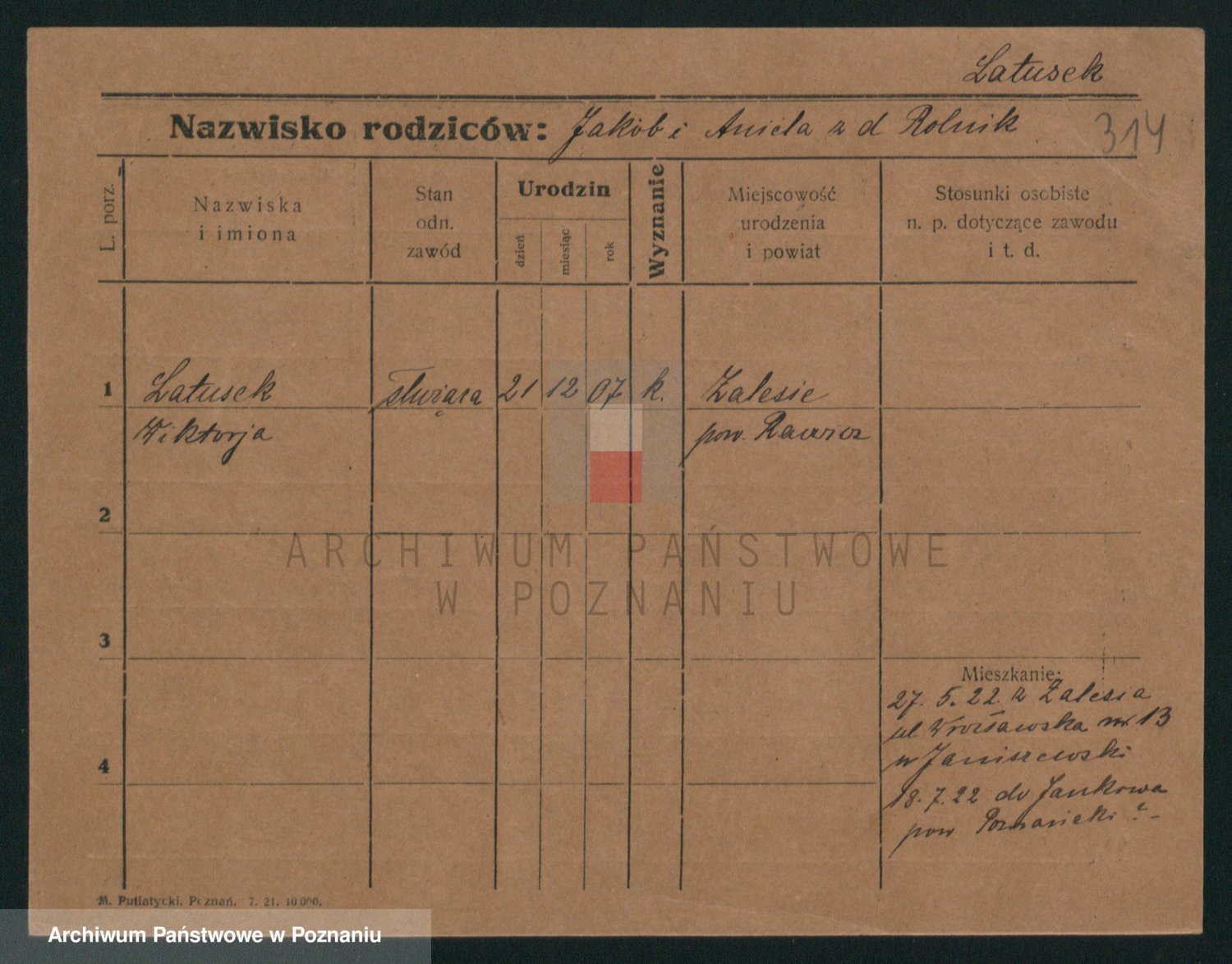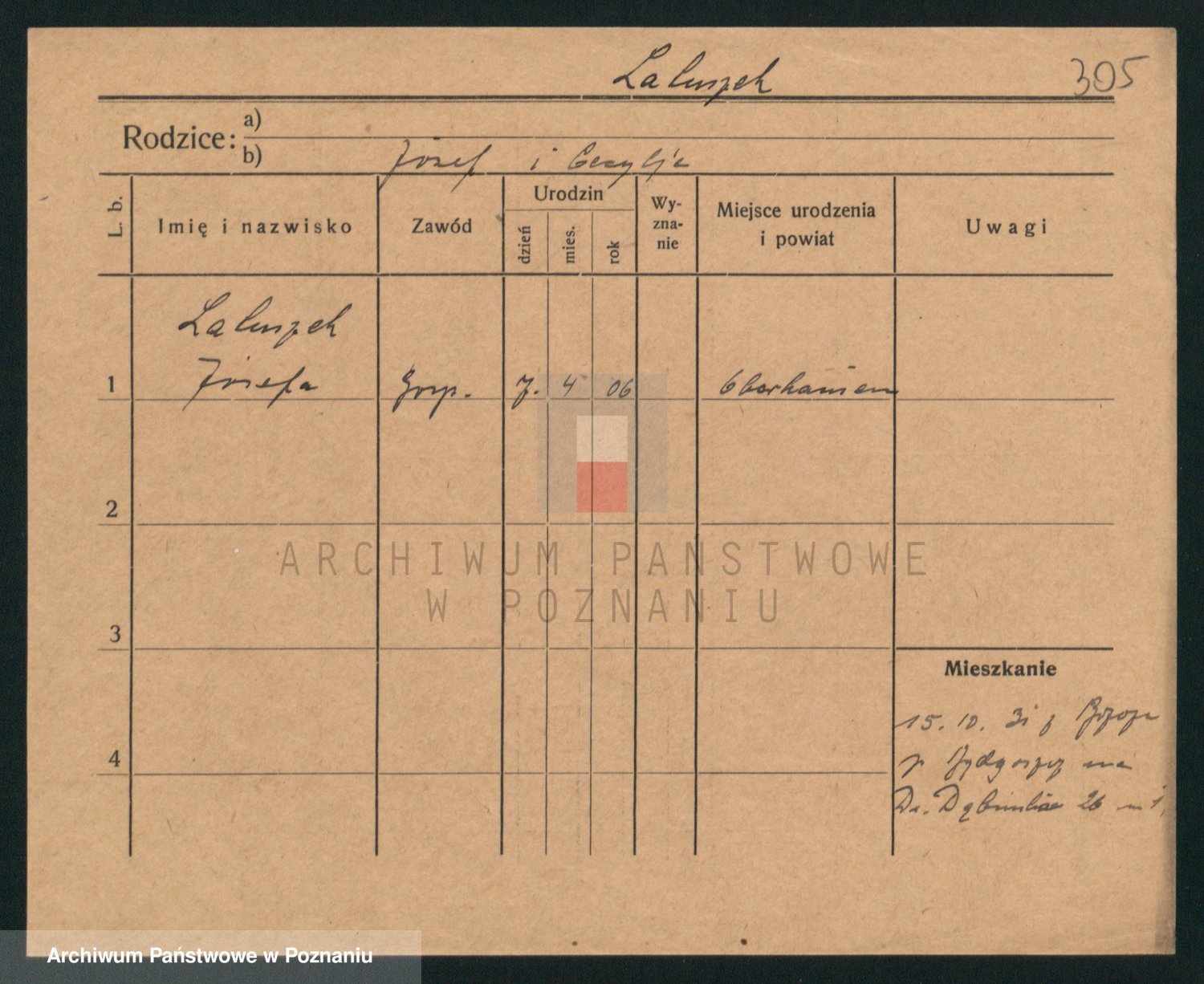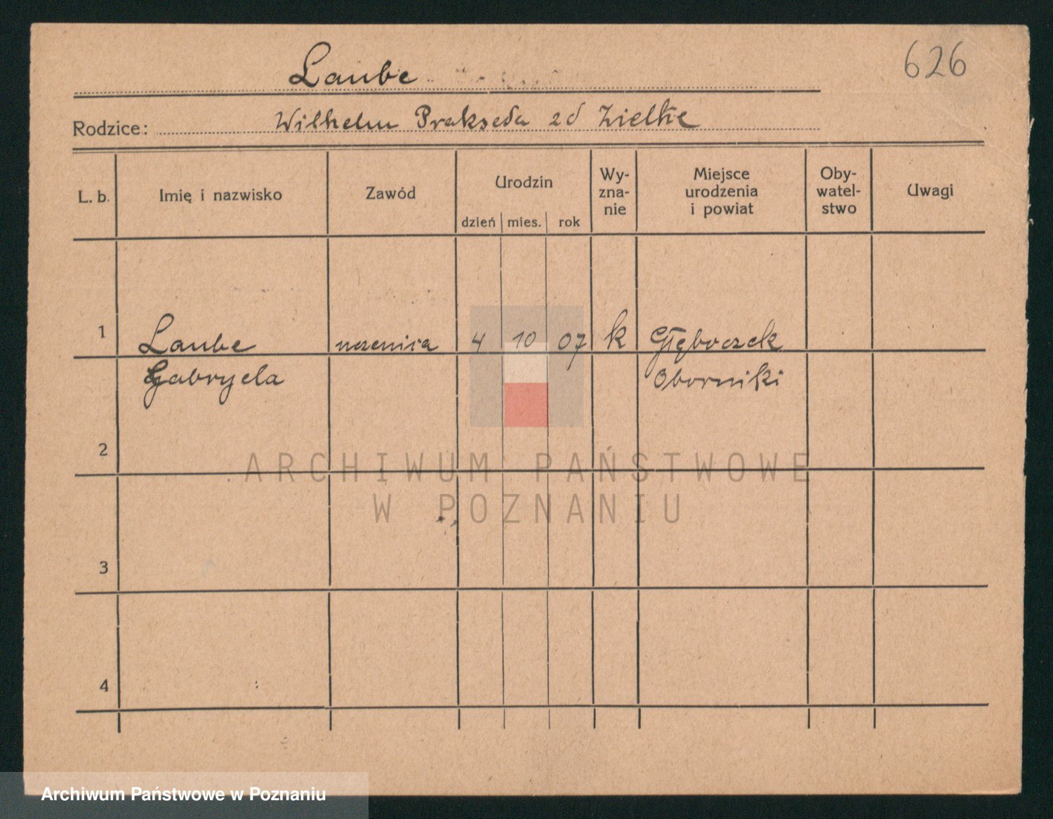 Podgląd karty osobowej dostępny jest po kliknięciu na nazwisko lub ikonkę karty. Można dokonywać powiększenia (ikony na górze) lub przechodzić między kolejnymi skanami (strzałki po bokach).