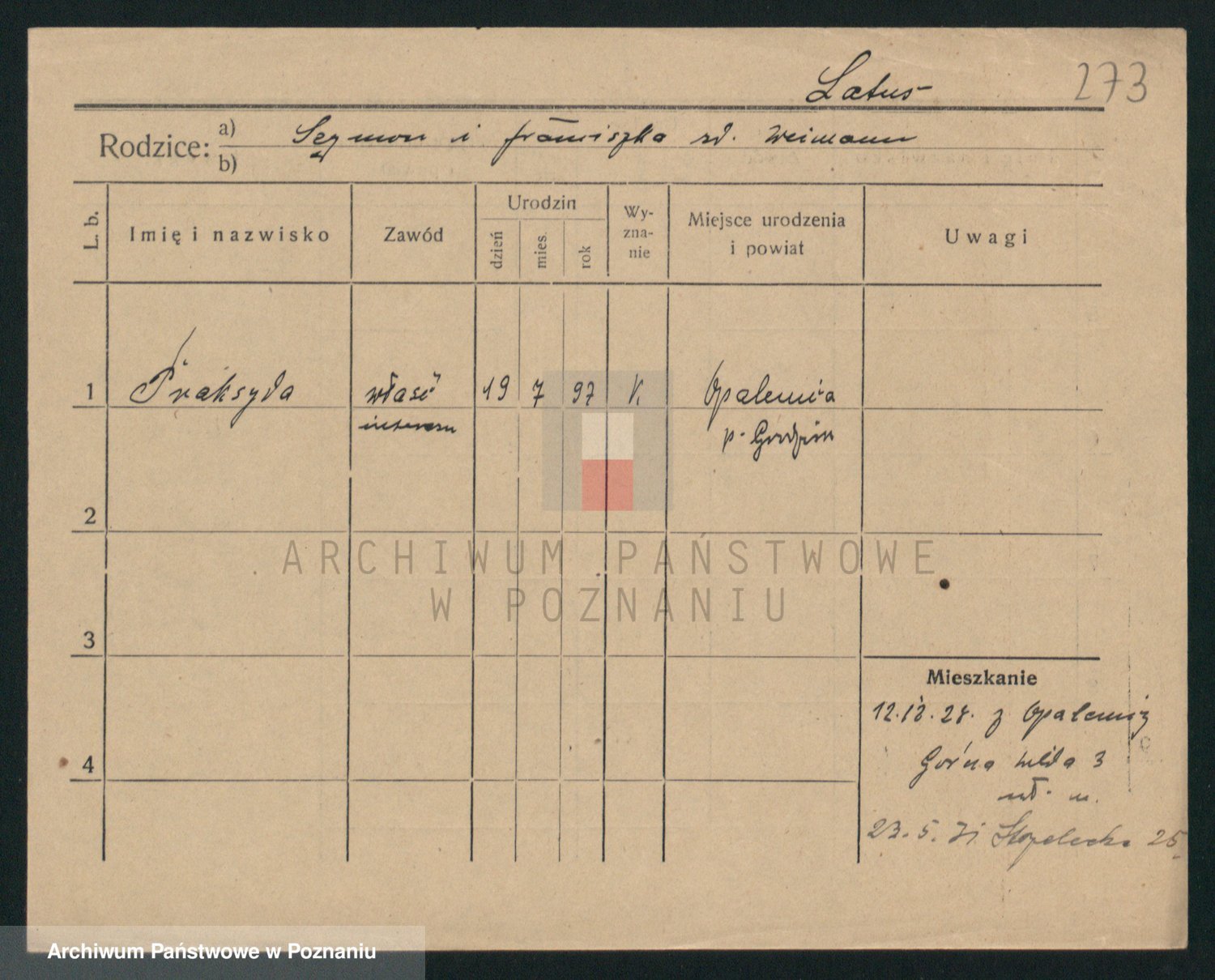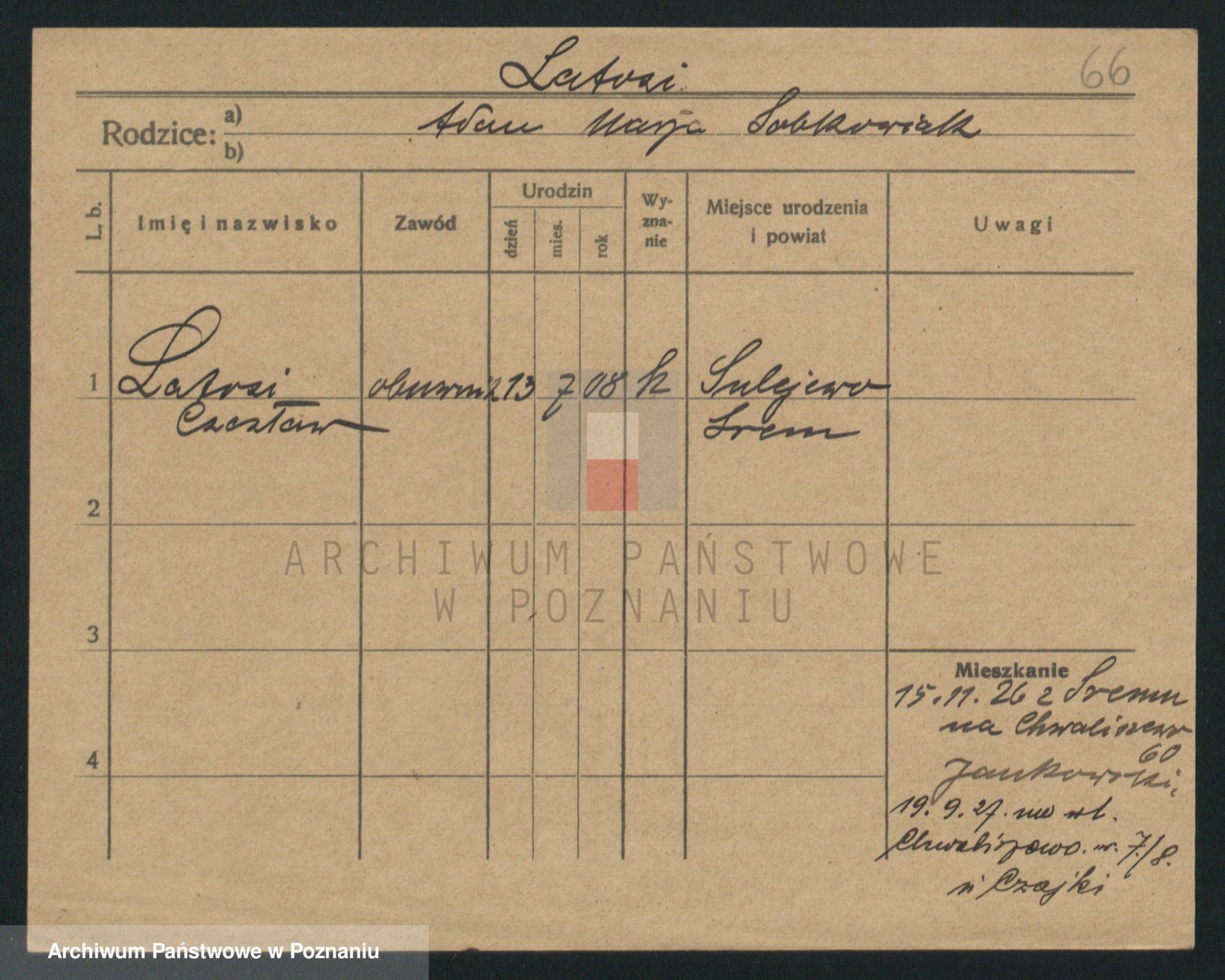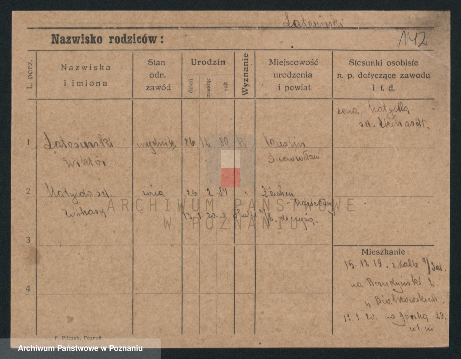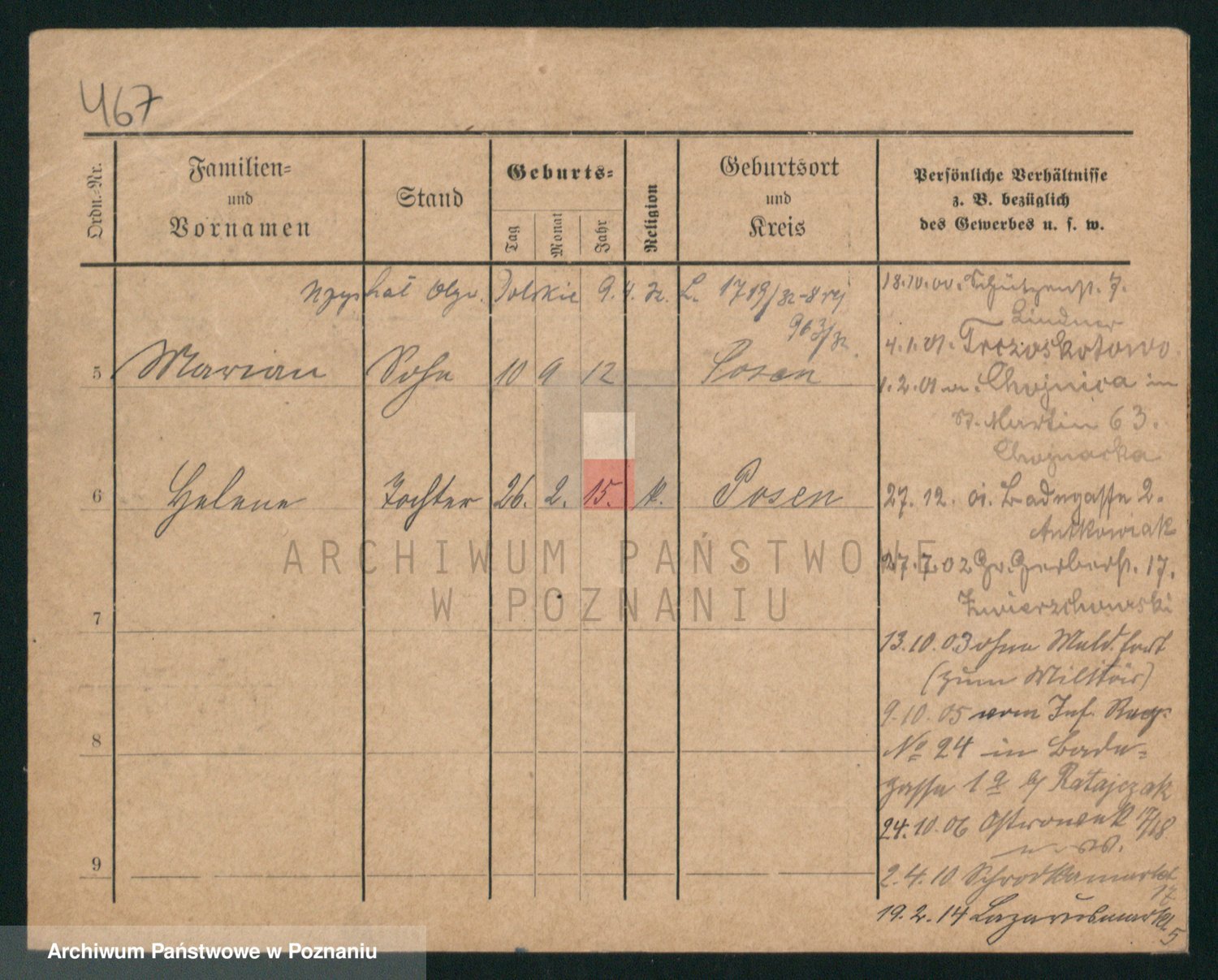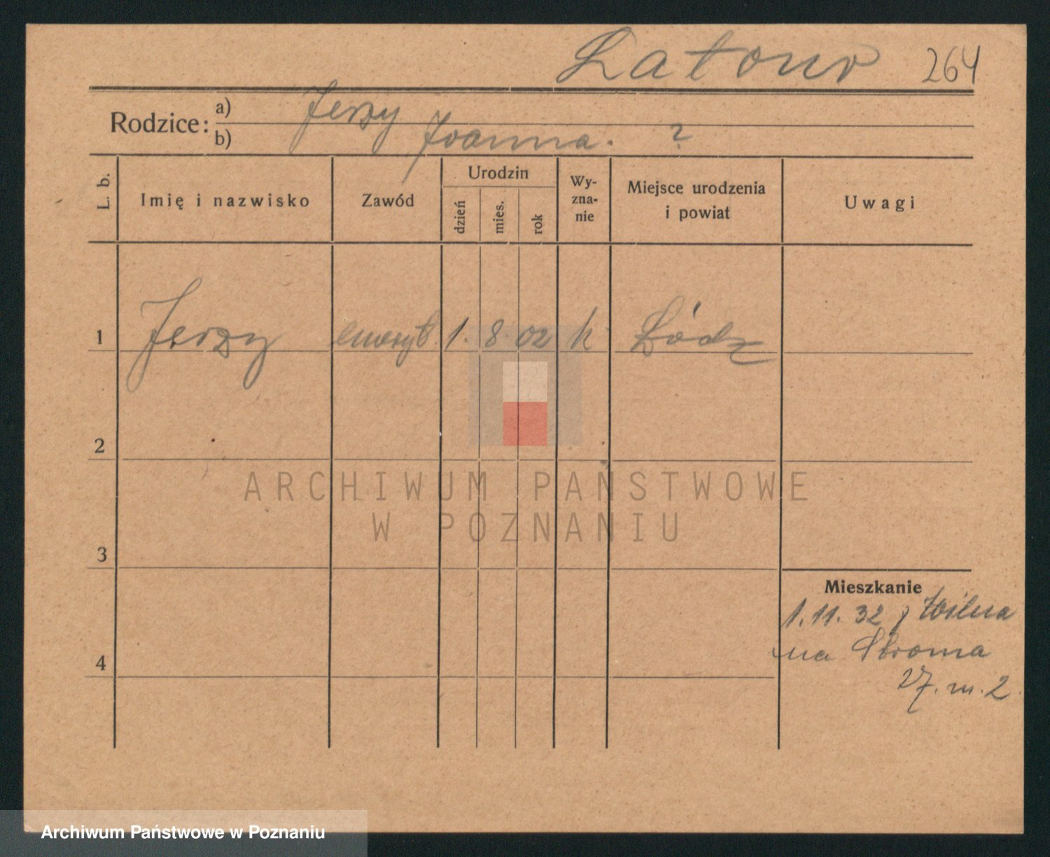 Podgląd karty osobowej dostępny jest po kliknięciu na nazwisko lub ikonkę karty. Można dokonywać powiększenia (ikony na górze) lub przechodzić między kolejnymi skanami (strzałki po bokach).