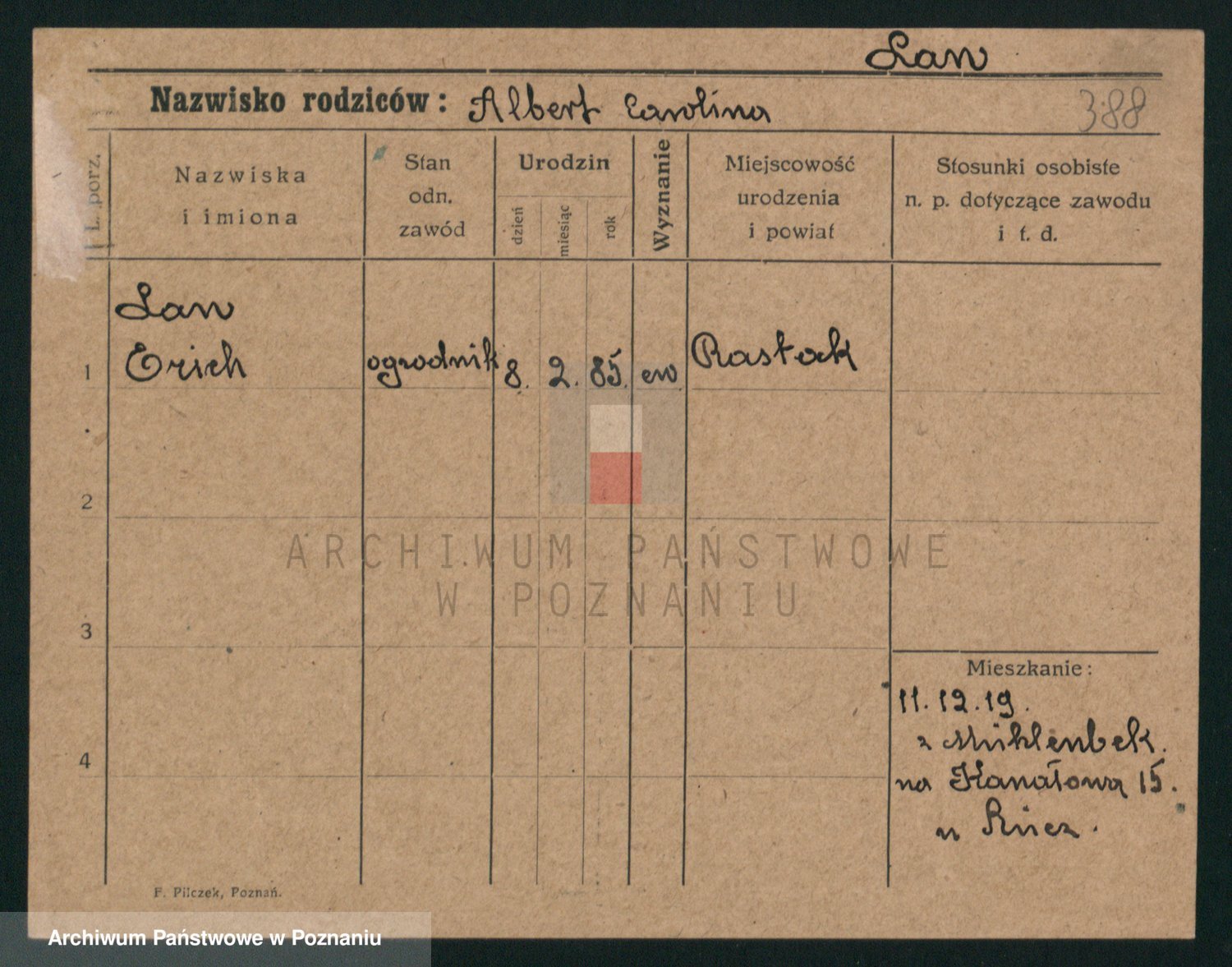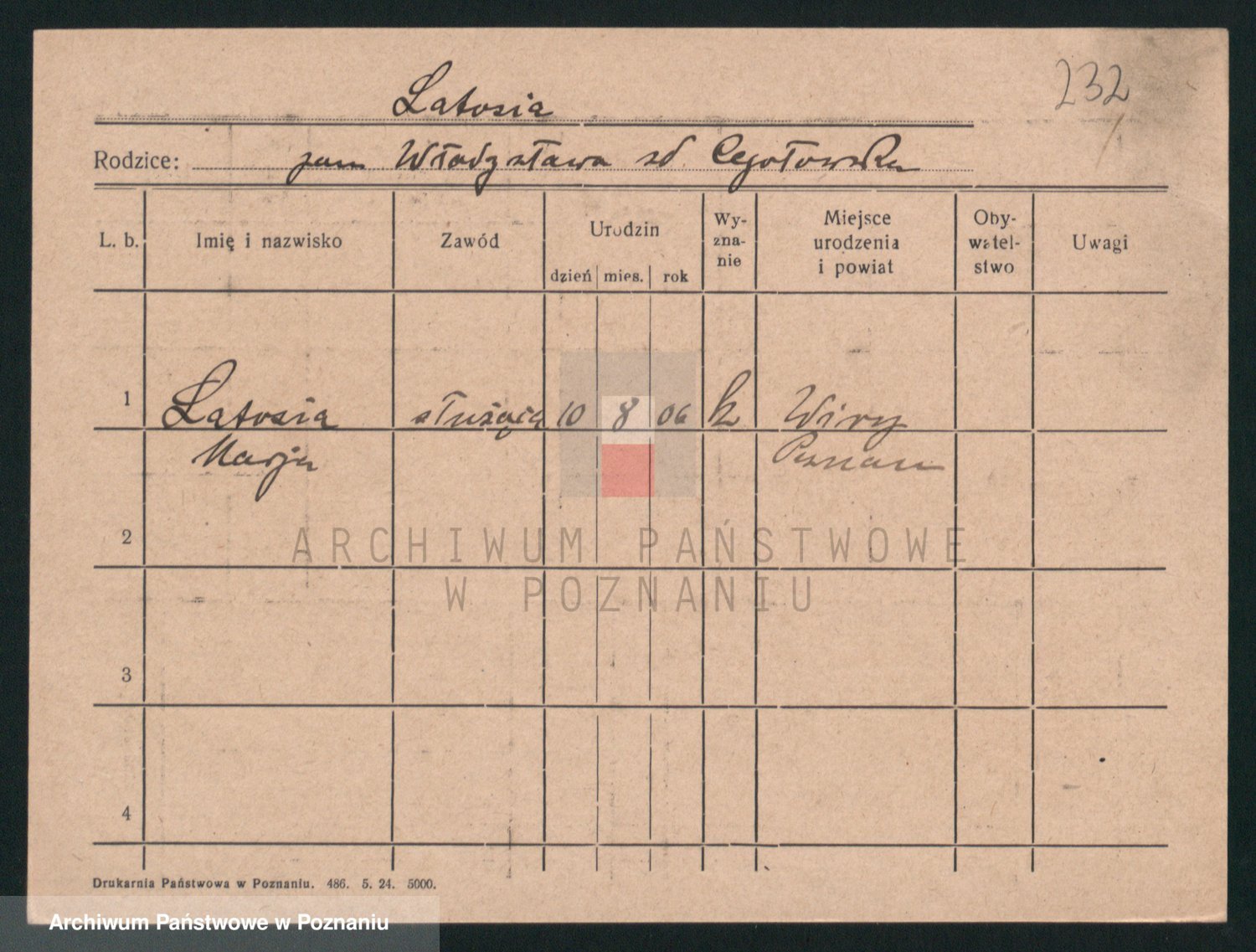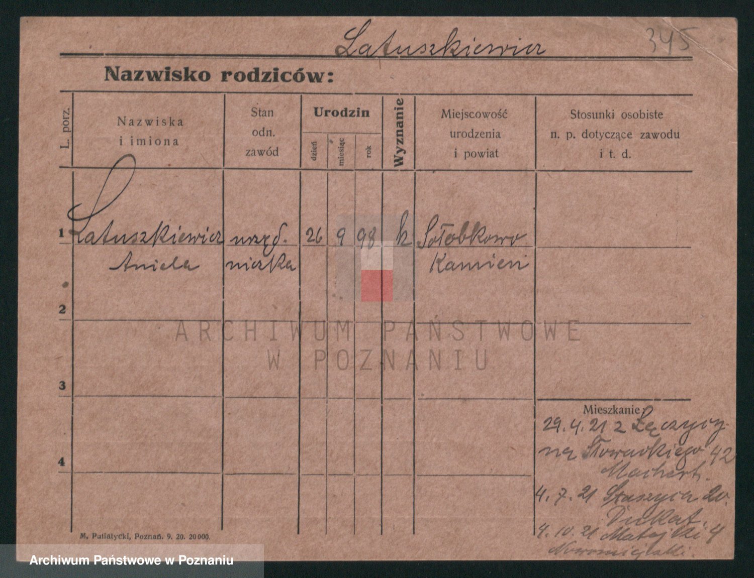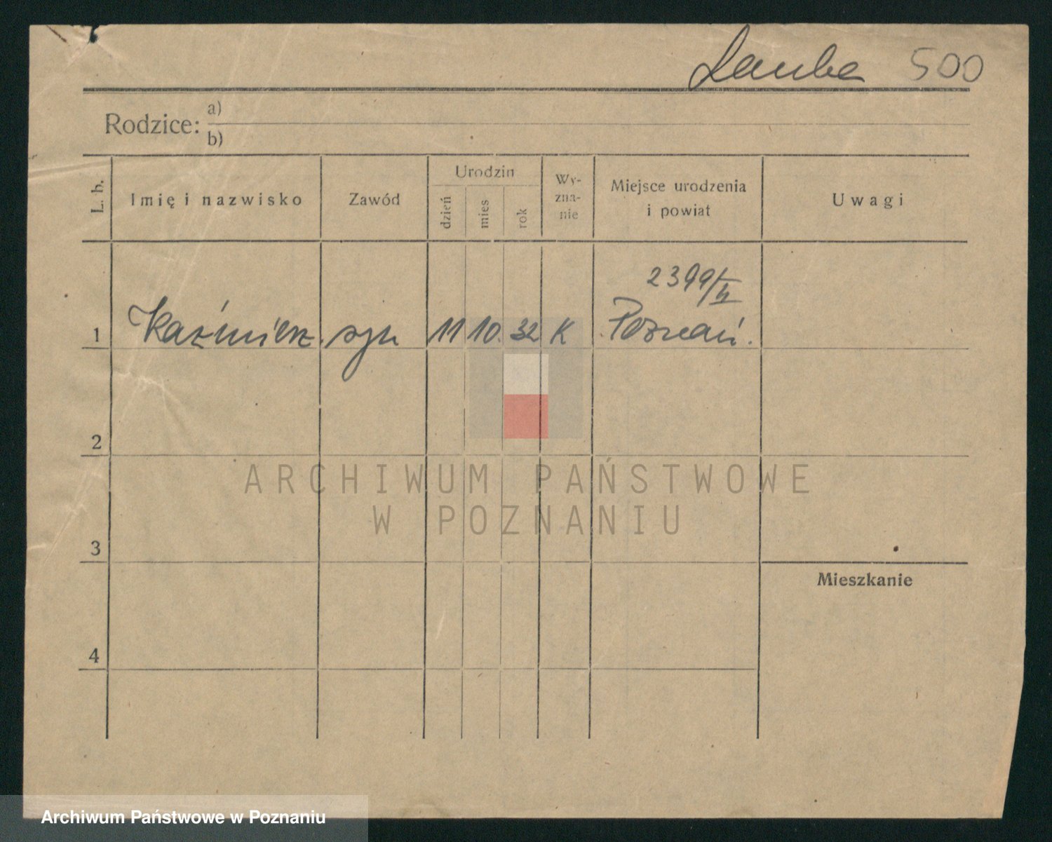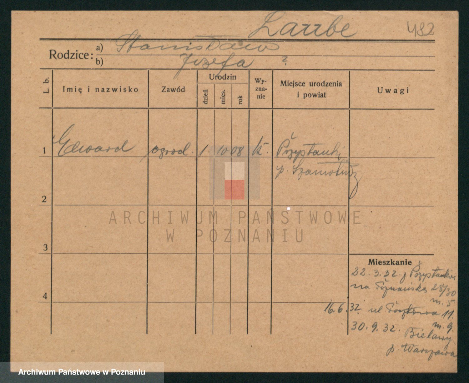 Podgląd karty osobowej dostępny jest po kliknięciu na nazwisko lub ikonkę karty. Można dokonywać powiększenia (ikony na górze) lub przechodzić między kolejnymi skanami (strzałki po bokach).