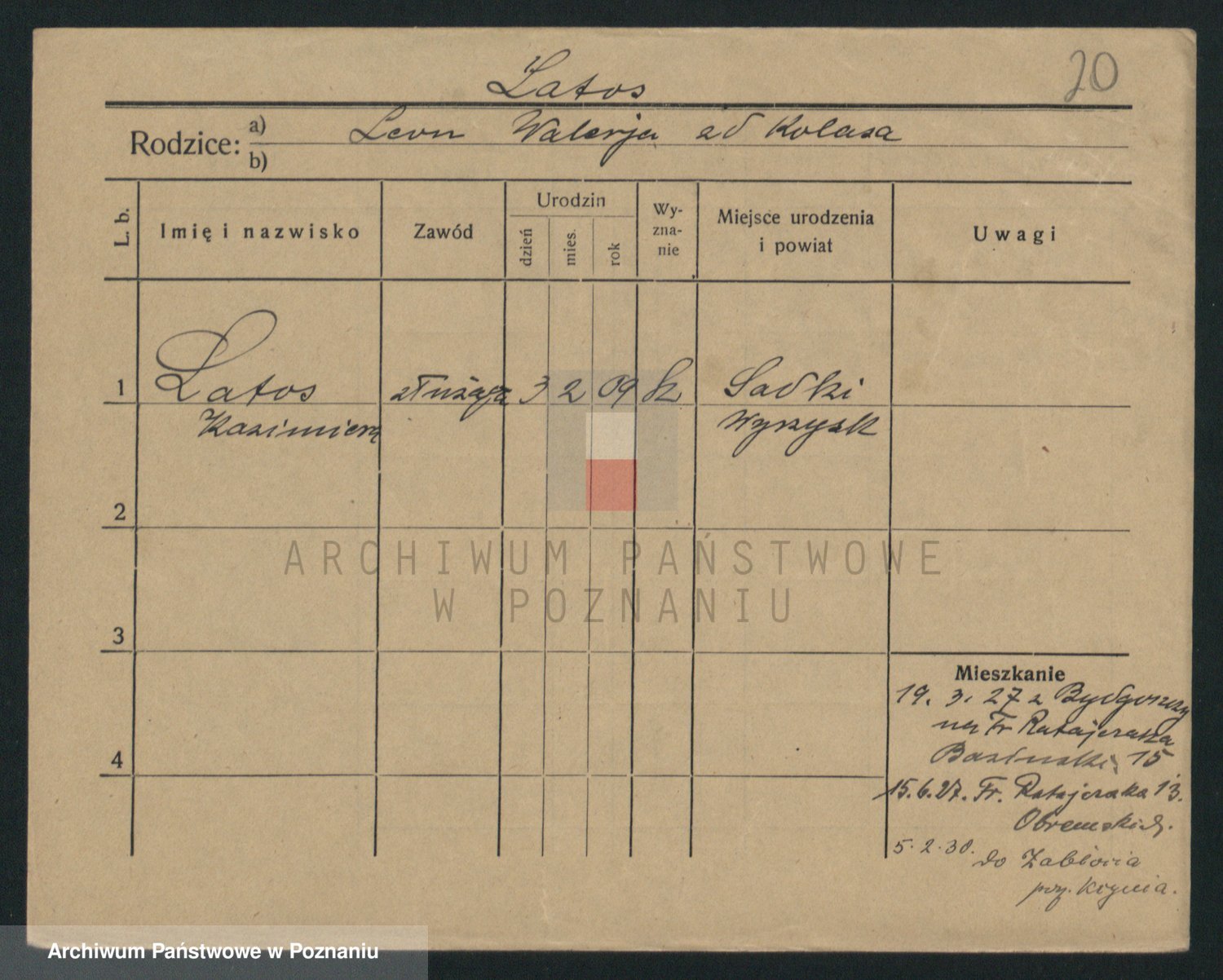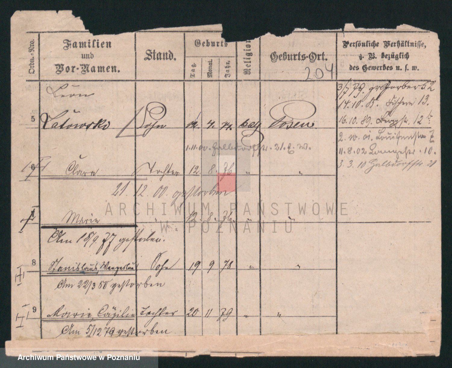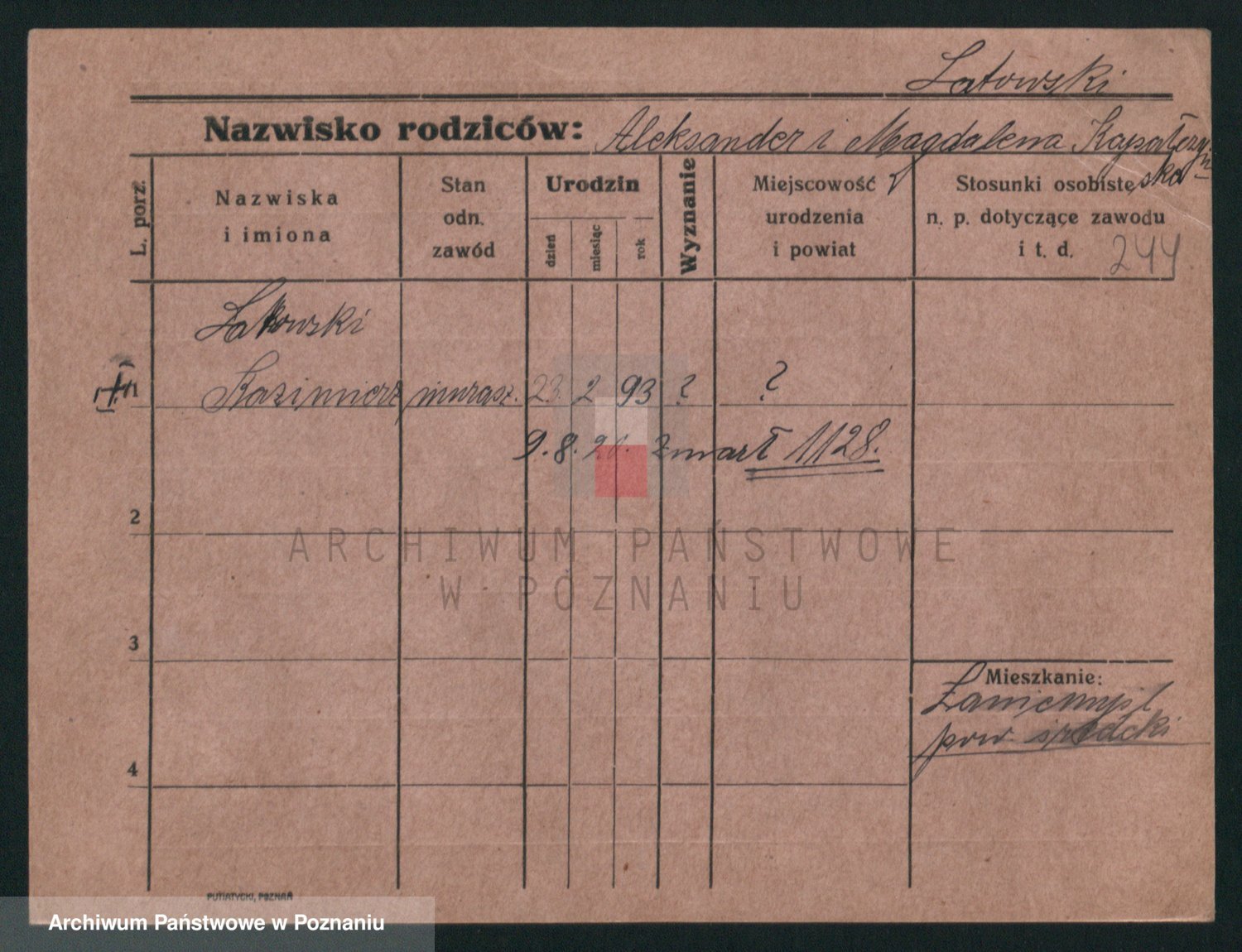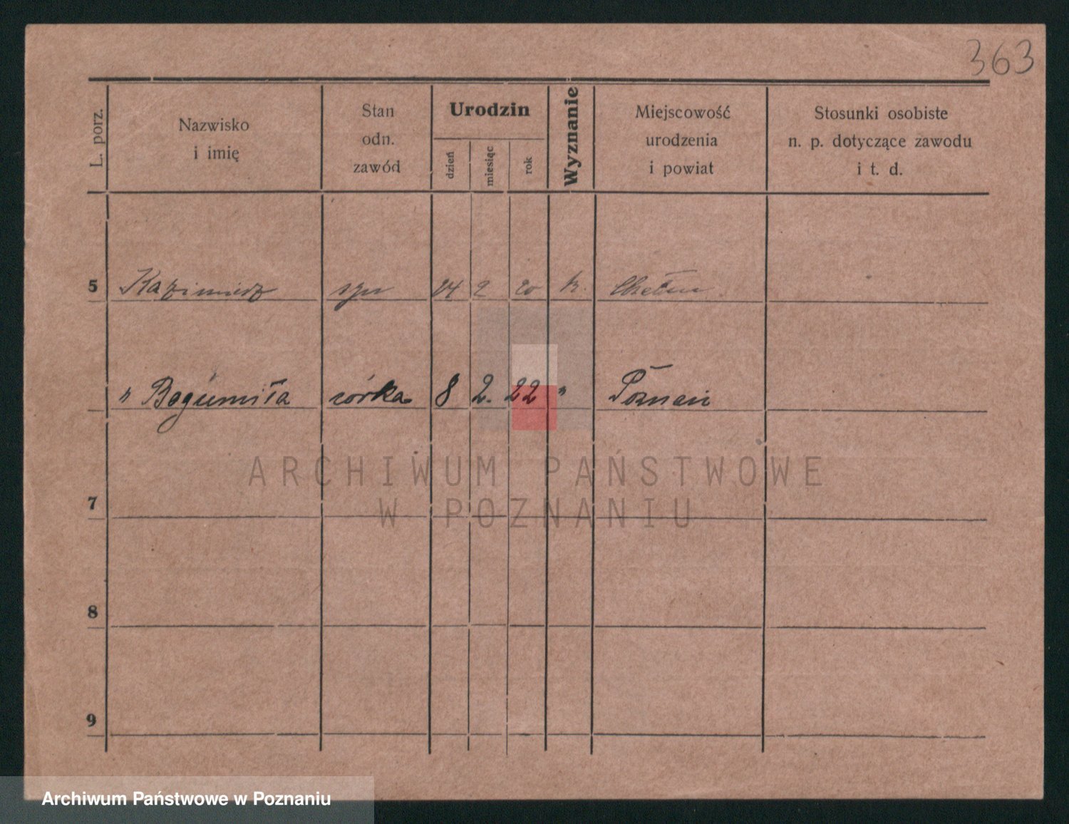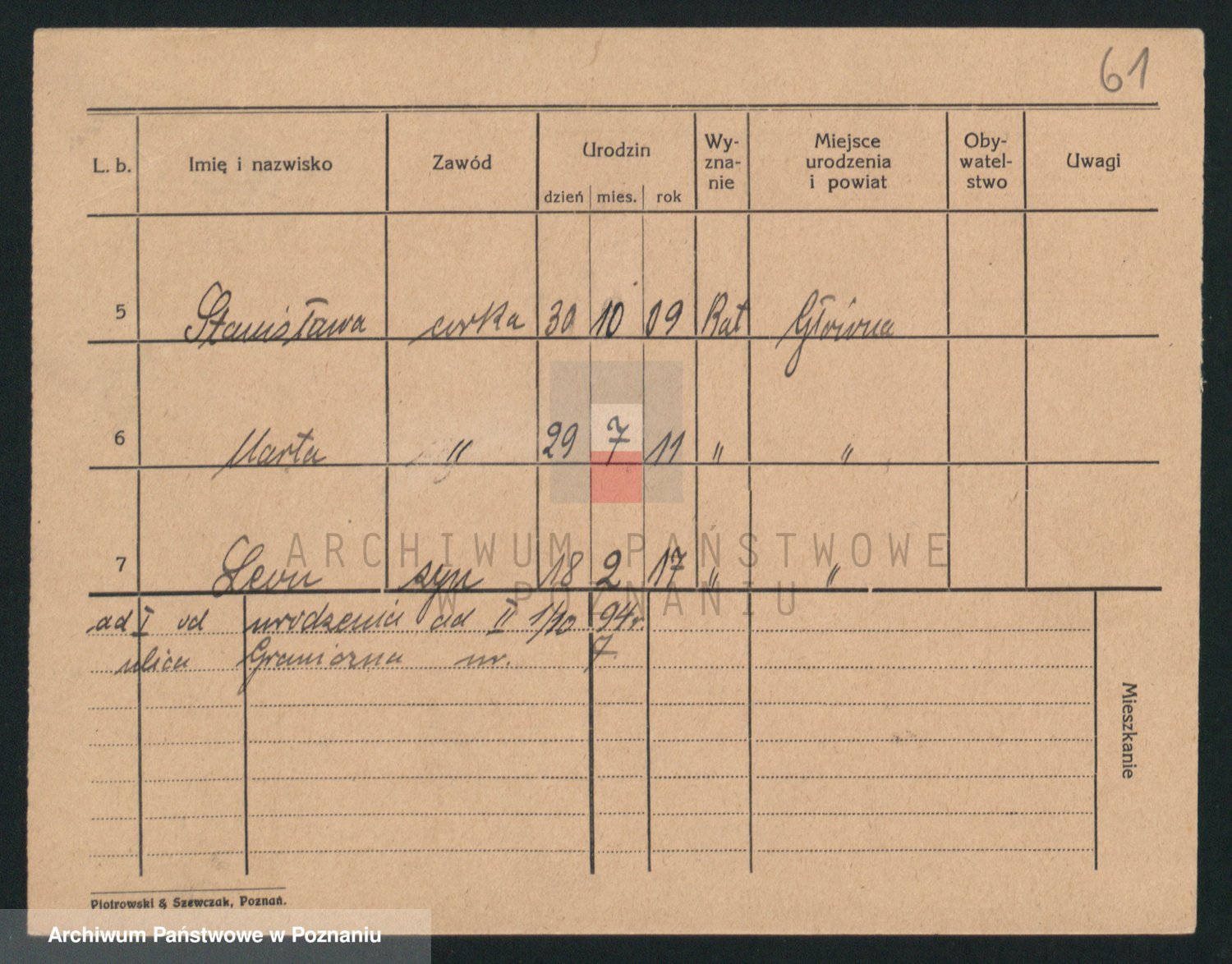 Podgląd karty osobowej dostępny jest po kliknięciu na nazwisko lub ikonkę karty. Można dokonywać powiększenia (ikony na górze) lub przechodzić między kolejnymi skanami (strzałki po bokach).