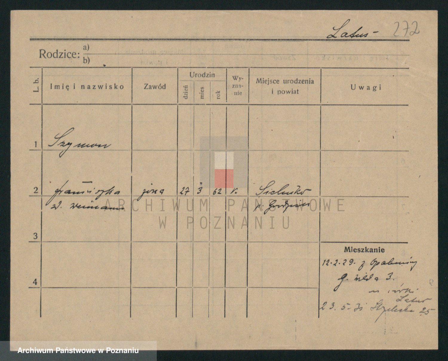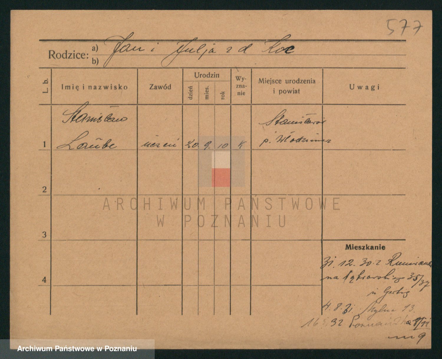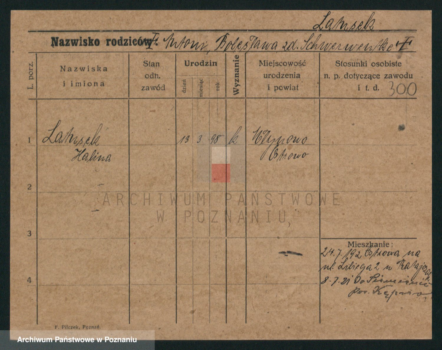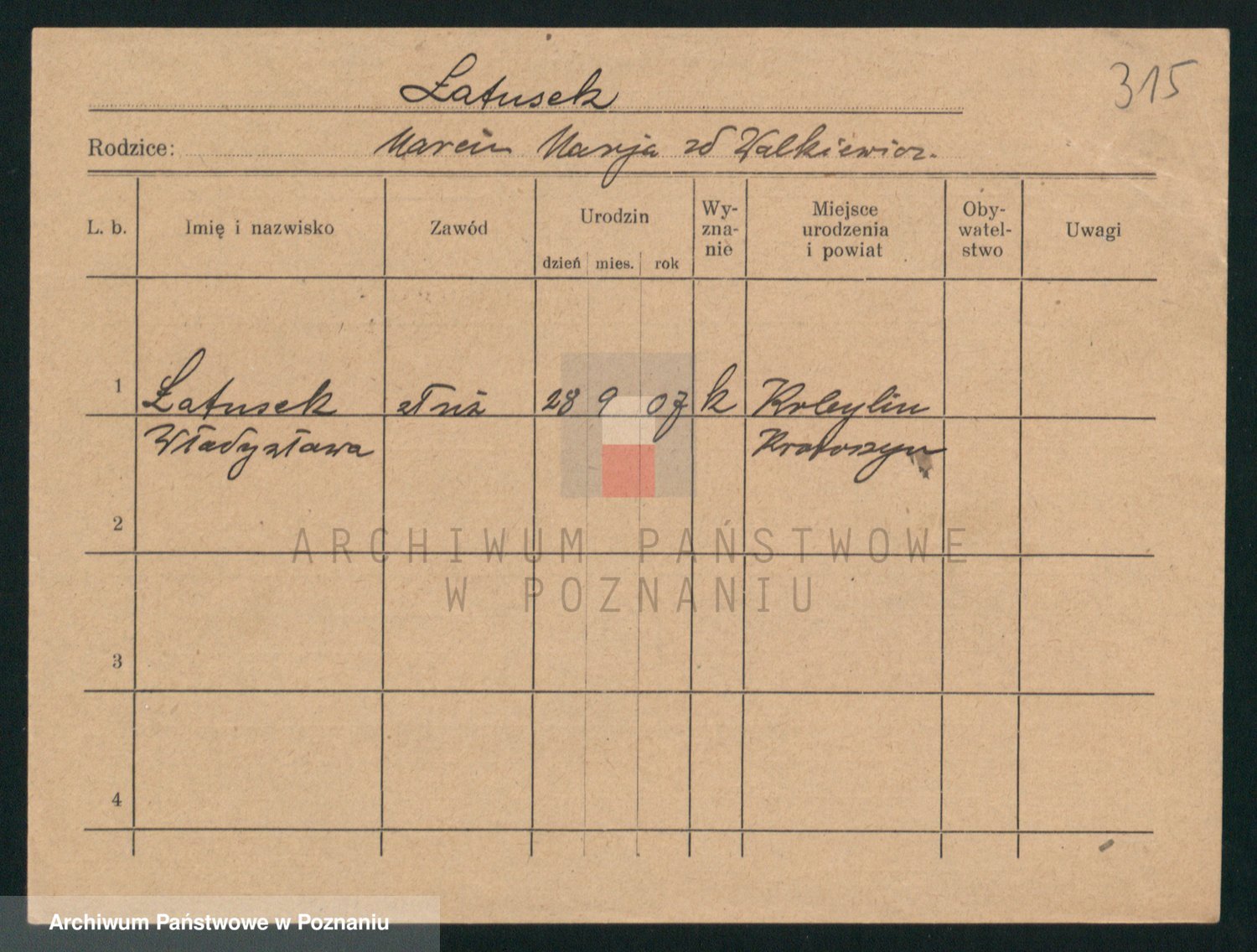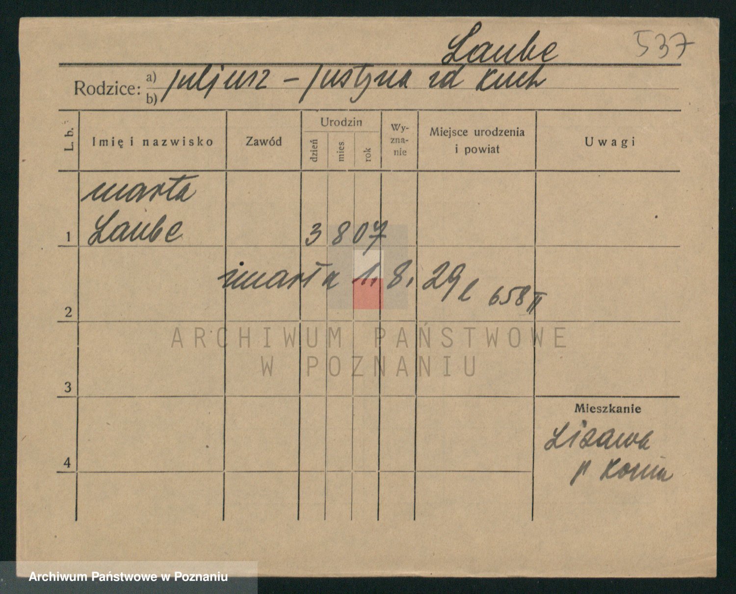 Podgląd karty osobowej dostępny jest po kliknięciu na nazwisko lub ikonkę karty. Można dokonywać powiększenia (ikony na górze) lub przechodzić między kolejnymi skanami (strzałki po bokach).
