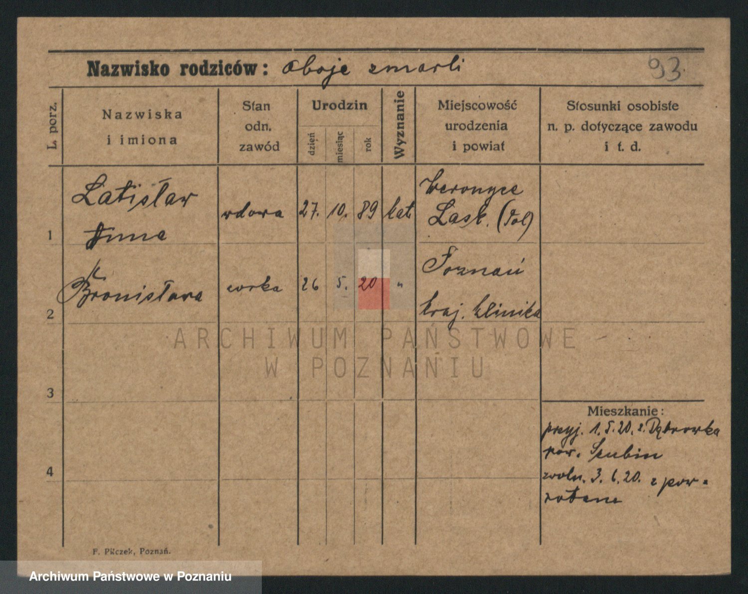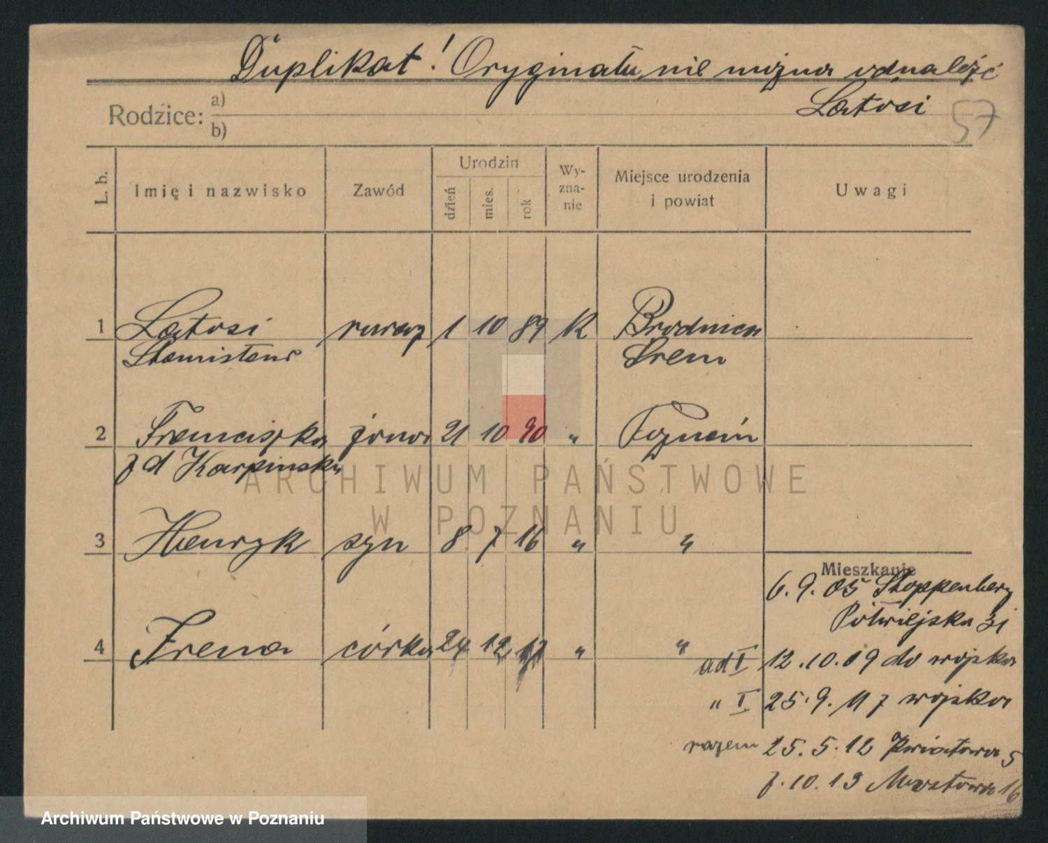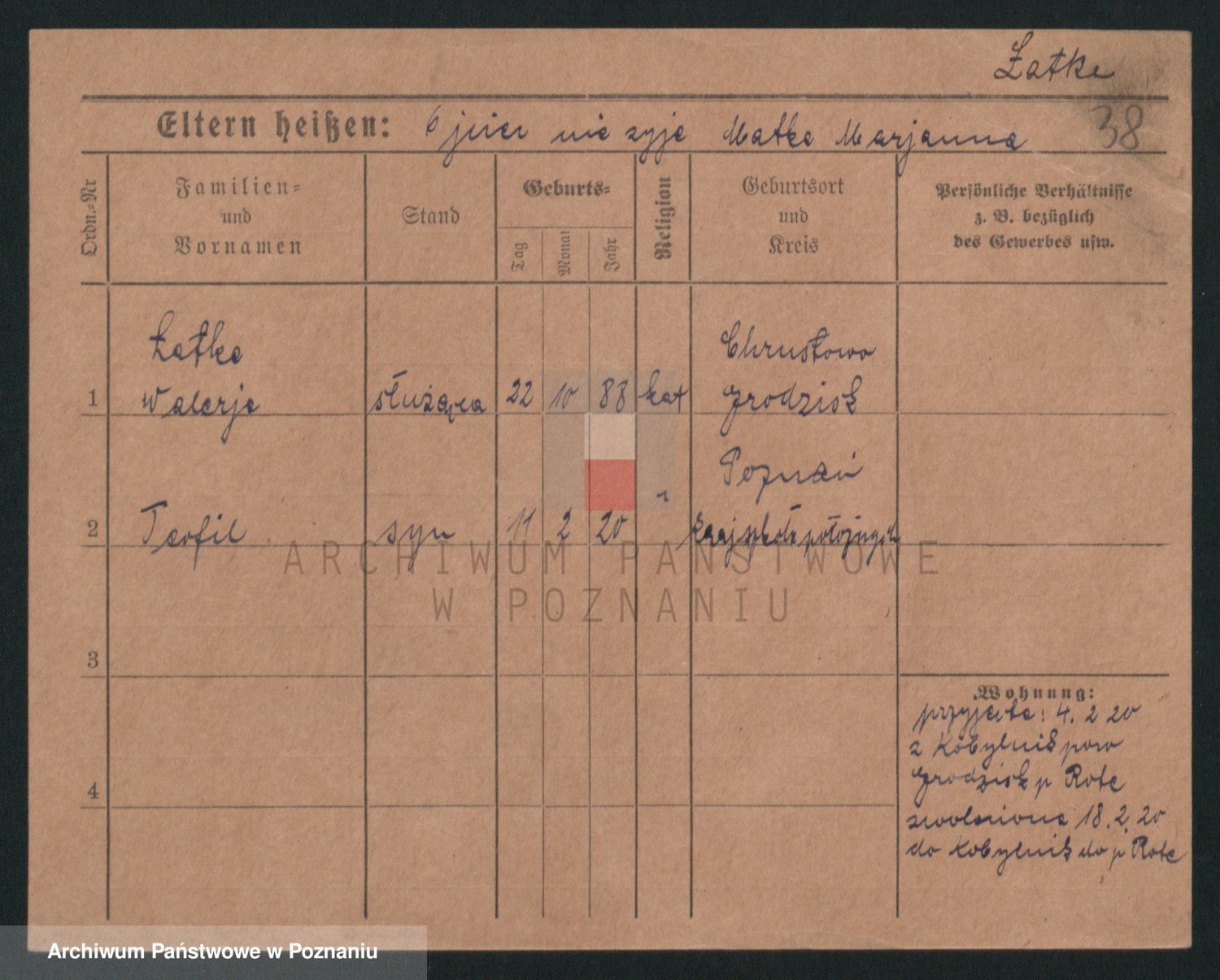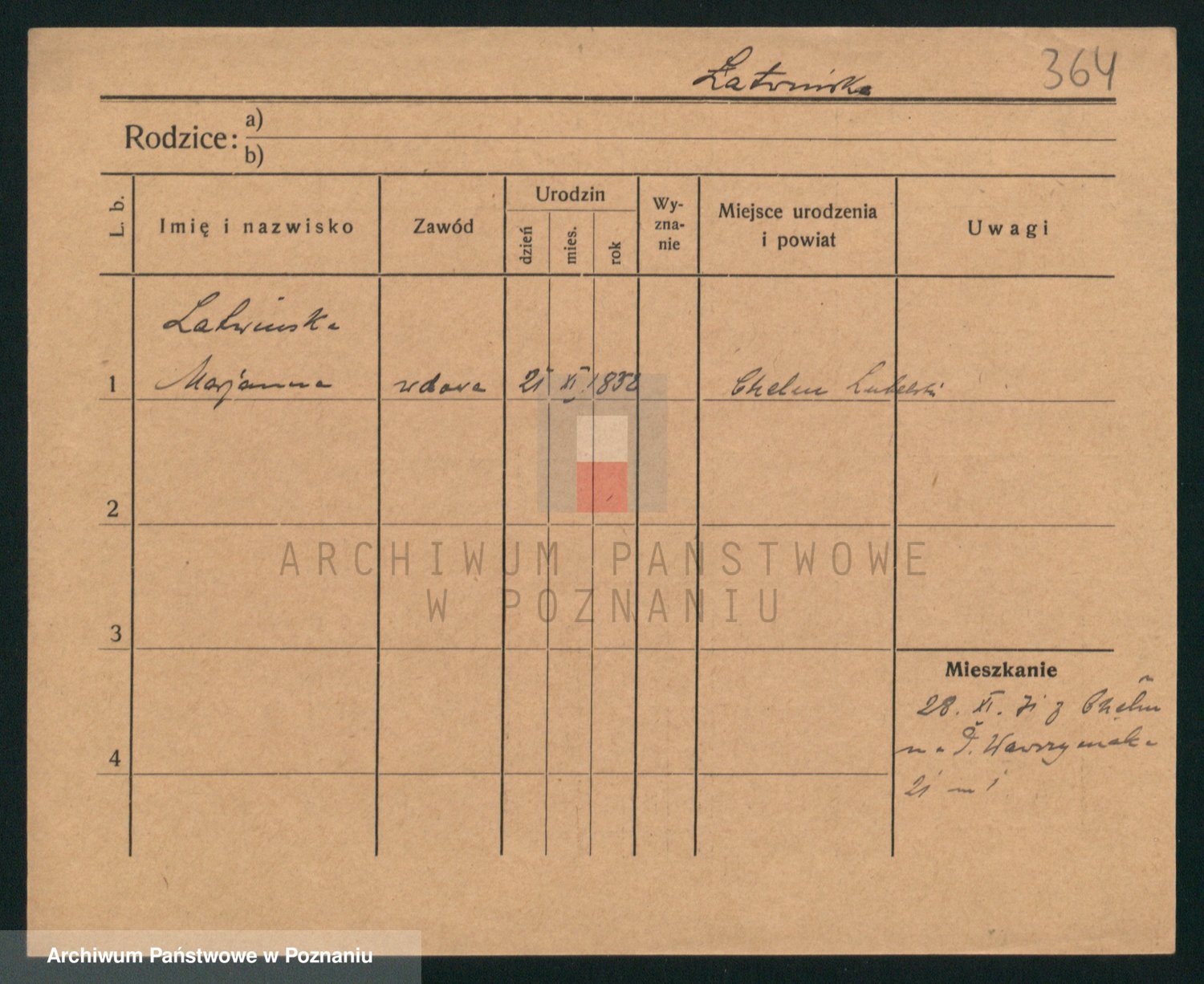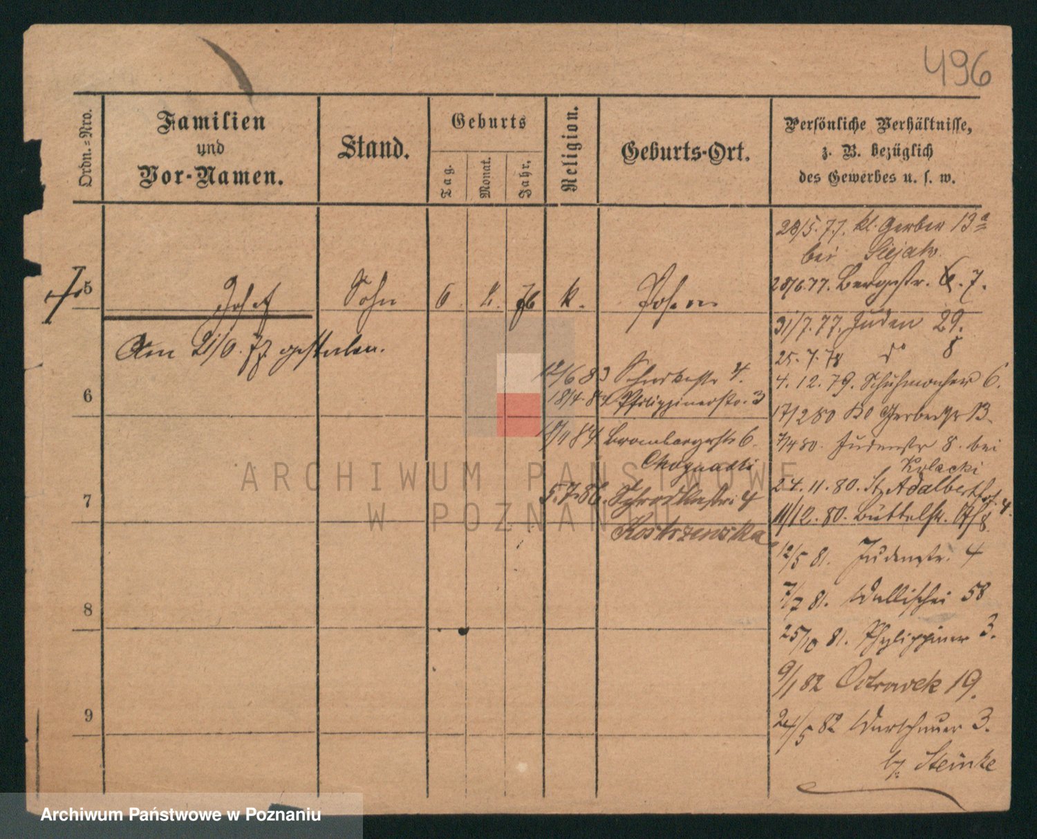 Podgląd karty osobowej dostępny jest po kliknięciu na nazwisko lub ikonkę karty. Można dokonywać powiększenia (ikony na górze) lub przechodzić między kolejnymi skanami (strzałki po bokach).