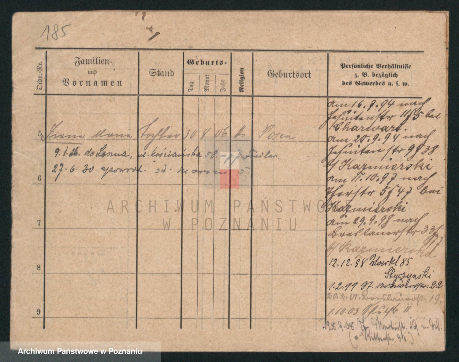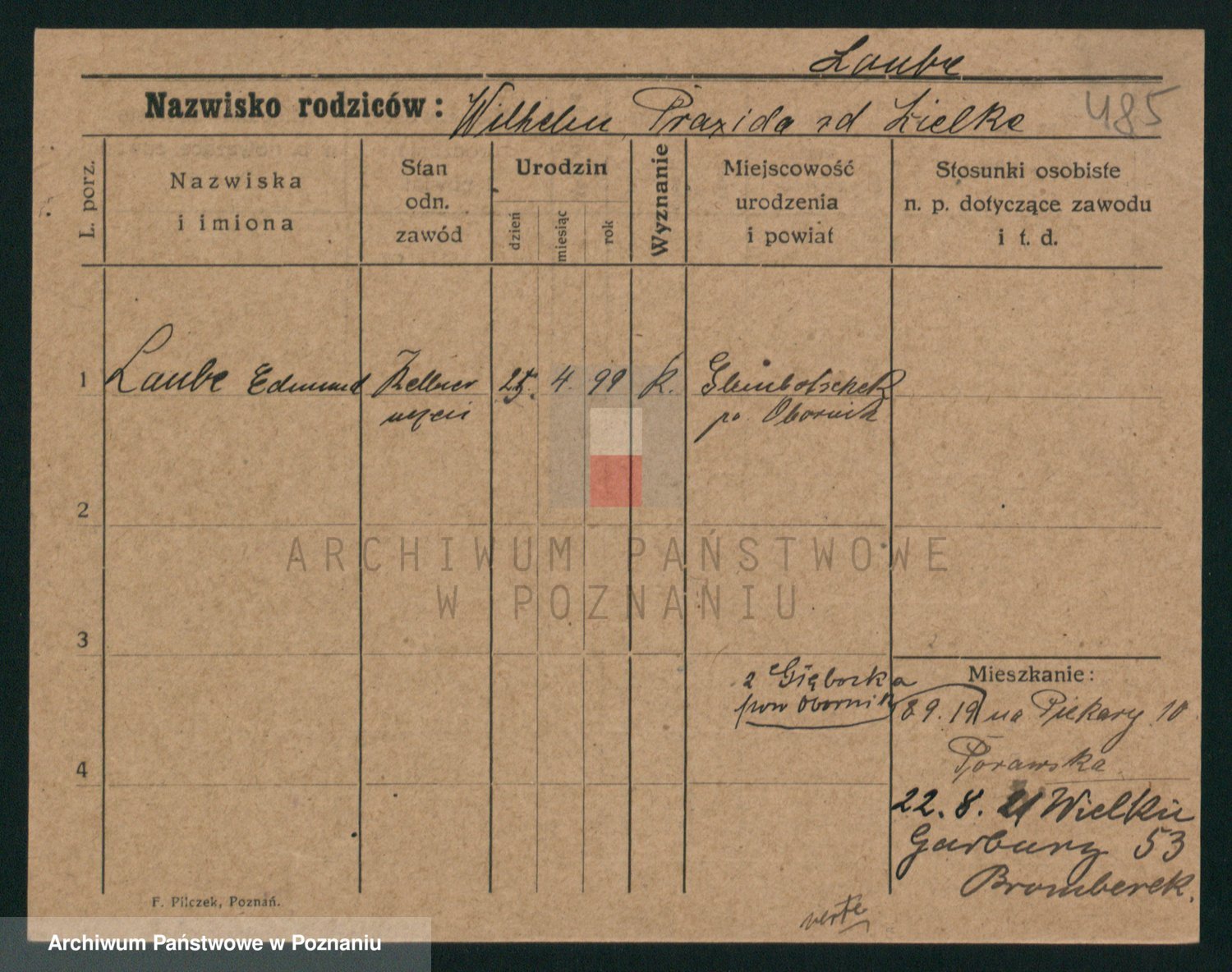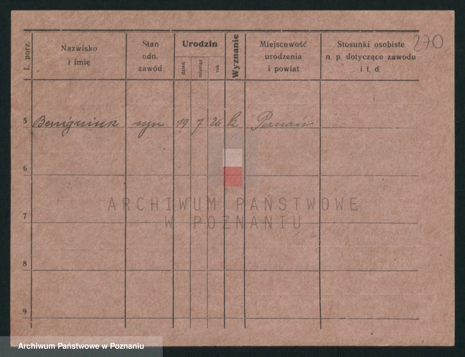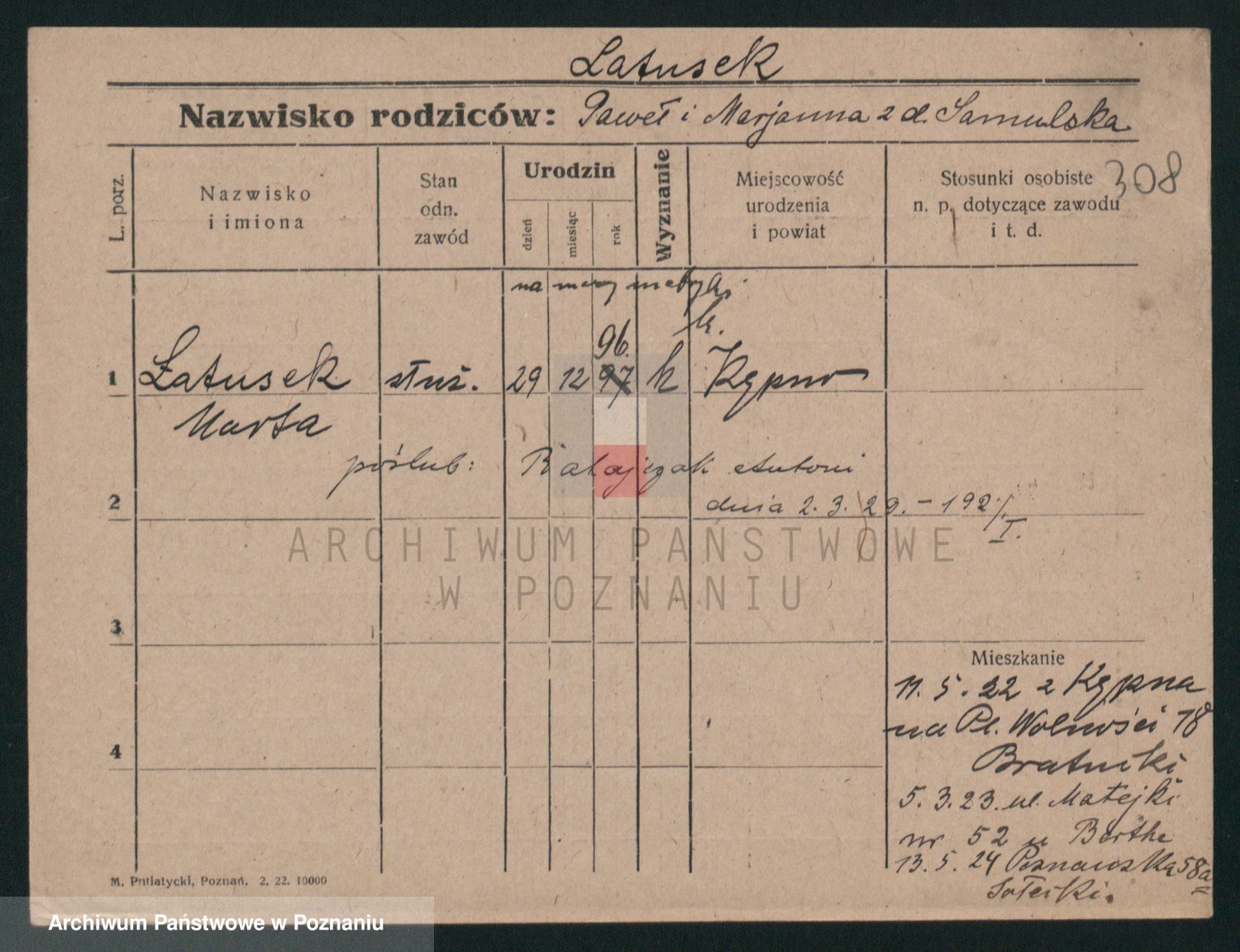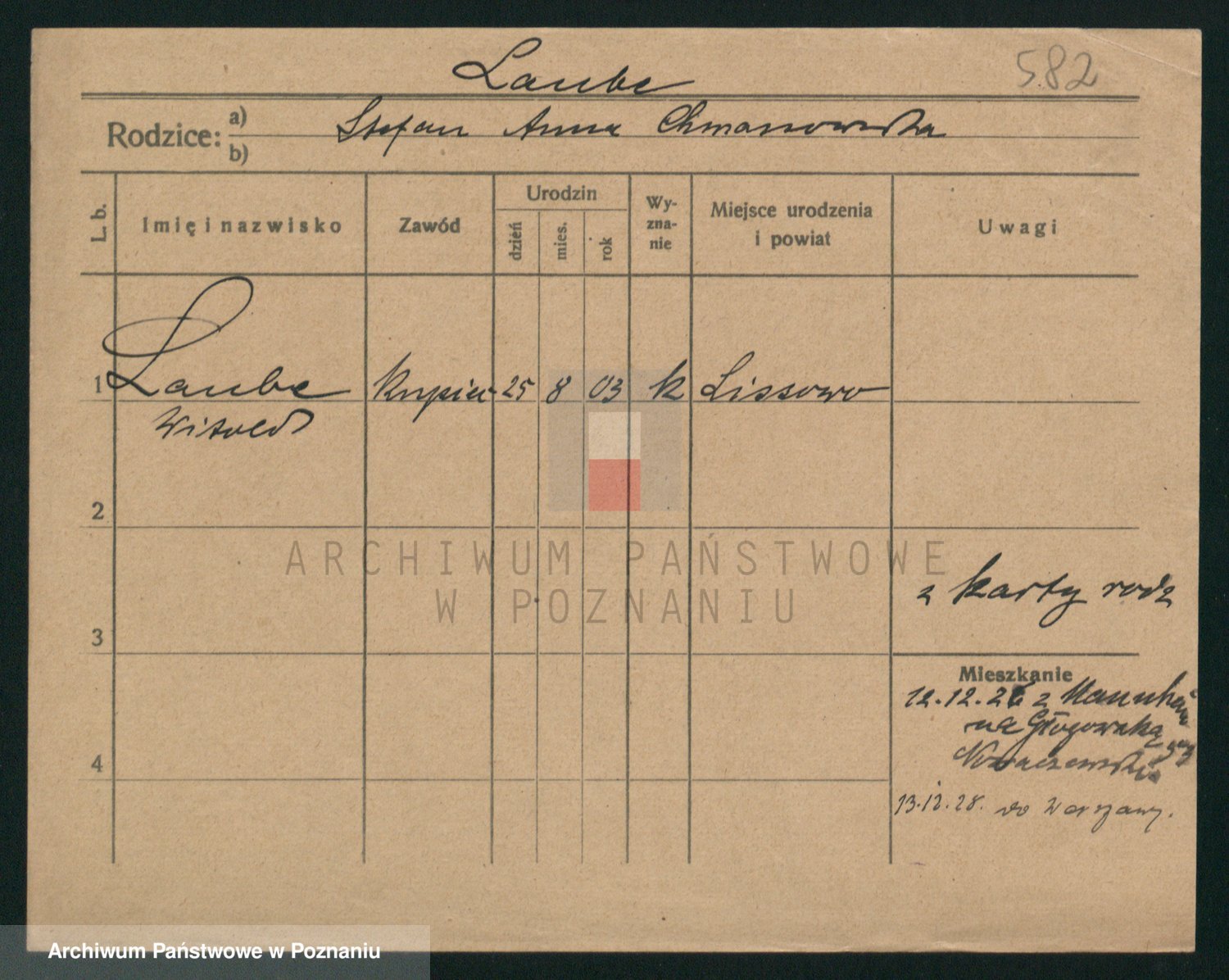 Podgląd karty osobowej dostępny jest po kliknięciu na nazwisko lub ikonkę karty. Można dokonywać powiększenia (ikony na górze) lub przechodzić między kolejnymi skanami (strzałki po bokach).