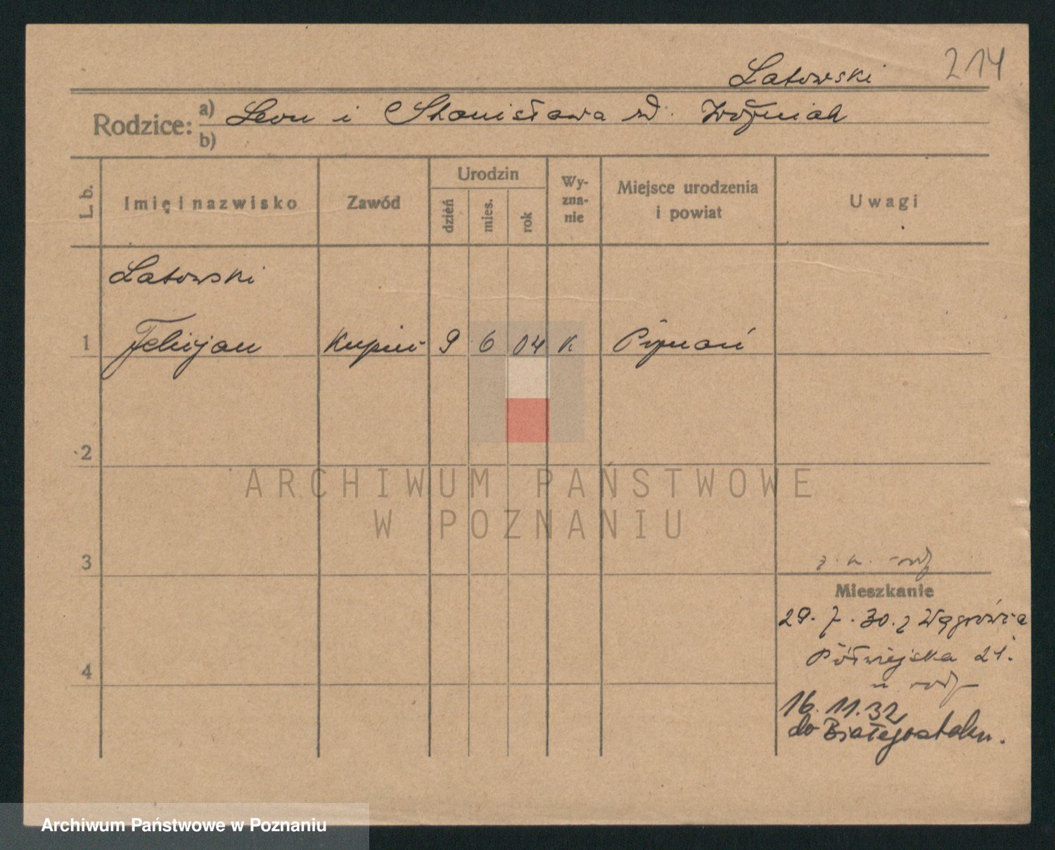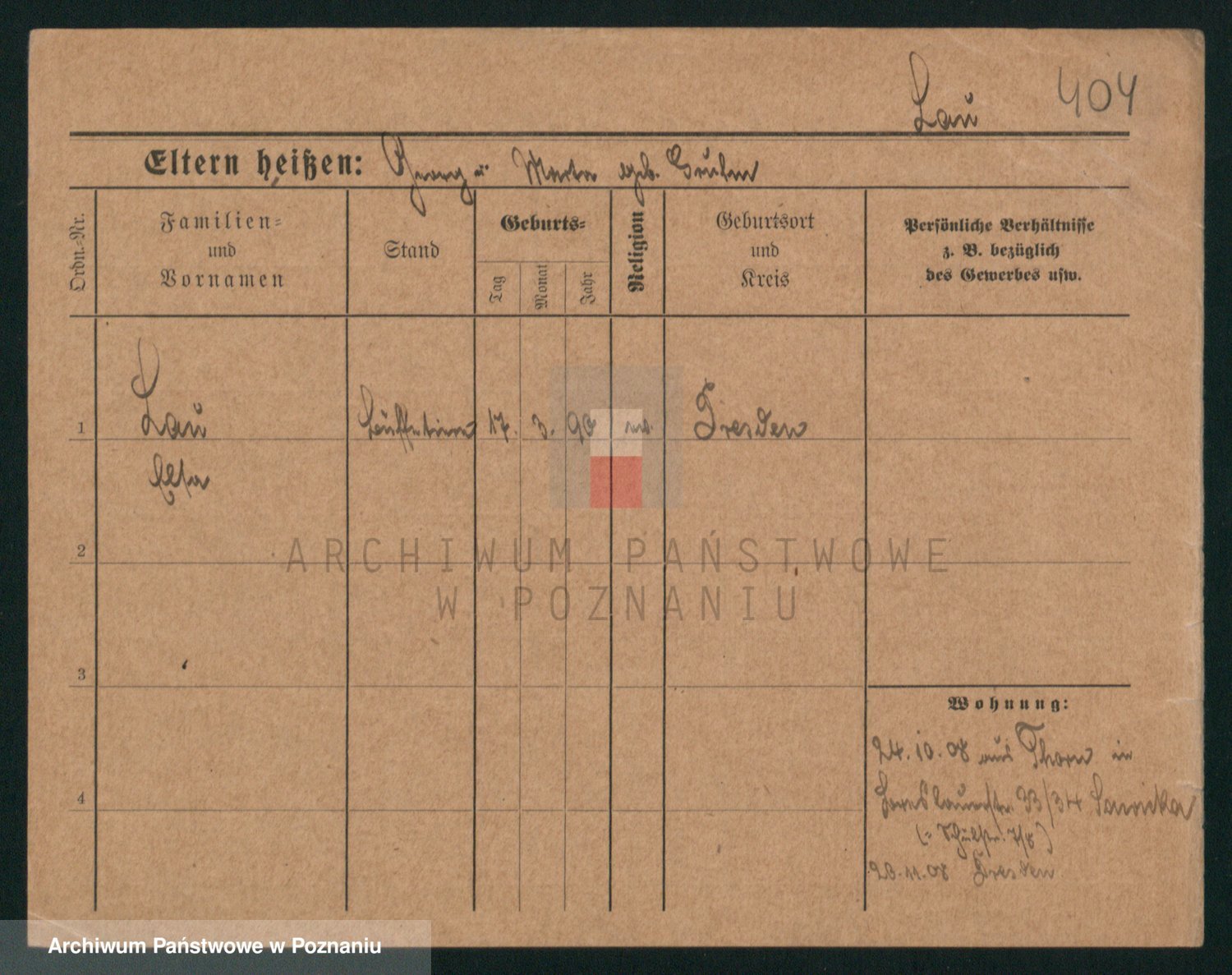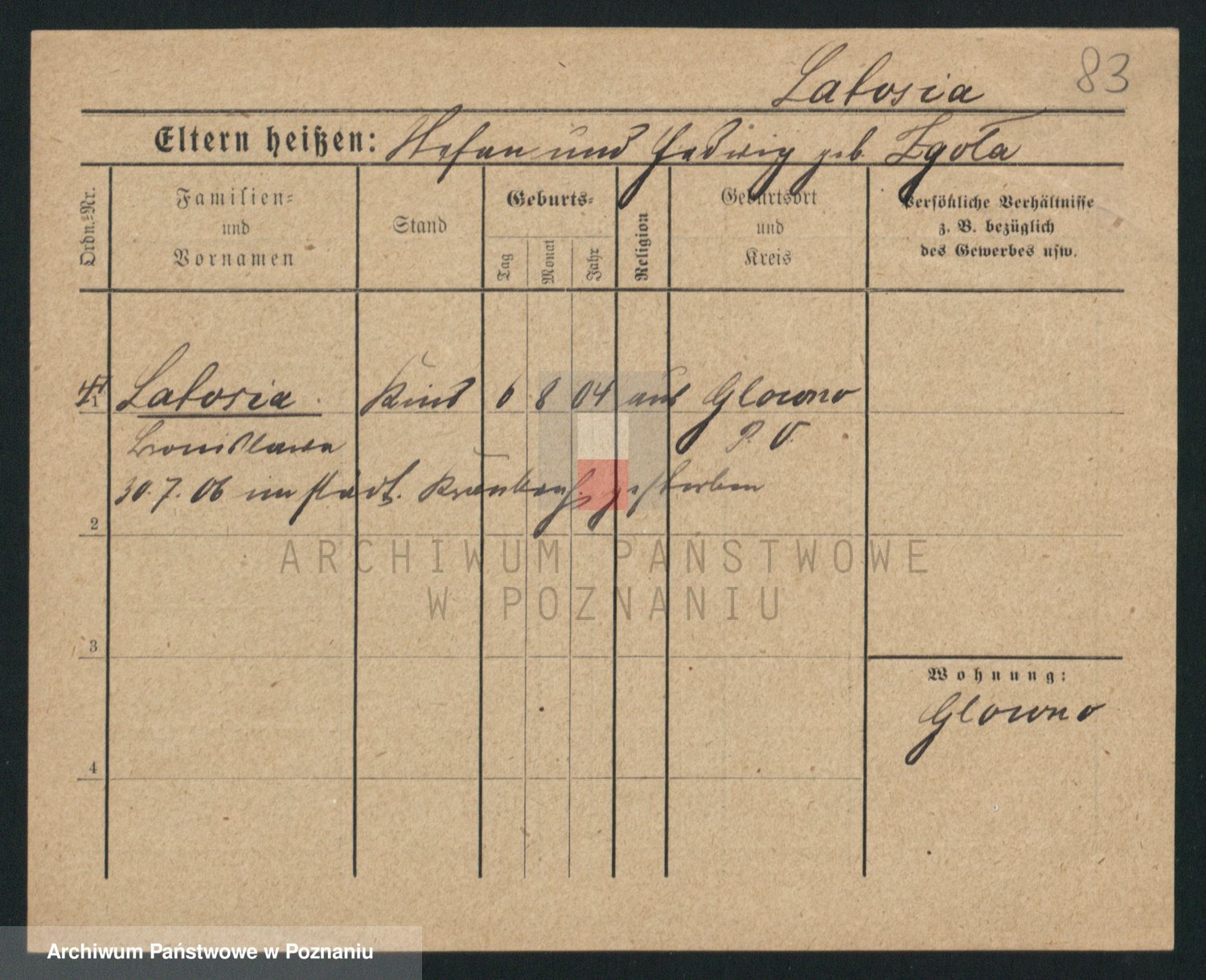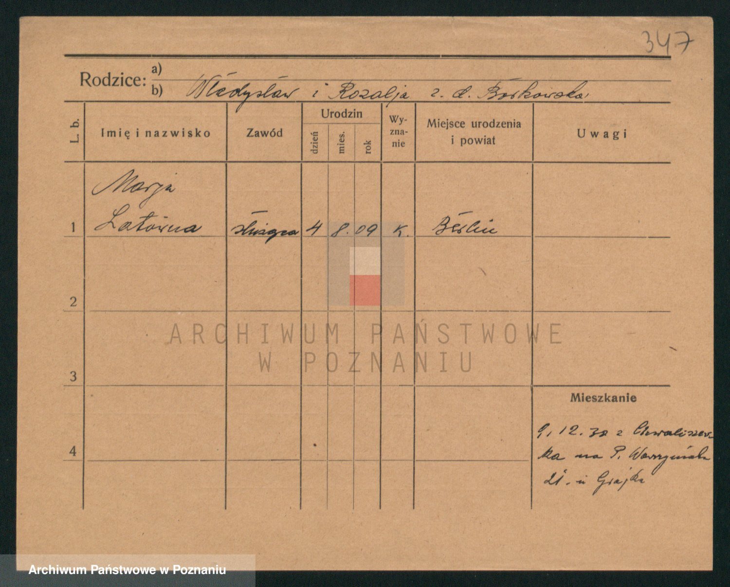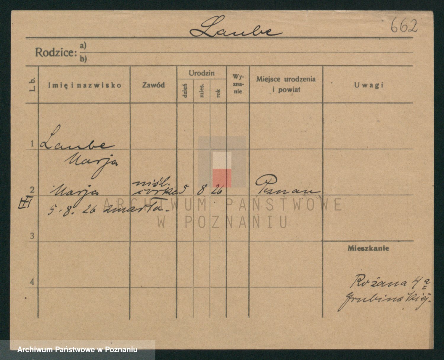 Podgląd karty osobowej dostępny jest po kliknięciu na nazwisko lub ikonkę karty. Można dokonywać powiększenia (ikony na górze) lub przechodzić między kolejnymi skanami (strzałki po bokach).