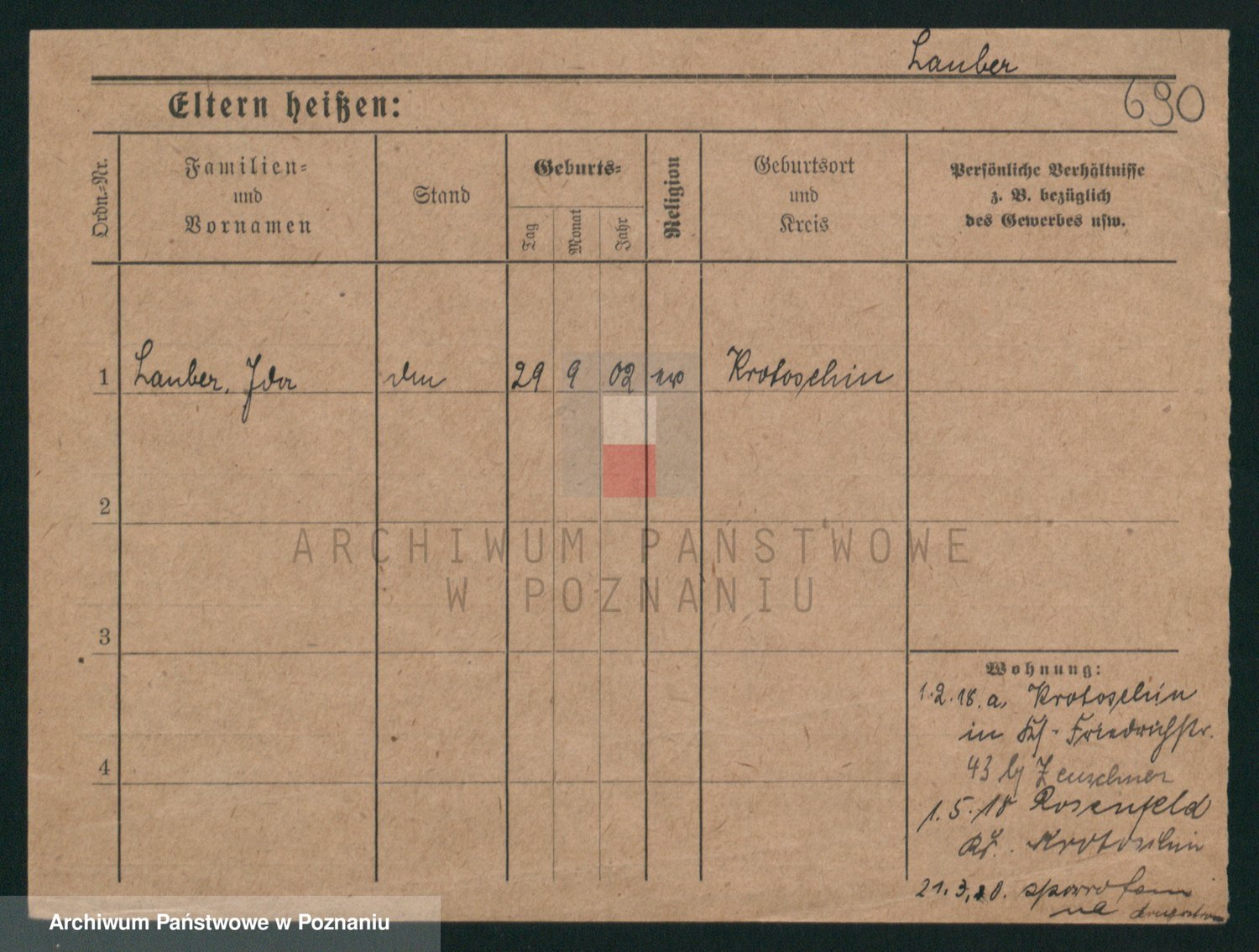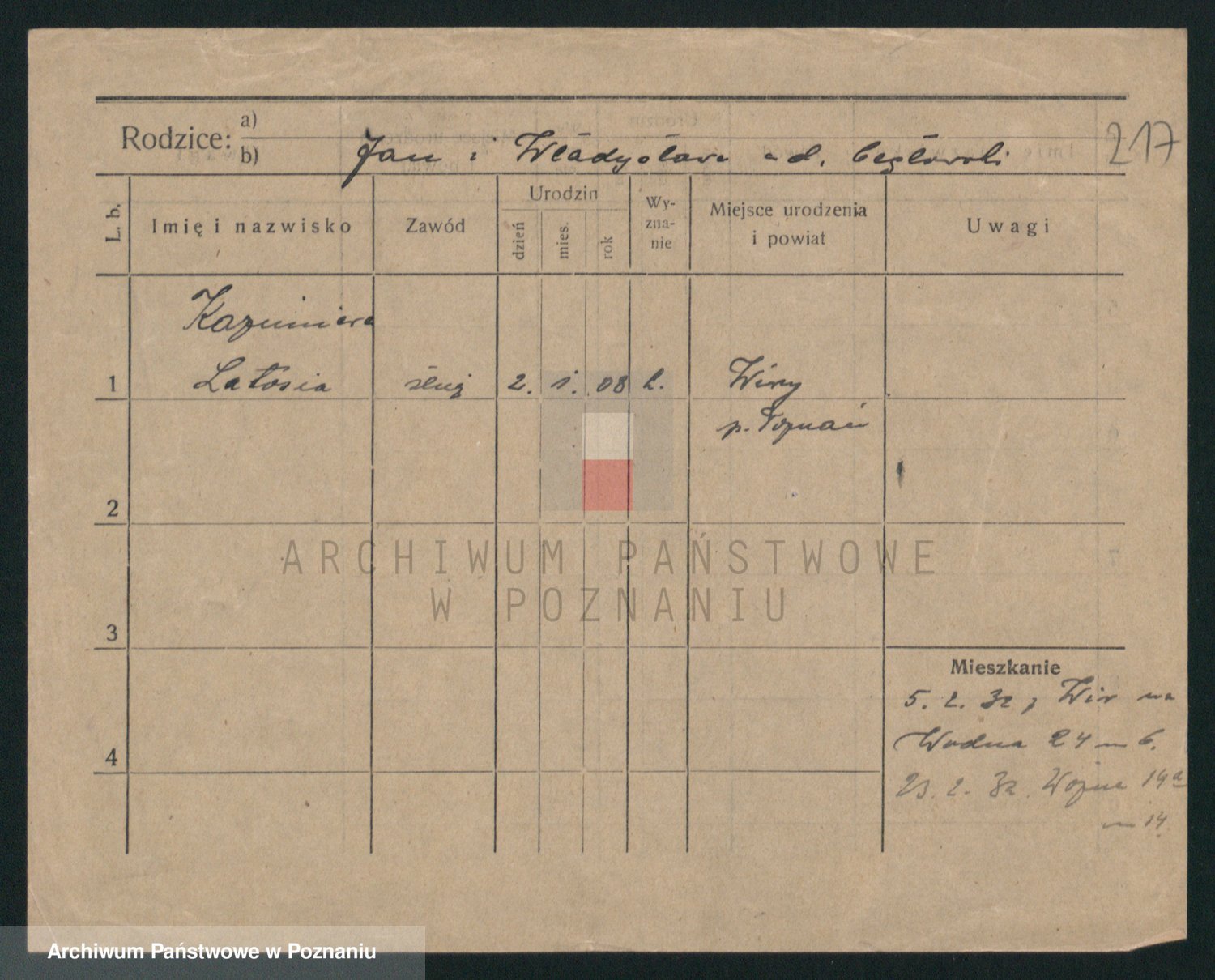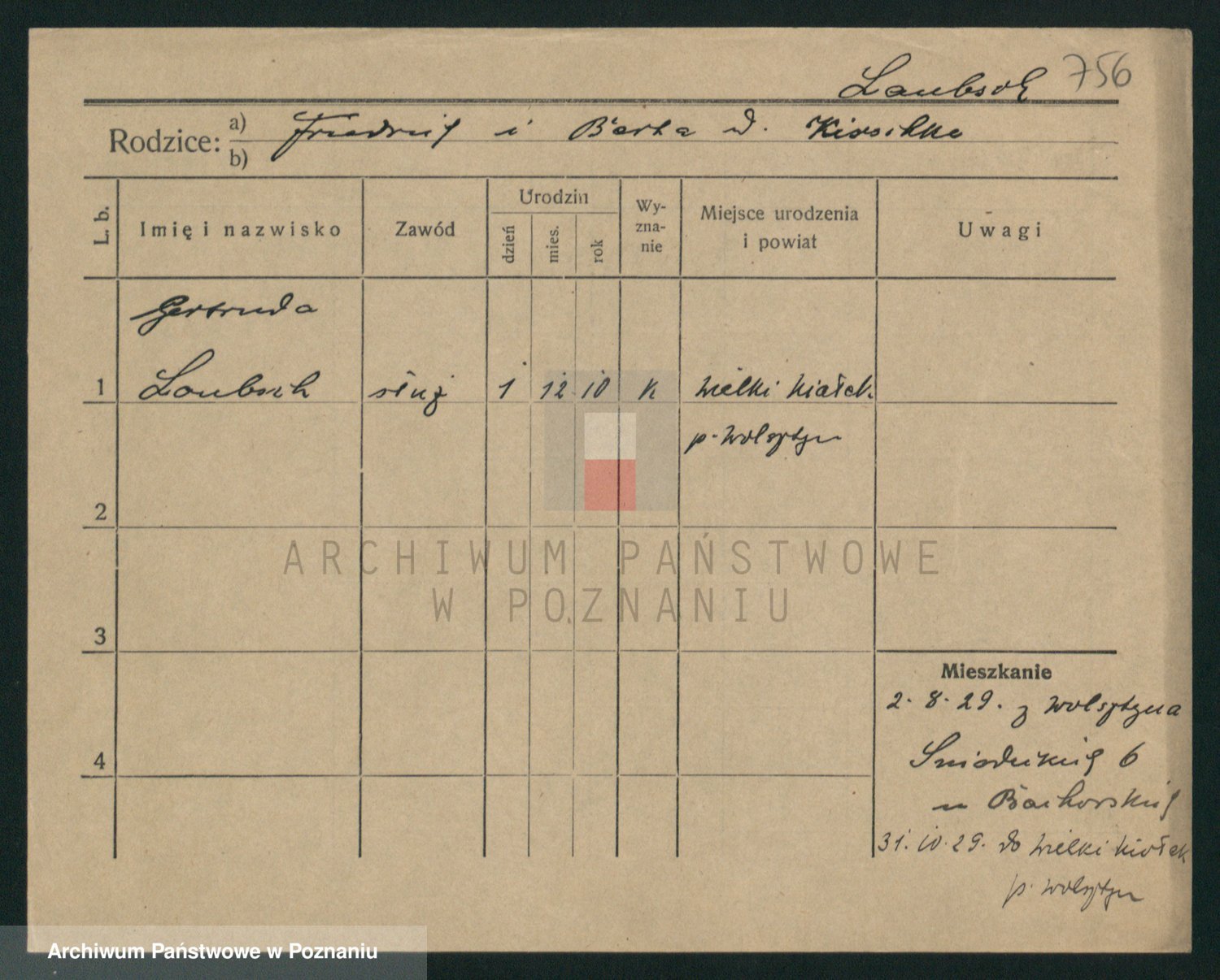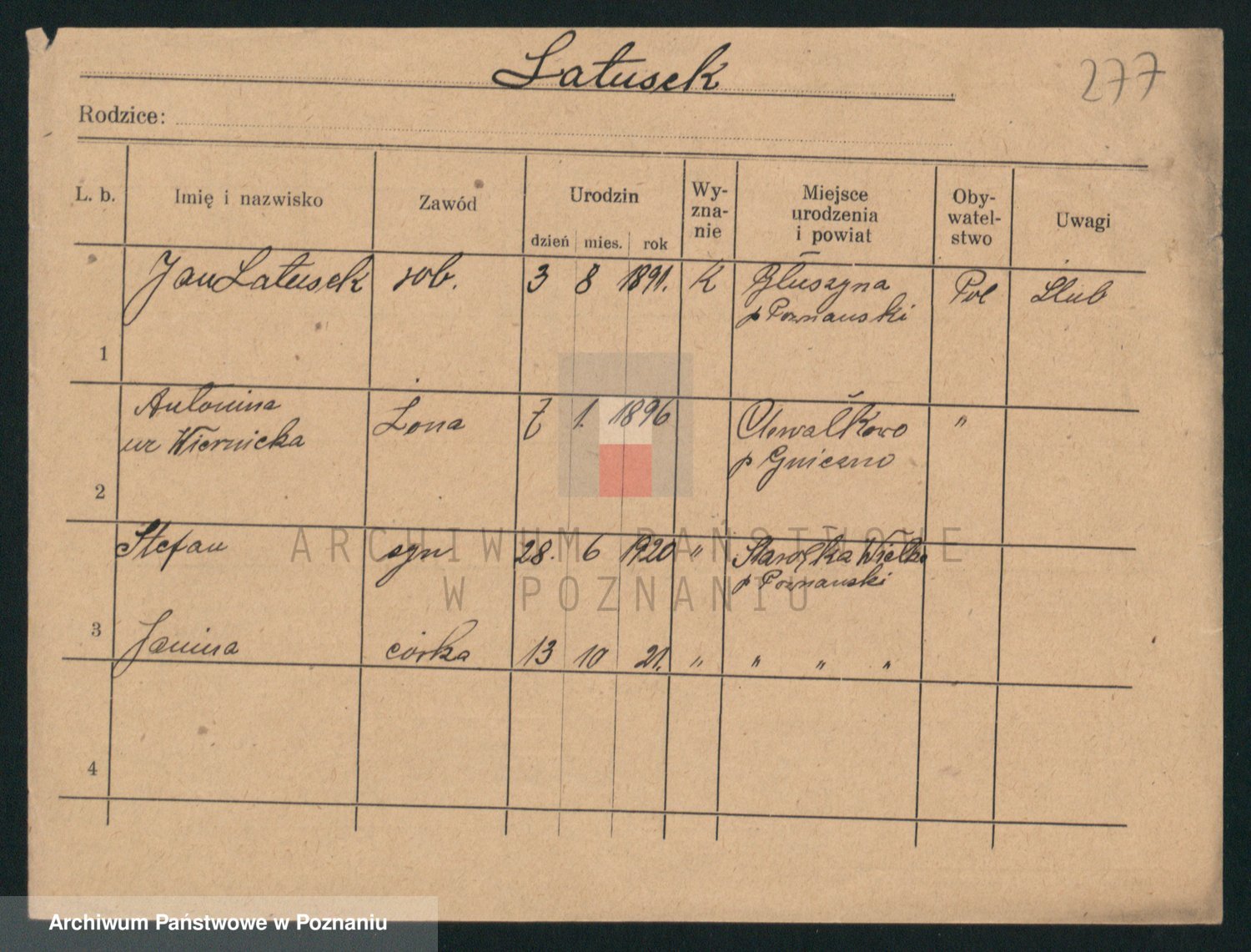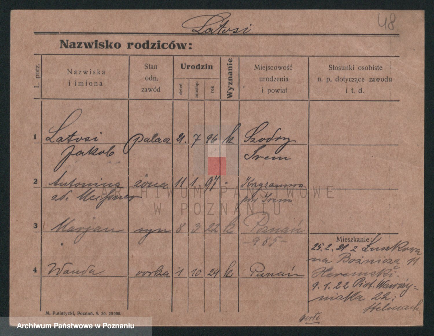 Podgląd karty osobowej dostępny jest po kliknięciu na nazwisko lub ikonkę karty. Można dokonywać powiększenia (ikony na górze) lub przechodzić między kolejnymi skanami (strzałki po bokach).