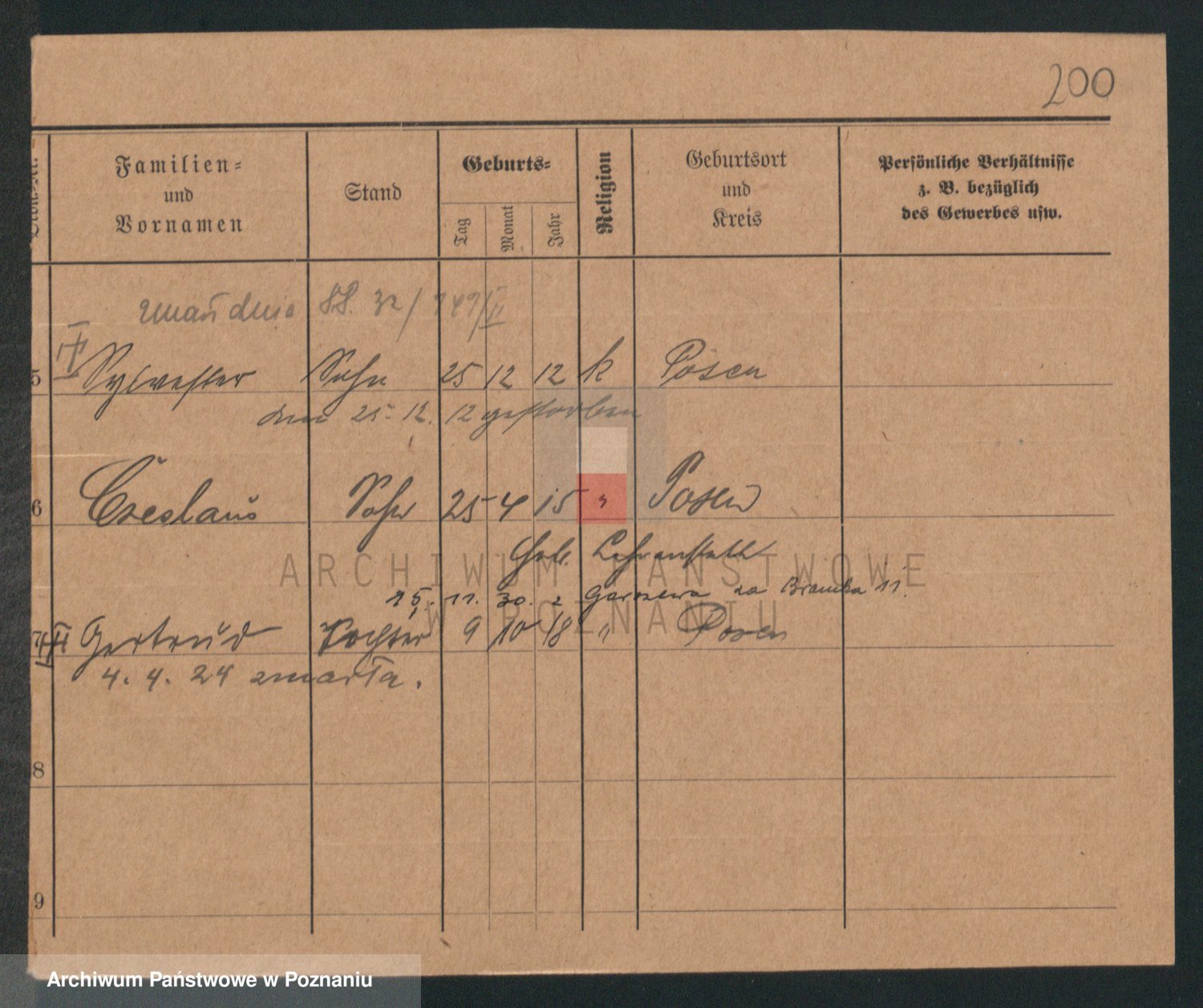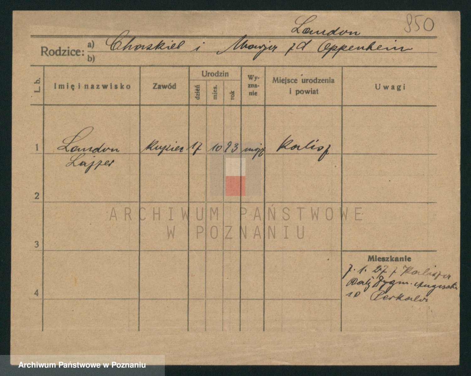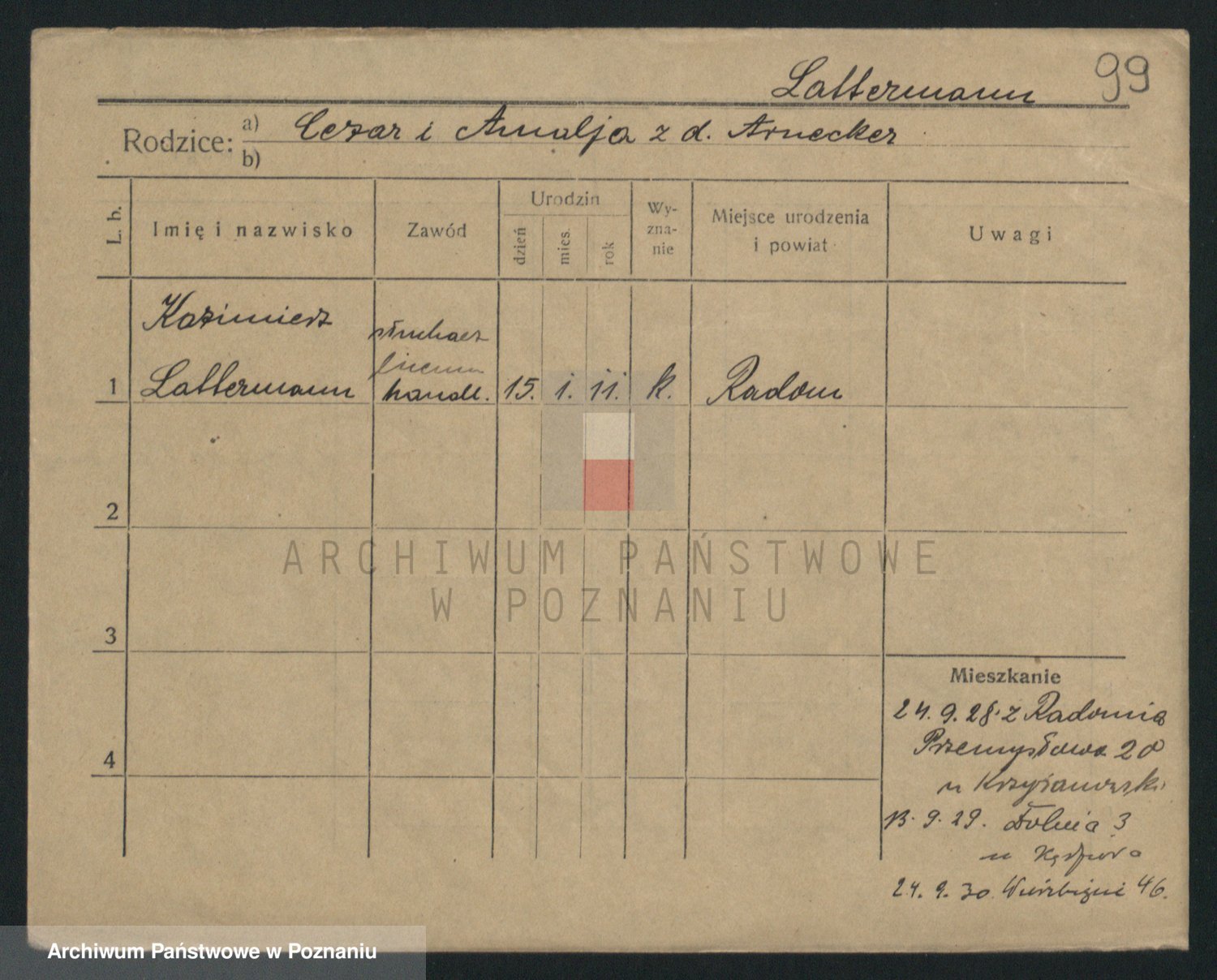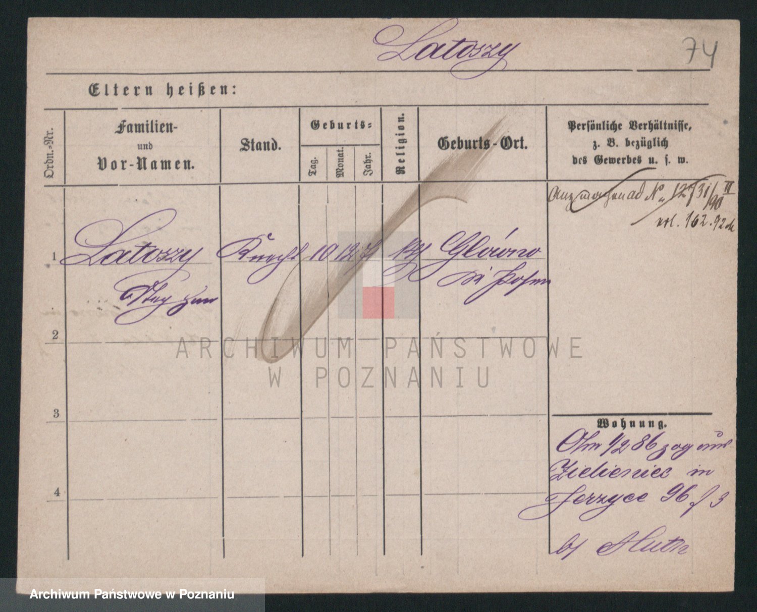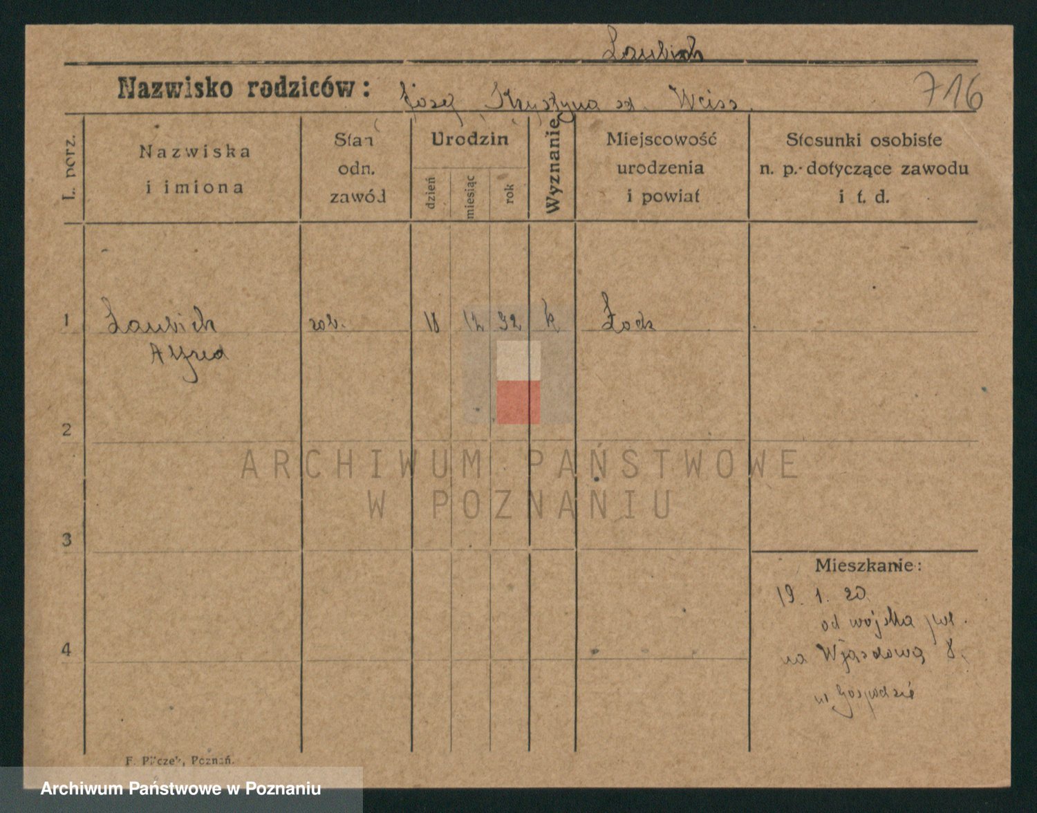 Podgląd karty osobowej dostępny jest po kliknięciu na nazwisko lub ikonkę karty. Można dokonywać powiększenia (ikony na górze) lub przechodzić między kolejnymi skanami (strzałki po bokach).