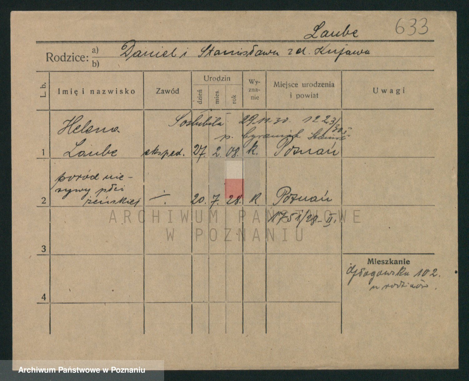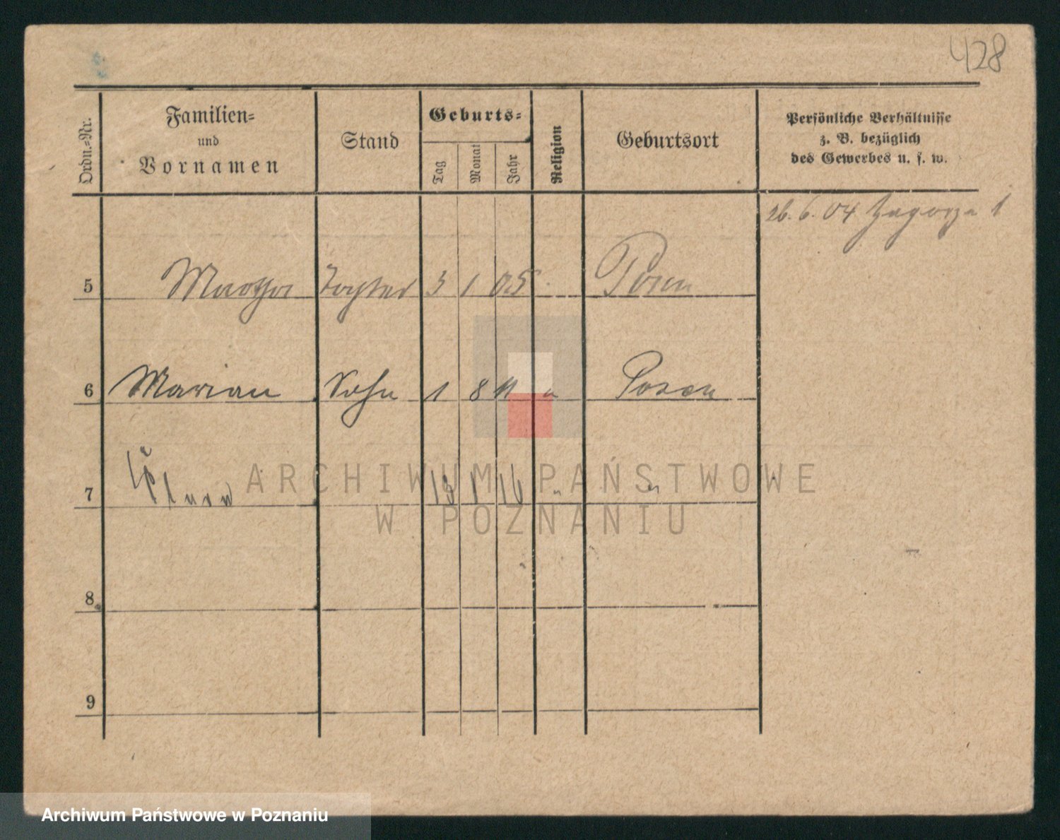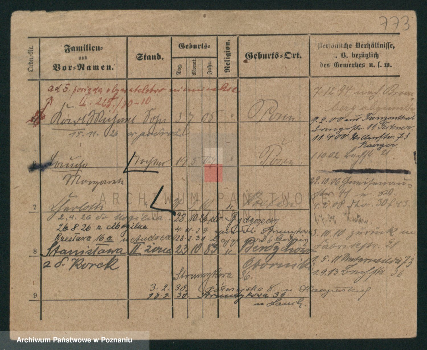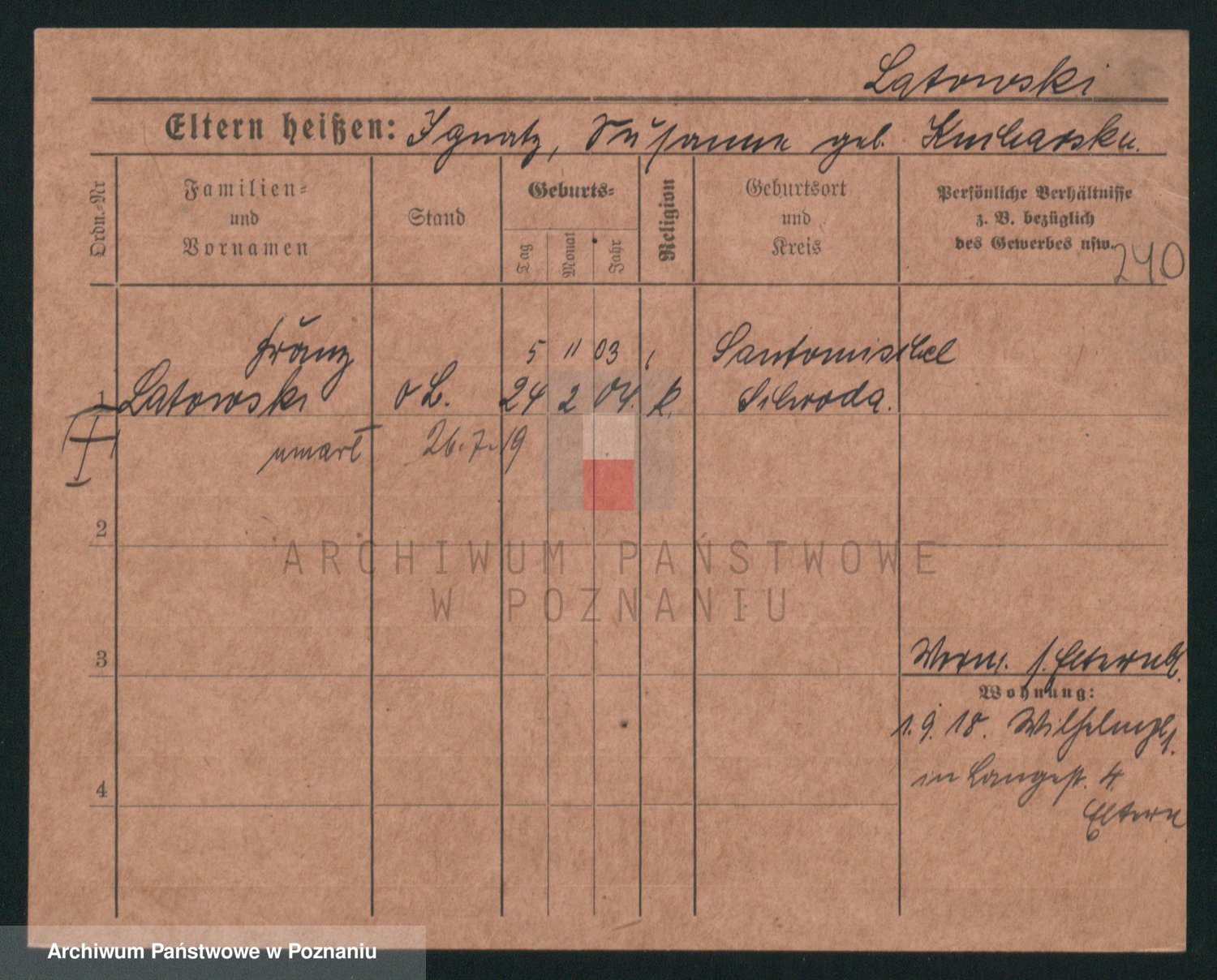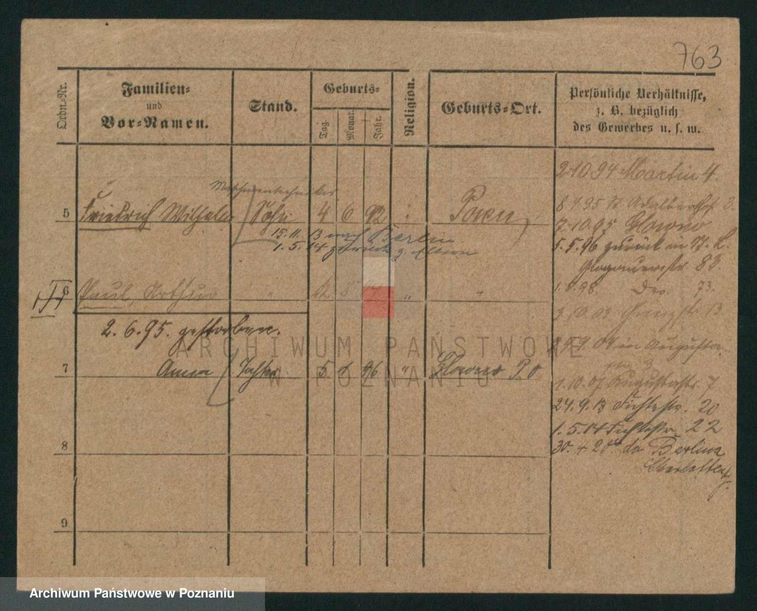 Podgląd karty osobowej dostępny jest po kliknięciu na nazwisko lub ikonkę karty. Można dokonywać powiększenia (ikony na górze) lub przechodzić między kolejnymi skanami (strzałki po bokach).