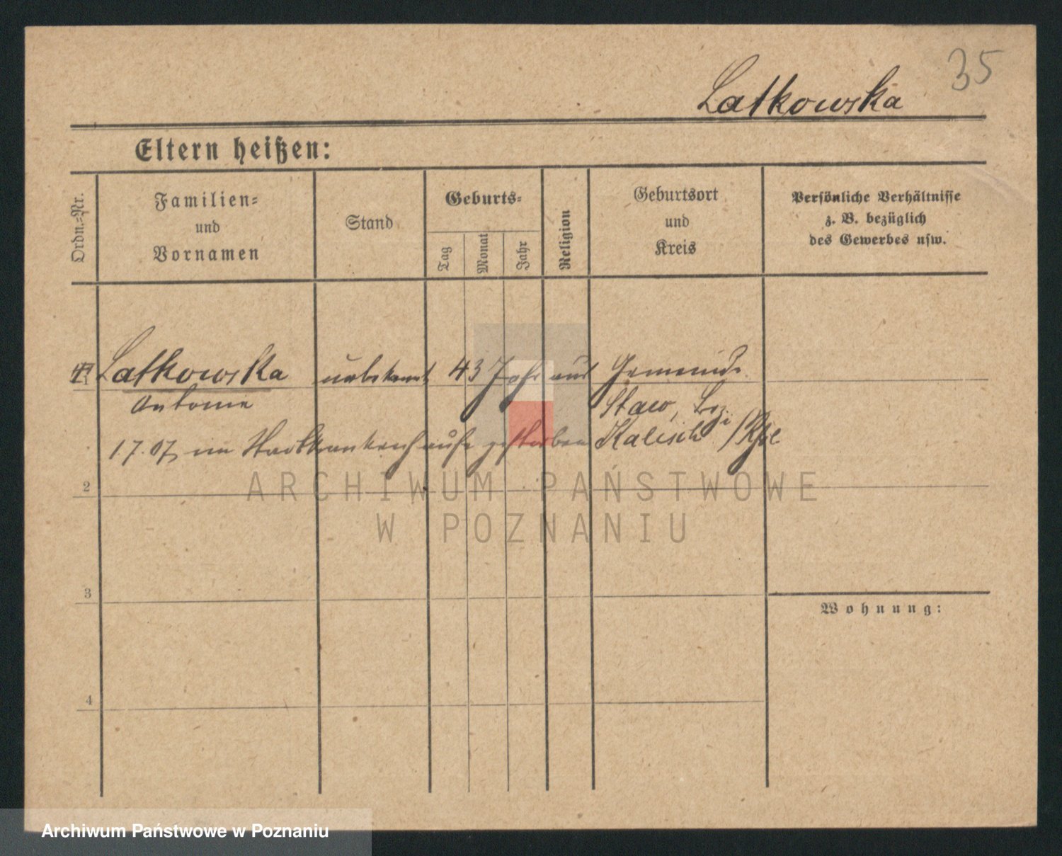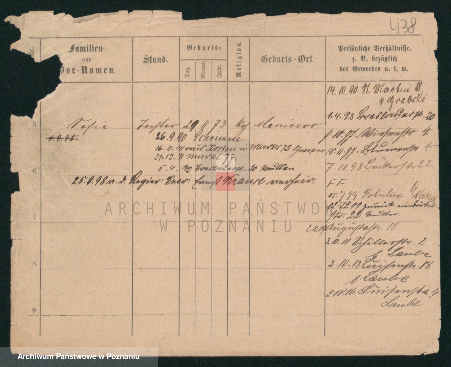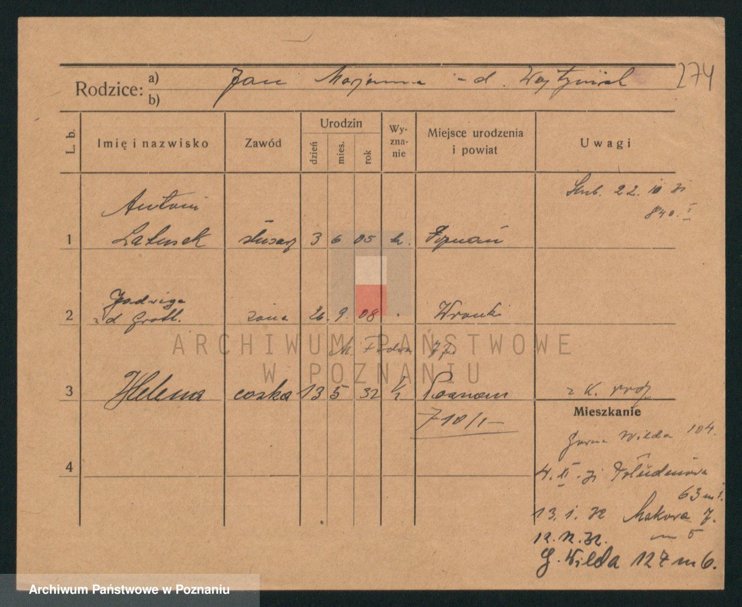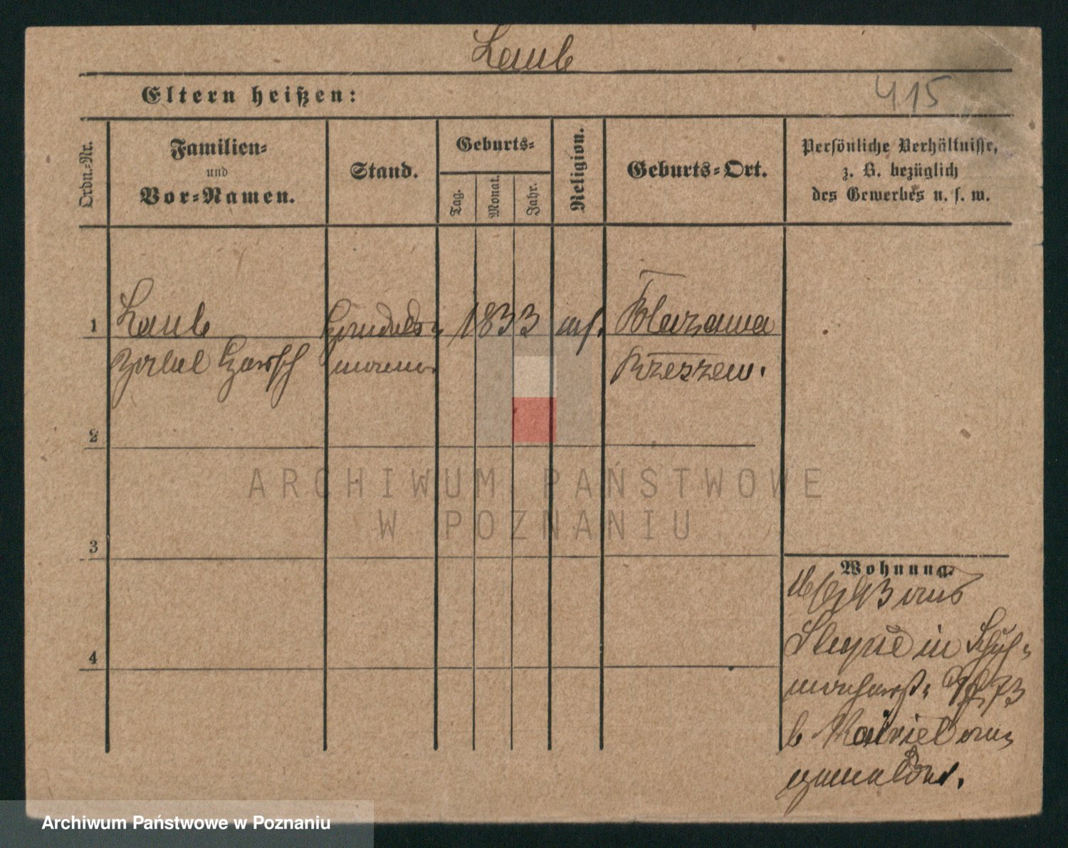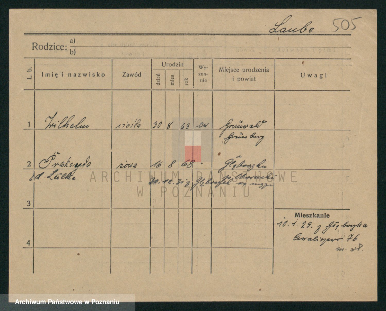 Podgląd karty osobowej dostępny jest po kliknięciu na nazwisko lub ikonkę karty. Można dokonywać powiększenia (ikony na górze) lub przechodzić między kolejnymi skanami (strzałki po bokach).