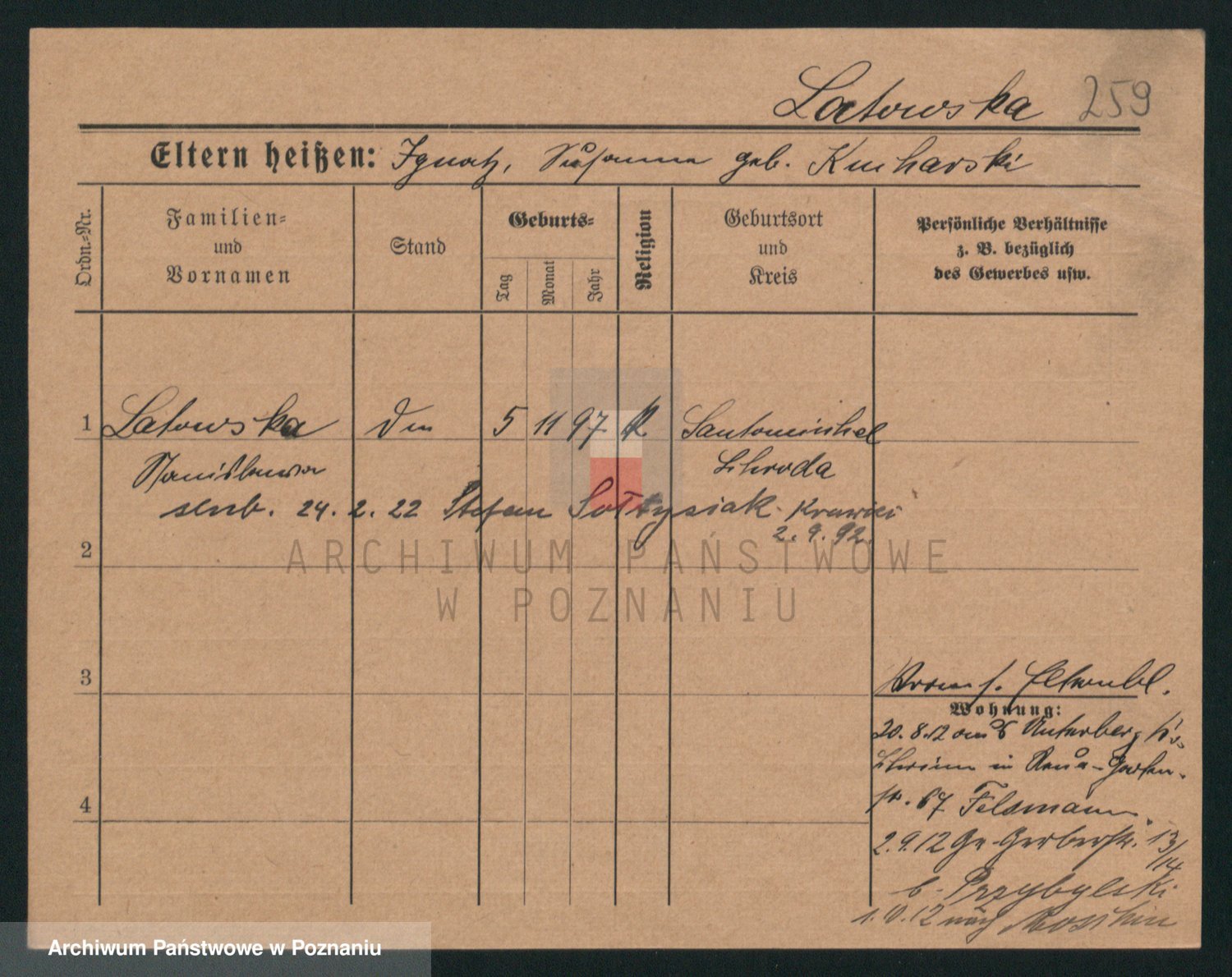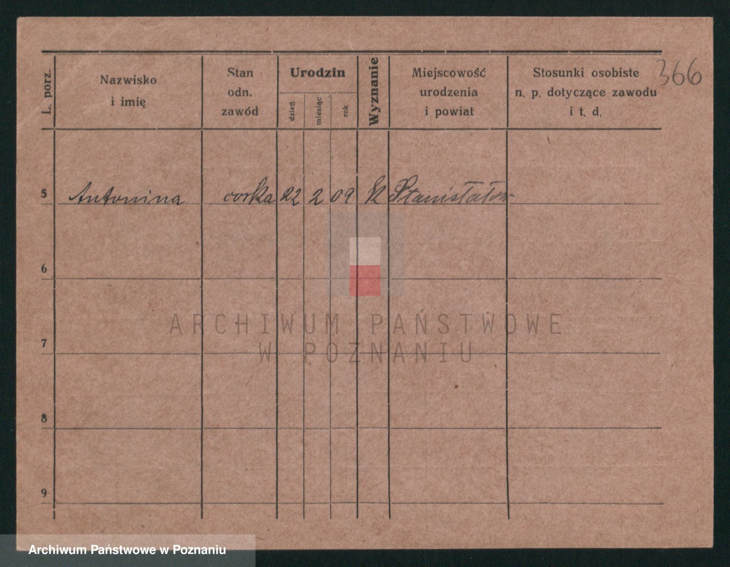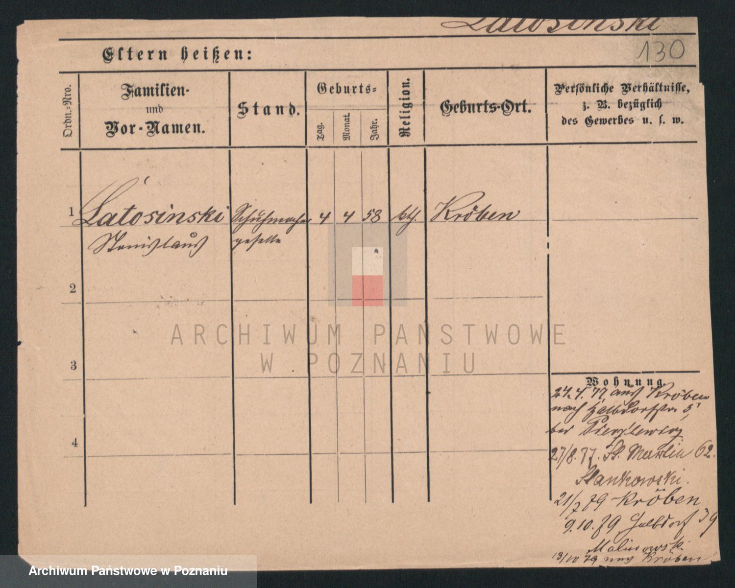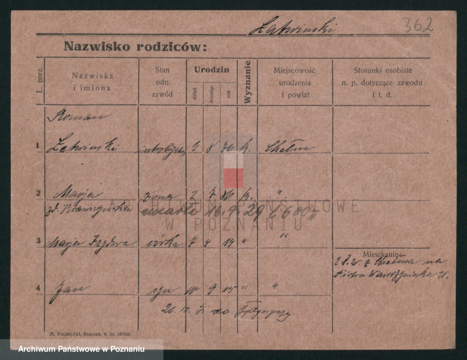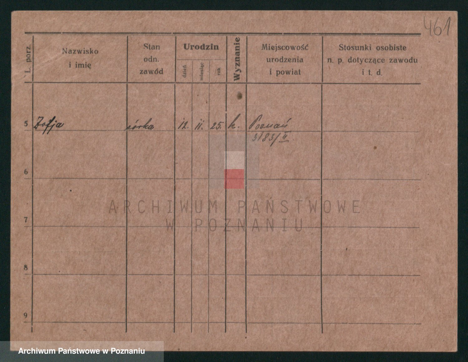Podgląd karty osobowej dostępny jest po kliknięciu na nazwisko lub ikonkę karty. Można dokonywać powiększenia (ikony na górze) lub przechodzić między kolejnymi skanami (strzałki po bokach).