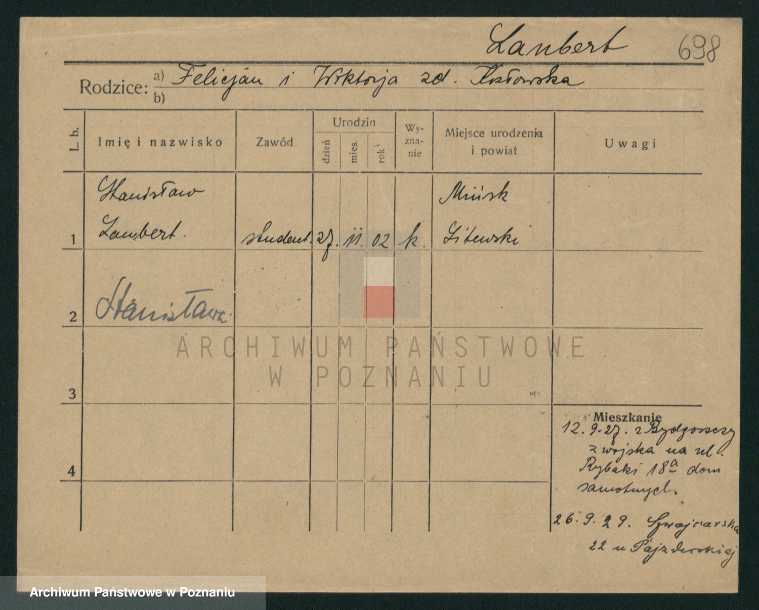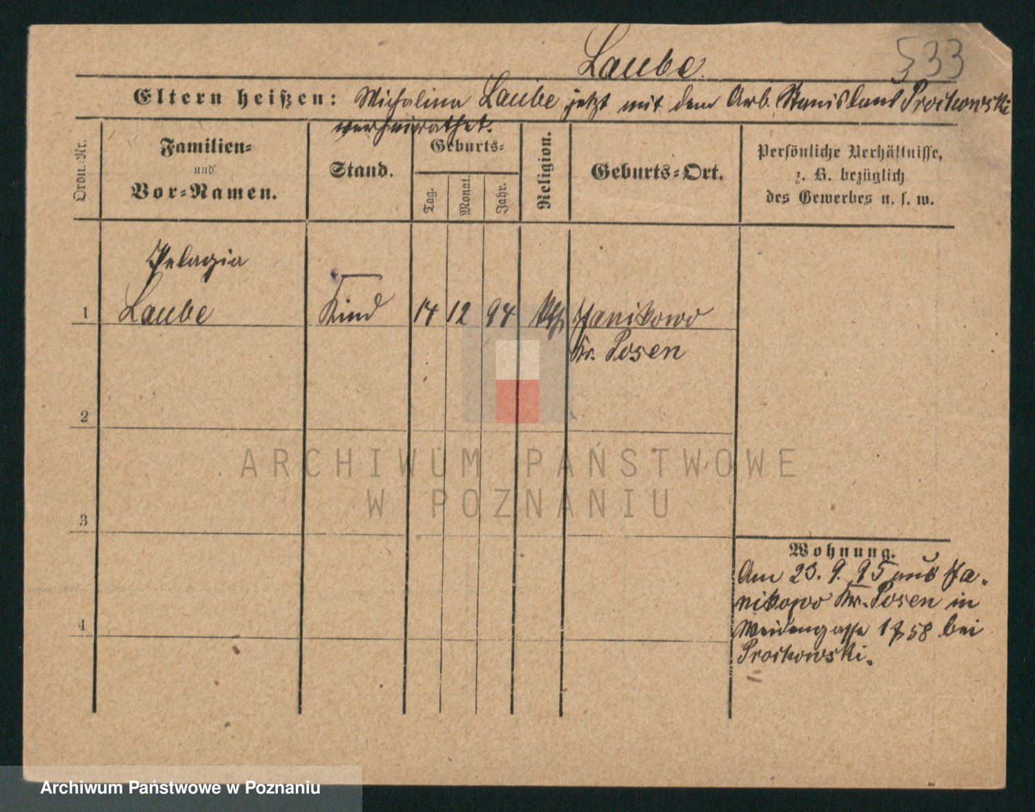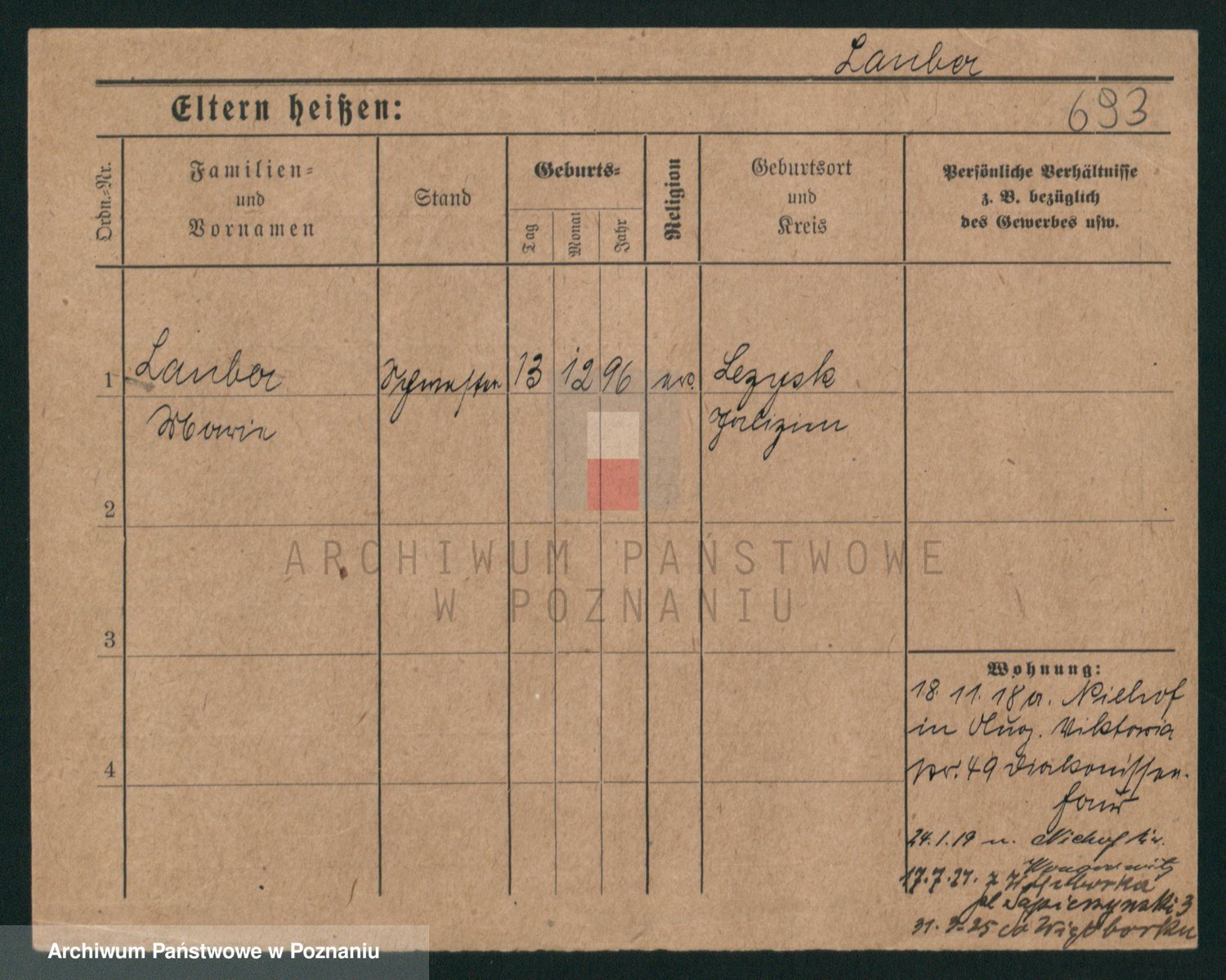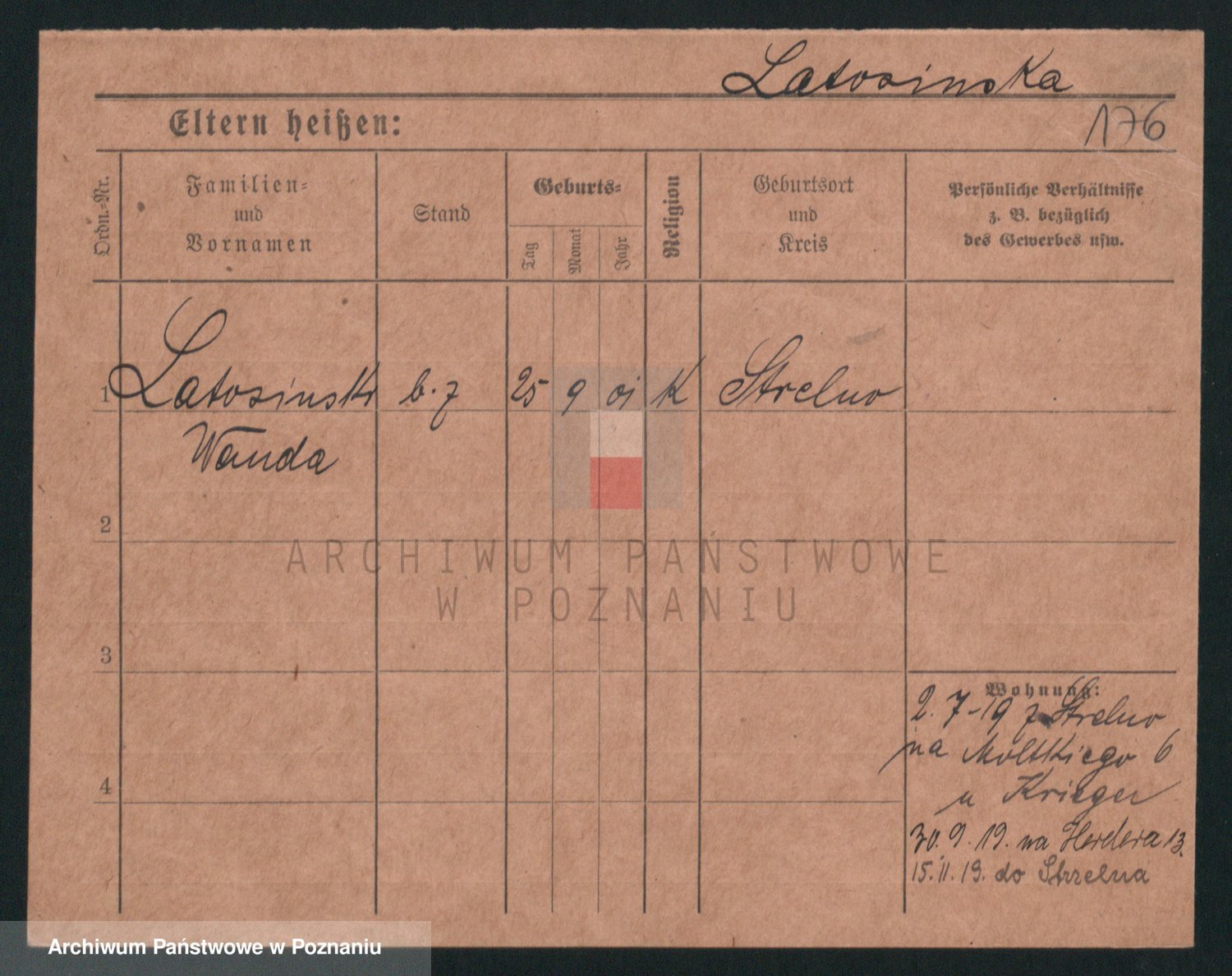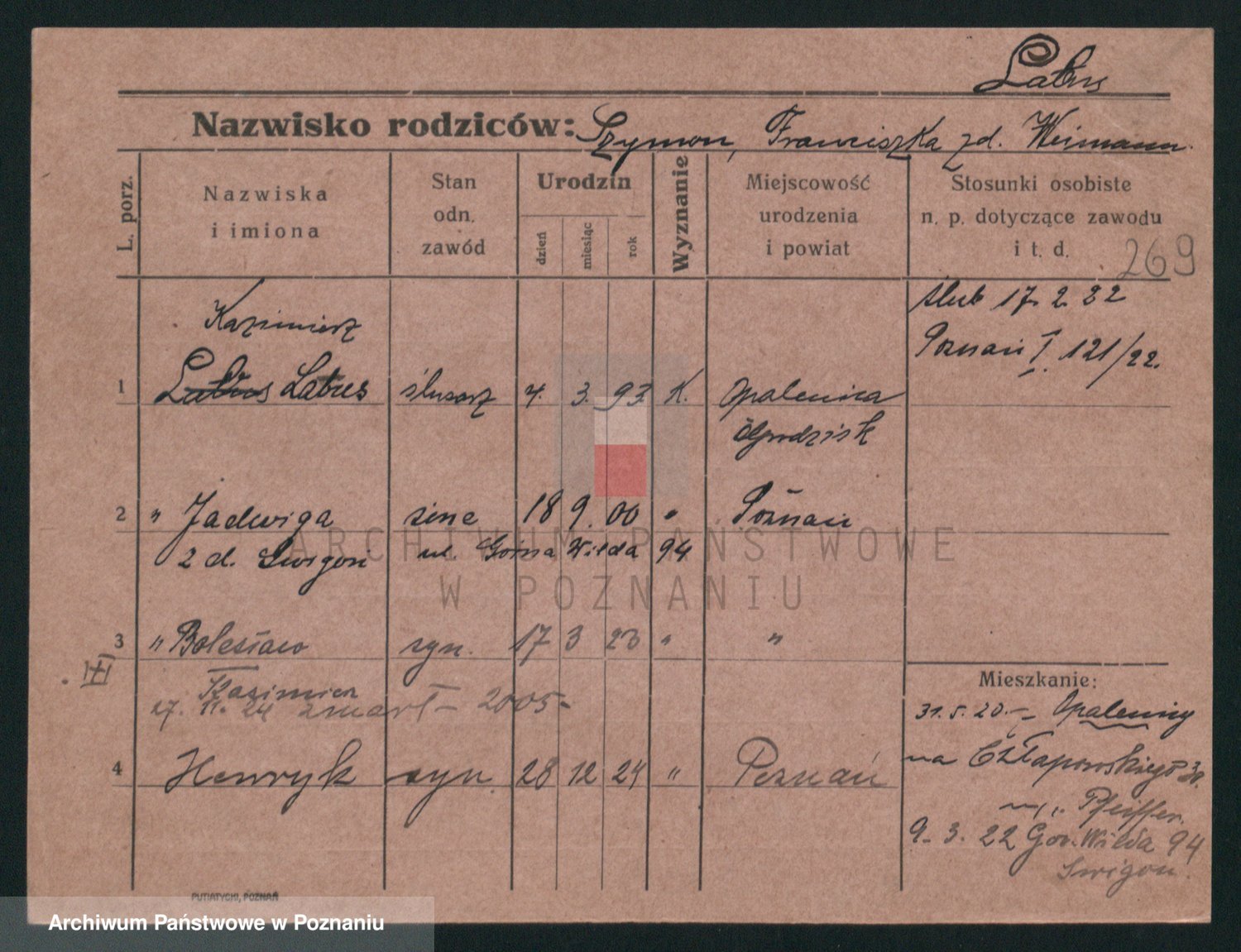 Podgląd karty osobowej dostępny jest po kliknięciu na nazwisko lub ikonkę karty. Można dokonywać powiększenia (ikony na górze) lub przechodzić między kolejnymi skanami (strzałki po bokach).