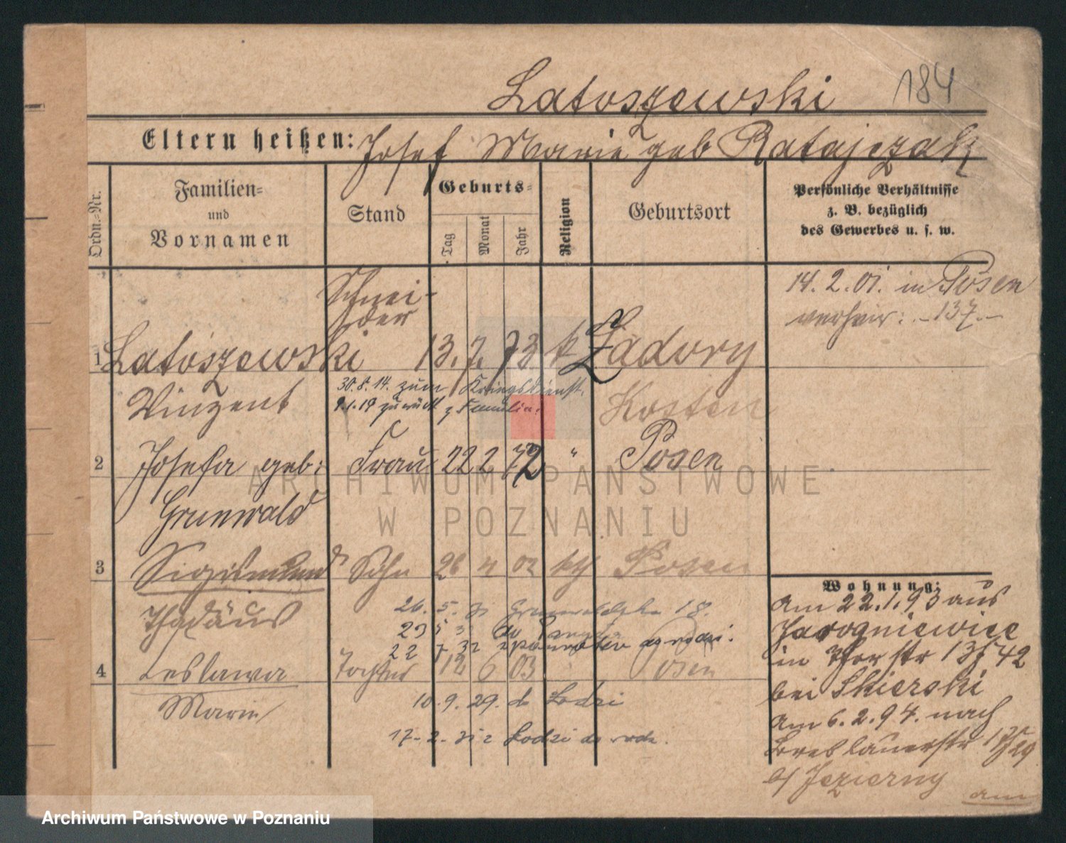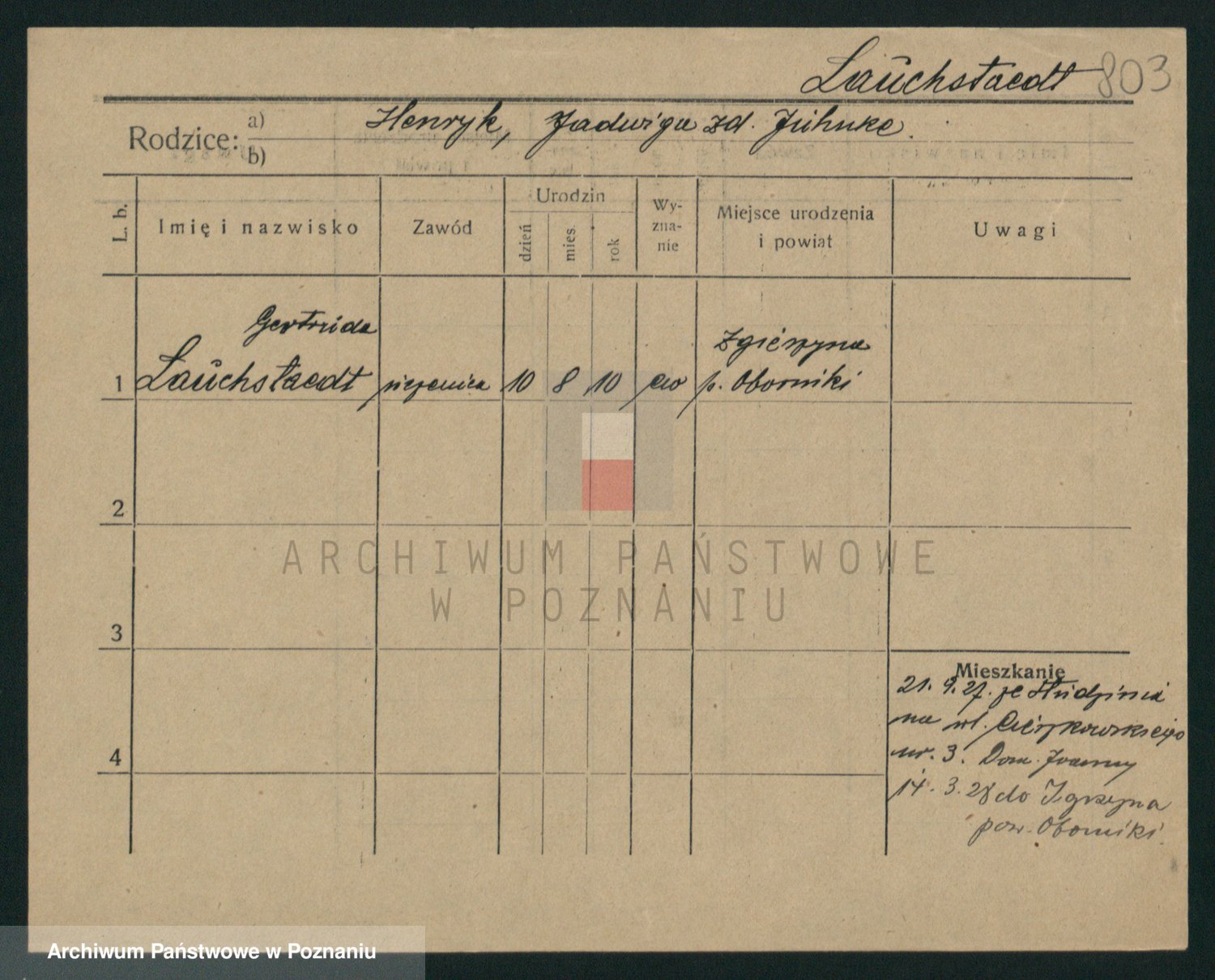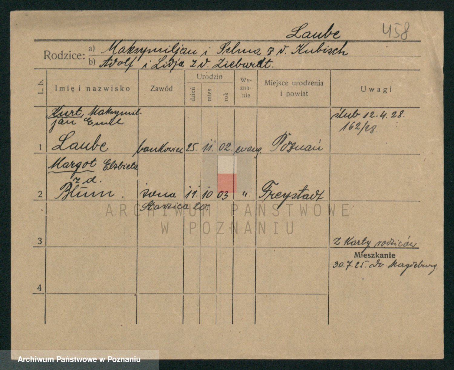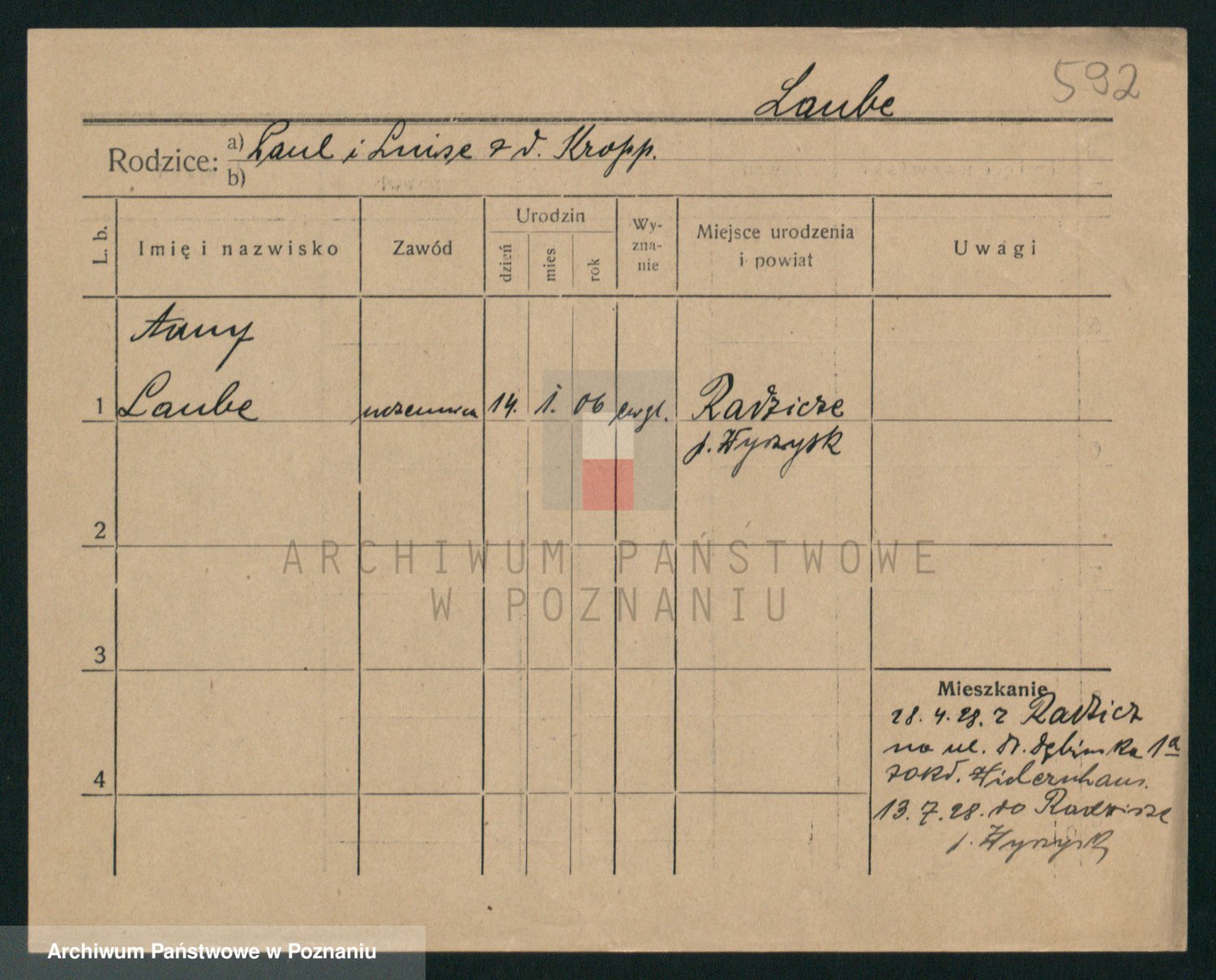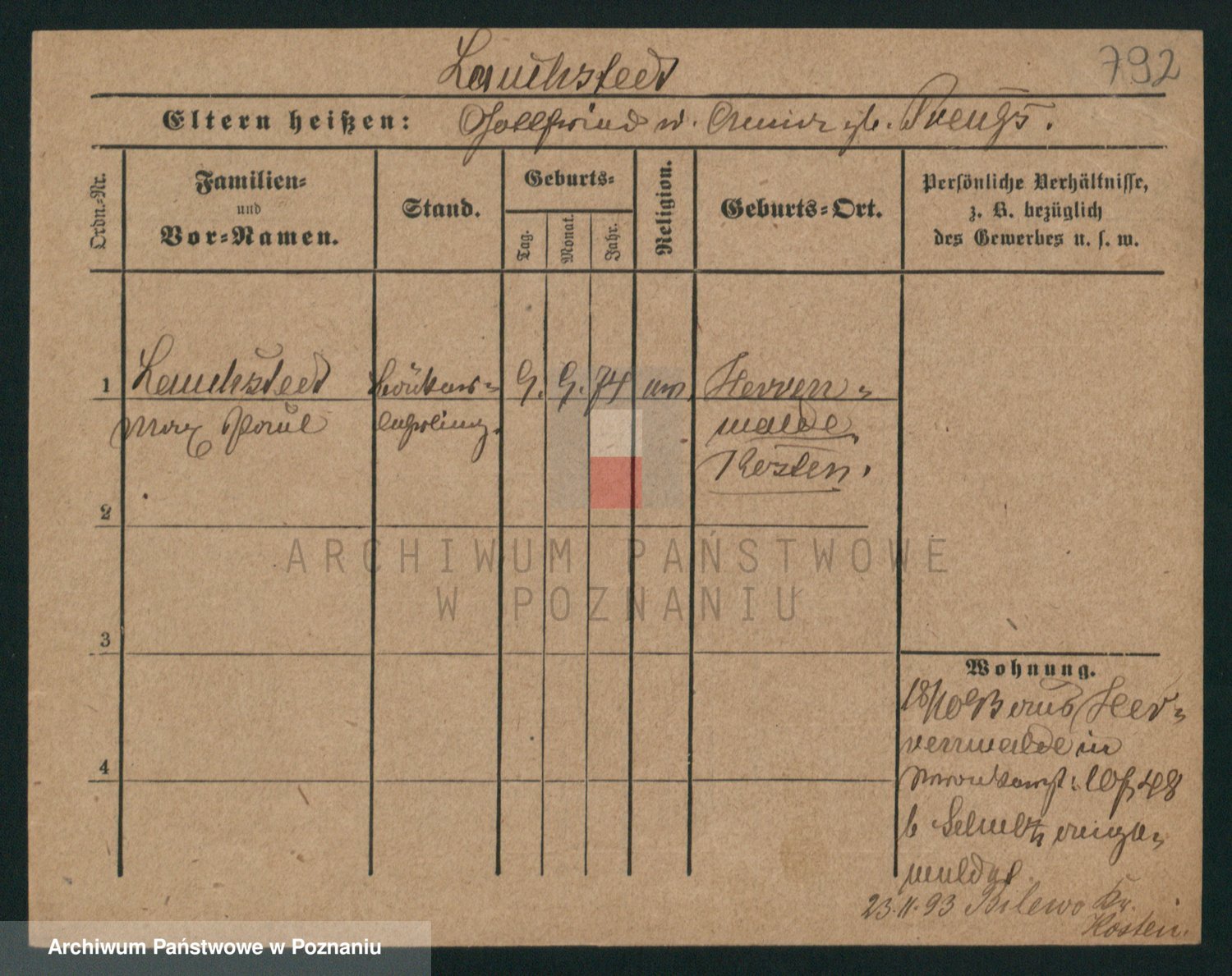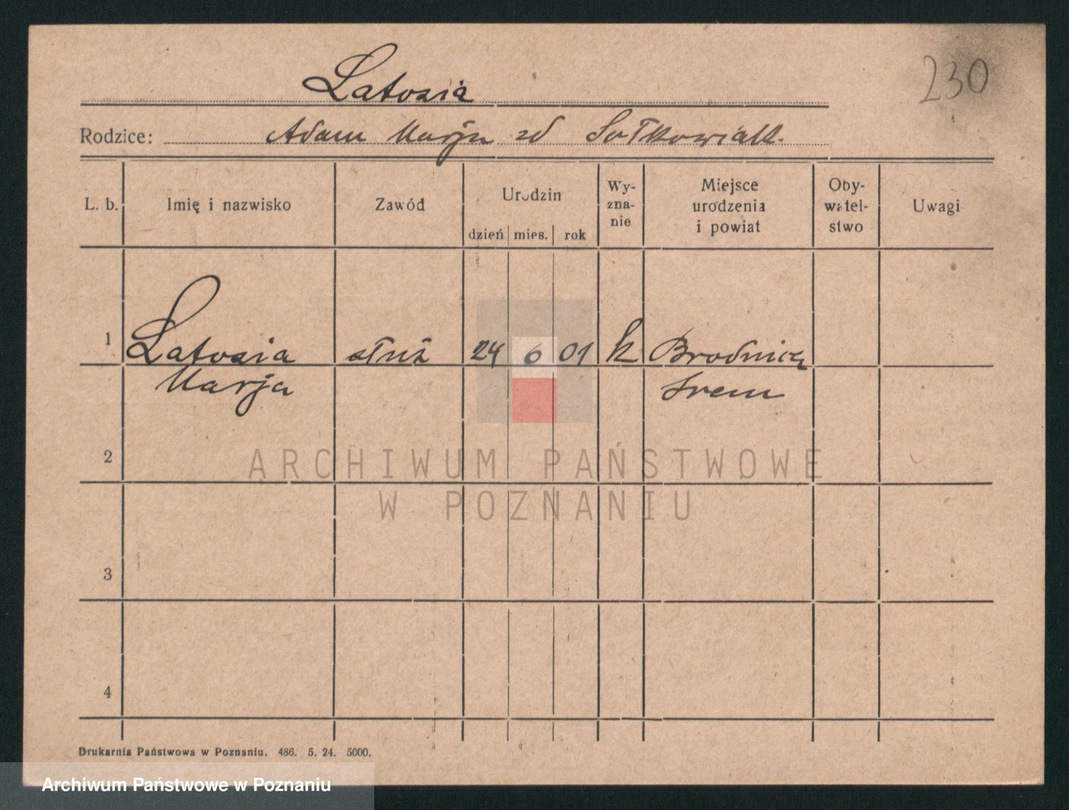 Podgląd karty osobowej dostępny jest po kliknięciu na nazwisko lub ikonkę karty. Można dokonywać powiększenia (ikony na górze) lub przechodzić między kolejnymi skanami (strzałki po bokach).