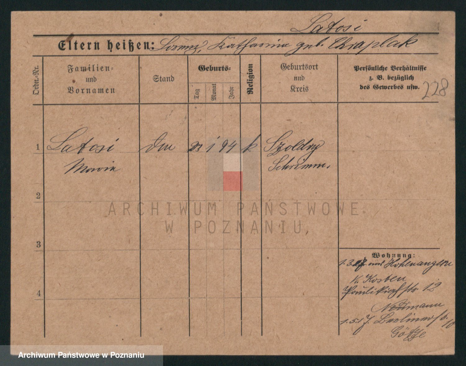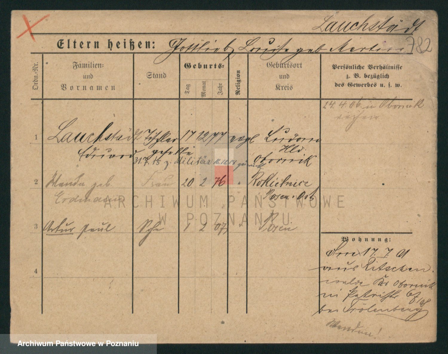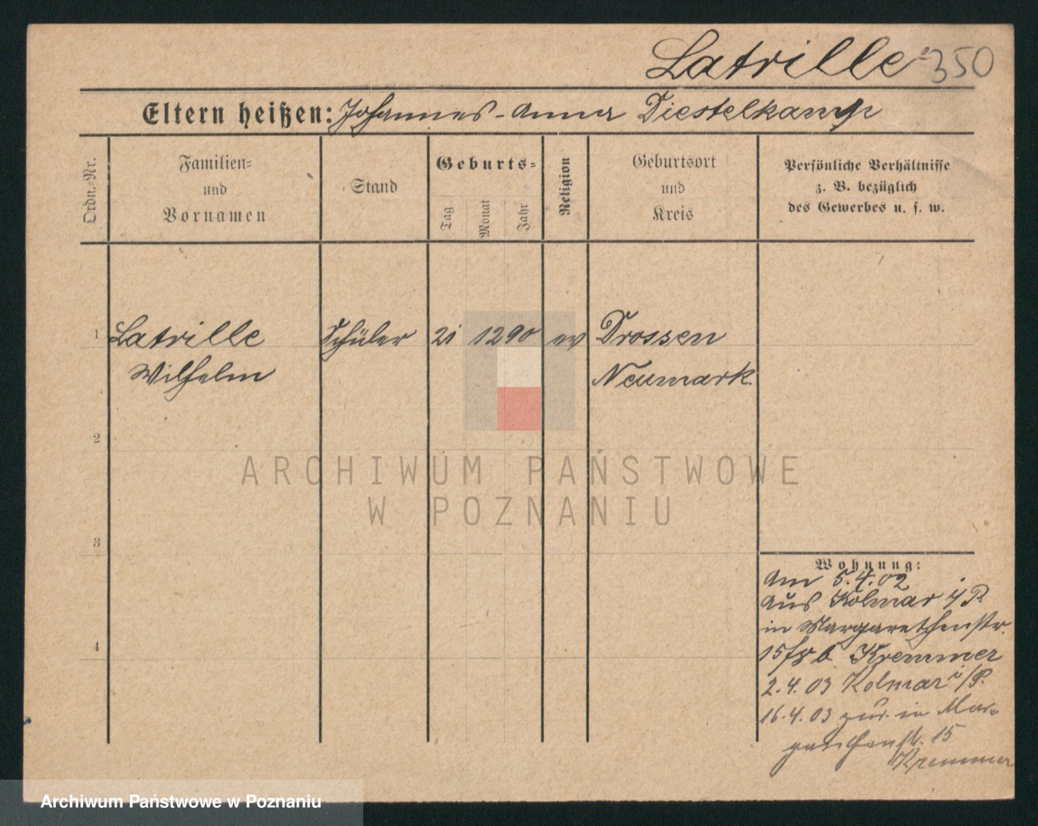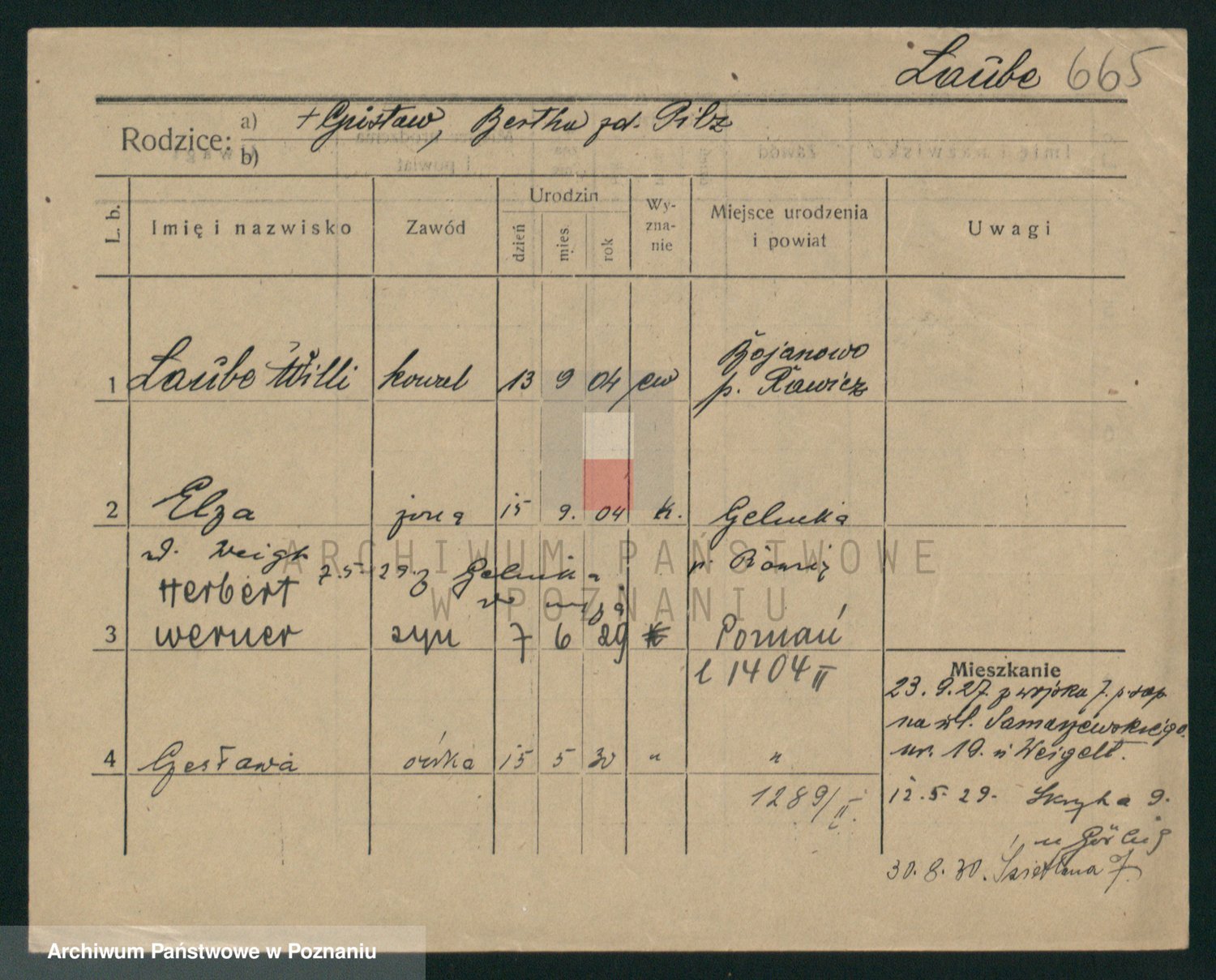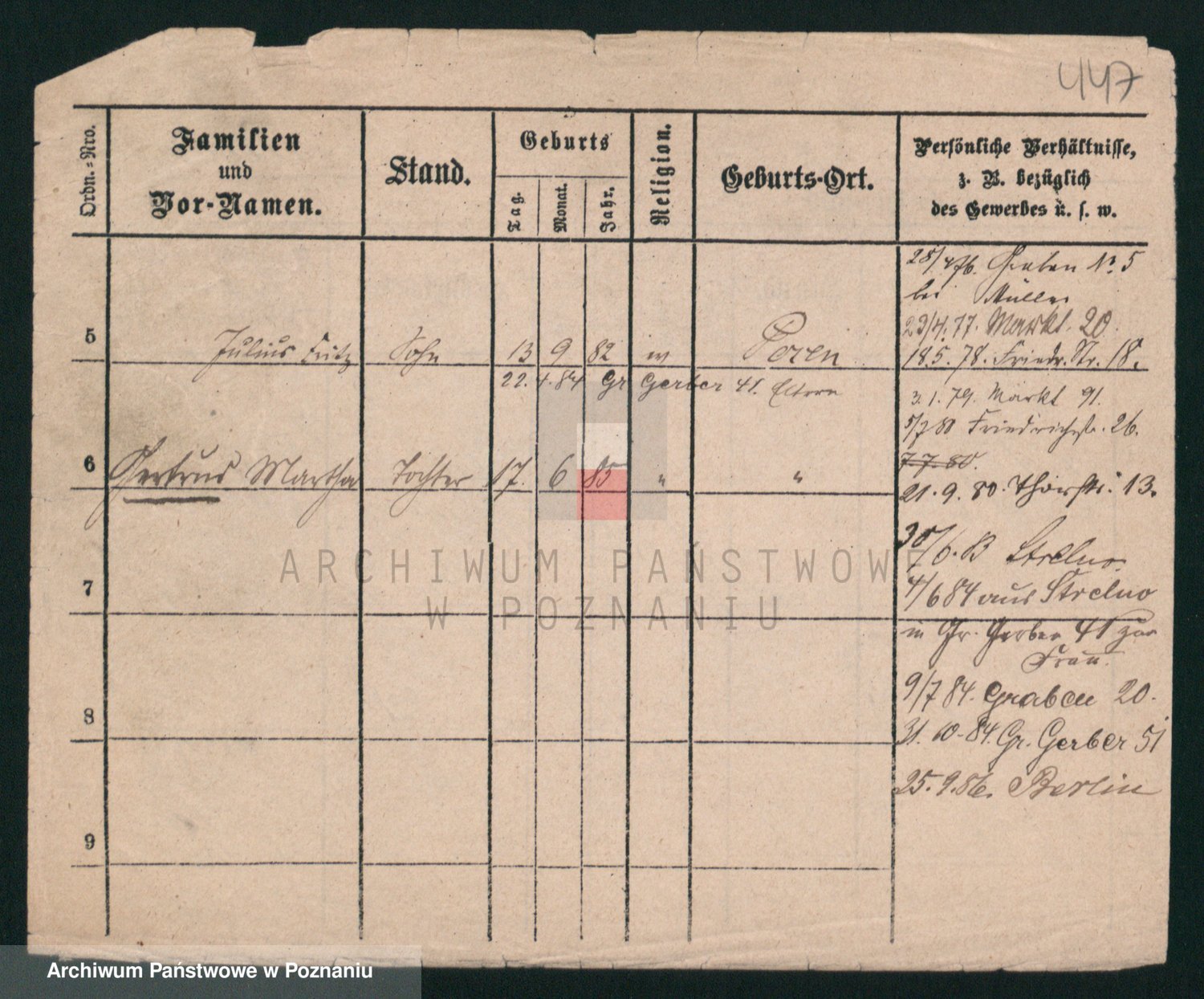 Podgląd karty osobowej dostępny jest po kliknięciu na nazwisko lub ikonkę karty. Można dokonywać powiększenia (ikony na górze) lub przechodzić między kolejnymi skanami (strzałki po bokach).