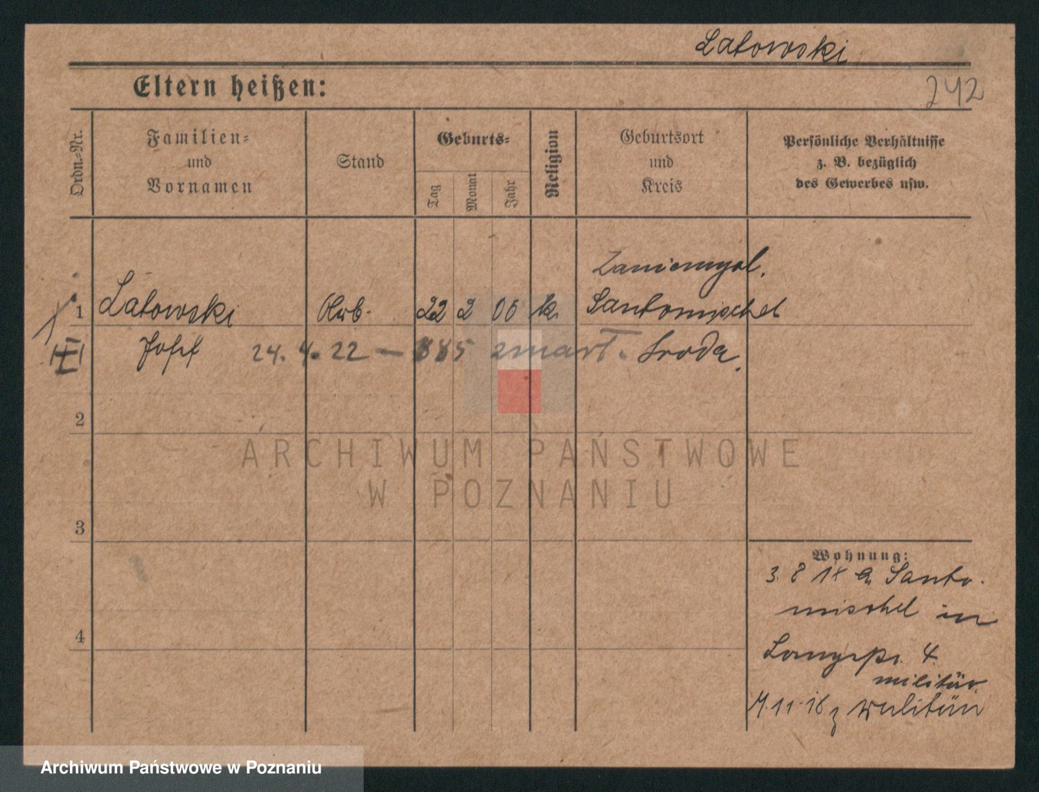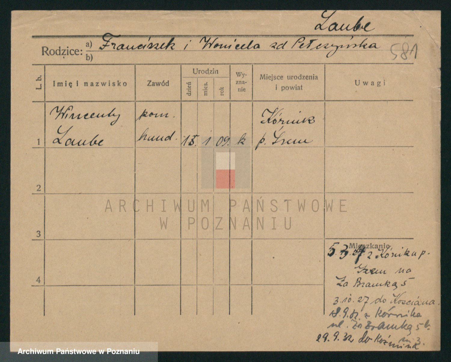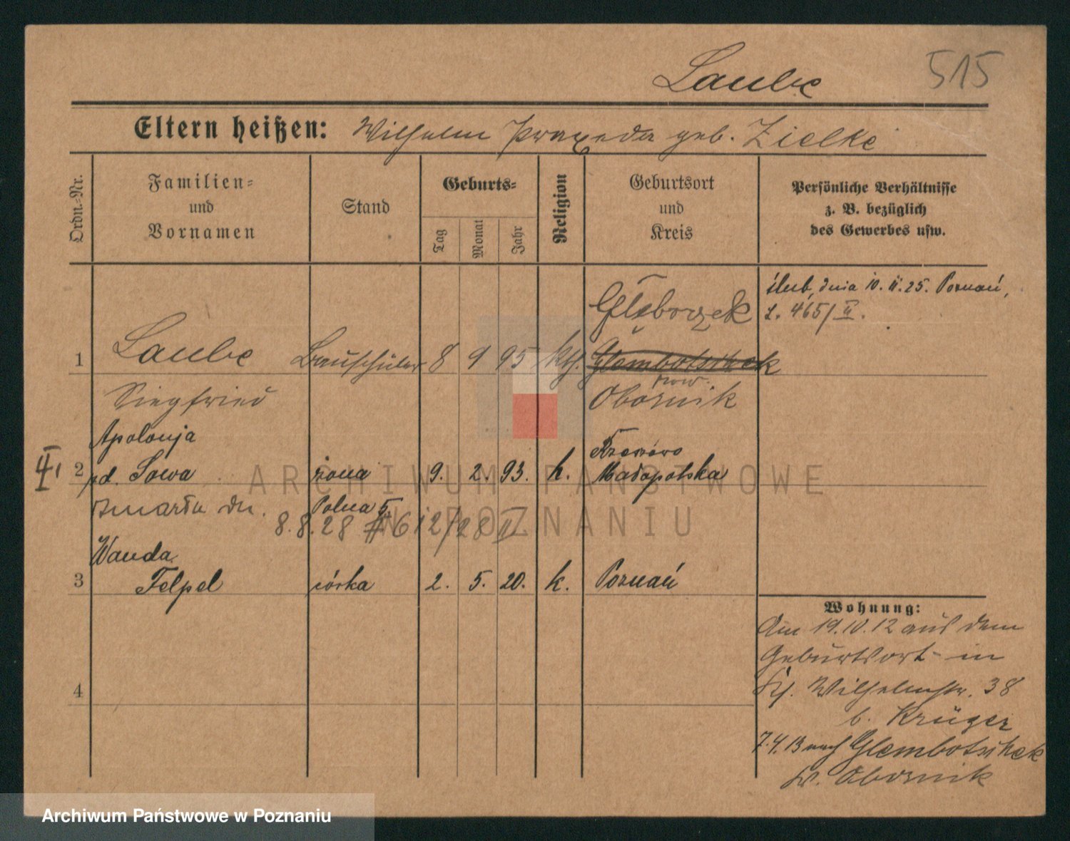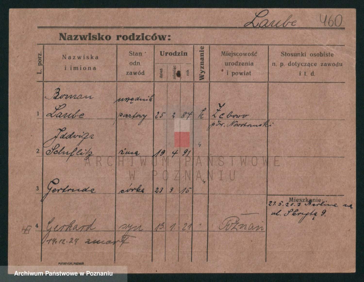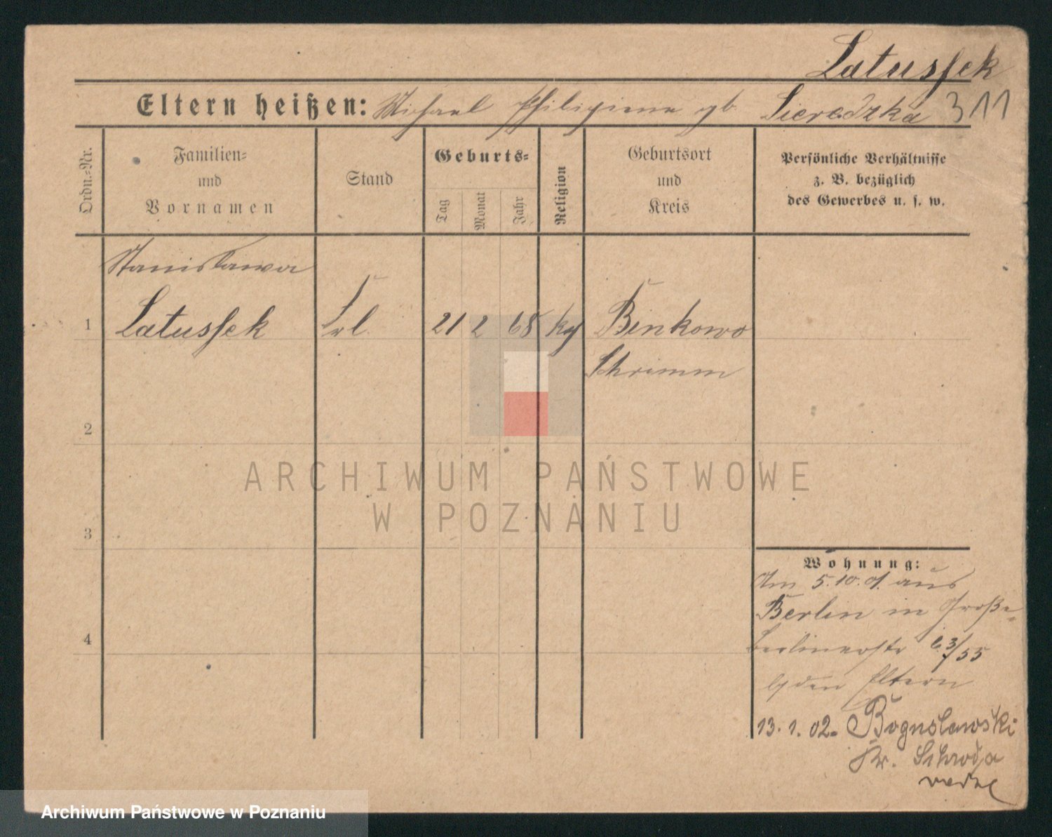 Podgląd karty osobowej dostępny jest po kliknięciu na nazwisko lub ikonkę karty. Można dokonywać powiększenia (ikony na górze) lub przechodzić między kolejnymi skanami (strzałki po bokach).