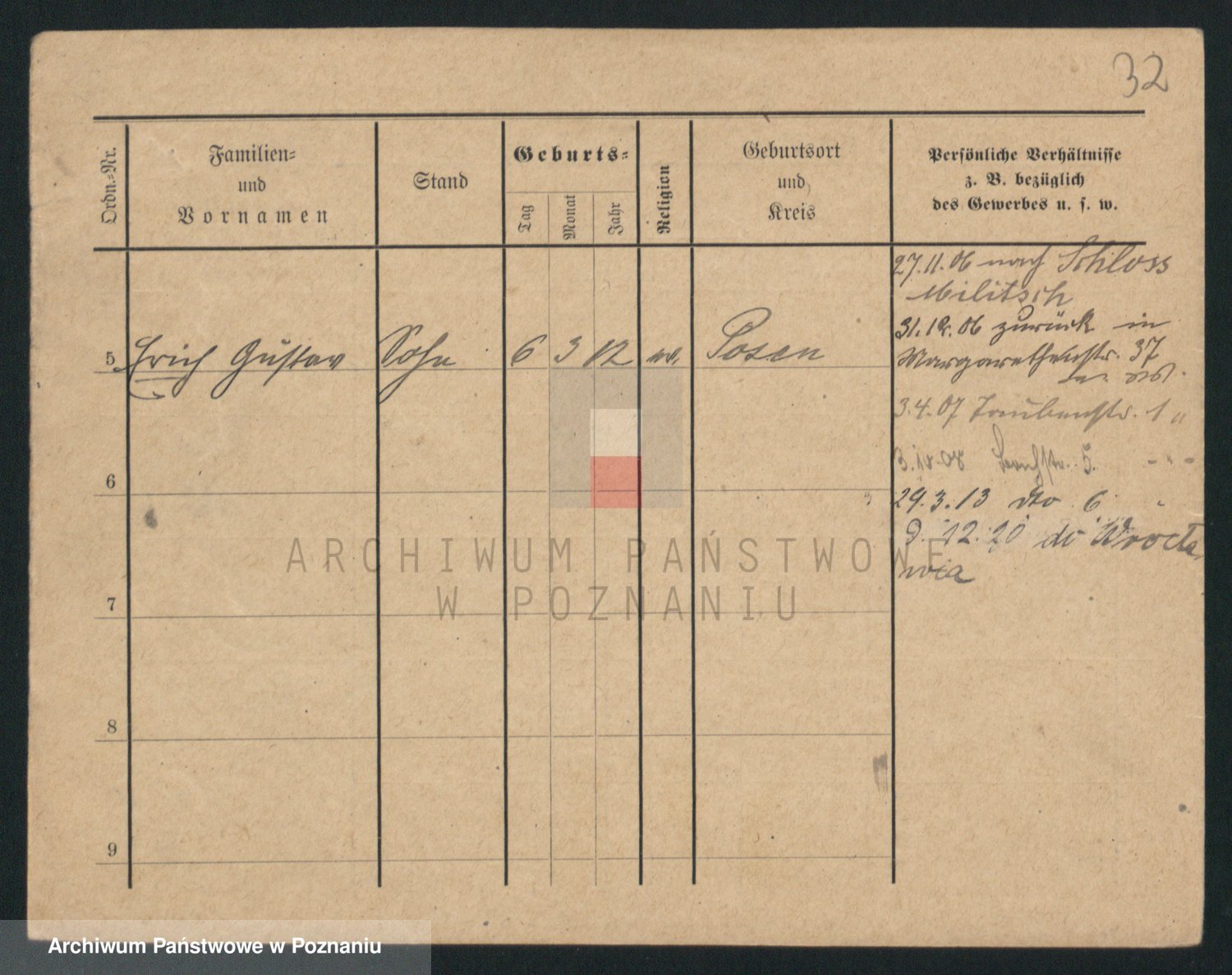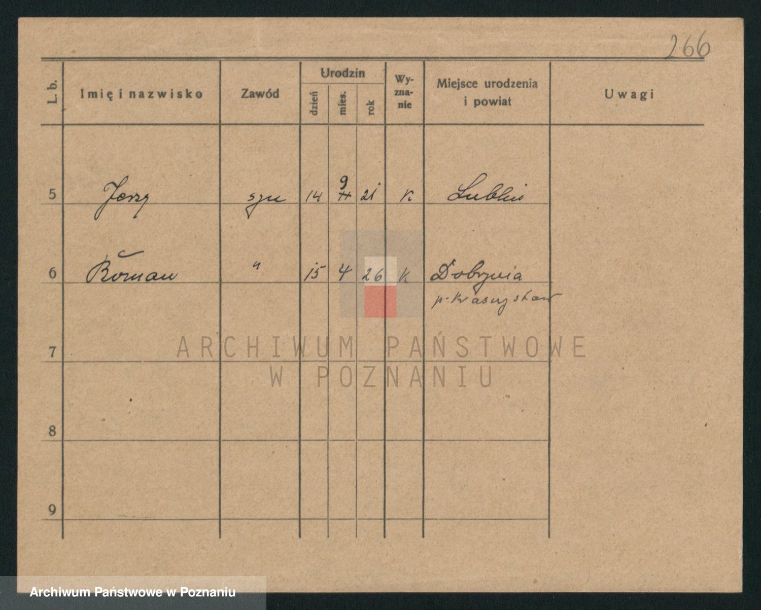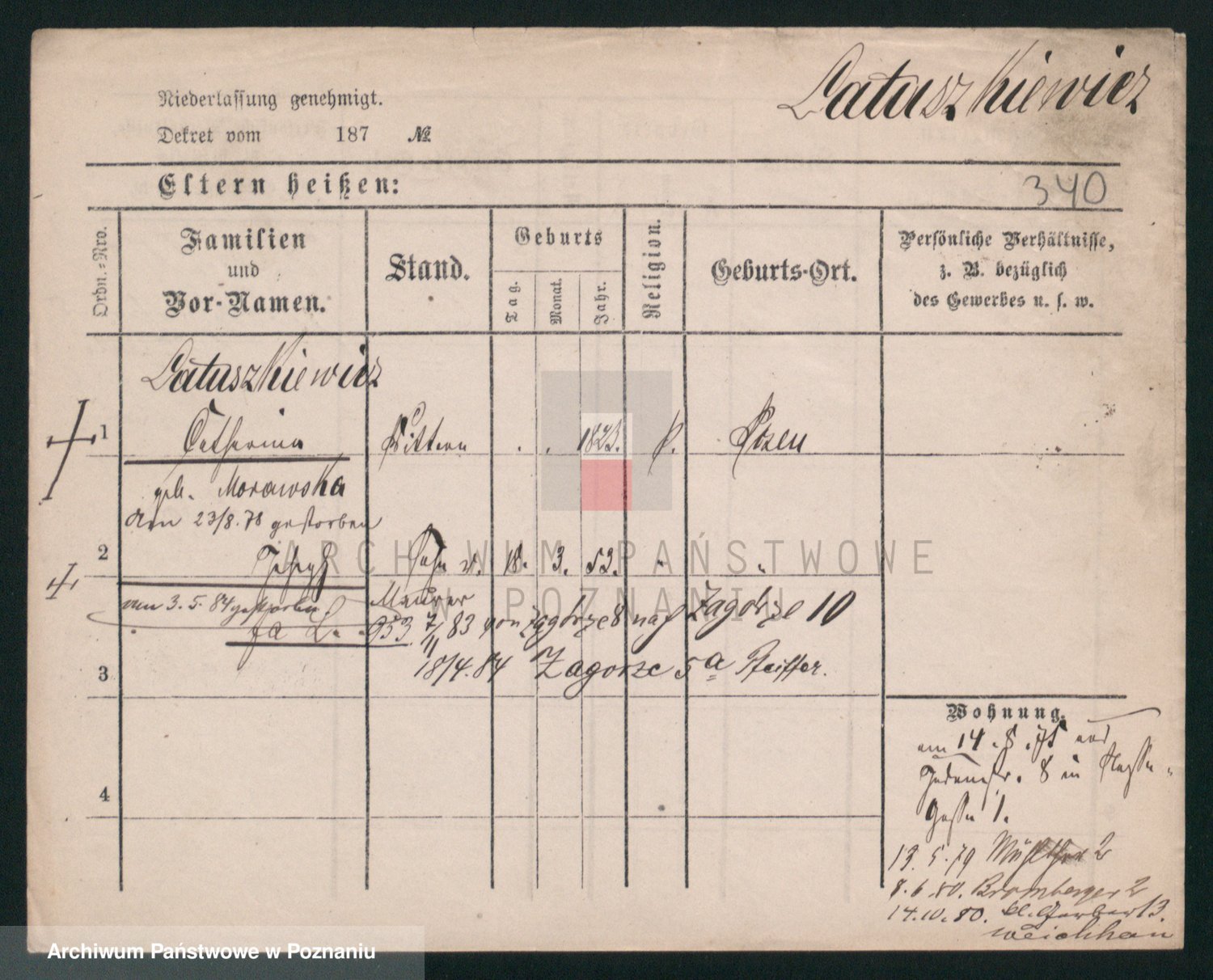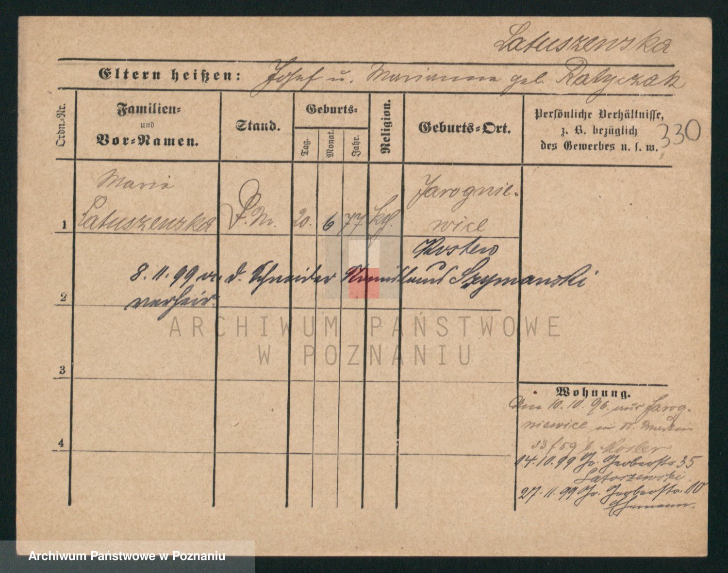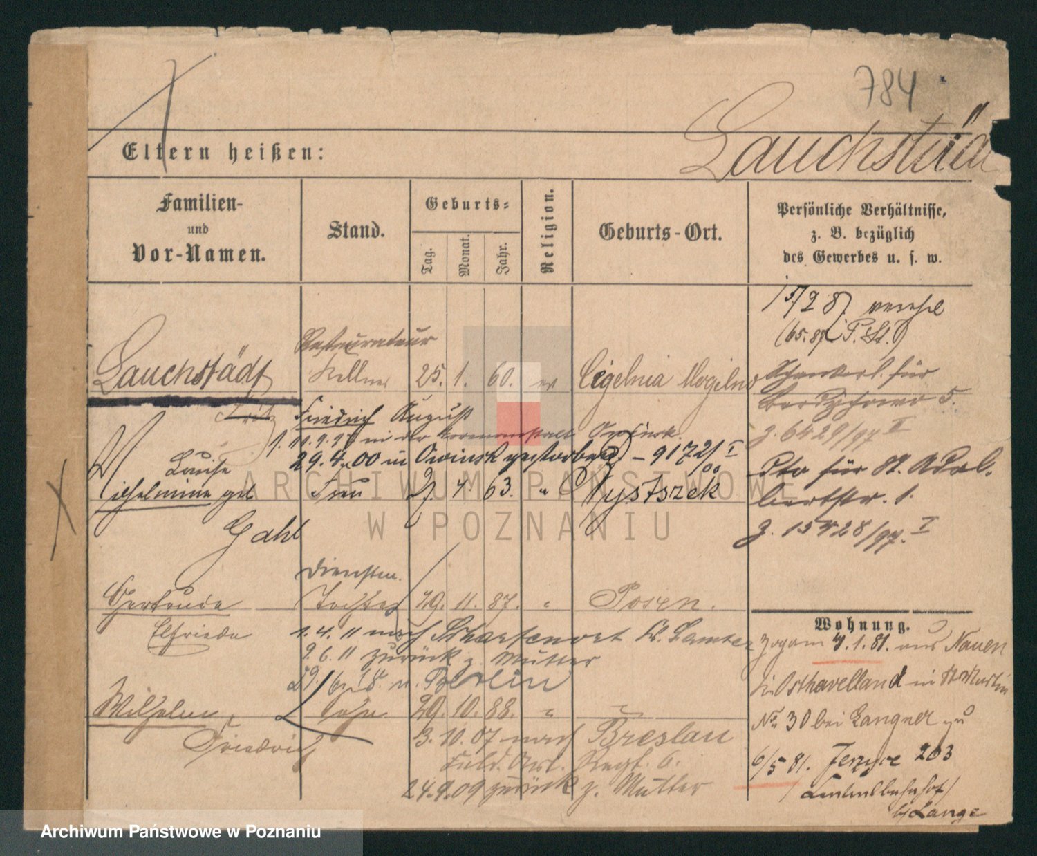 Podgląd karty osobowej dostępny jest po kliknięciu na nazwisko lub ikonkę karty. Można dokonywać powiększenia (ikony na górze) lub przechodzić między kolejnymi skanami (strzałki po bokach).