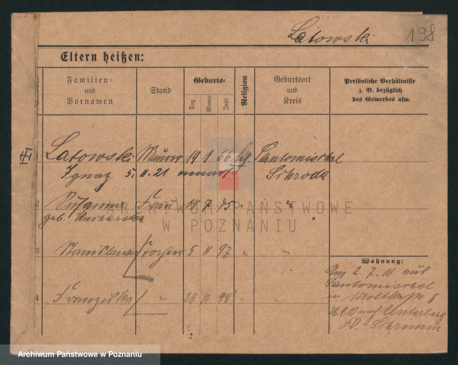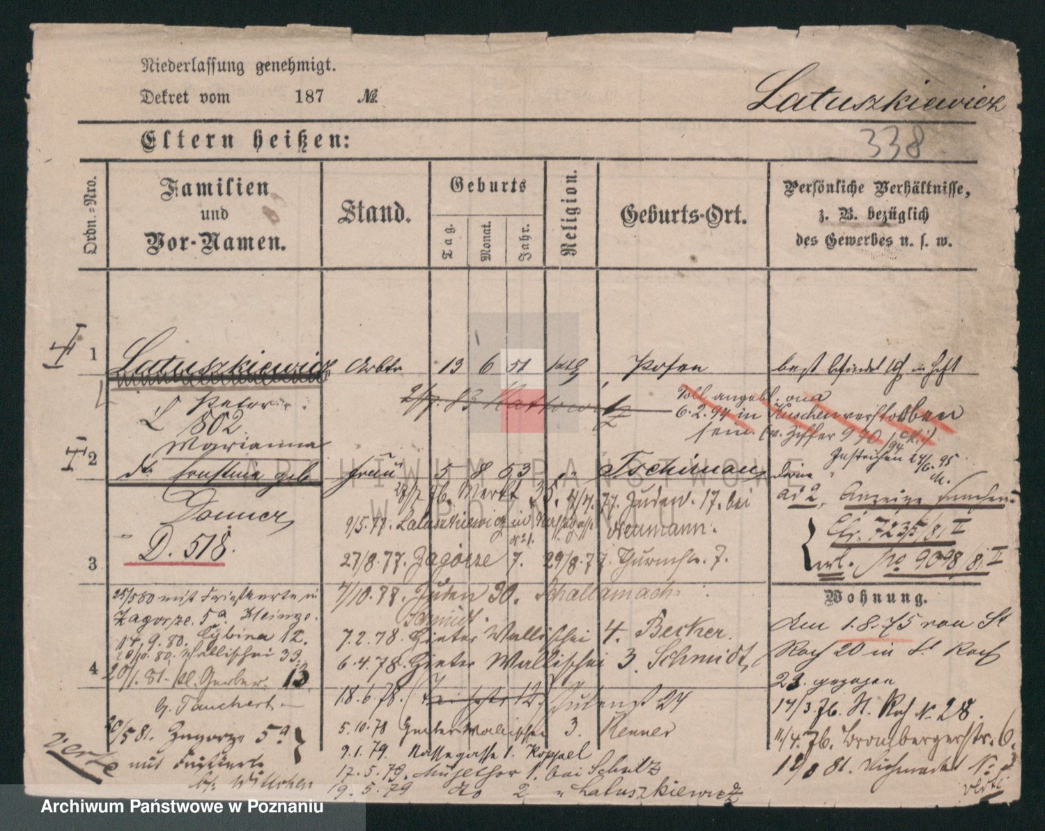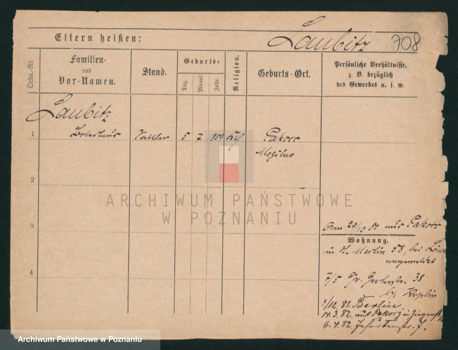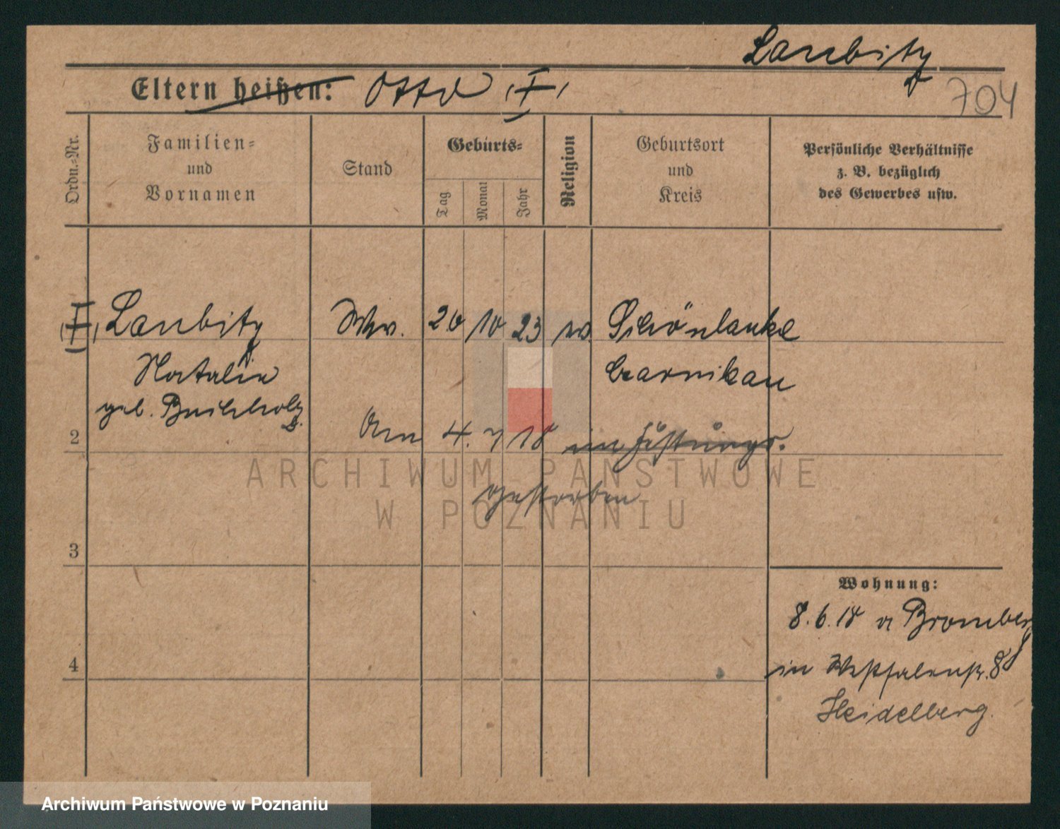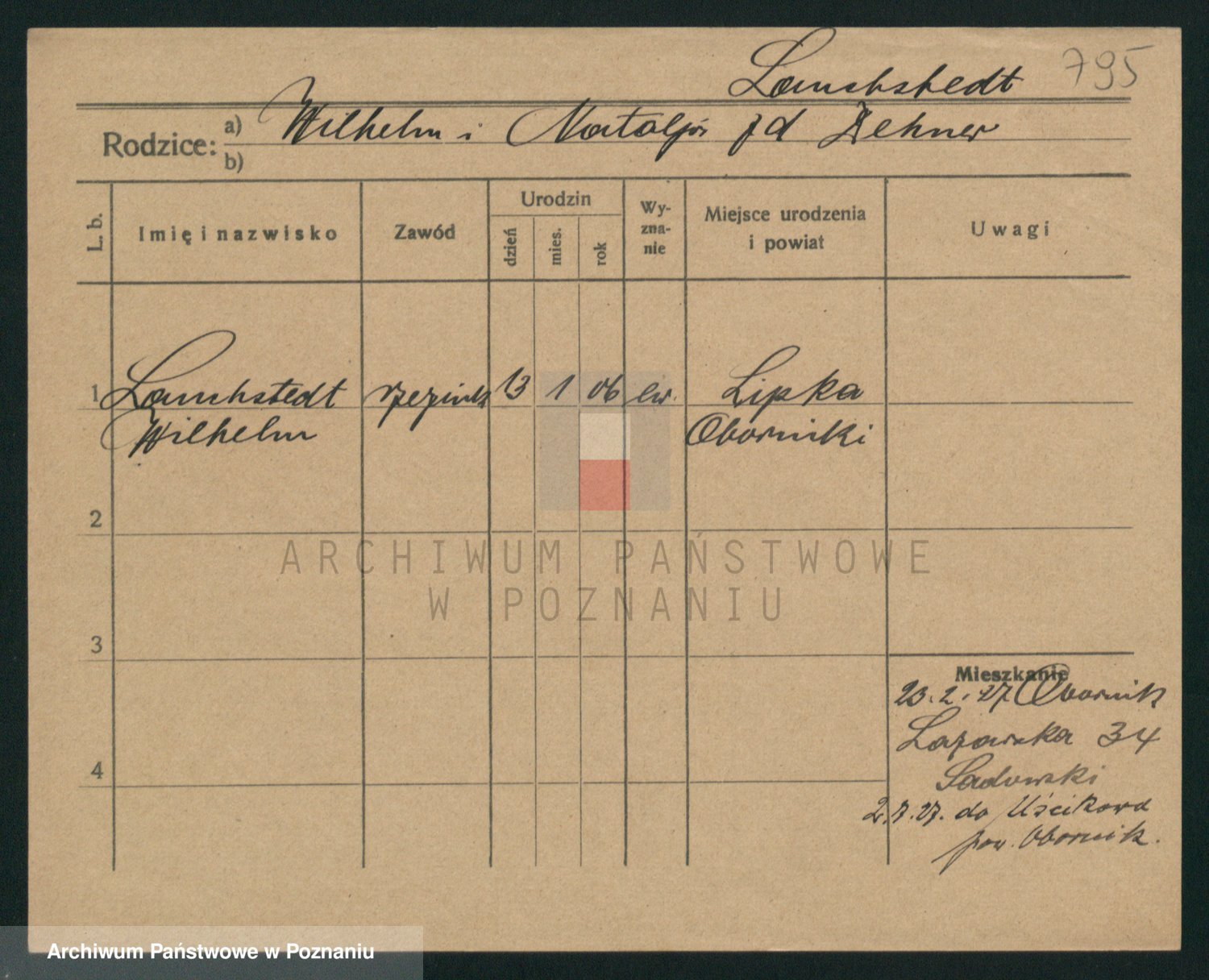 Podgląd karty osobowej dostępny jest po kliknięciu na nazwisko lub ikonkę karty. Można dokonywać powiększenia (ikony na górze) lub przechodzić między kolejnymi skanami (strzałki po bokach).