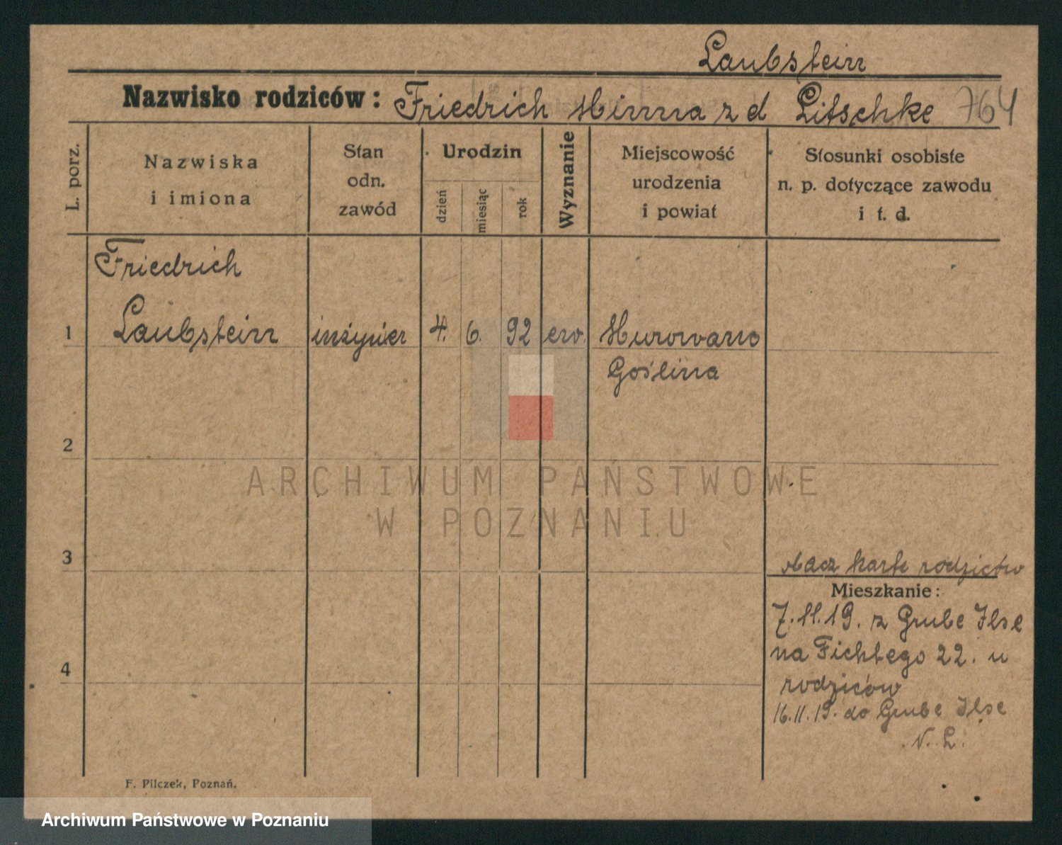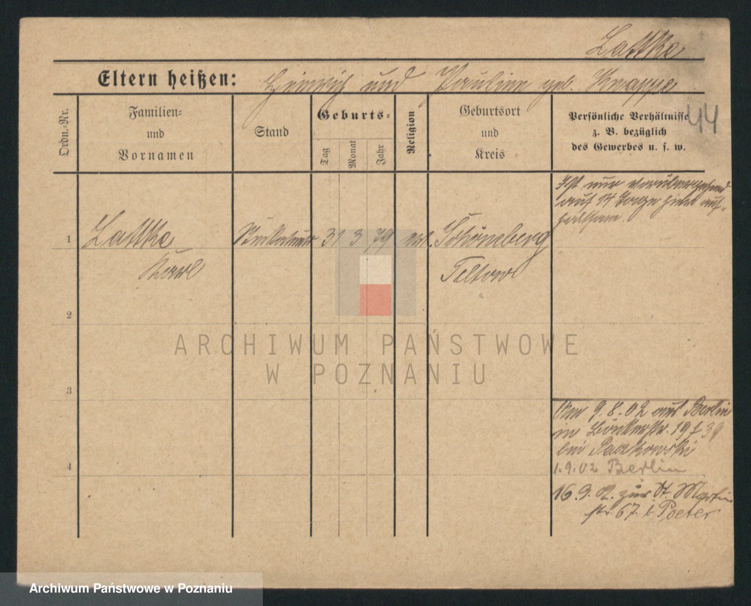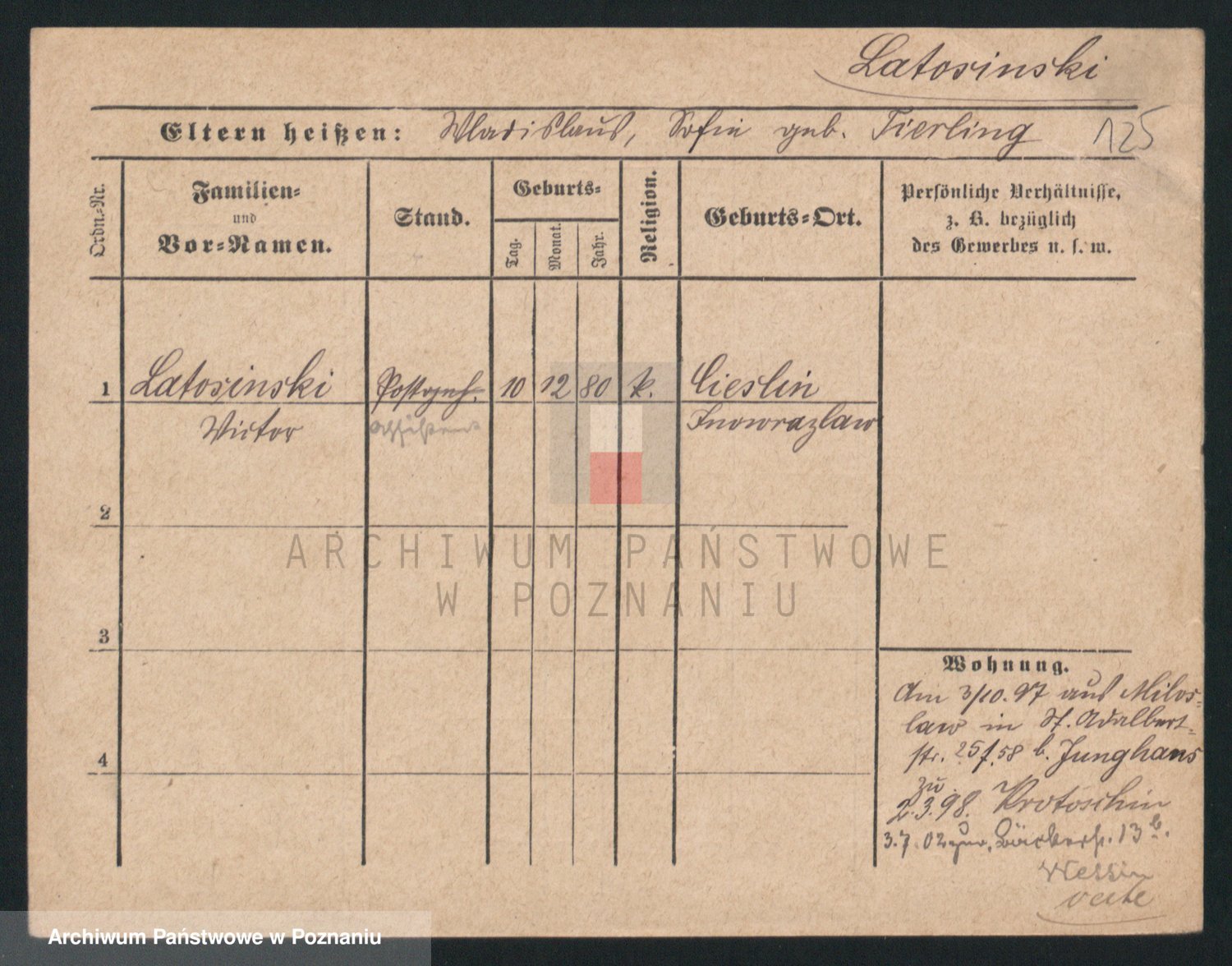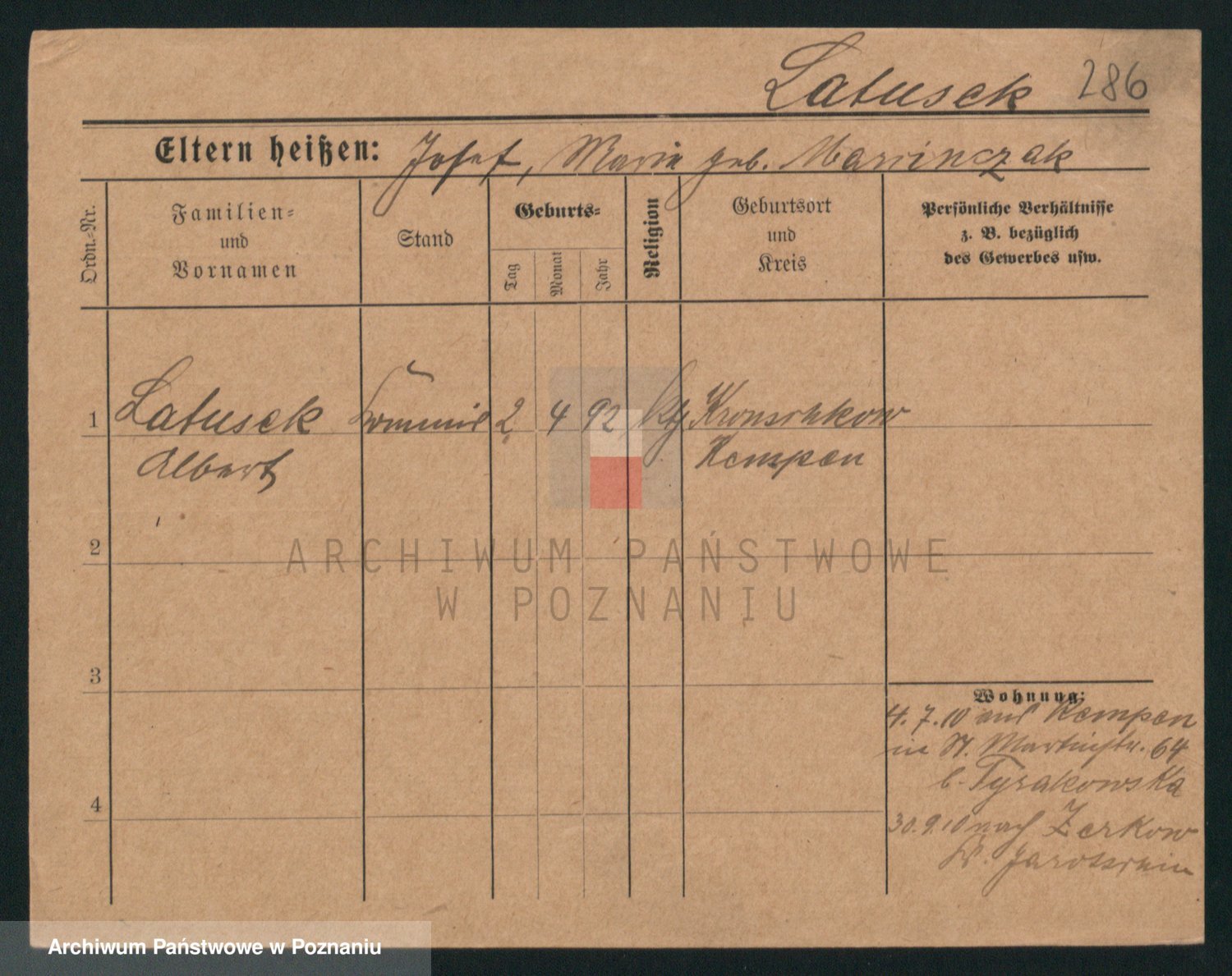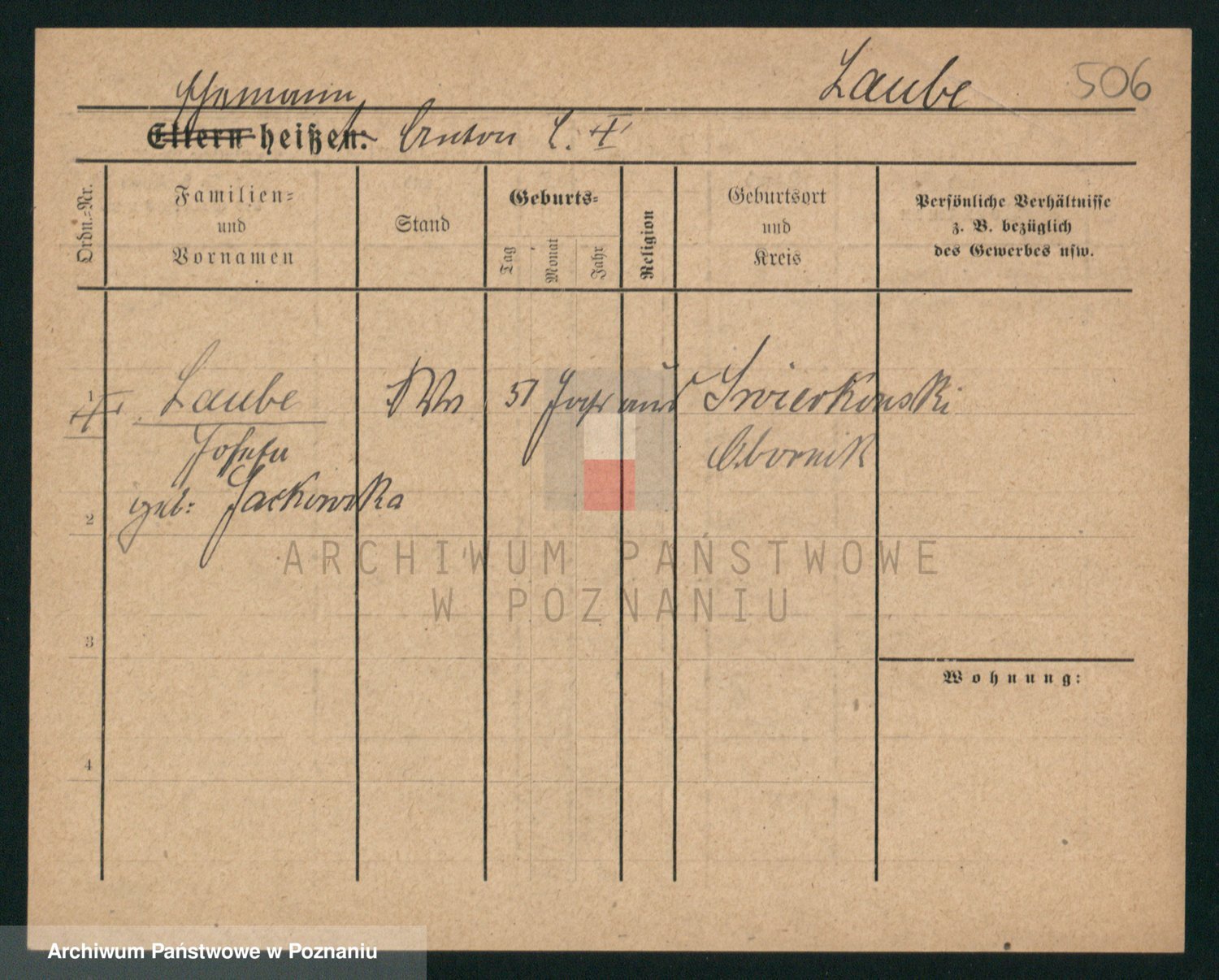 Podgląd karty osobowej dostępny jest po kliknięciu na nazwisko lub ikonkę karty. Można dokonywać powiększenia (ikony na górze) lub przechodzić między kolejnymi skanami (strzałki po bokach).