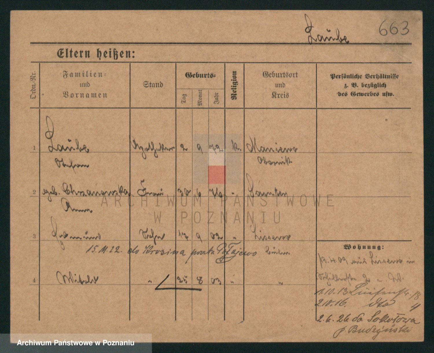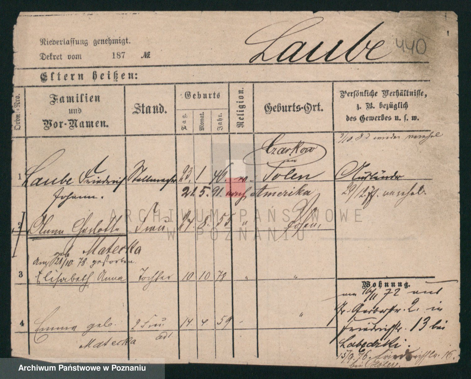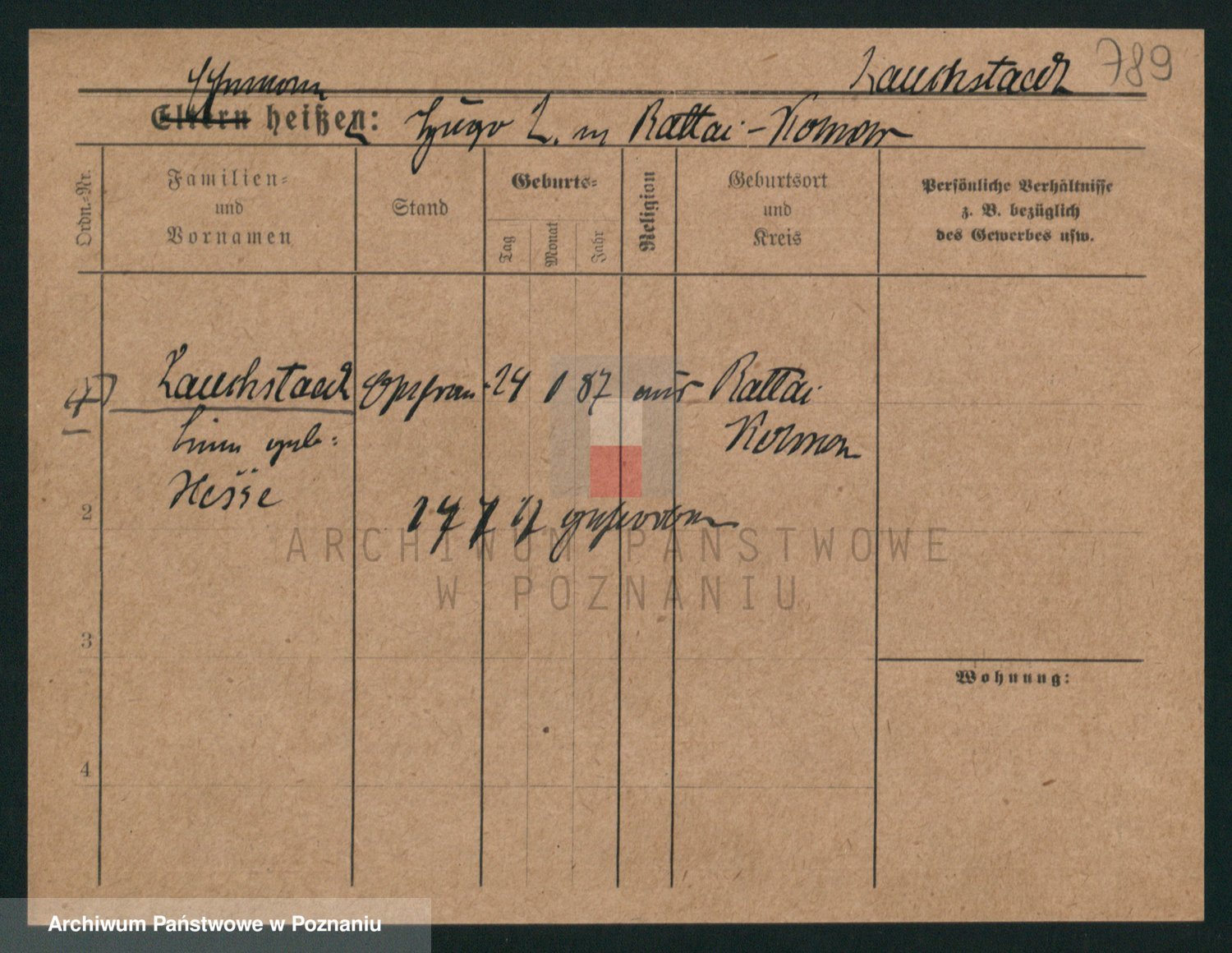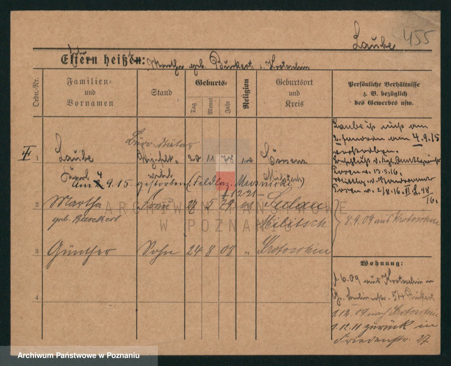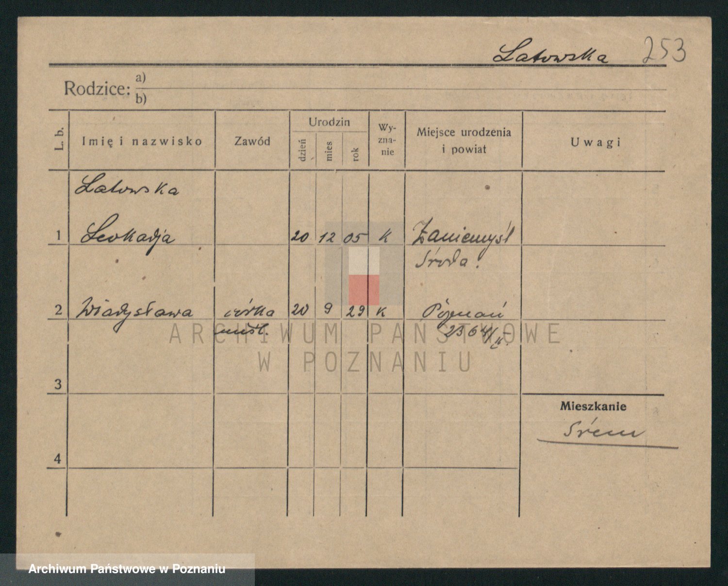 Podgląd karty osobowej dostępny jest po kliknięciu na nazwisko lub ikonkę karty. Można dokonywać powiększenia (ikony na górze) lub przechodzić między kolejnymi skanami (strzałki po bokach).