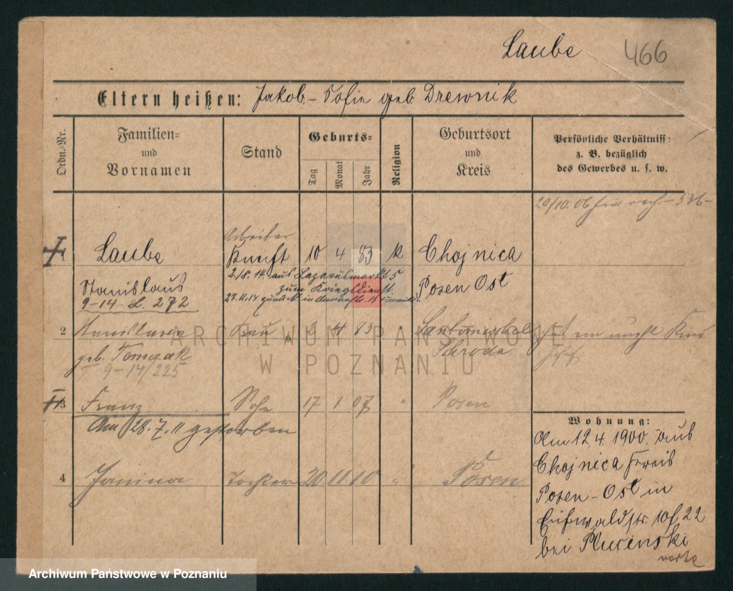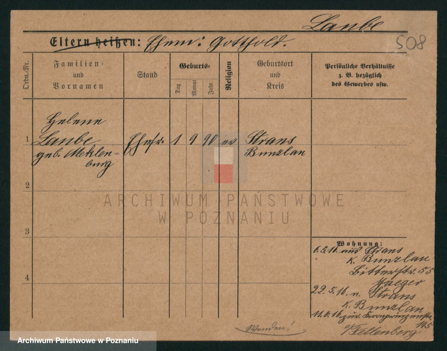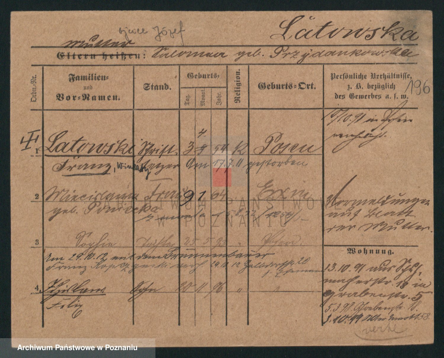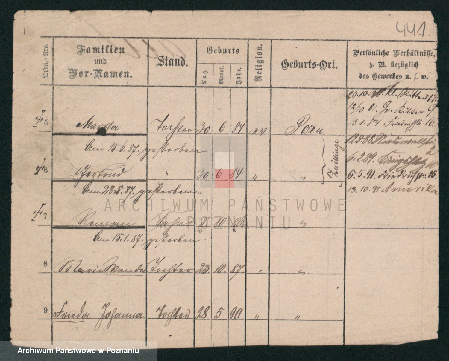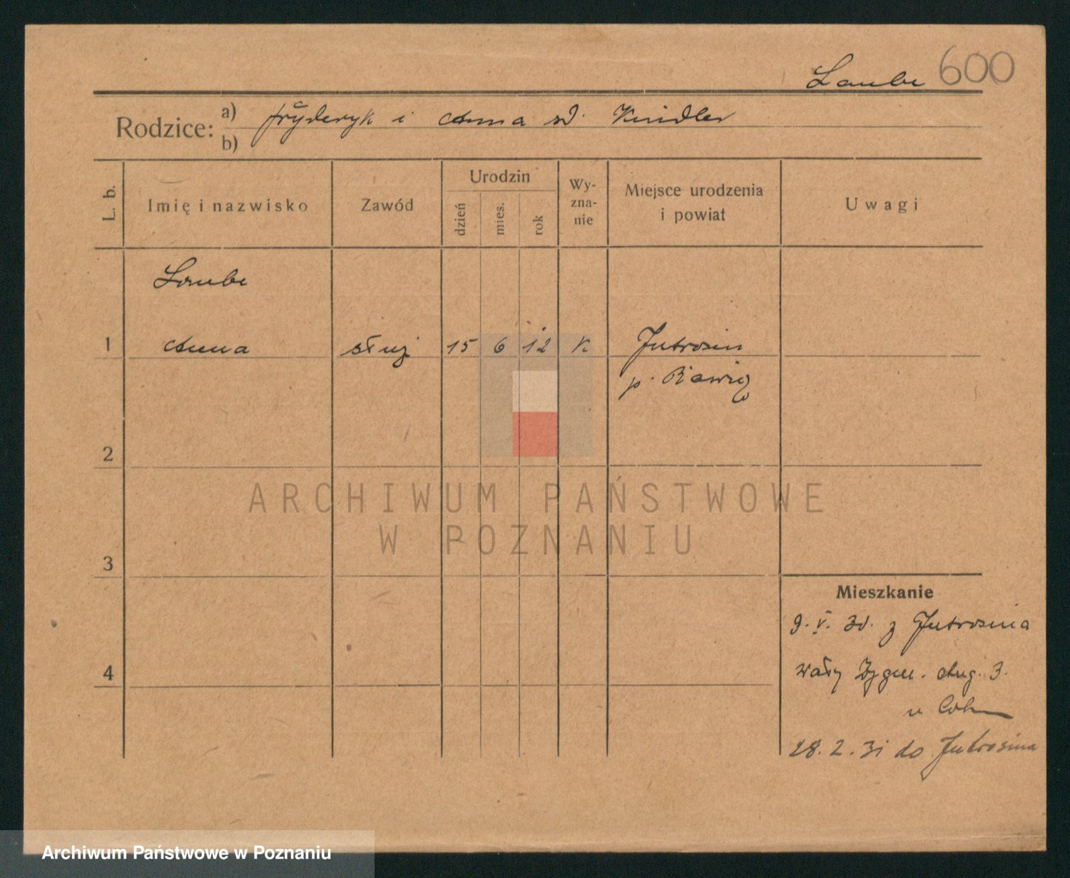 Podgląd karty osobowej dostępny jest po kliknięciu na nazwisko lub ikonkę karty. Można dokonywać powiększenia (ikony na górze) lub przechodzić między kolejnymi skanami (strzałki po bokach).
