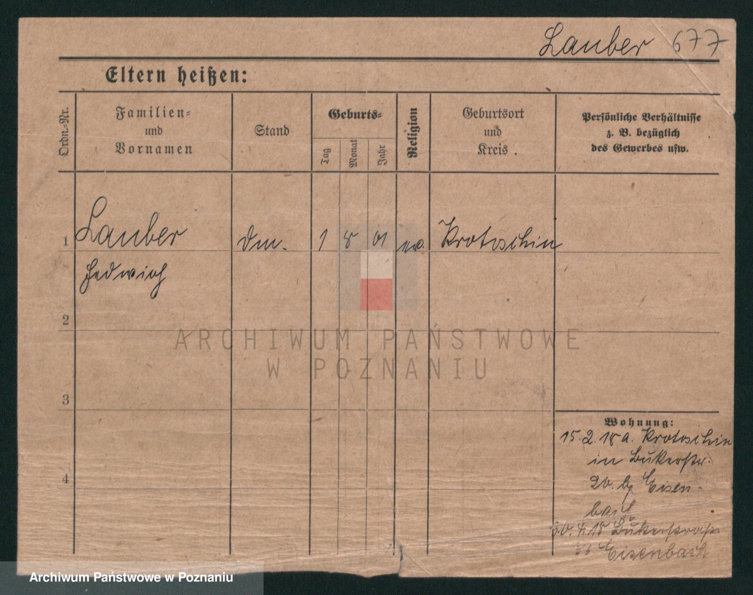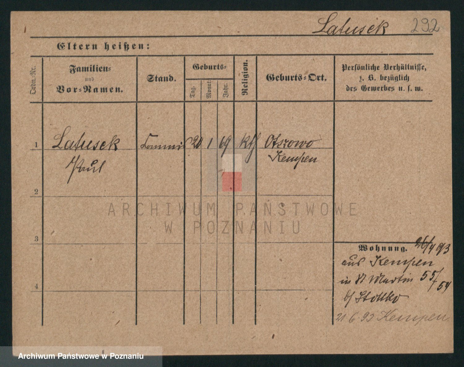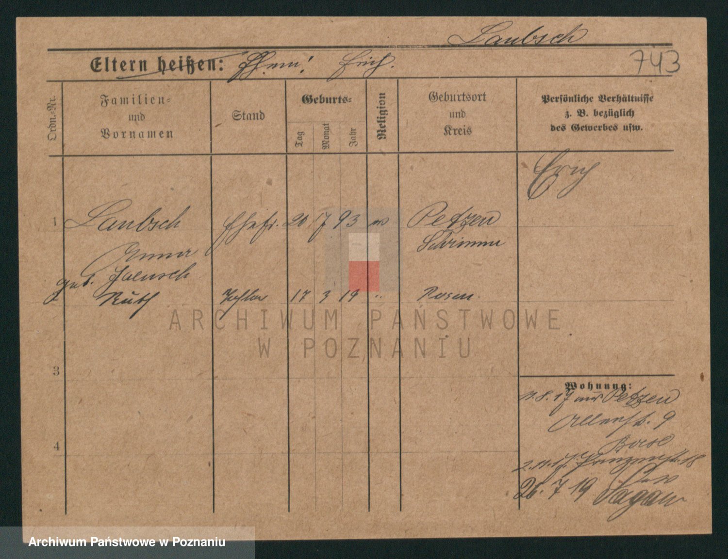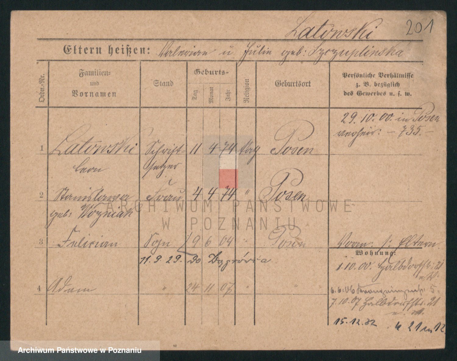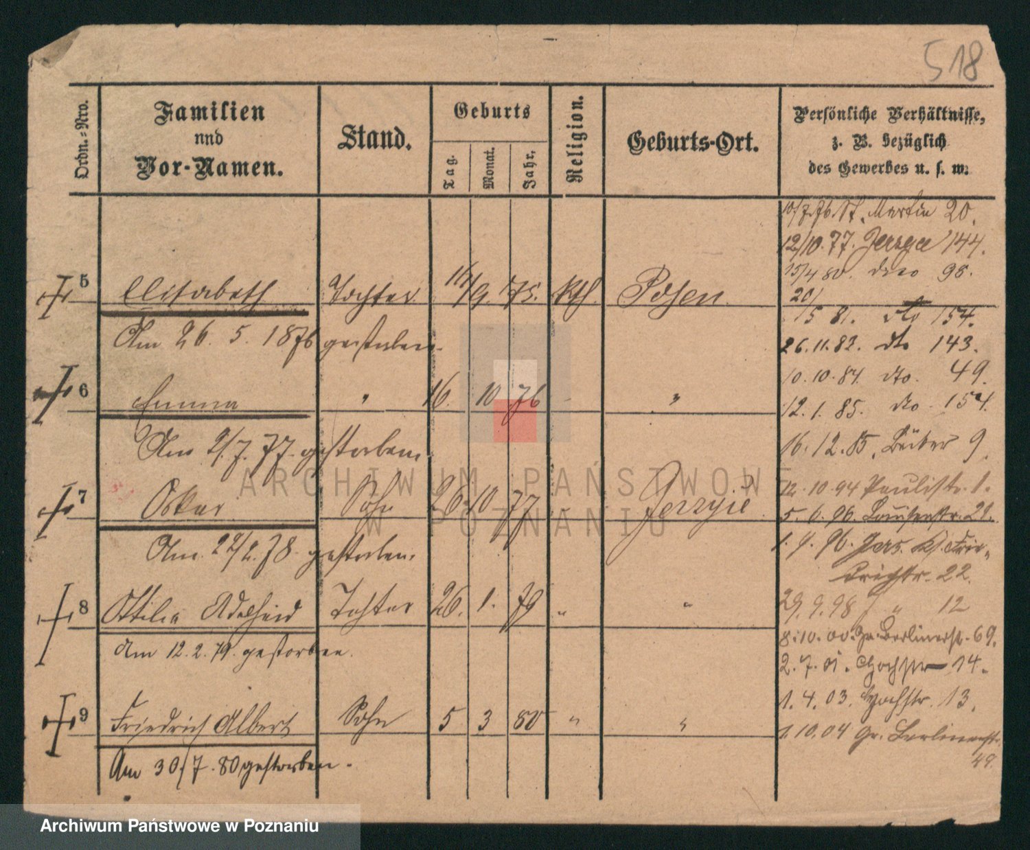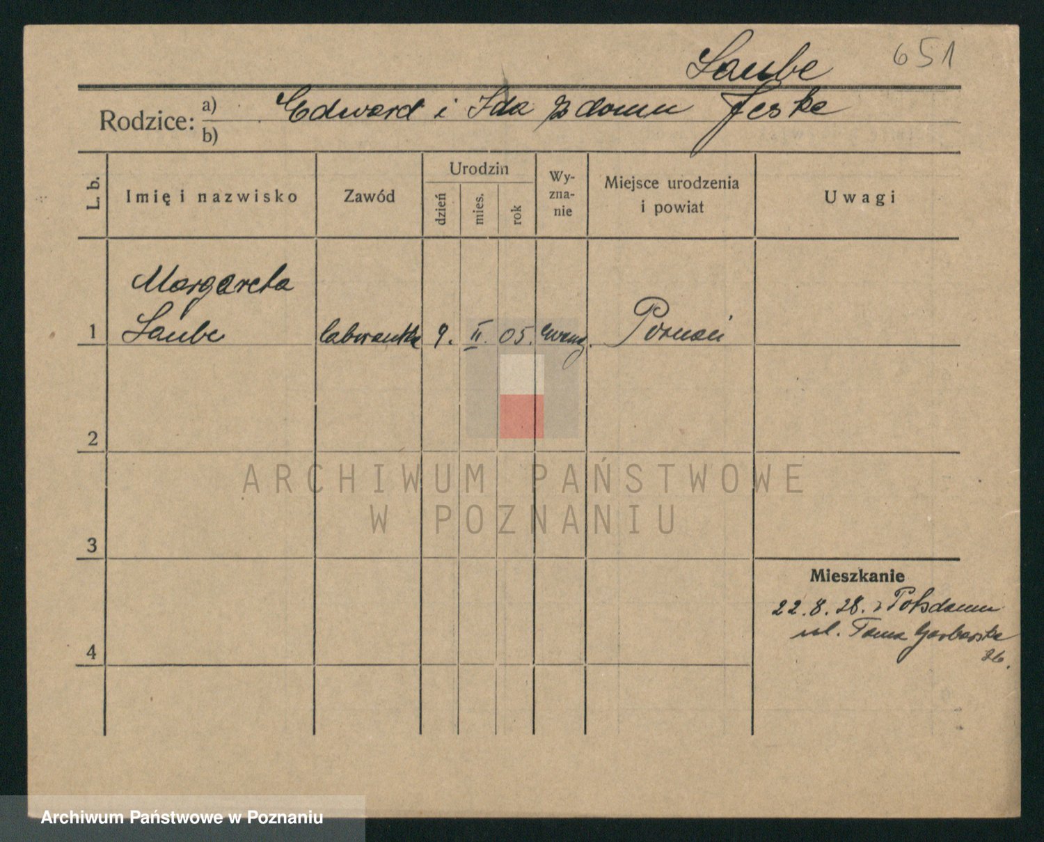 Podgląd karty osobowej dostępny jest po kliknięciu na nazwisko lub ikonkę karty. Można dokonywać powiększenia (ikony na górze) lub przechodzić między kolejnymi skanami (strzałki po bokach).