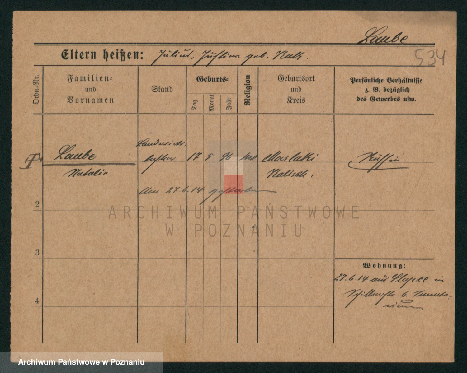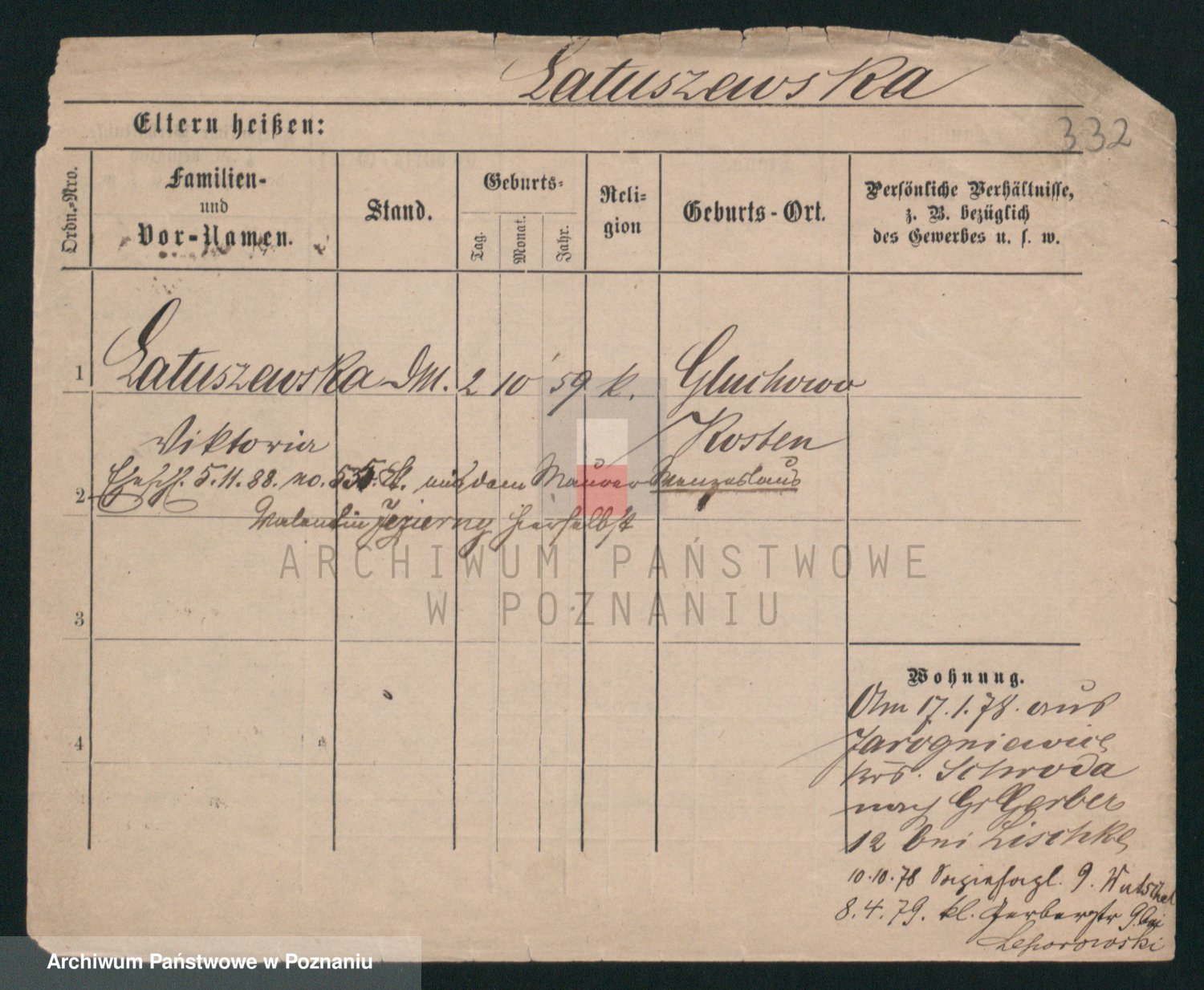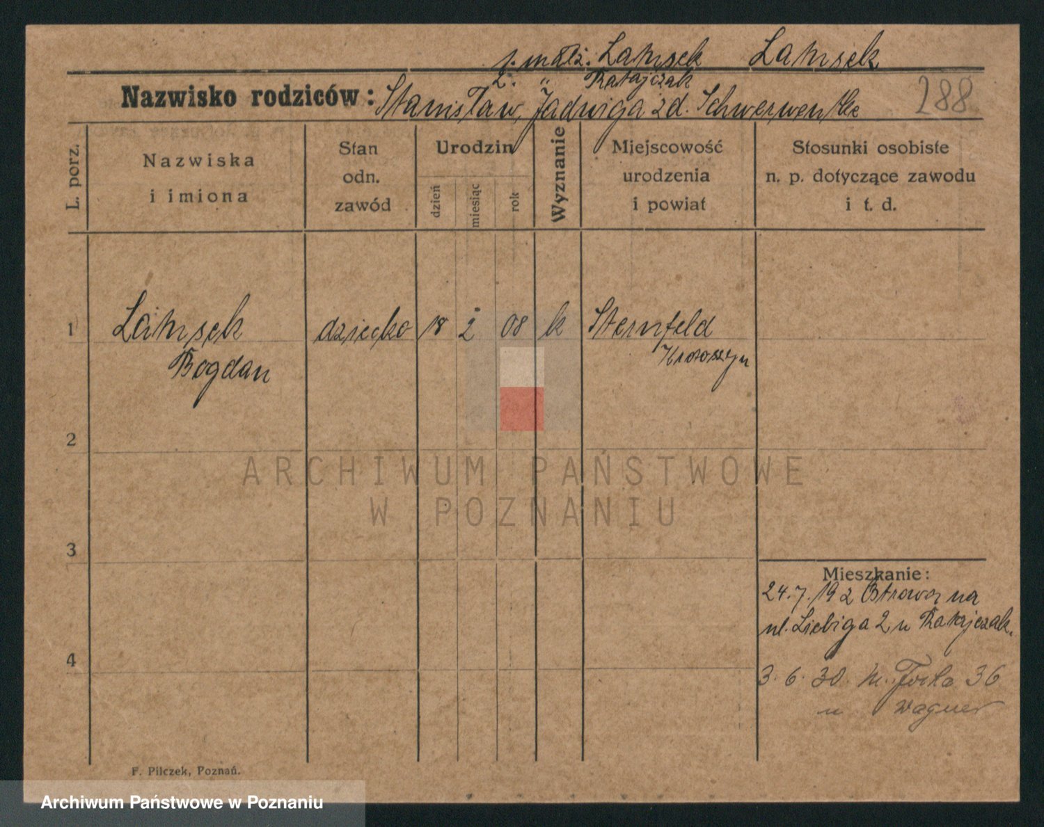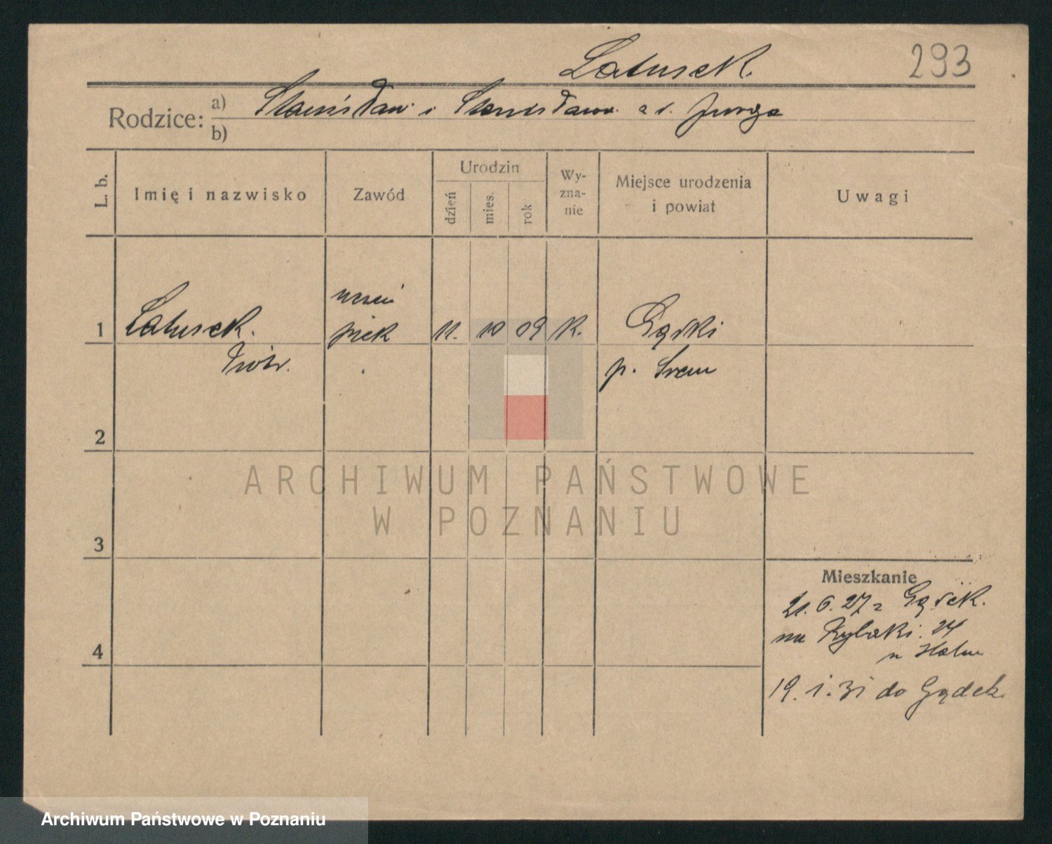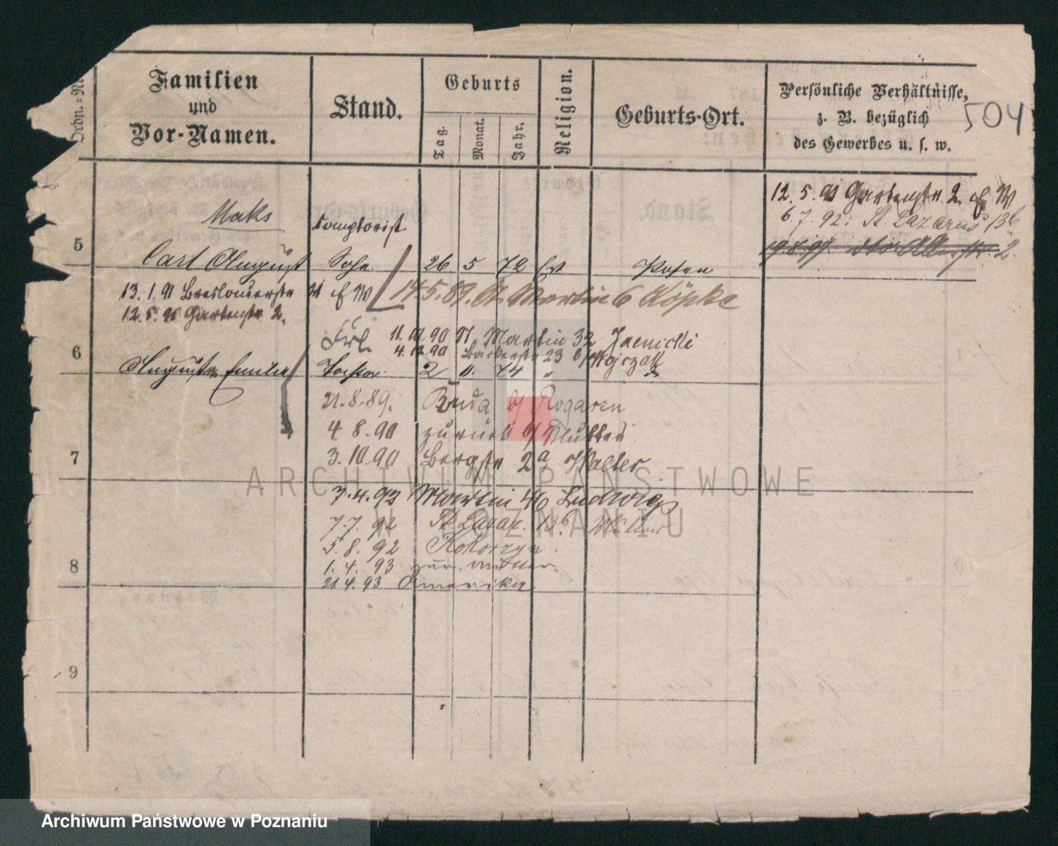 Podgląd karty osobowej dostępny jest po kliknięciu na nazwisko lub ikonkę karty. Można dokonywać powiększenia (ikony na górze) lub przechodzić między kolejnymi skanami (strzałki po bokach).