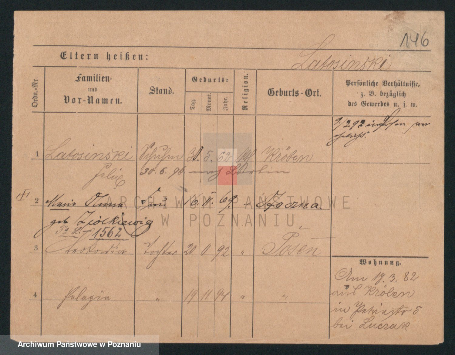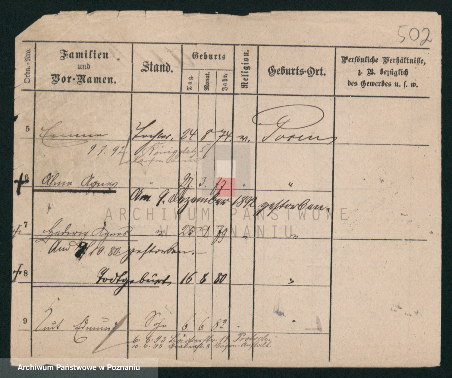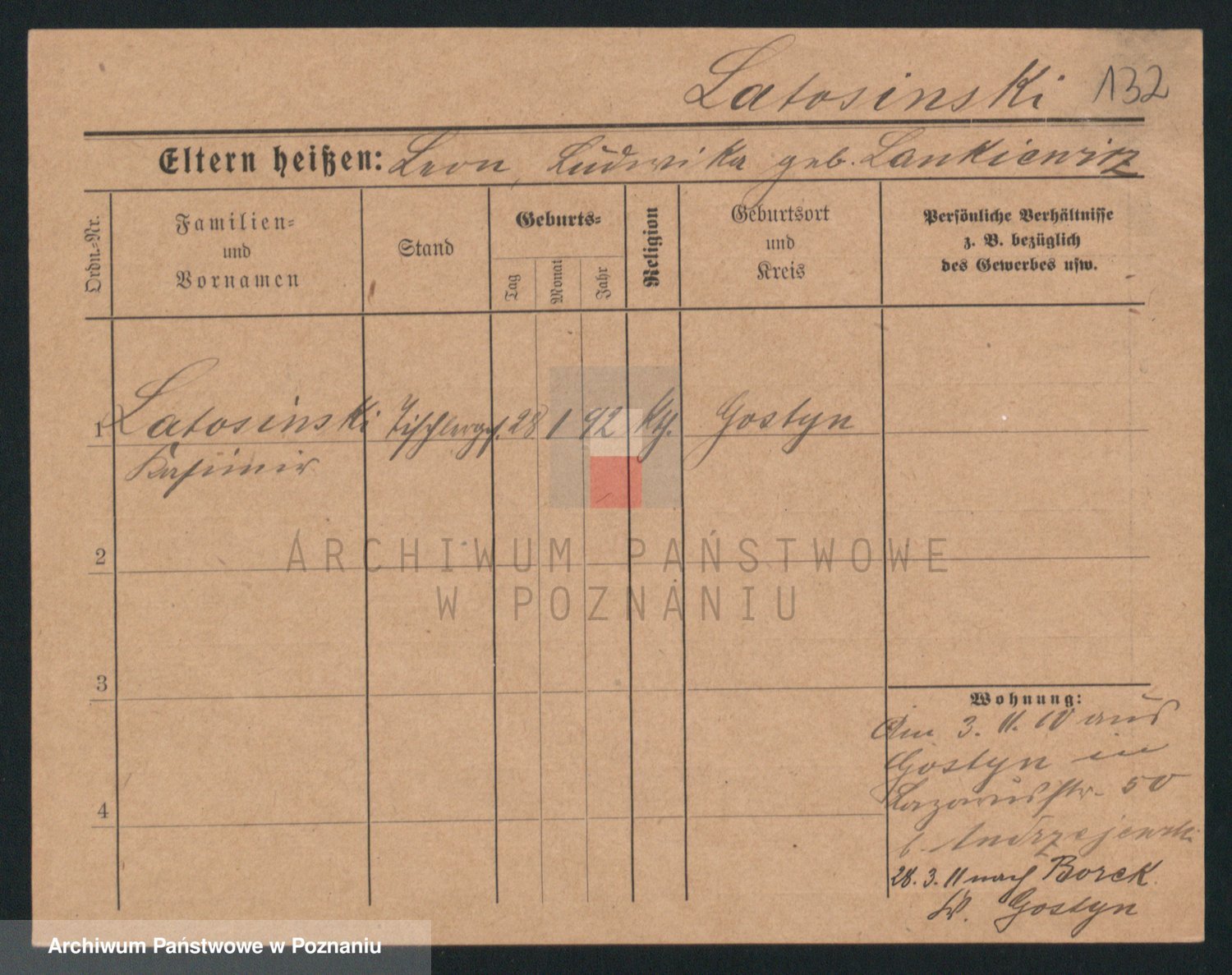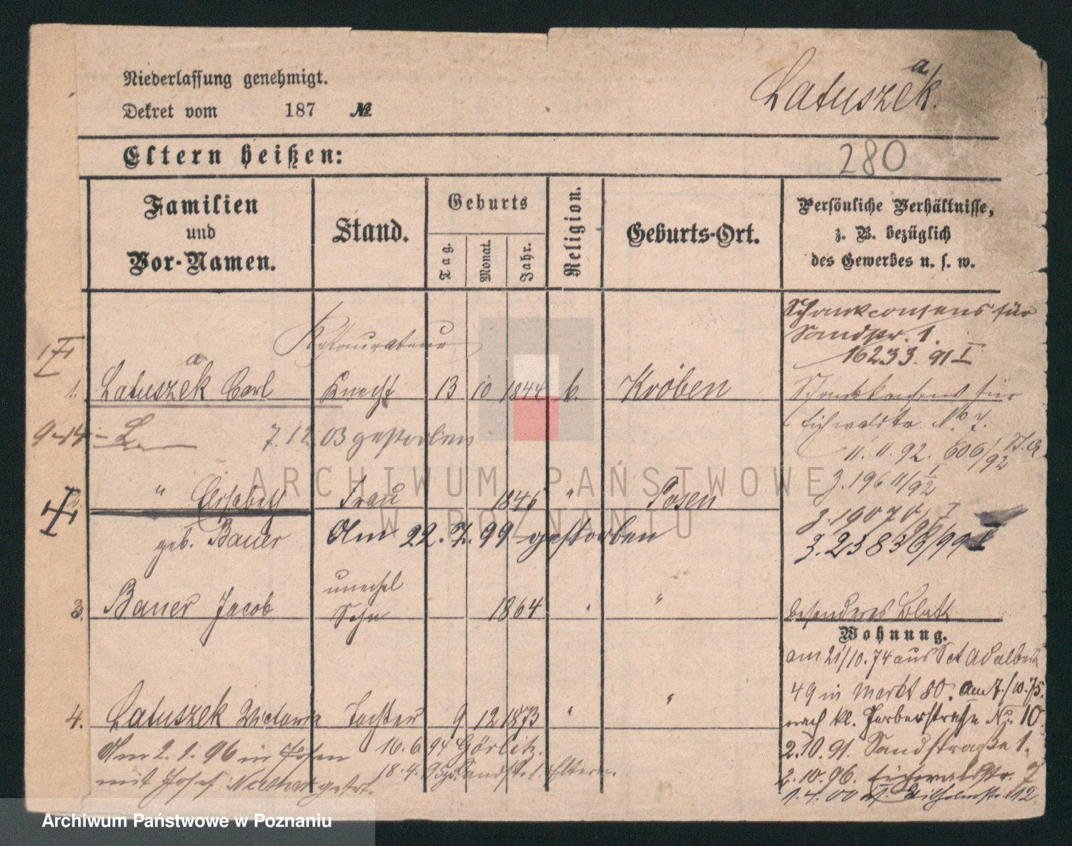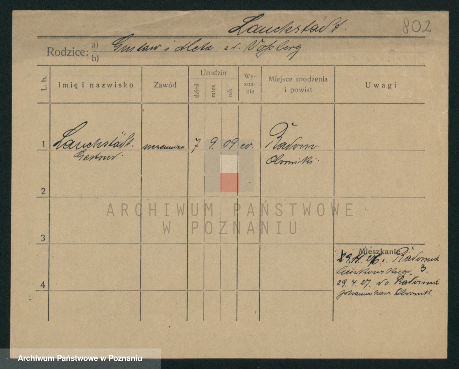 Podgląd karty osobowej dostępny jest po kliknięciu na nazwisko lub ikonkę karty. Można dokonywać powiększenia (ikony na górze) lub przechodzić między kolejnymi skanami (strzałki po bokach).