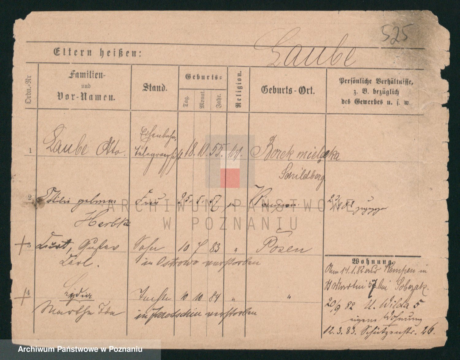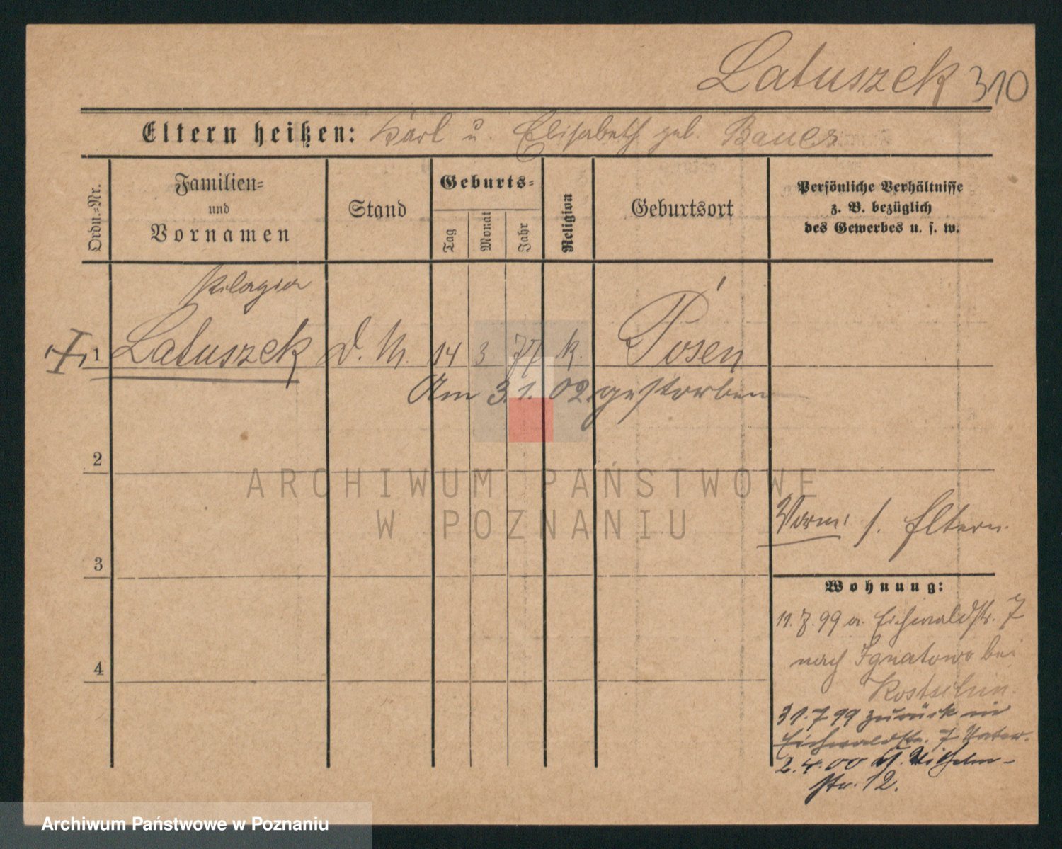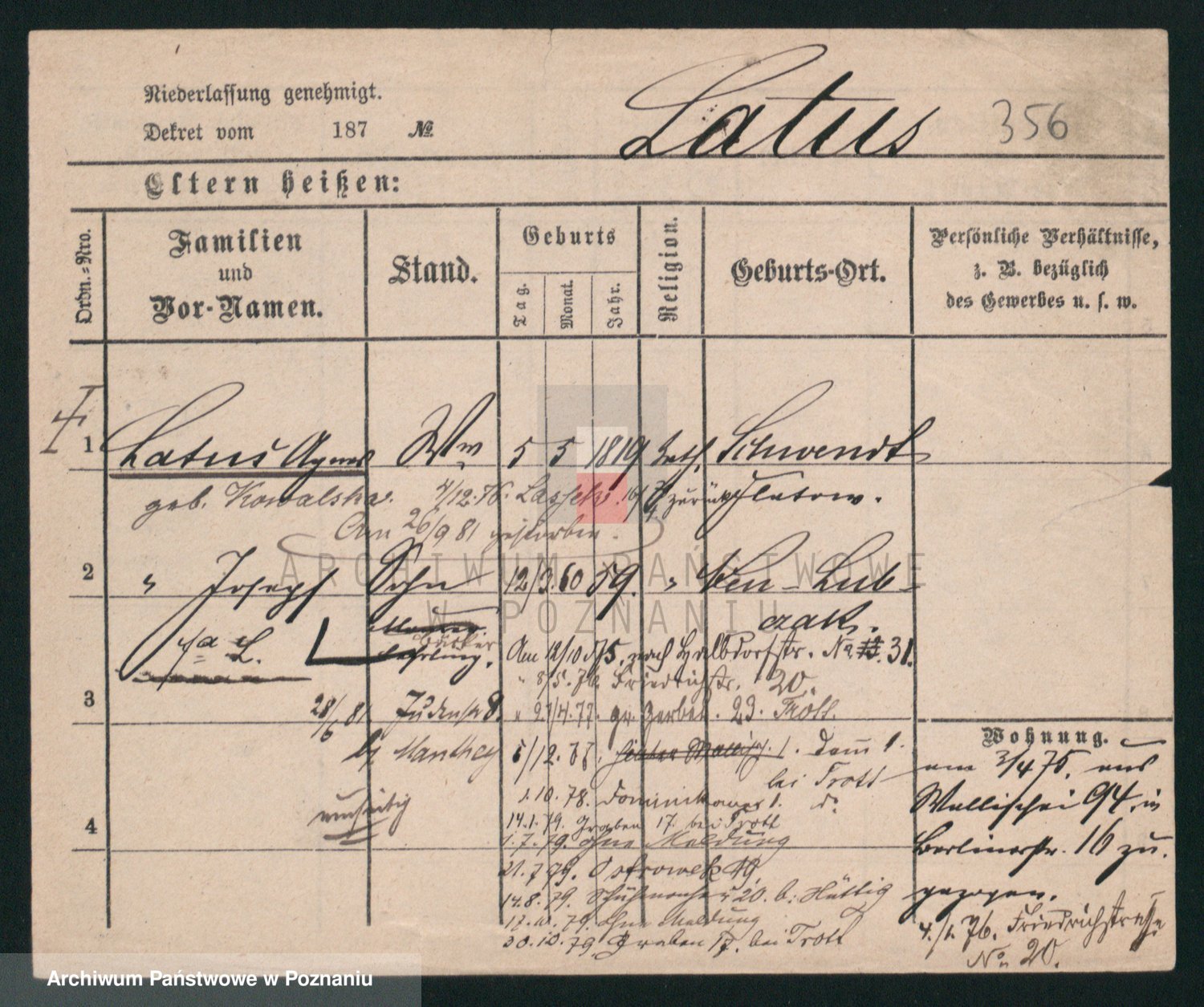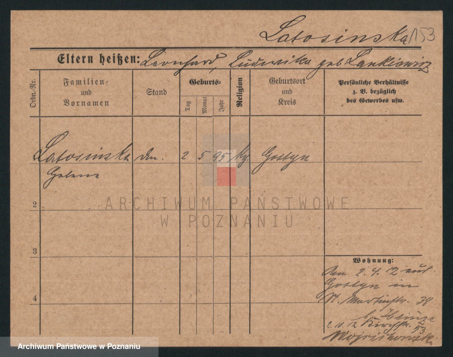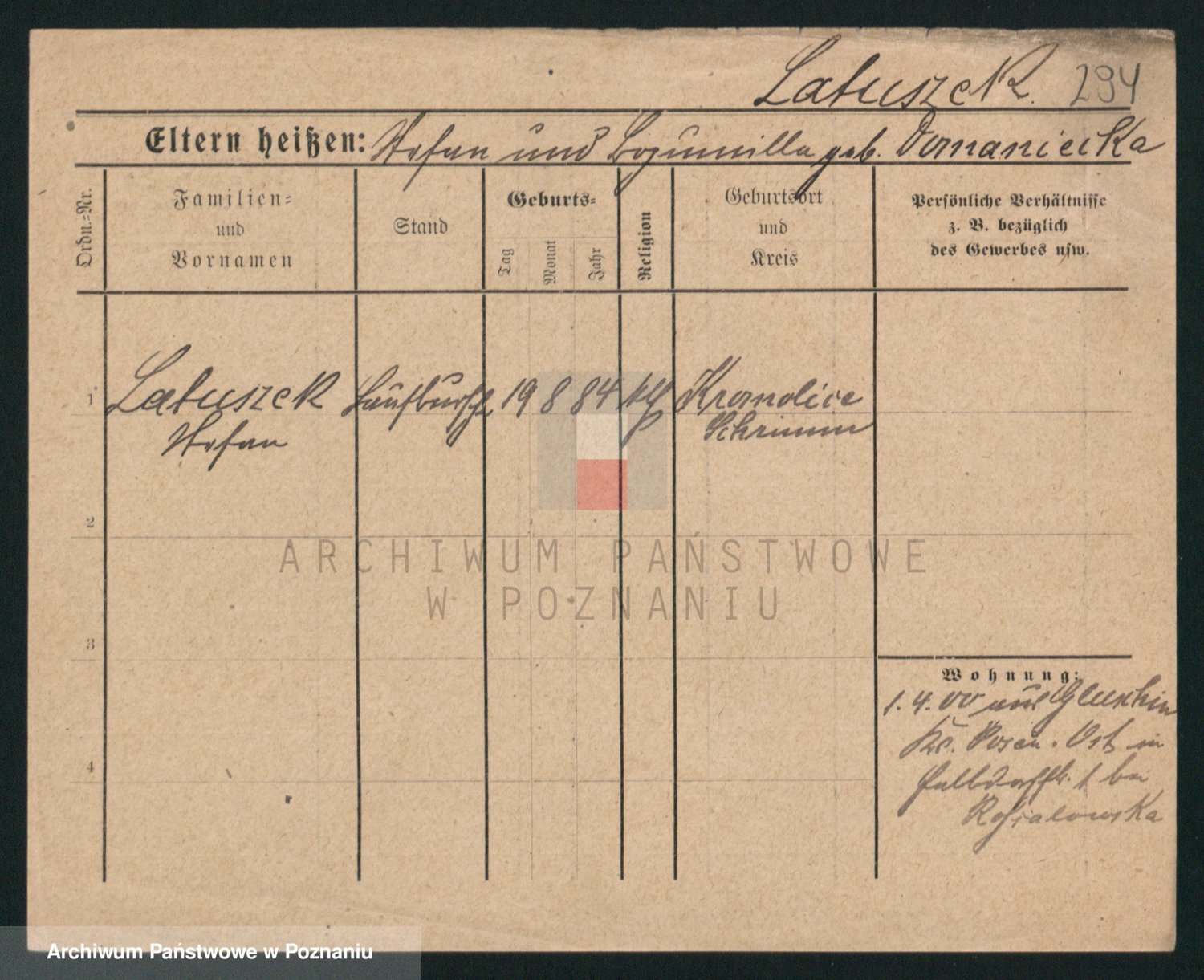 Podgląd karty osobowej dostępny jest po kliknięciu na nazwisko lub ikonkę karty. Można dokonywać powiększenia (ikony na górze) lub przechodzić między kolejnymi skanami (strzałki po bokach).