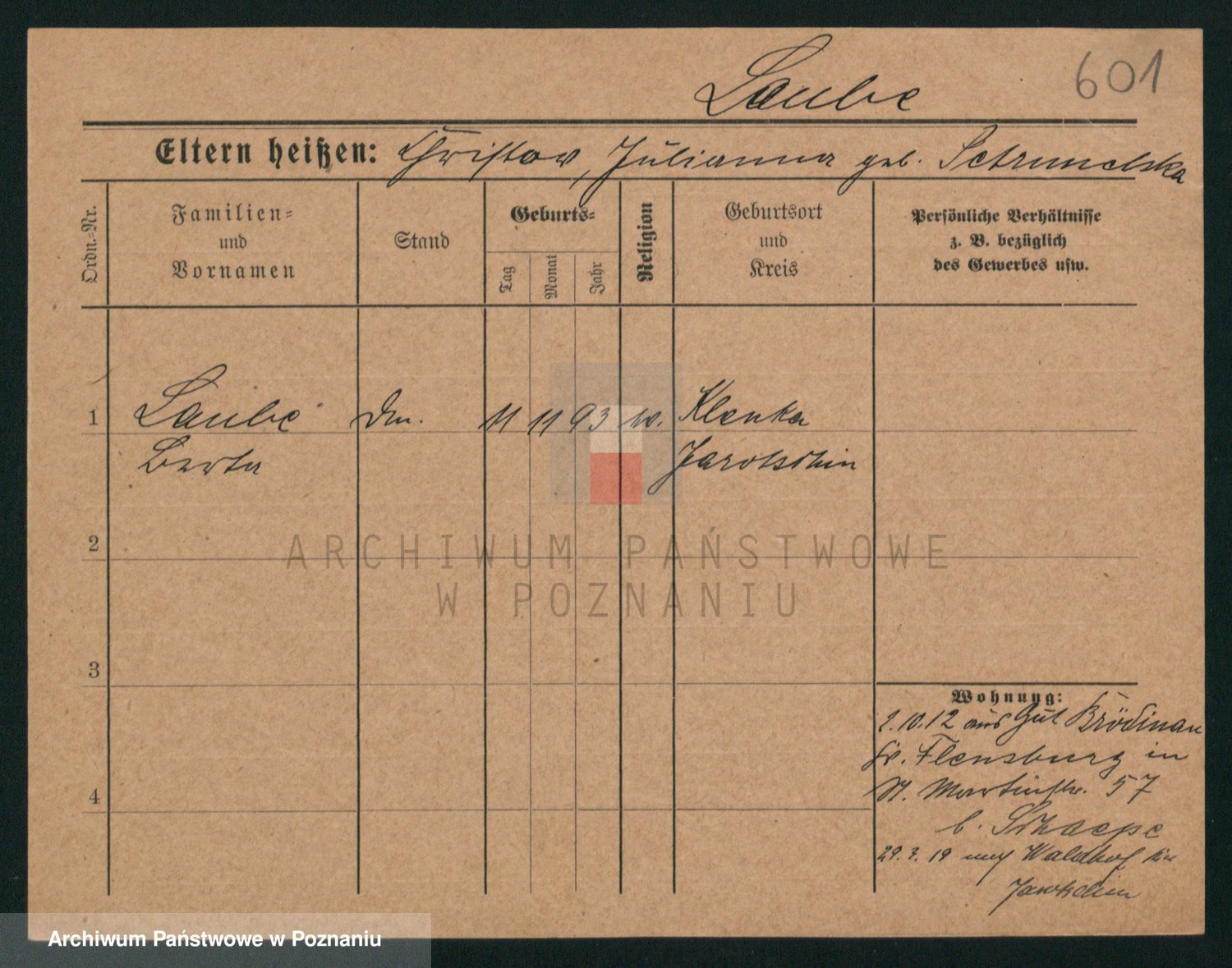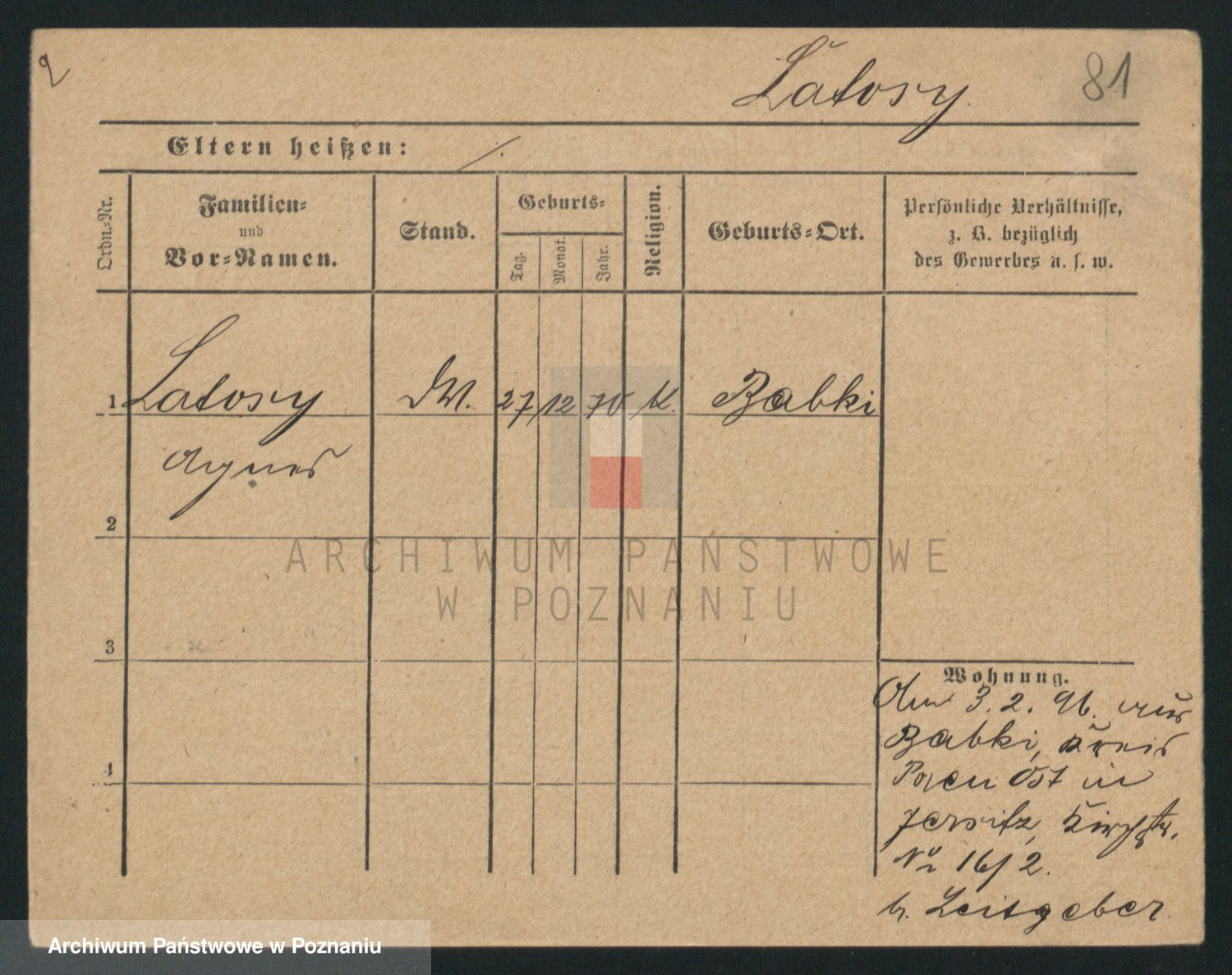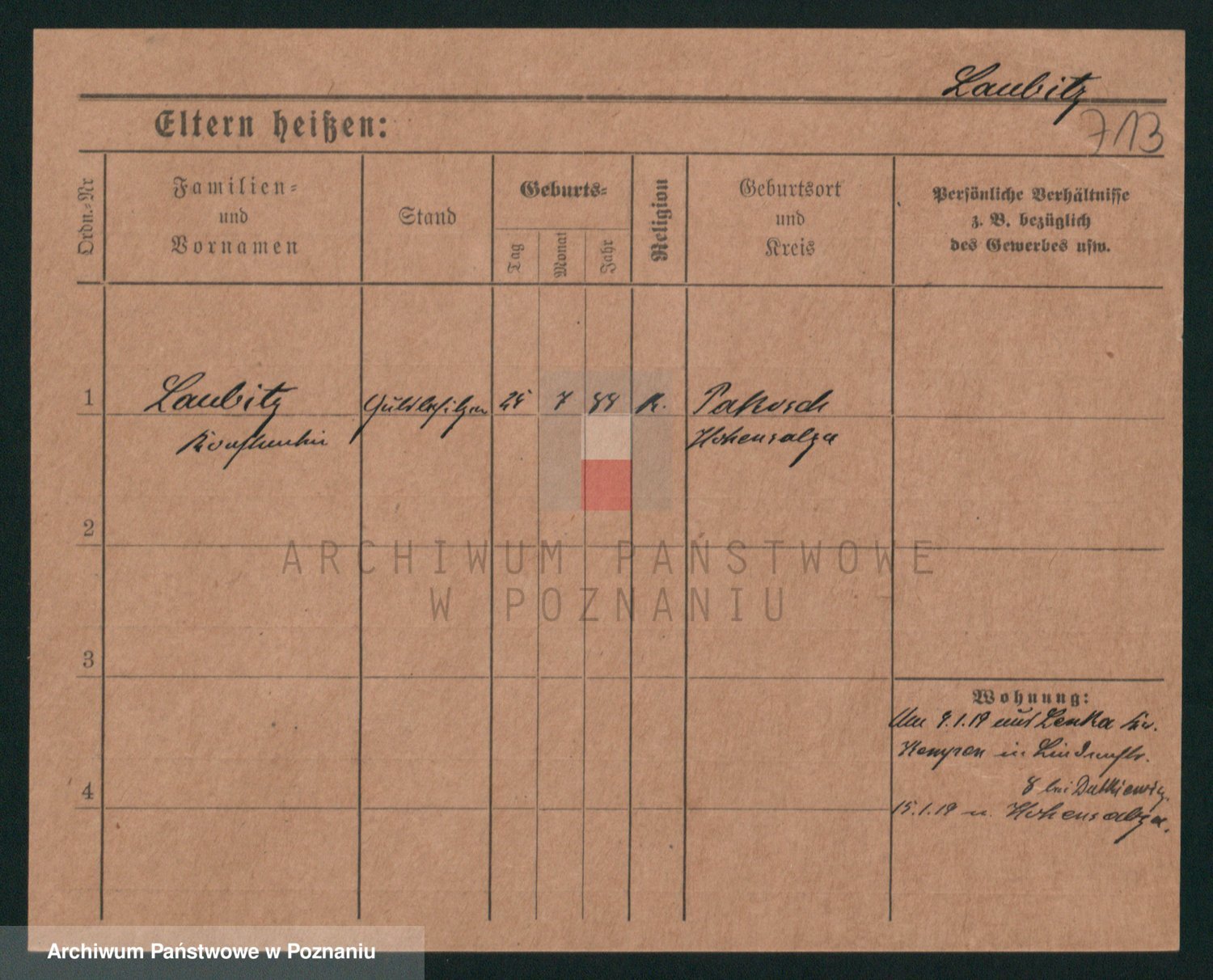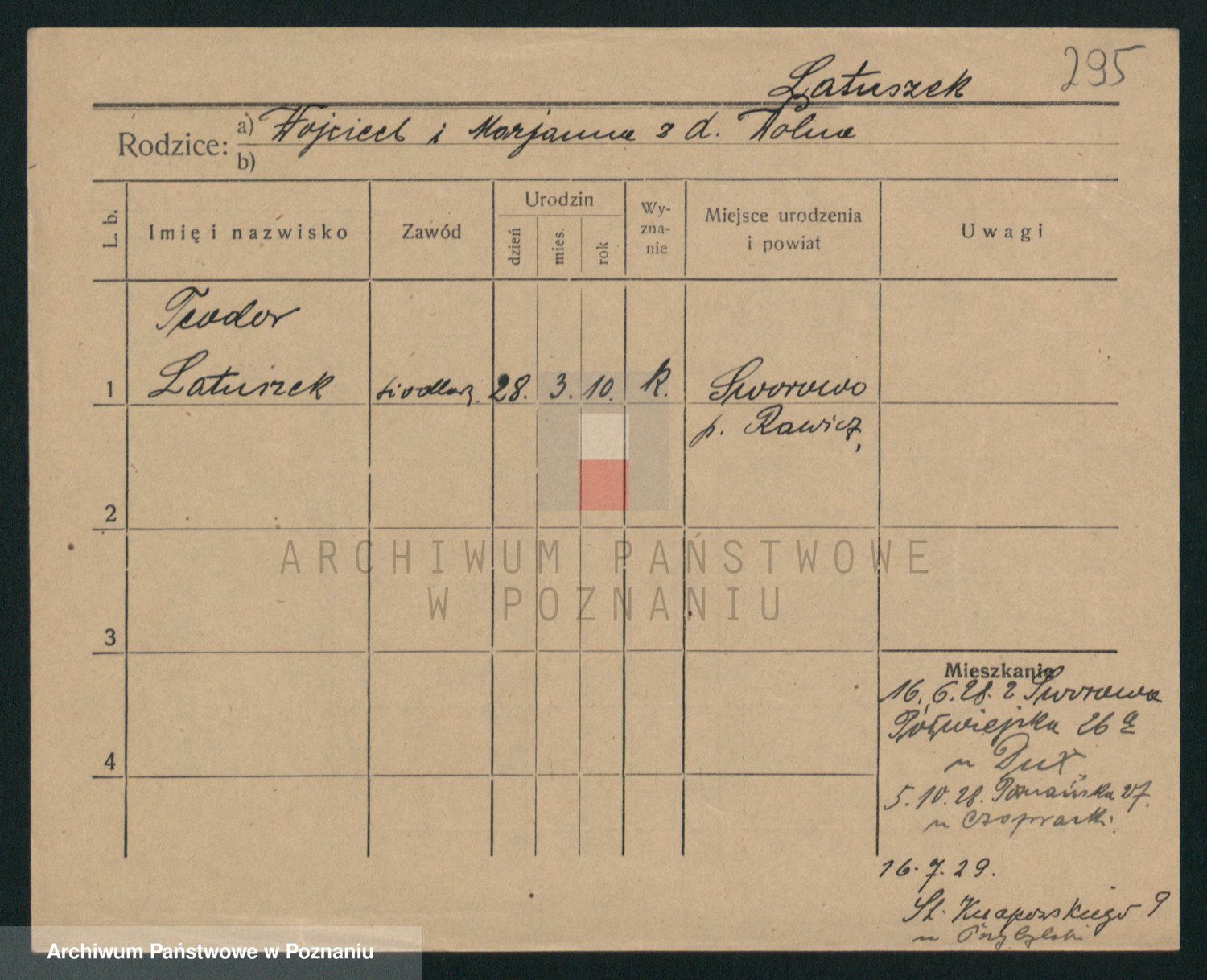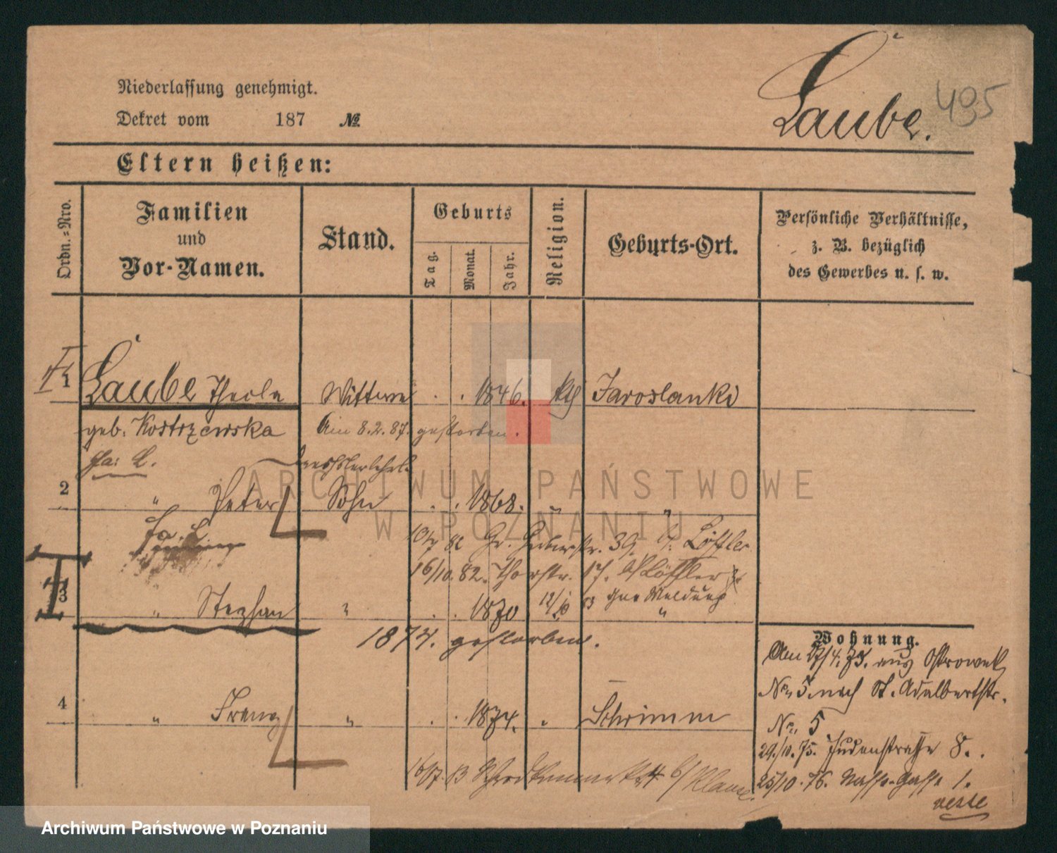 Podgląd karty osobowej dostępny jest po kliknięciu na nazwisko lub ikonkę karty. Można dokonywać powiększenia (ikony na górze) lub przechodzić między kolejnymi skanami (strzałki po bokach).