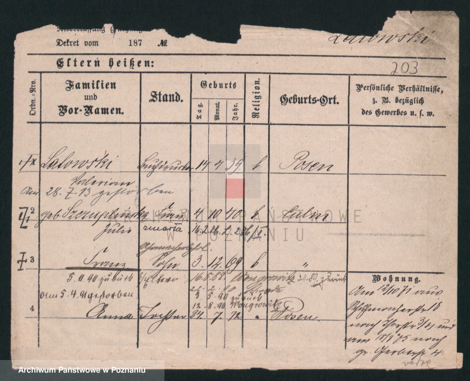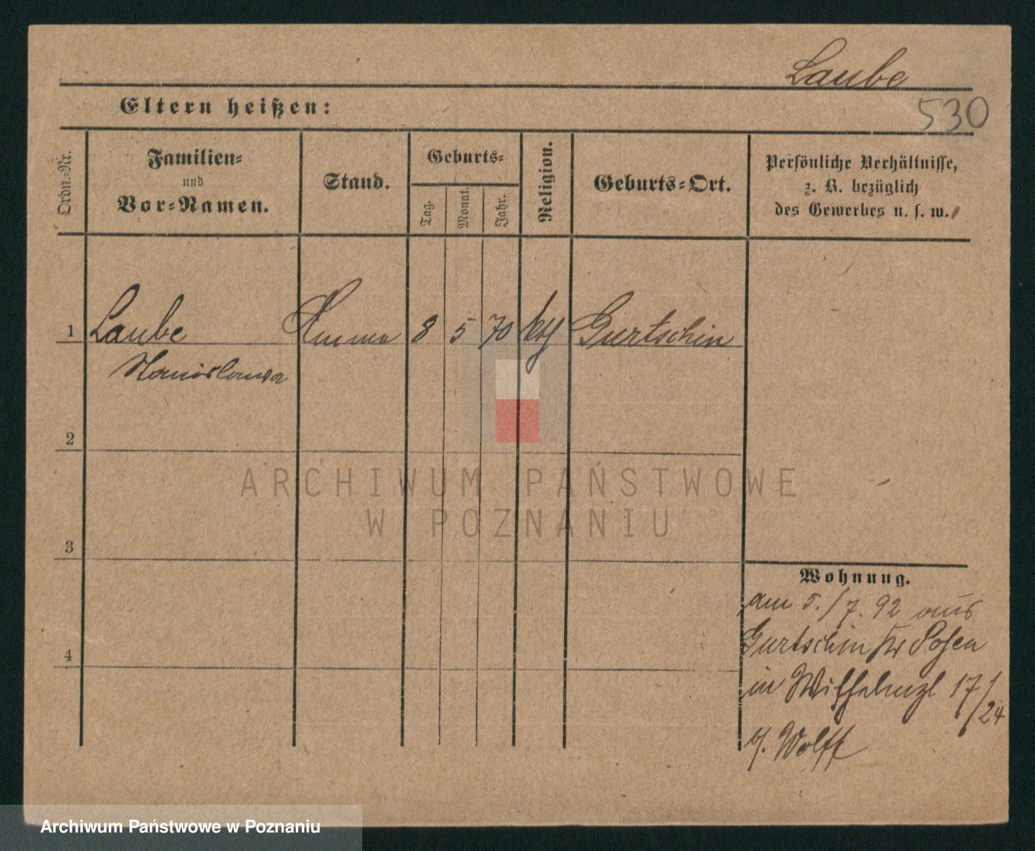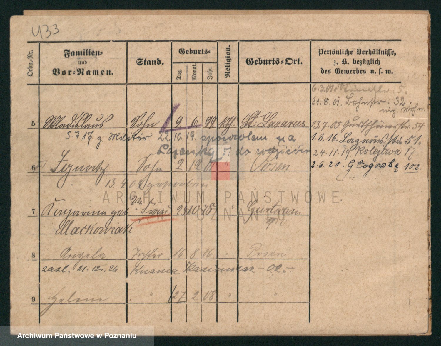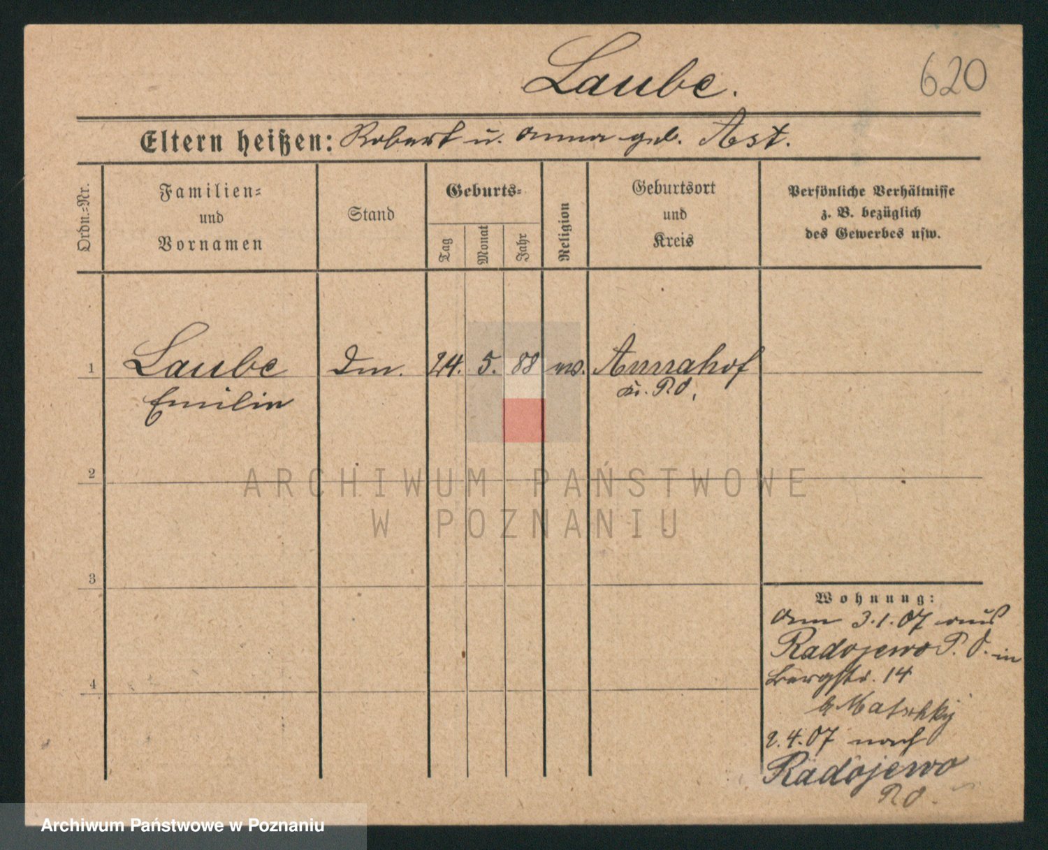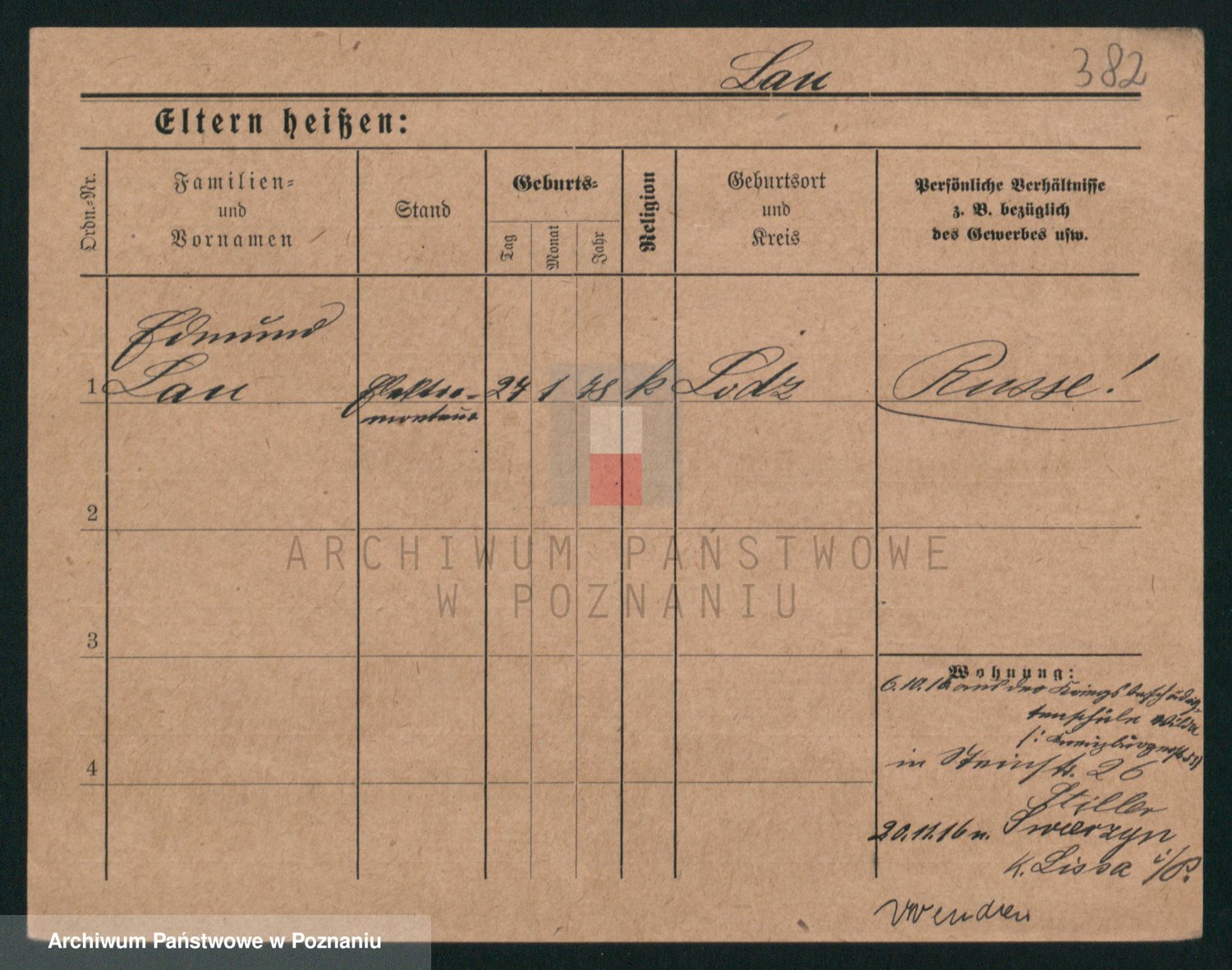Podgląd karty osobowej dostępny jest po kliknięciu na nazwisko lub ikonkę karty. Można dokonywać powiększenia (ikony na górze) lub przechodzić między kolejnymi skanami (strzałki po bokach).