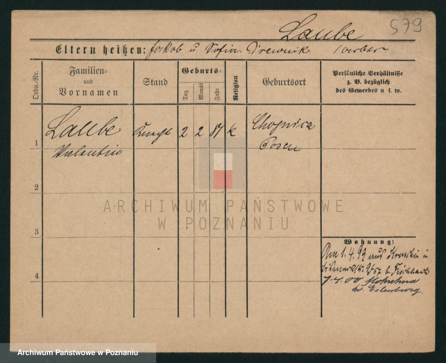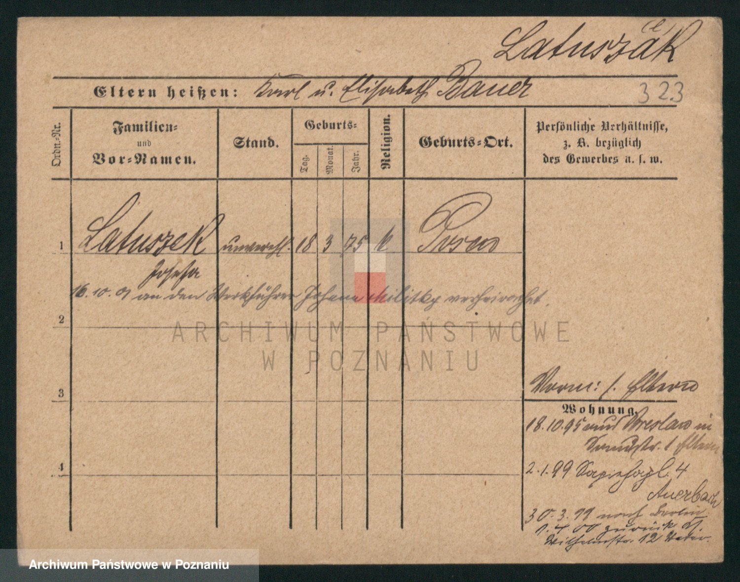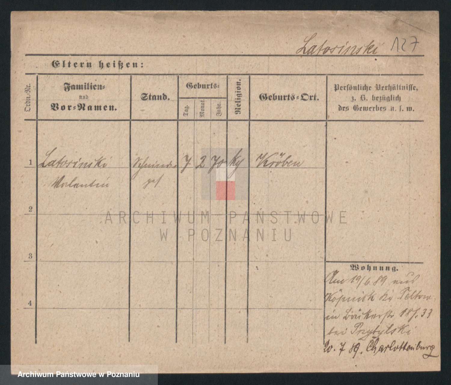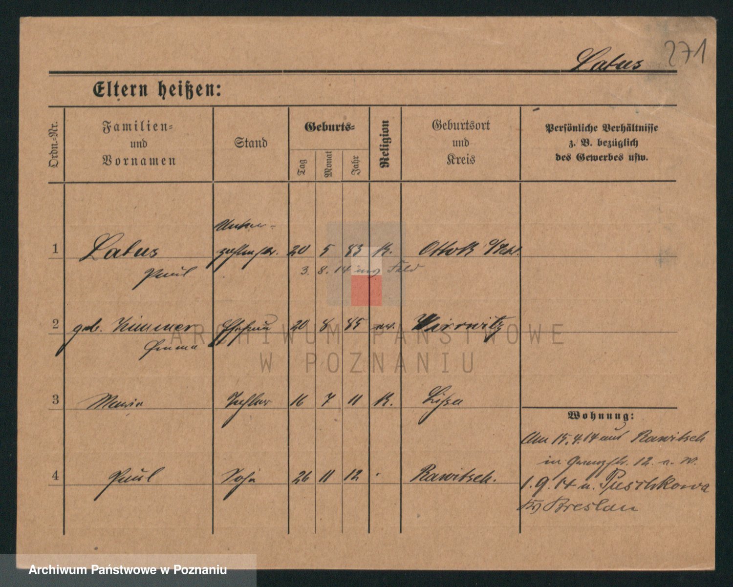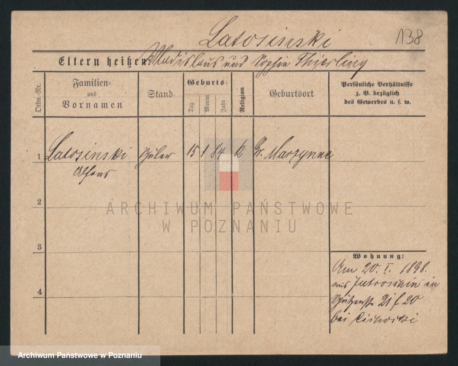 Podgląd karty osobowej dostępny jest po kliknięciu na nazwisko lub ikonkę karty. Można dokonywać powiększenia (ikony na górze) lub przechodzić między kolejnymi skanami (strzałki po bokach).