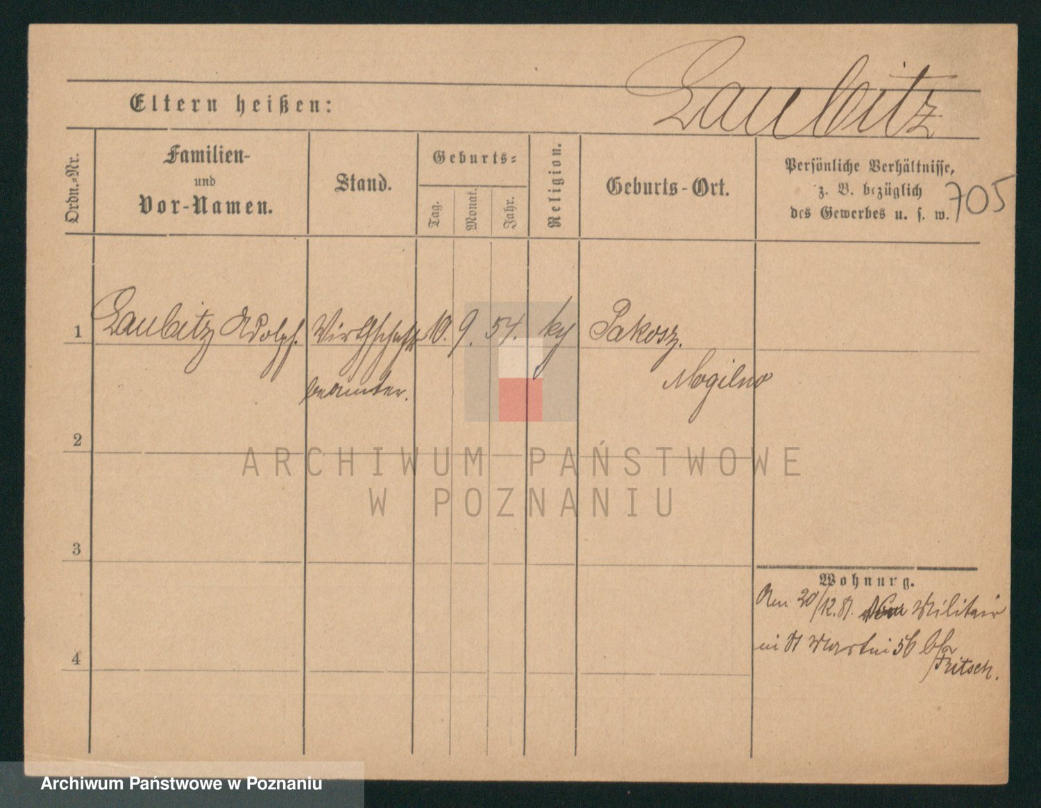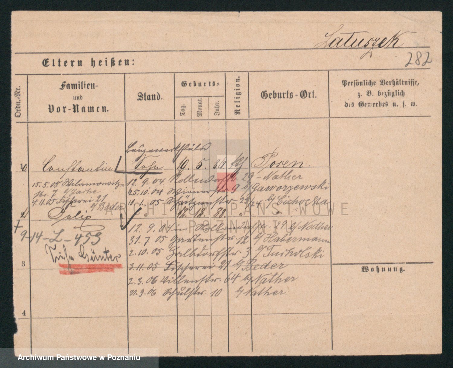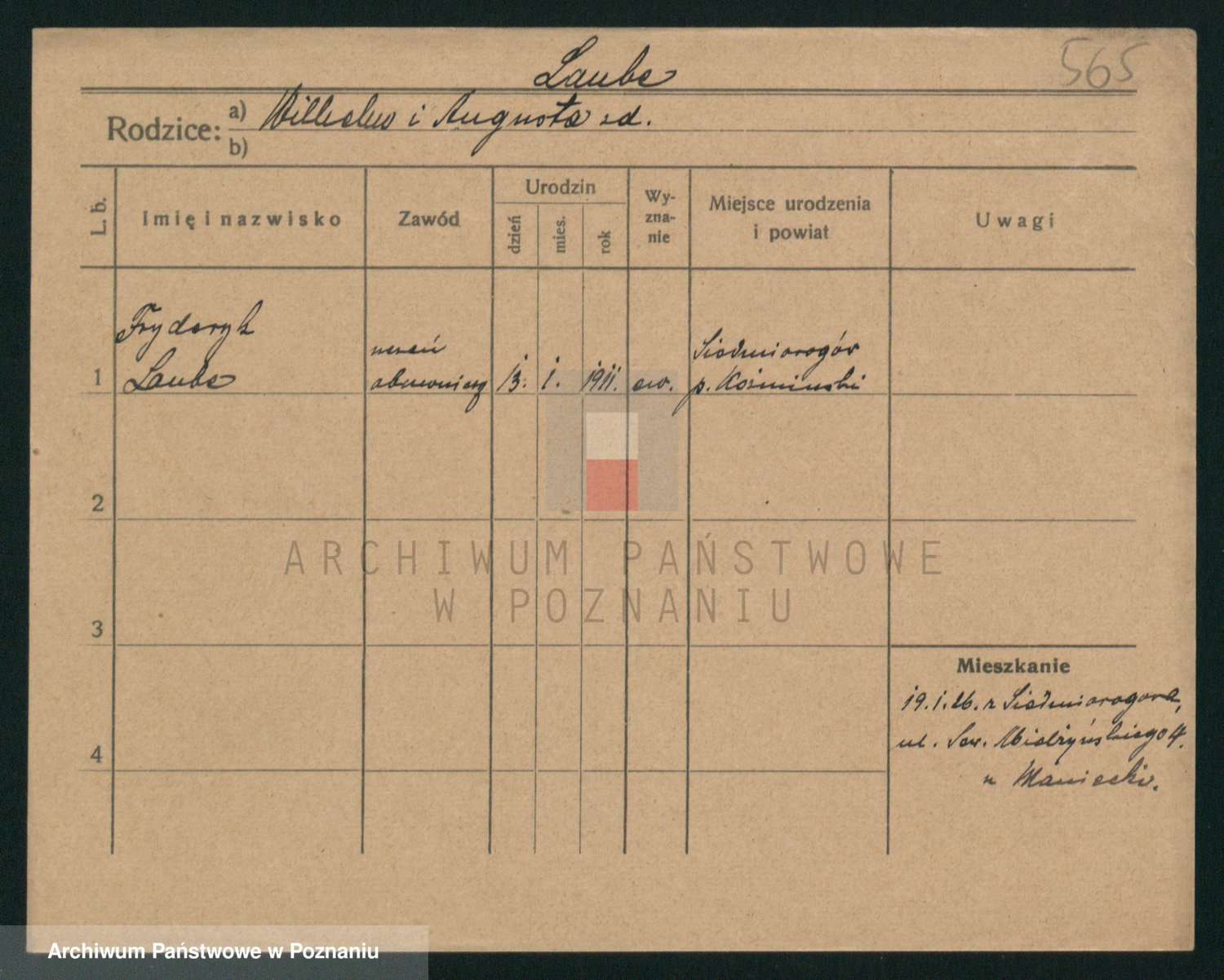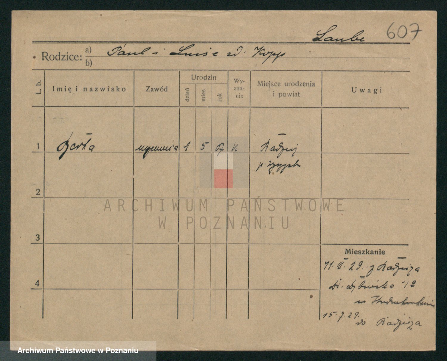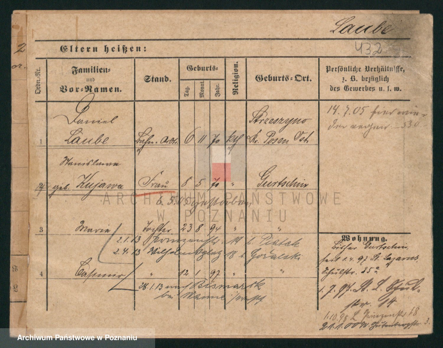 Podgląd karty osobowej dostępny jest po kliknięciu na nazwisko lub ikonkę karty. Można dokonywać powiększenia (ikony na górze) lub przechodzić między kolejnymi skanami (strzałki po bokach).