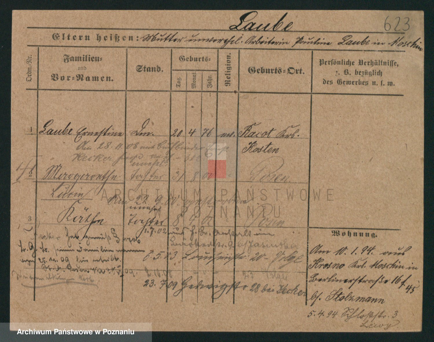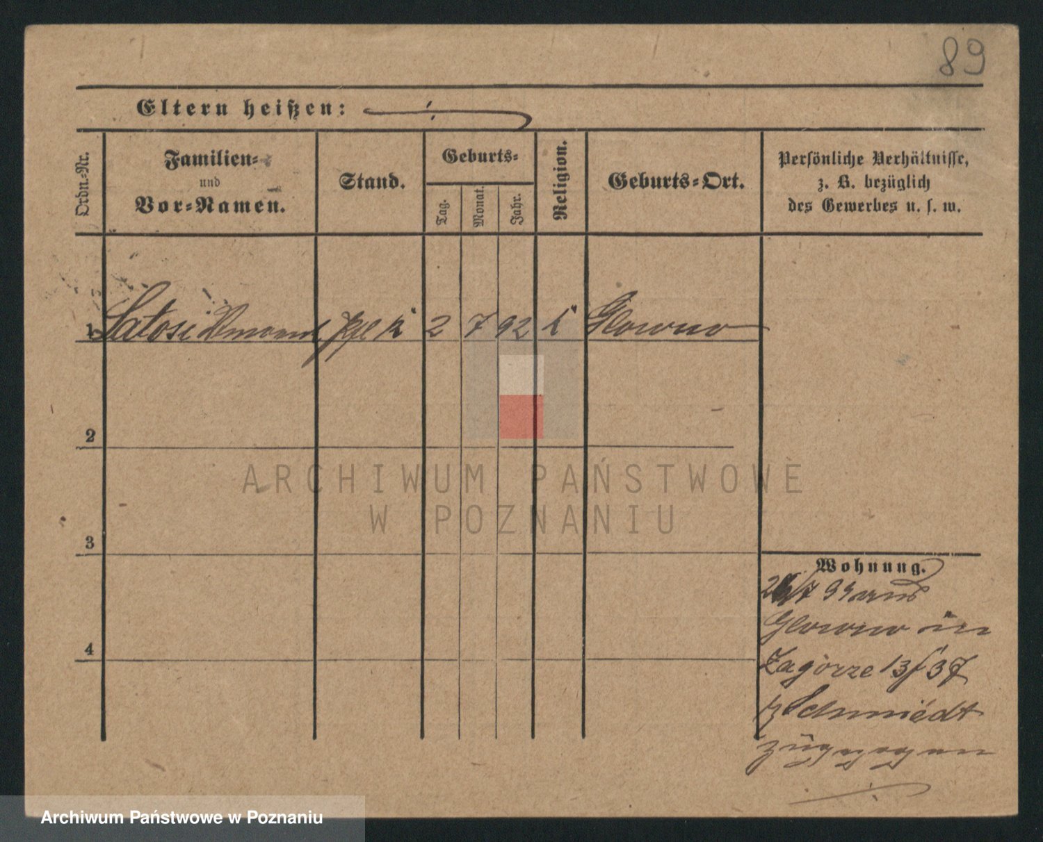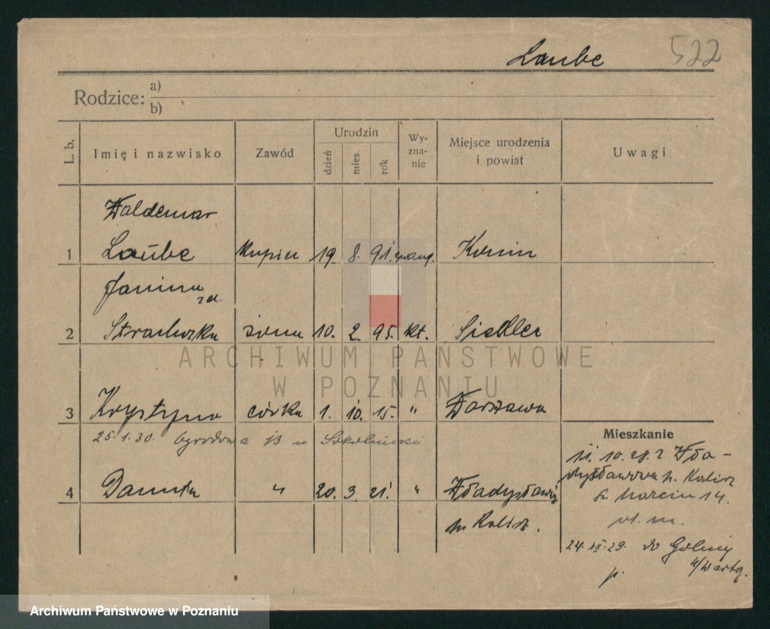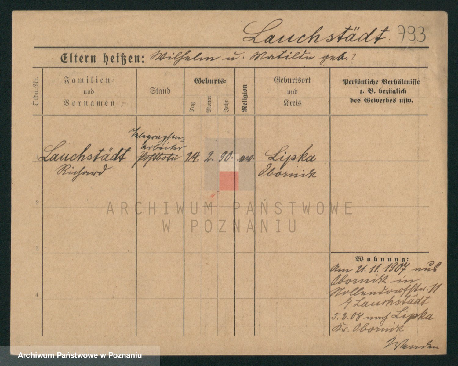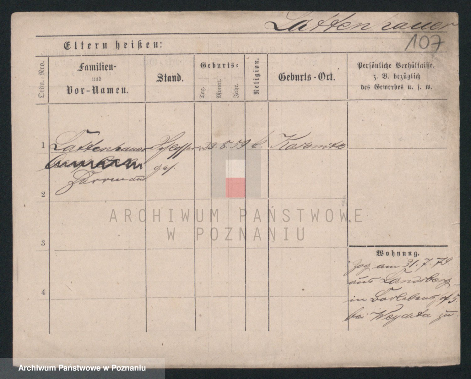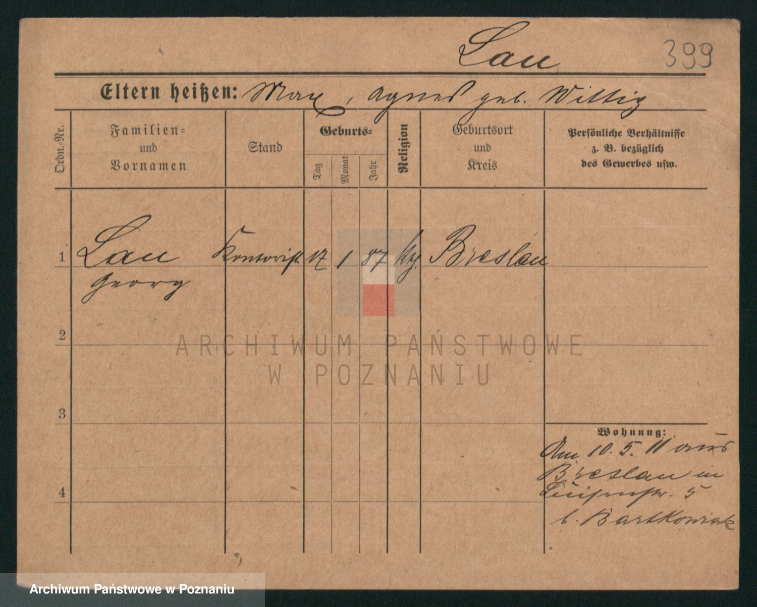 Podgląd karty osobowej dostępny jest po kliknięciu na nazwisko lub ikonkę karty. Można dokonywać powiększenia (ikony na górze) lub przechodzić między kolejnymi skanami (strzałki po bokach).