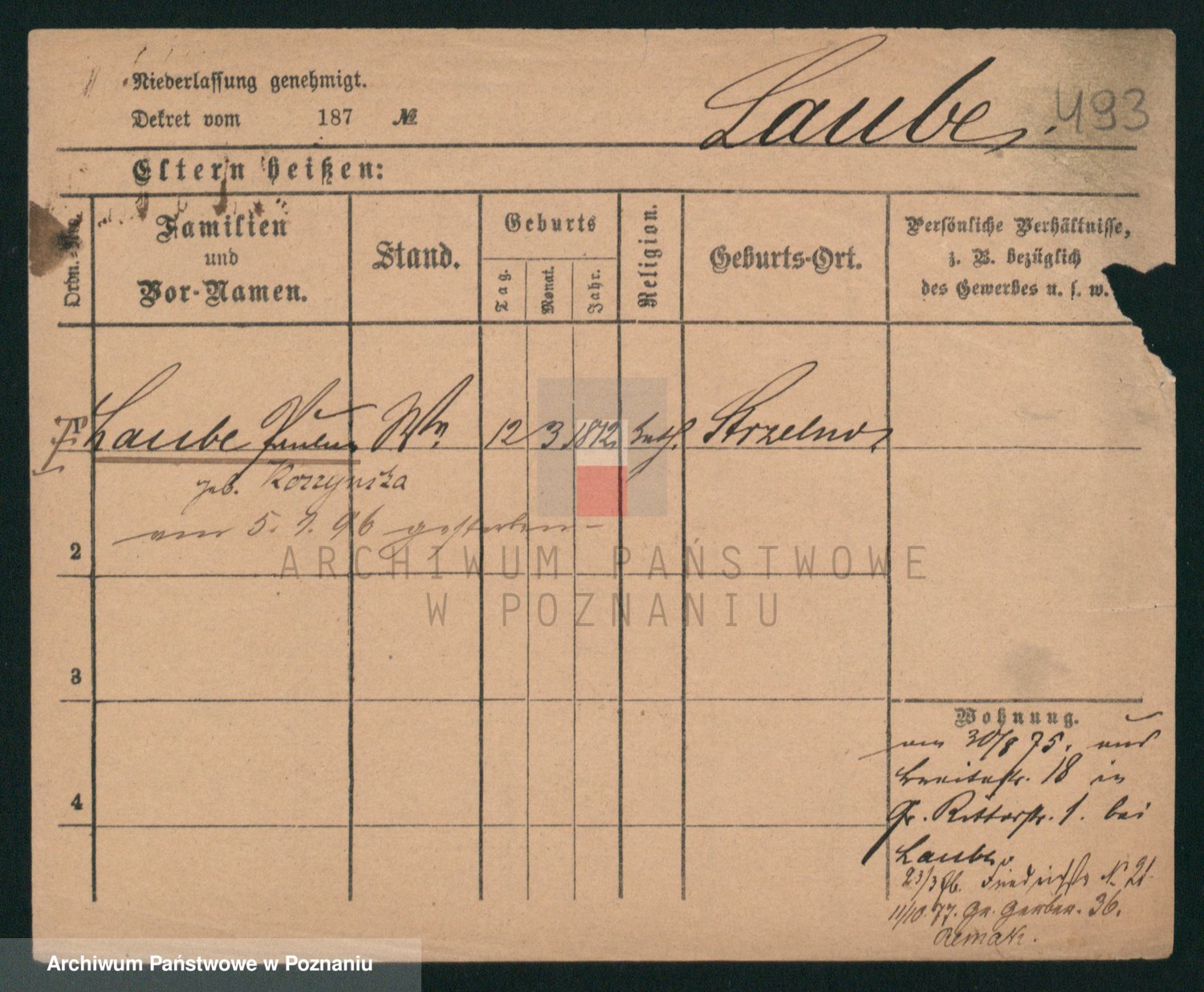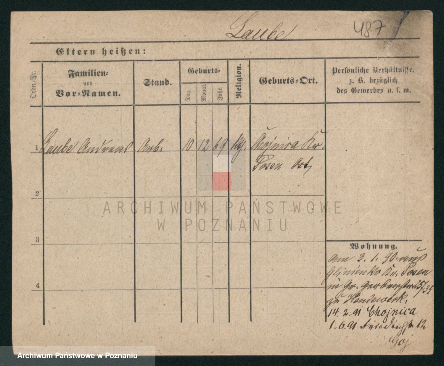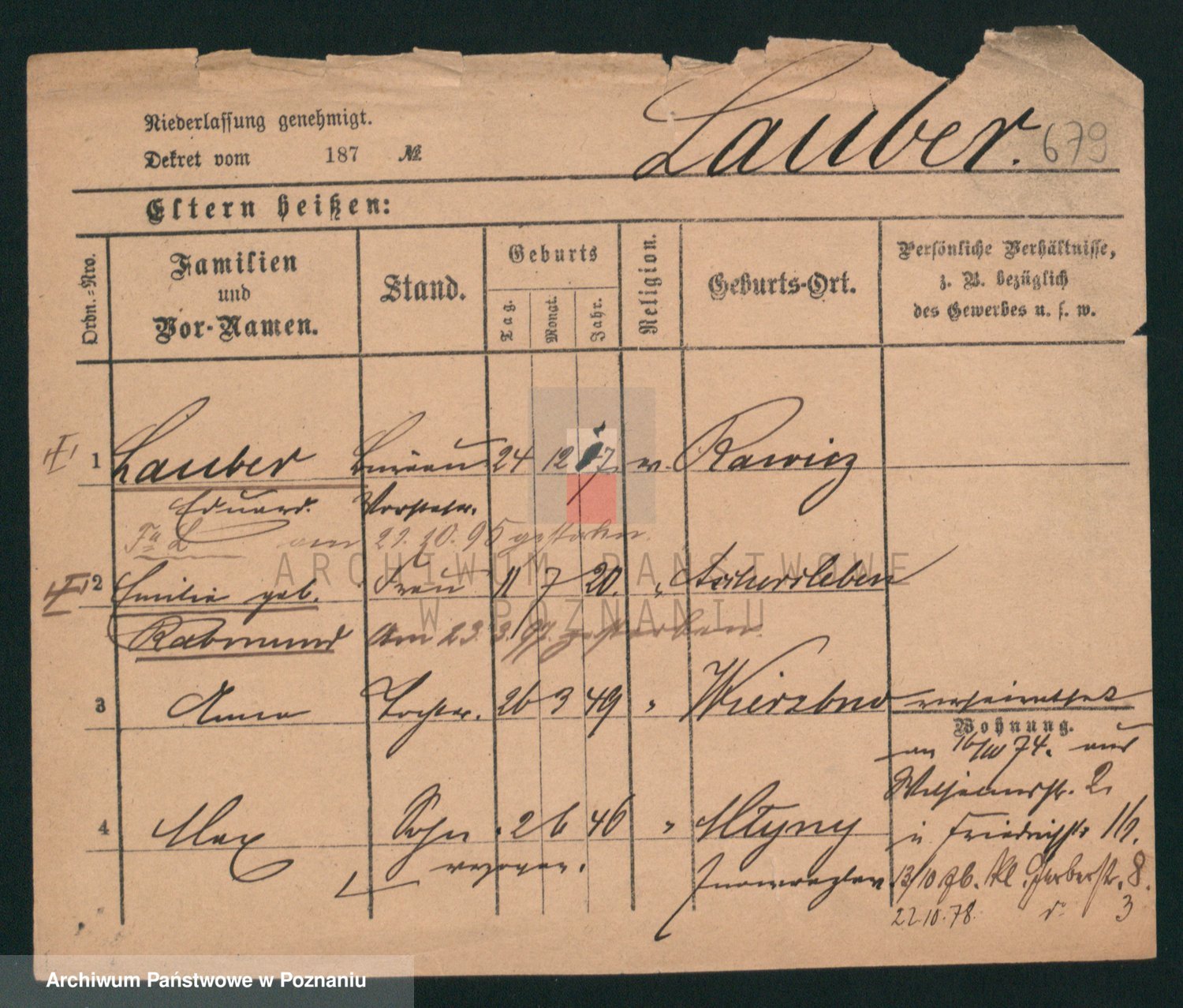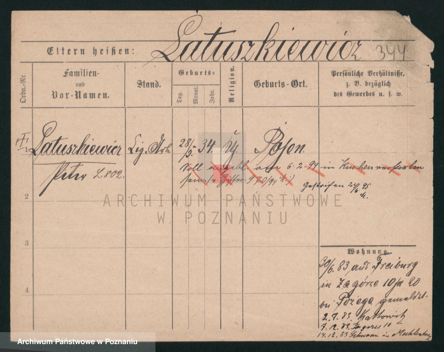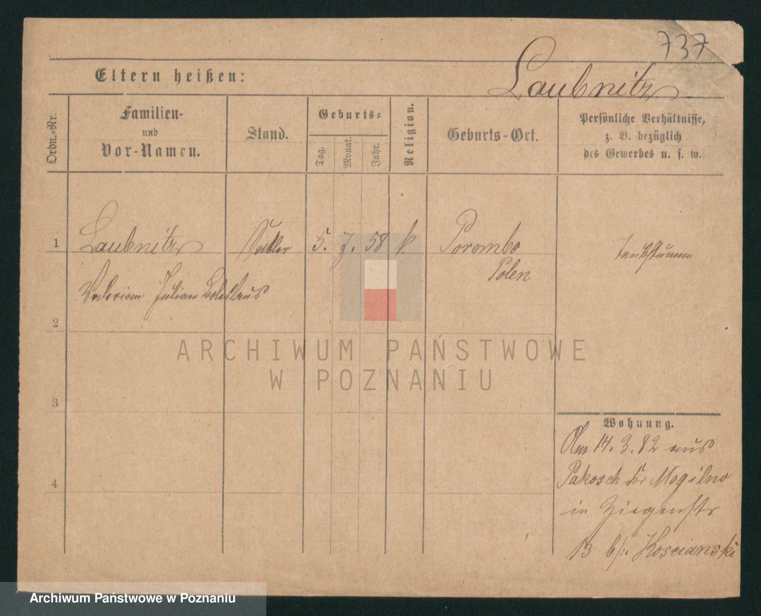 Podgląd karty osobowej dostępny jest po kliknięciu na nazwisko lub ikonkę karty. Można dokonywać powiększenia (ikony na górze) lub przechodzić między kolejnymi skanami (strzałki po bokach).