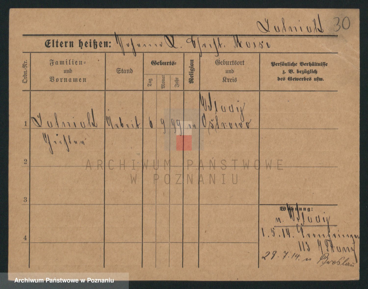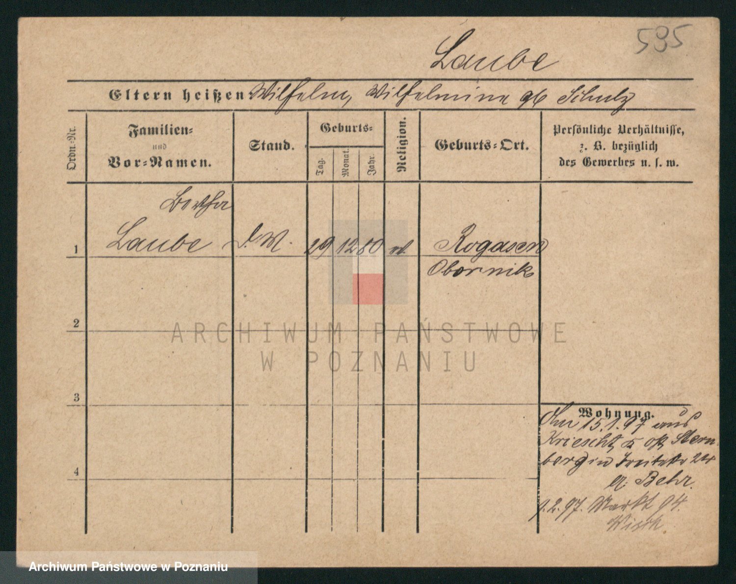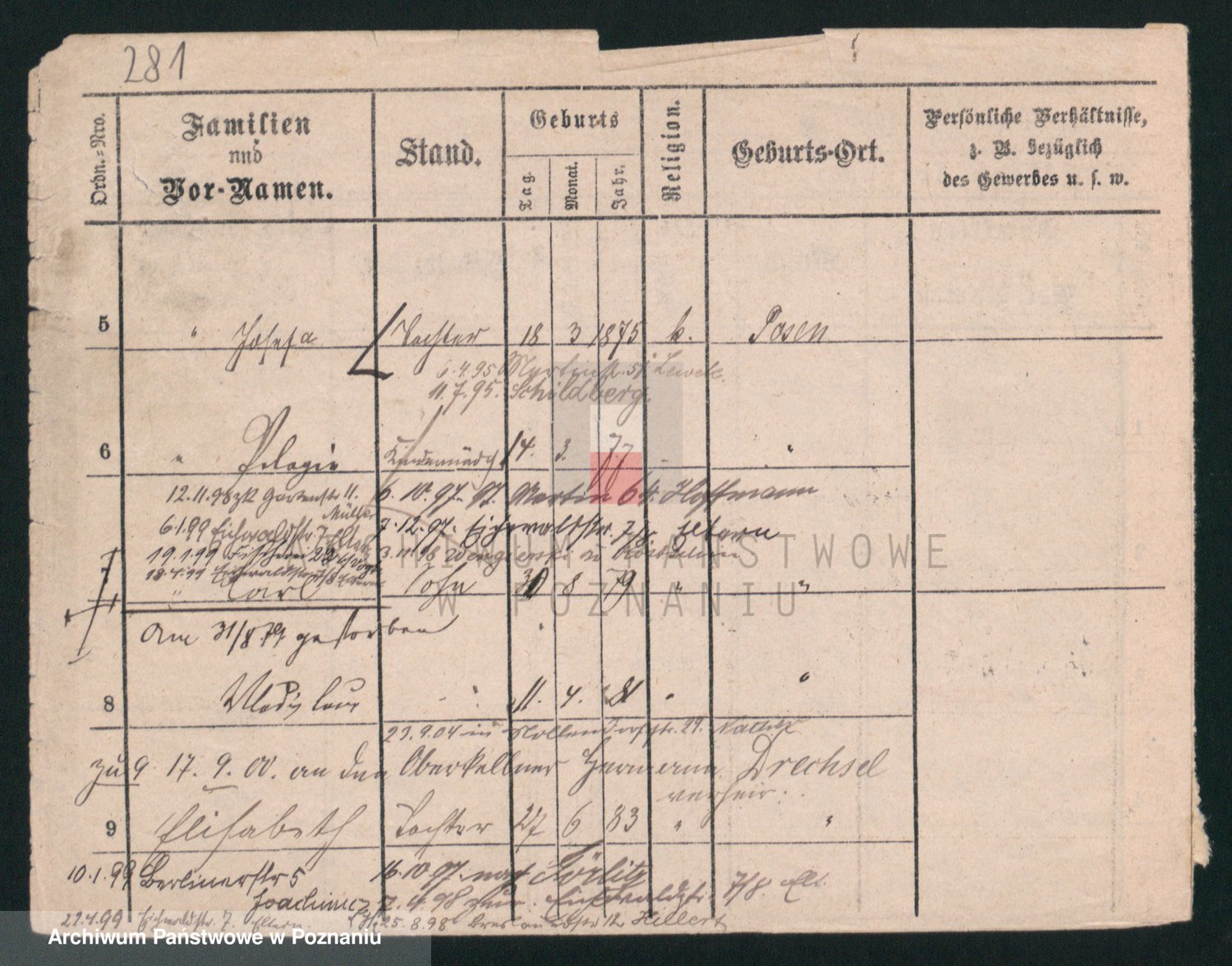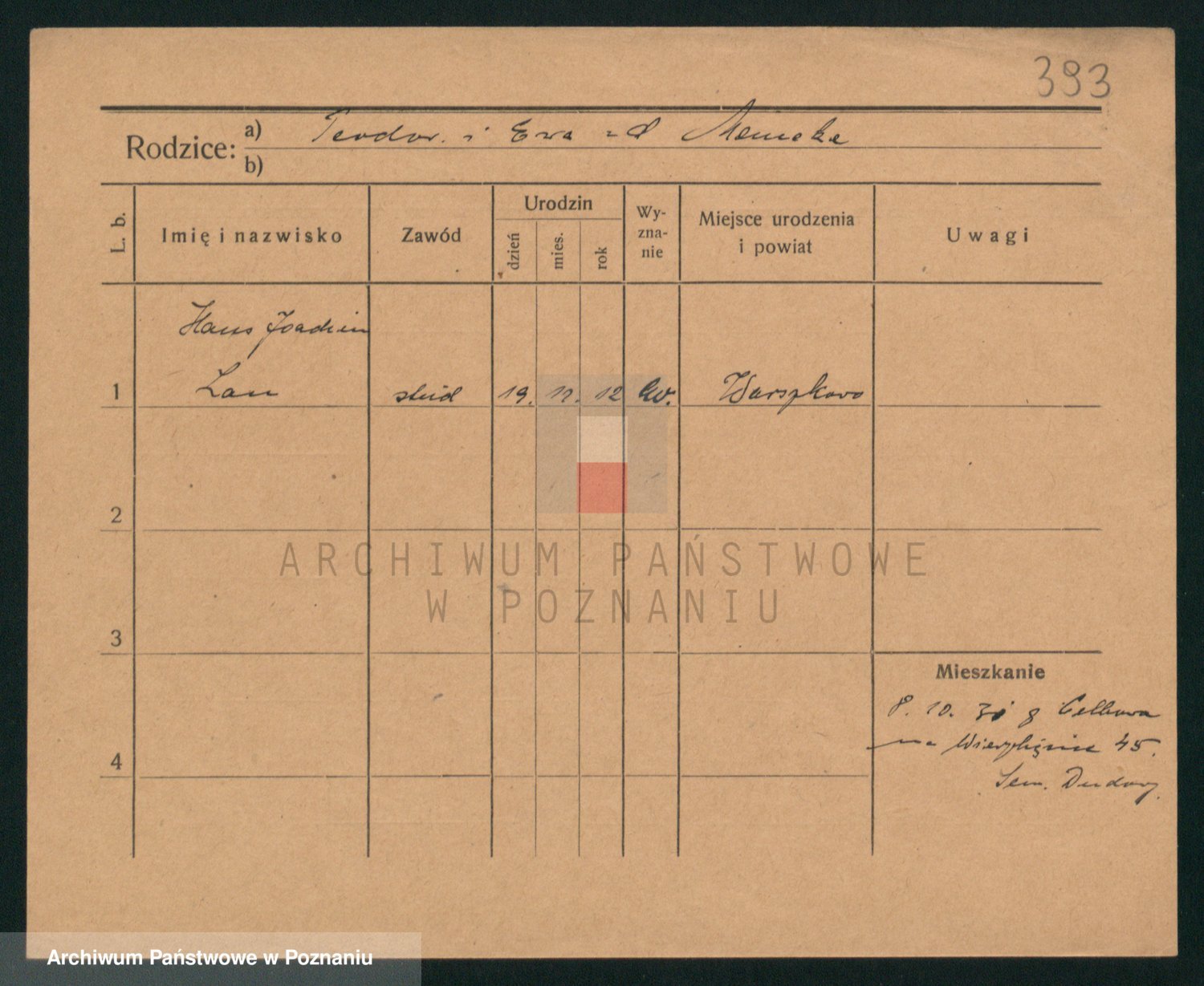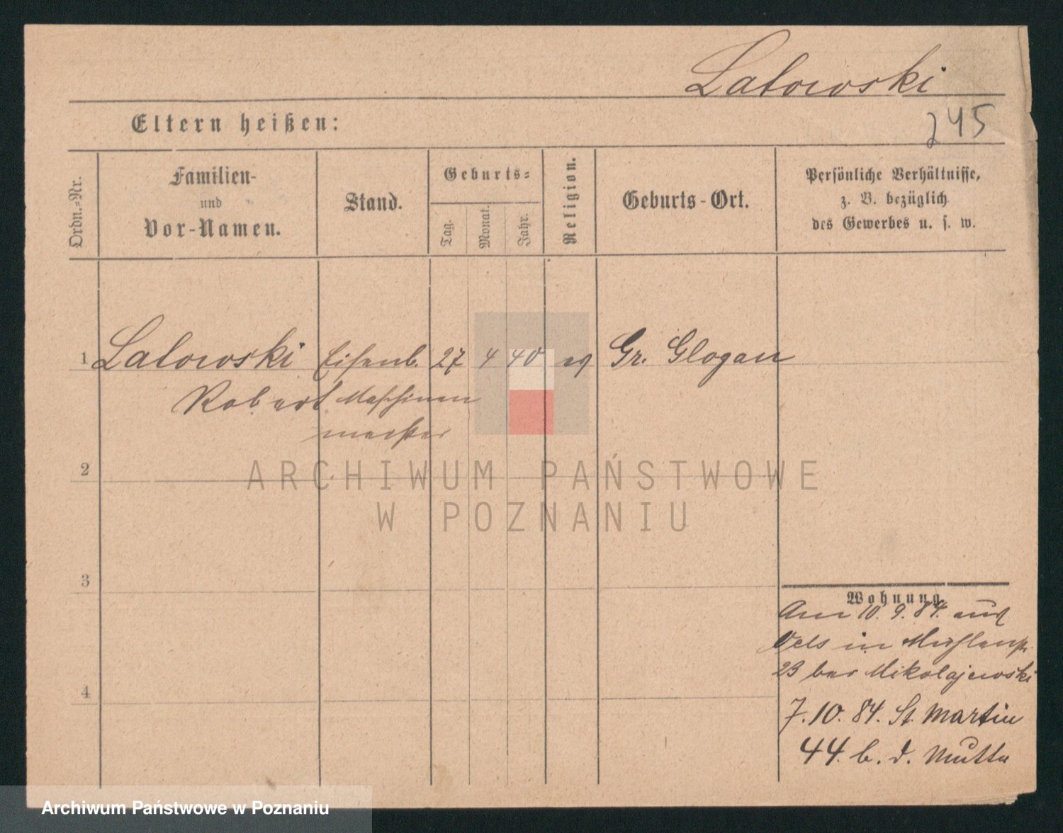 Podgląd karty osobowej dostępny jest po kliknięciu na nazwisko lub ikonkę karty. Można dokonywać powiększenia (ikony na górze) lub przechodzić między kolejnymi skanami (strzałki po bokach).