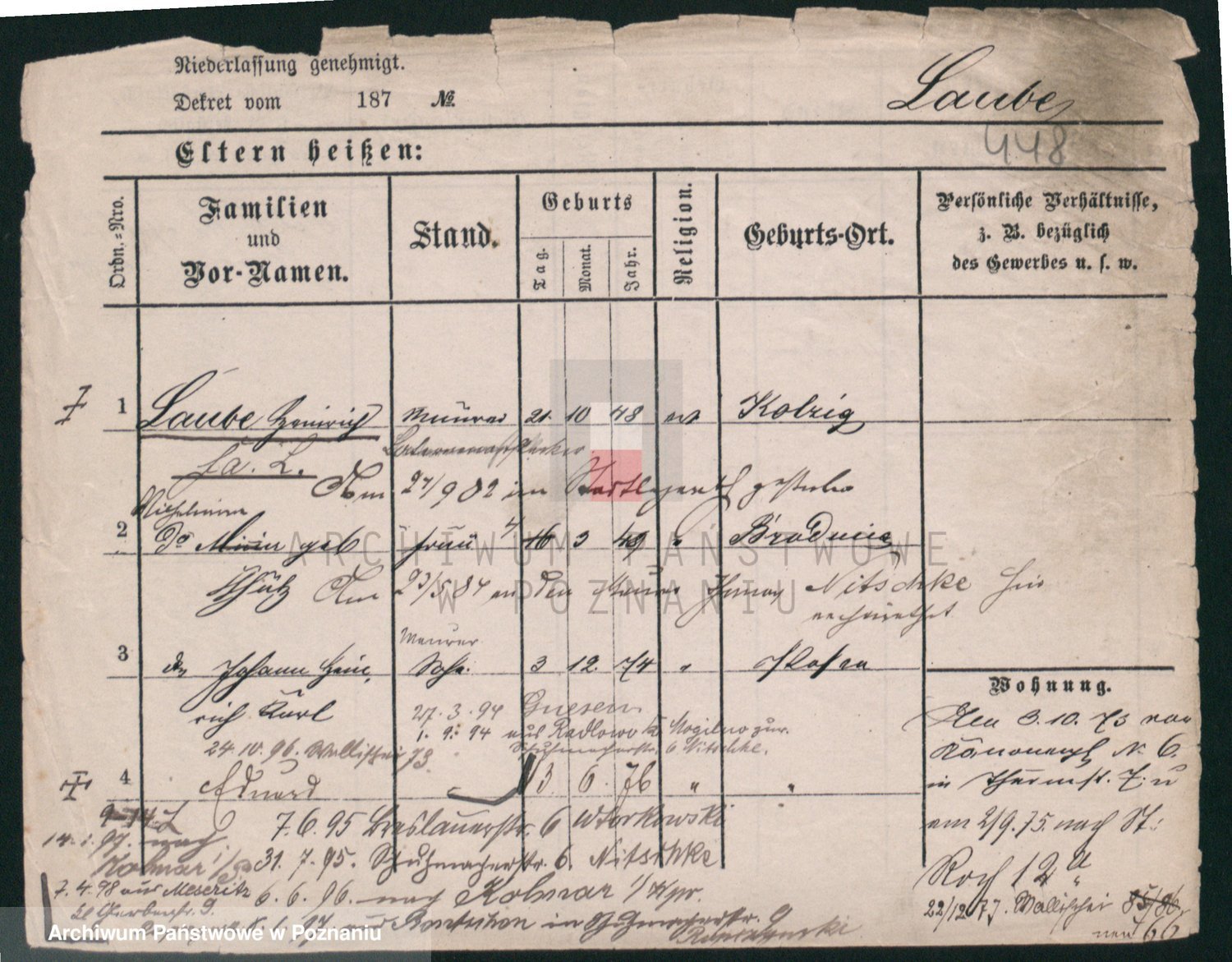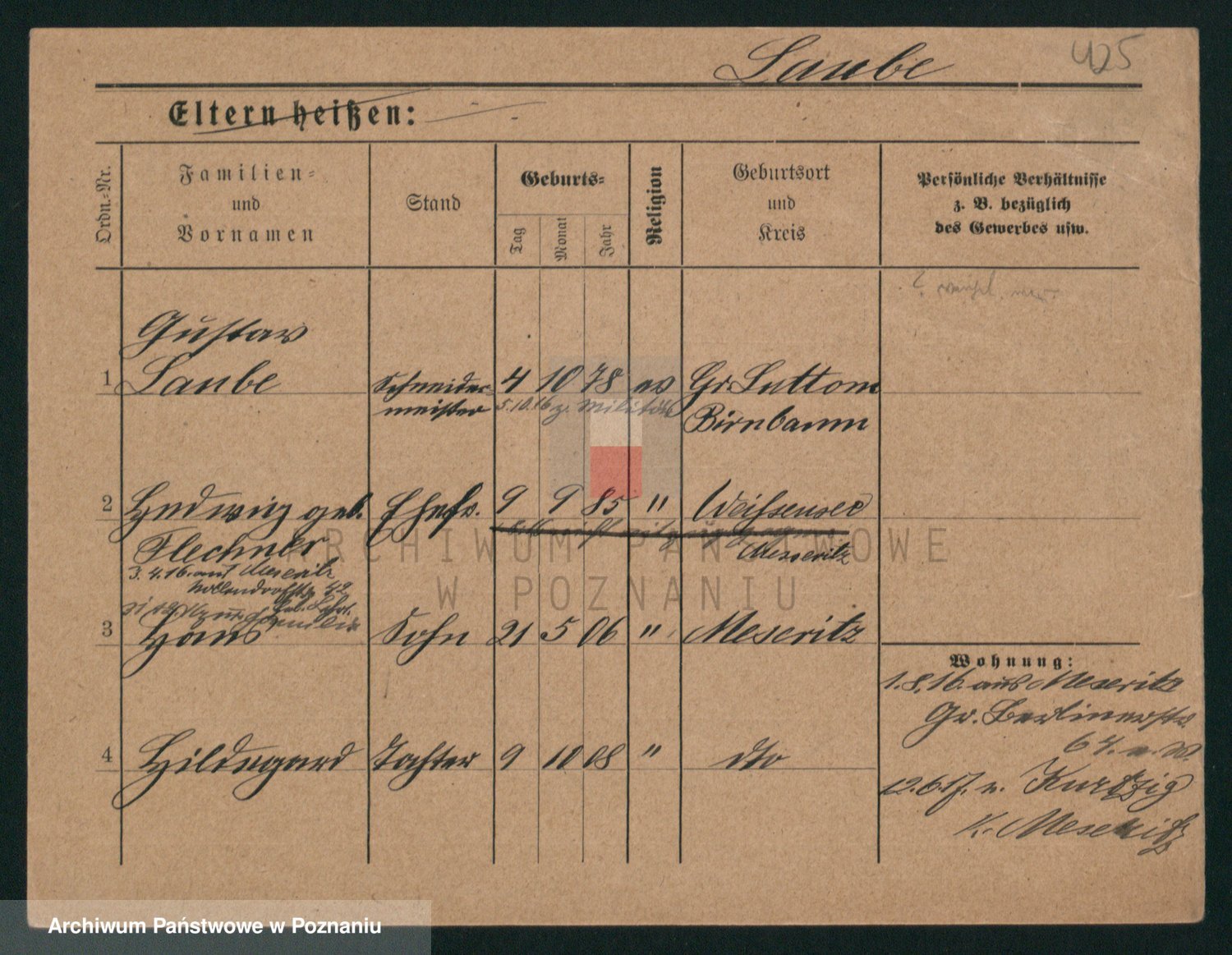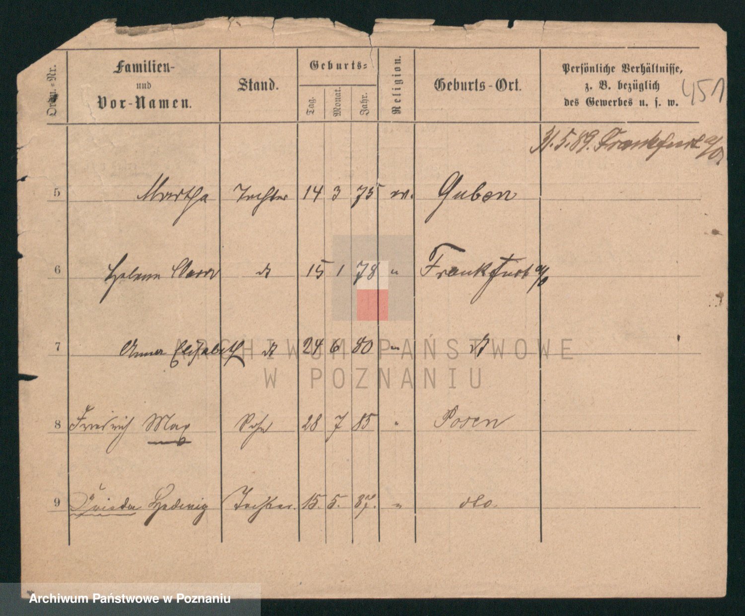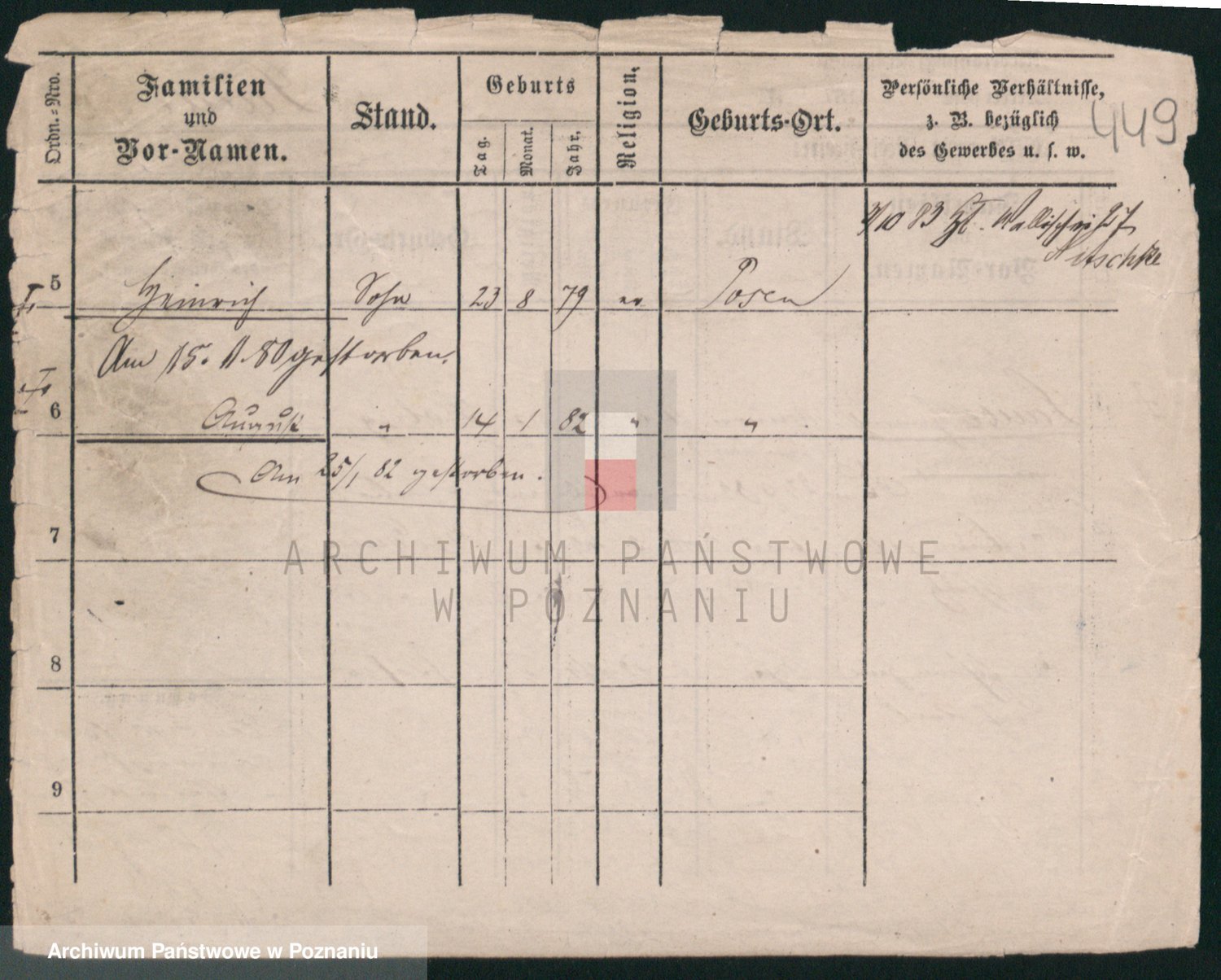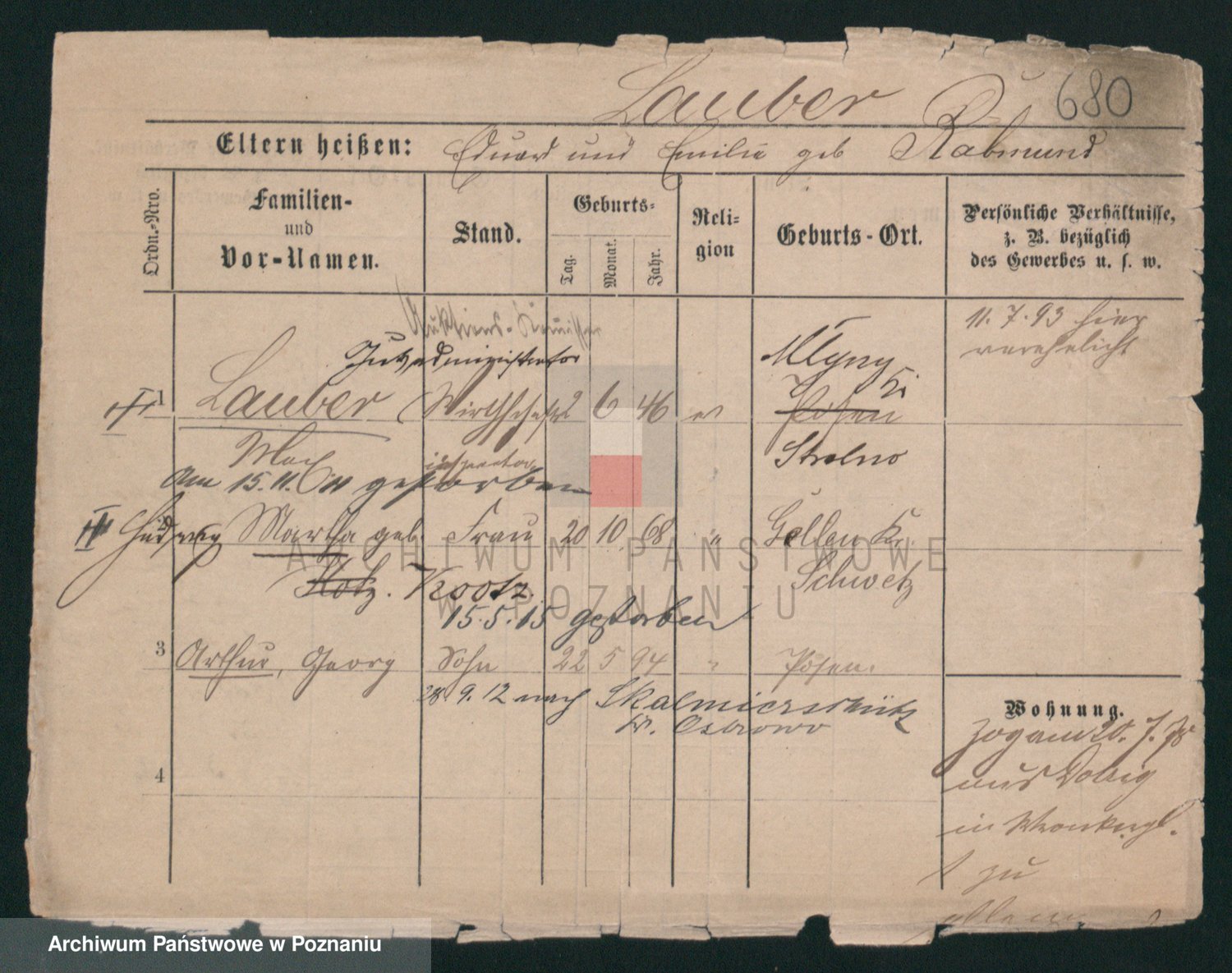 Podgląd karty osobowej dostępny jest po kliknięciu na nazwisko lub ikonkę karty. Można dokonywać powiększenia (ikony na górze) lub przechodzić między kolejnymi skanami (strzałki po bokach).