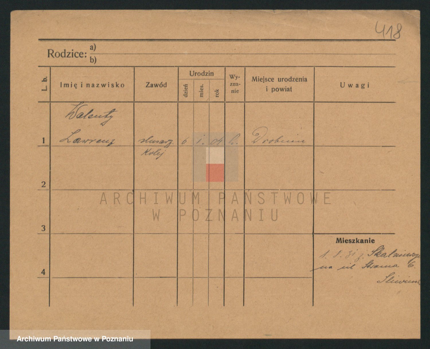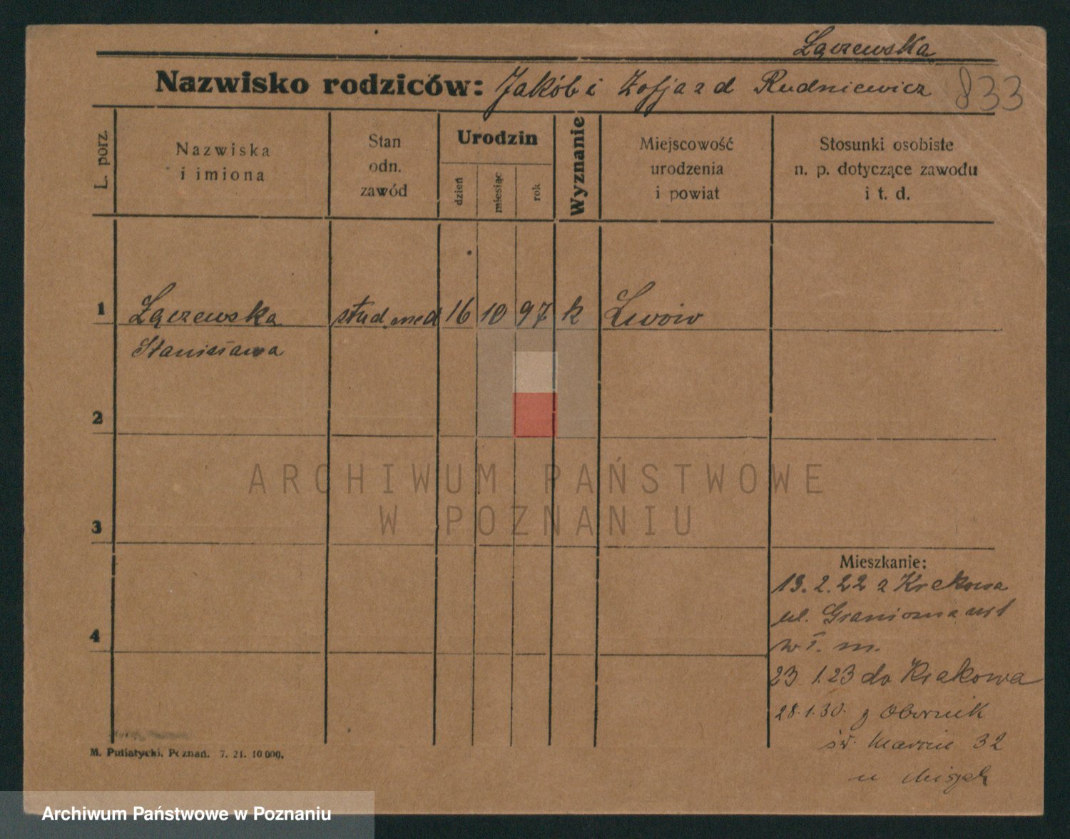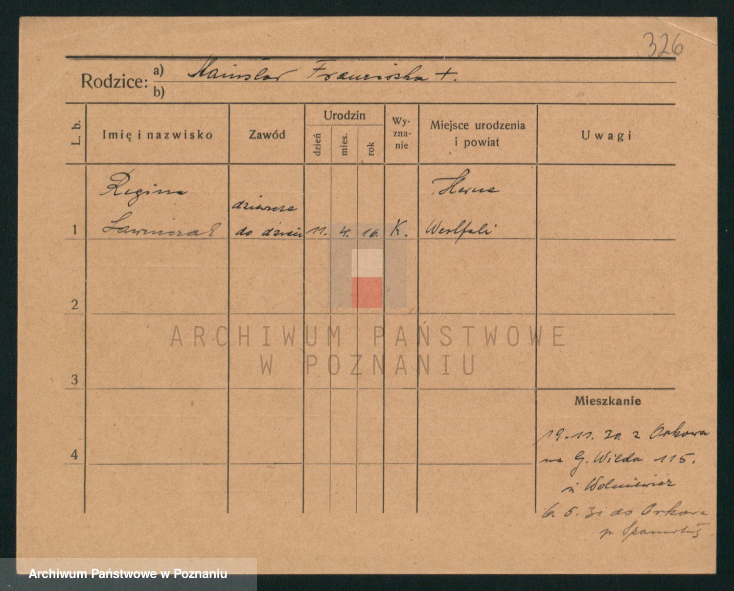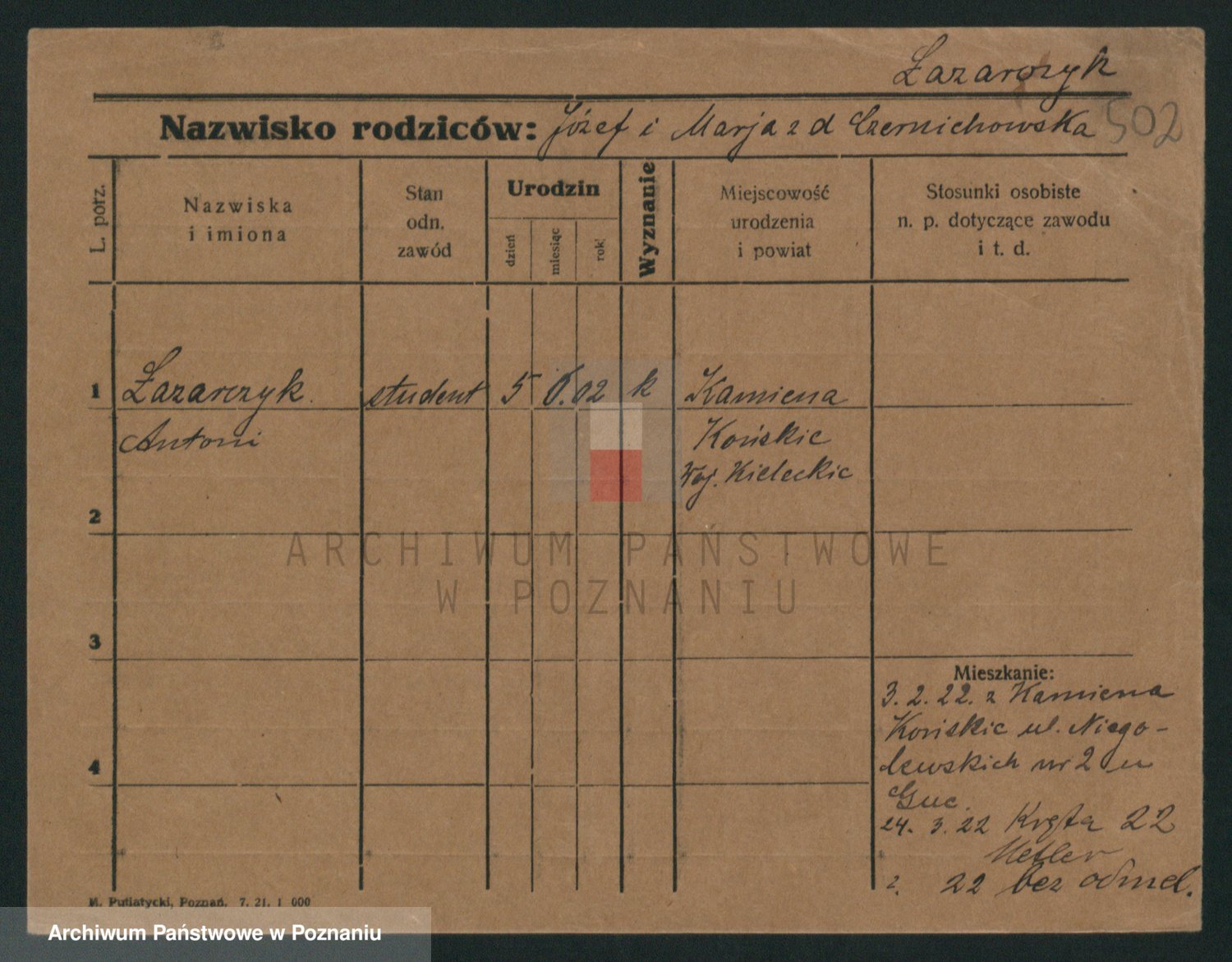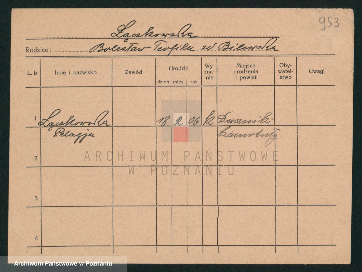Podgląd karty osobowej dostępny jest po kliknięciu na nazwisko lub ikonkę karty. Można dokonywać powiększenia (ikony na górze) lub przechodzić między kolejnymi skanami (strzałki po bokach).