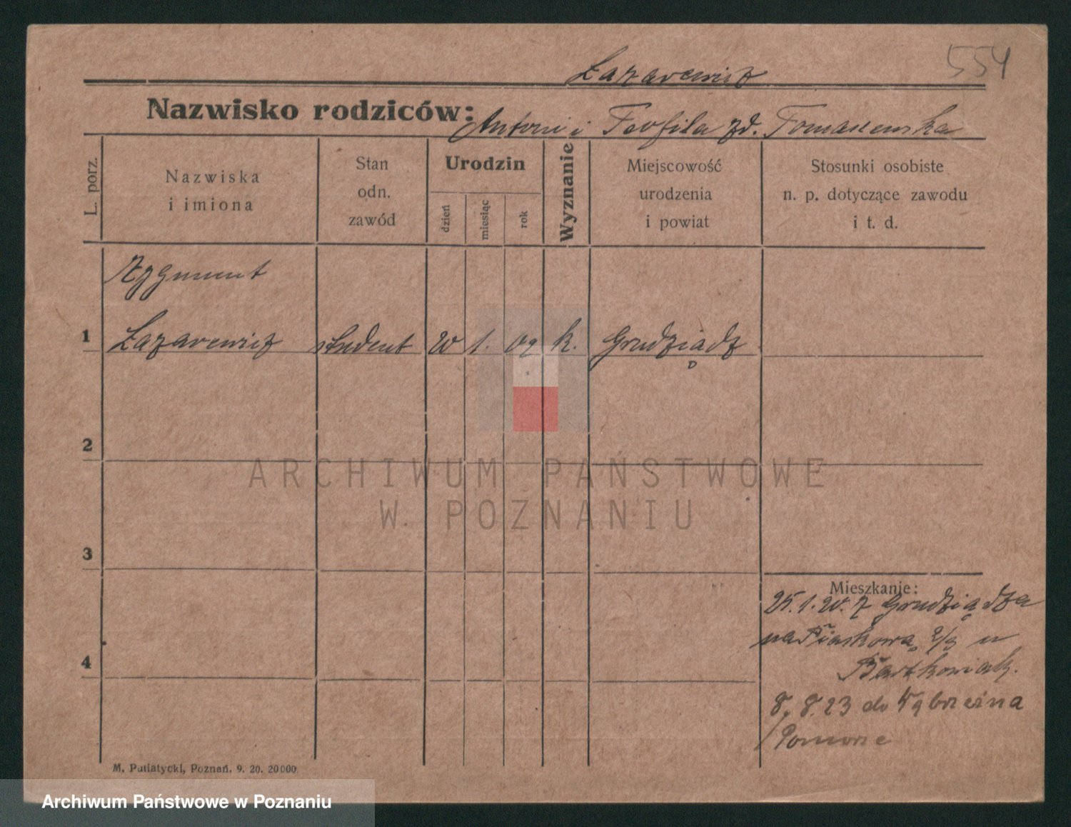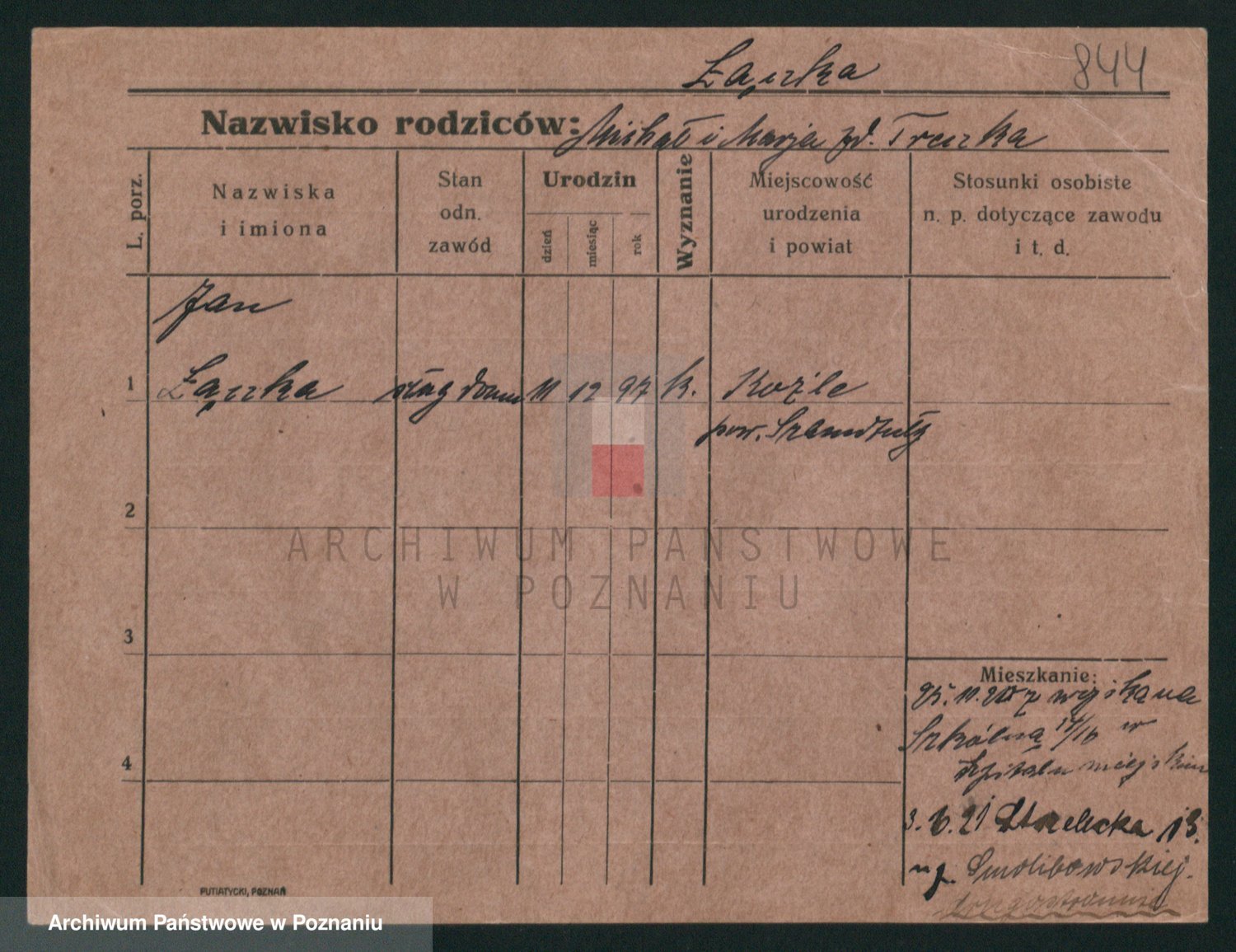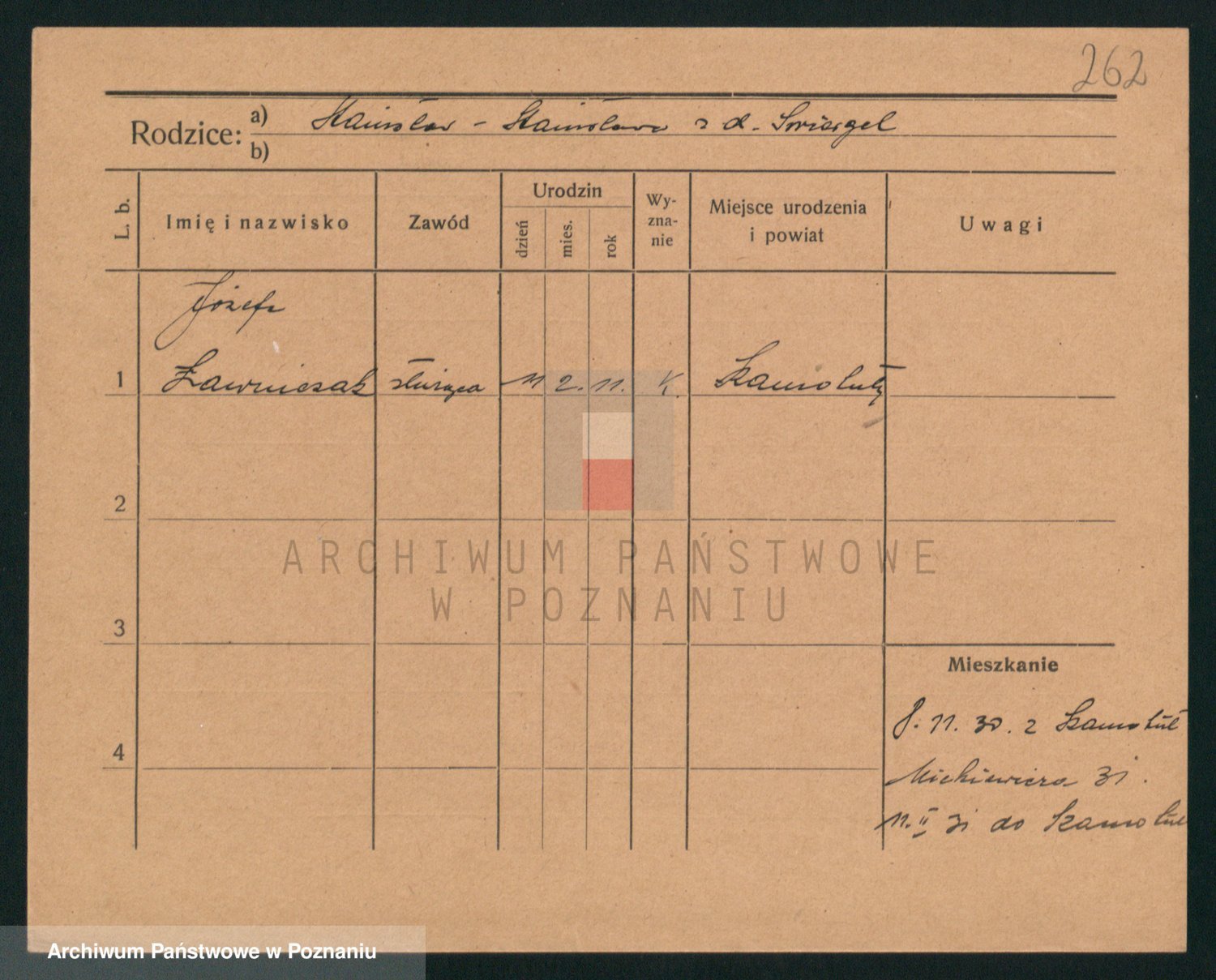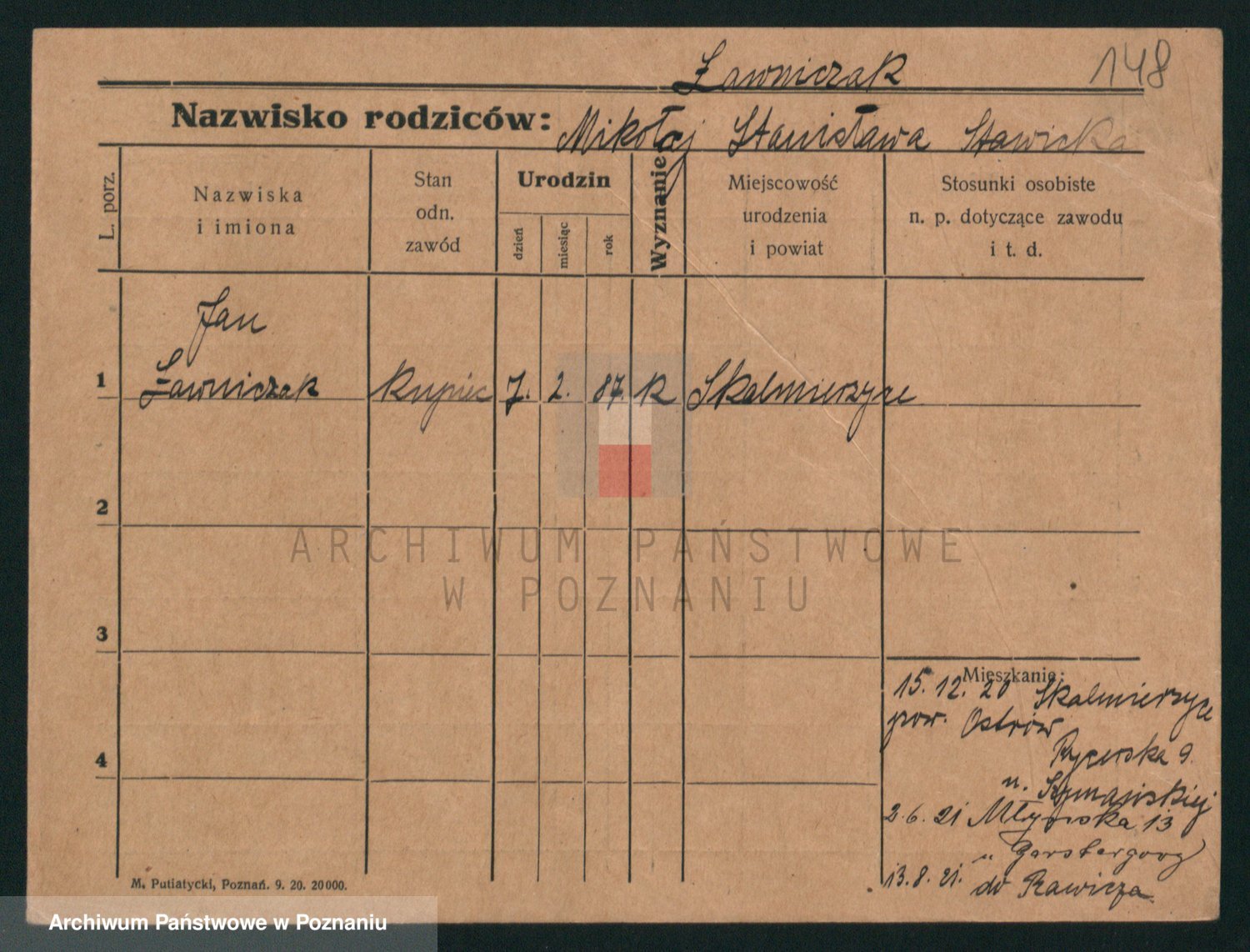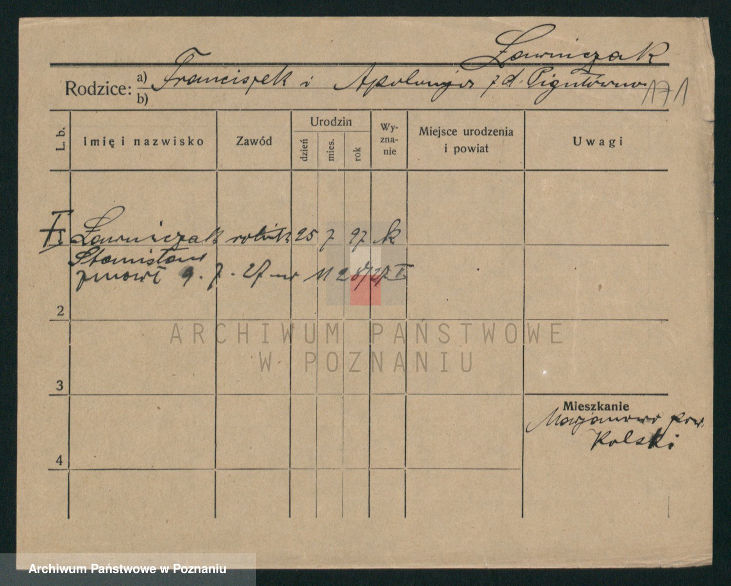 Podgląd karty osobowej dostępny jest po kliknięciu na nazwisko lub ikonkę karty. Można dokonywać powiększenia (ikony na górze) lub przechodzić między kolejnymi skanami (strzałki po bokach).