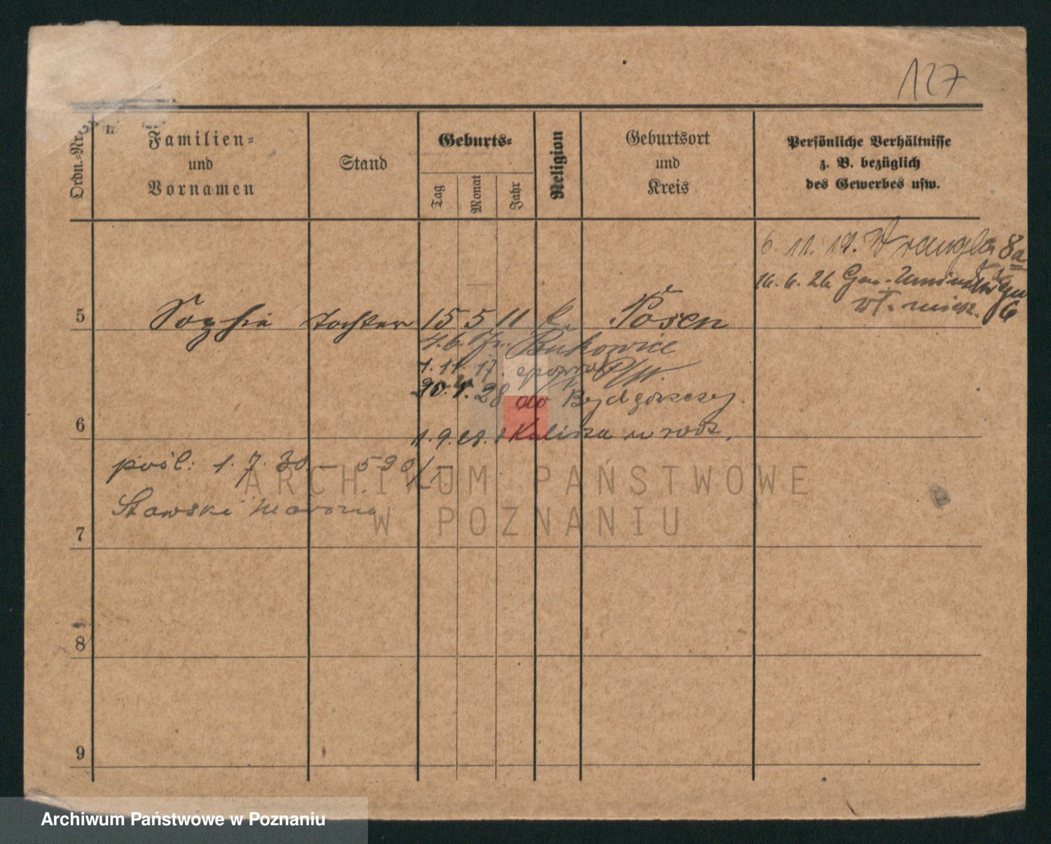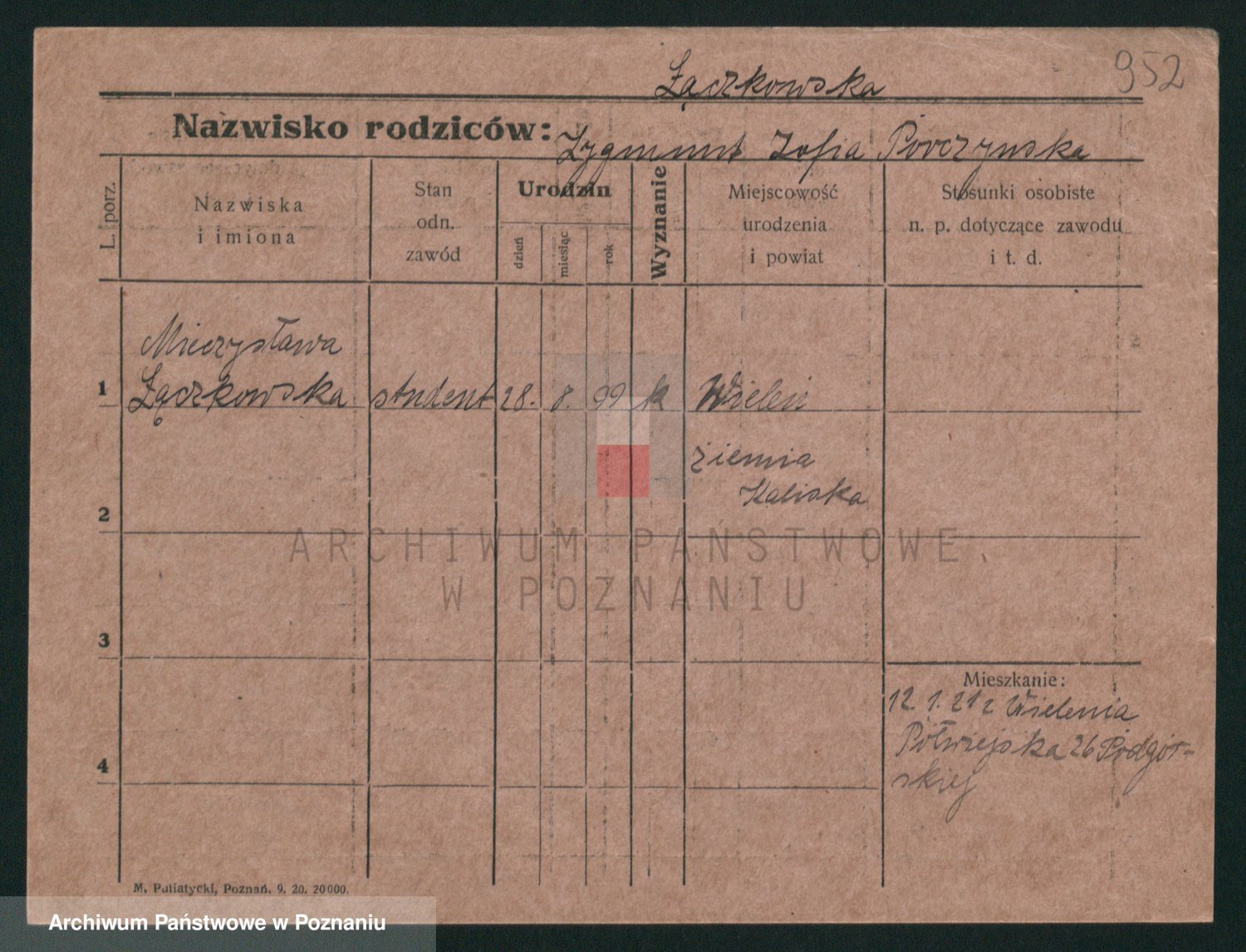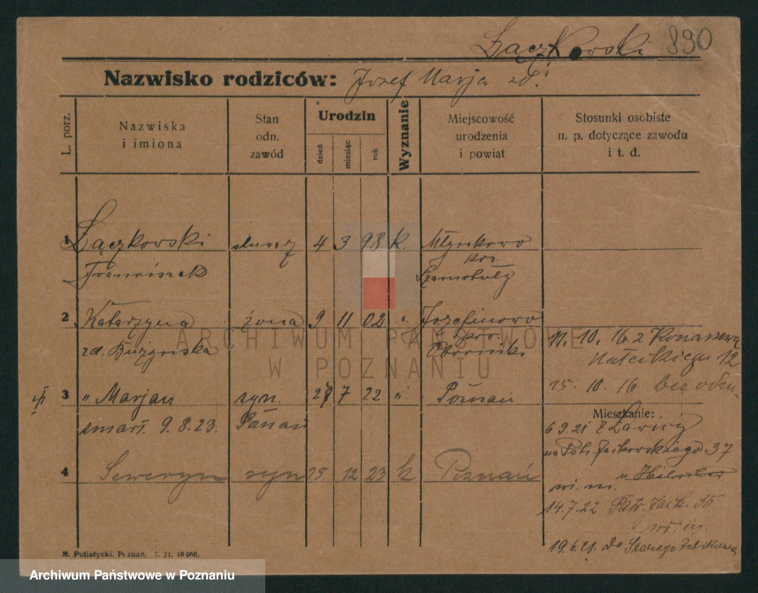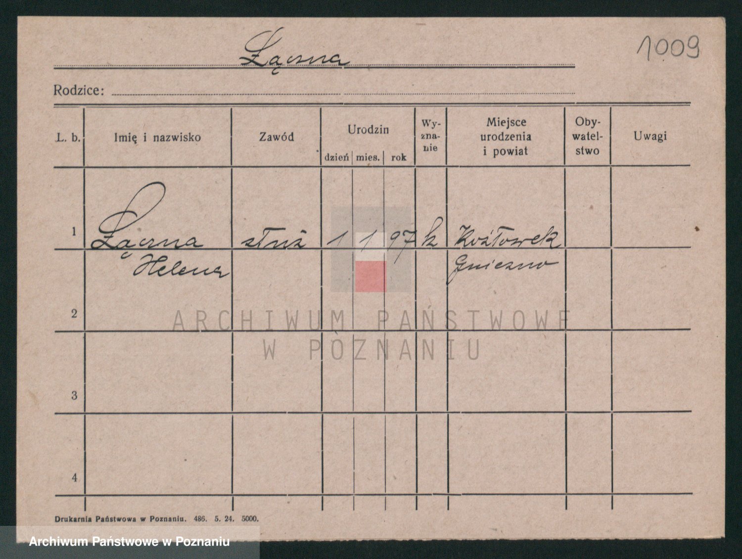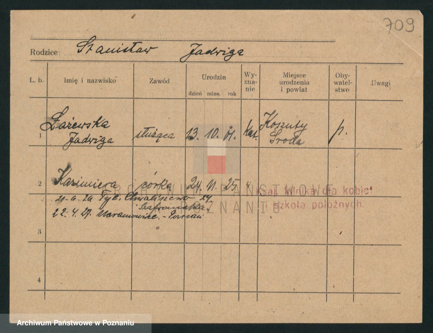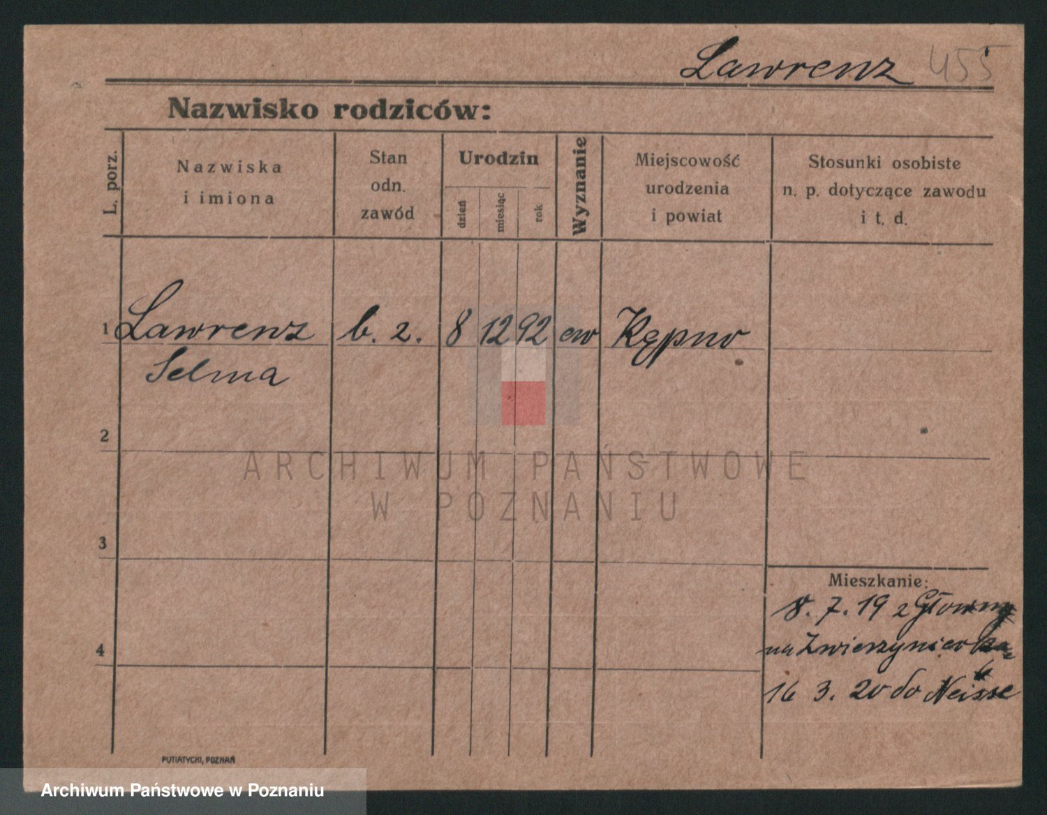 Podgląd karty osobowej dostępny jest po kliknięciu na nazwisko lub ikonkę karty. Można dokonywać powiększenia (ikony na górze) lub przechodzić między kolejnymi skanami (strzałki po bokach).