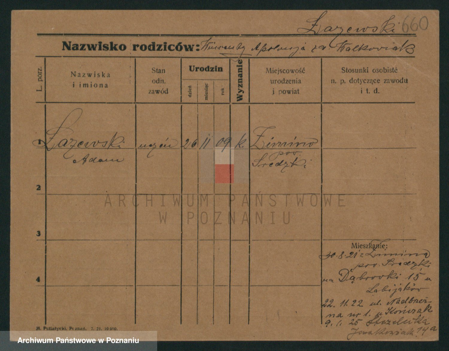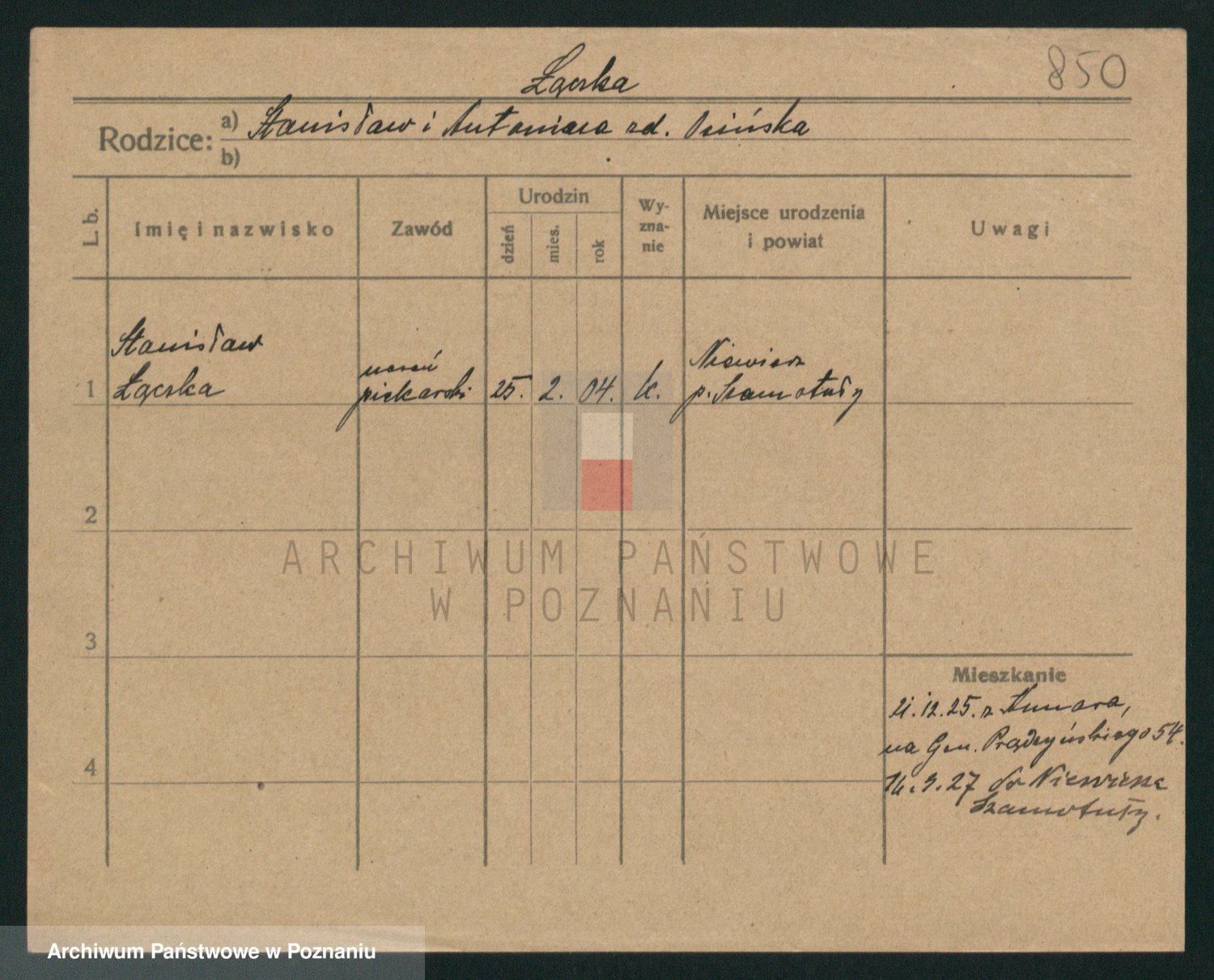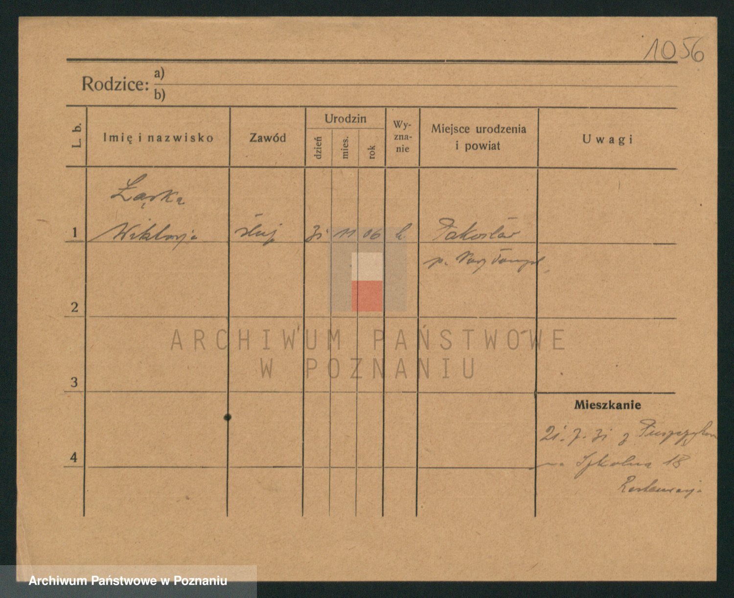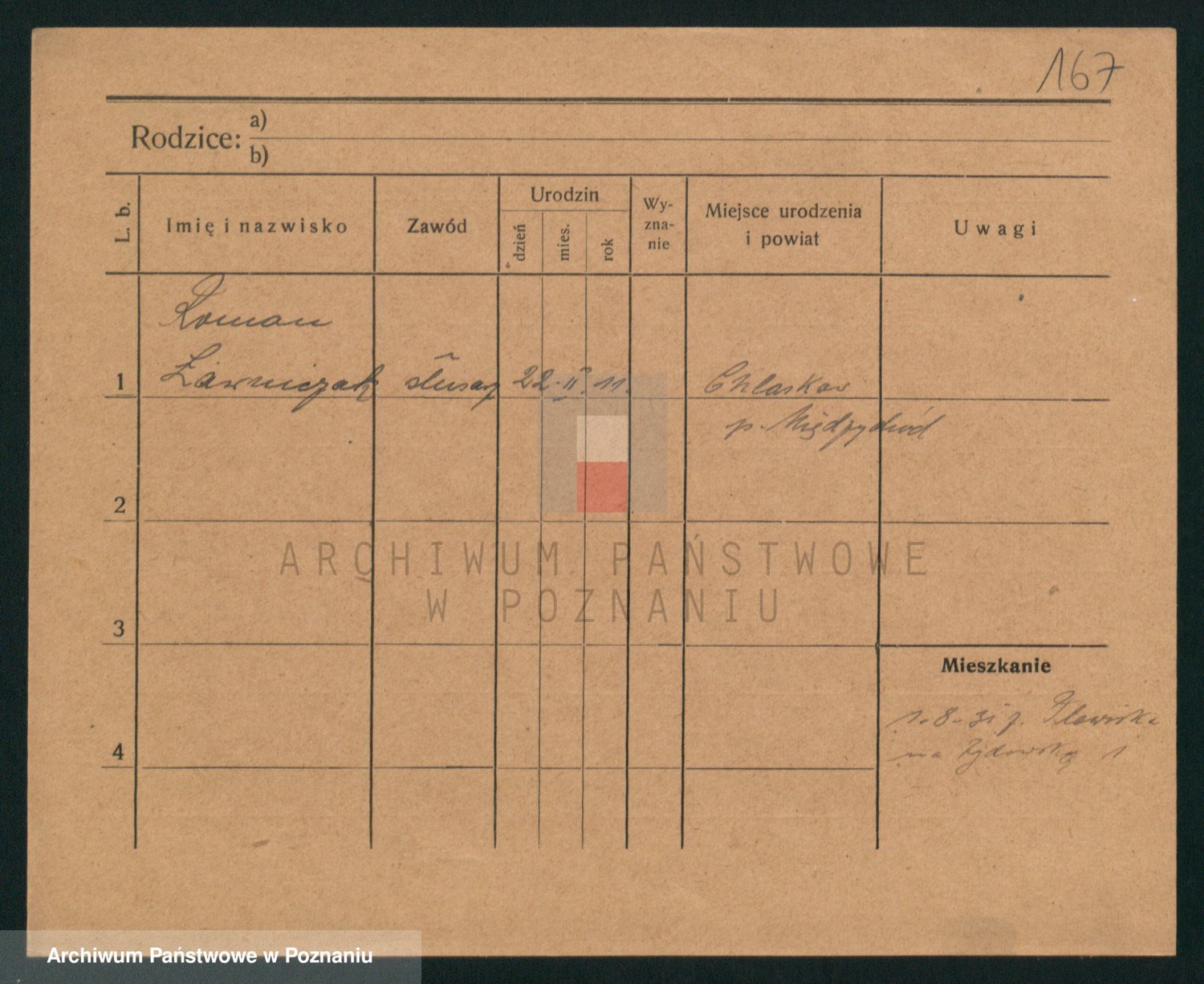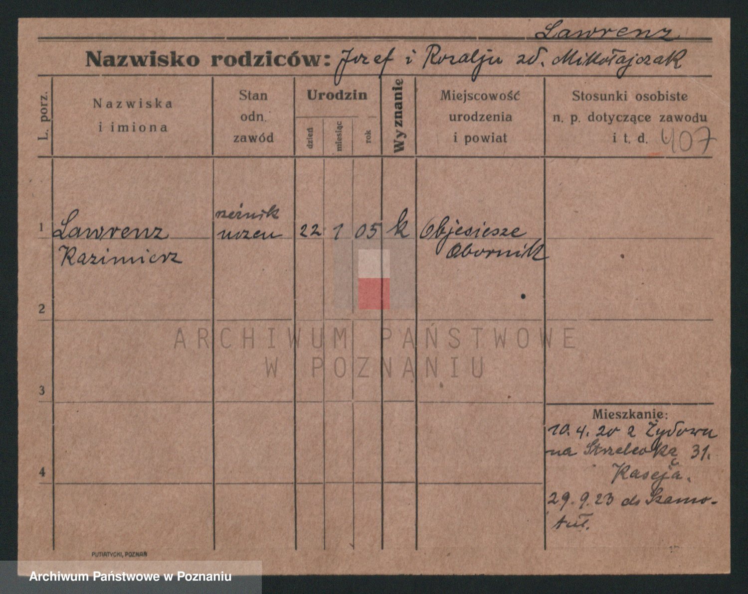 Podgląd karty osobowej dostępny jest po kliknięciu na nazwisko lub ikonkę karty. Można dokonywać powiększenia (ikony na górze) lub przechodzić między kolejnymi skanami (strzałki po bokach).